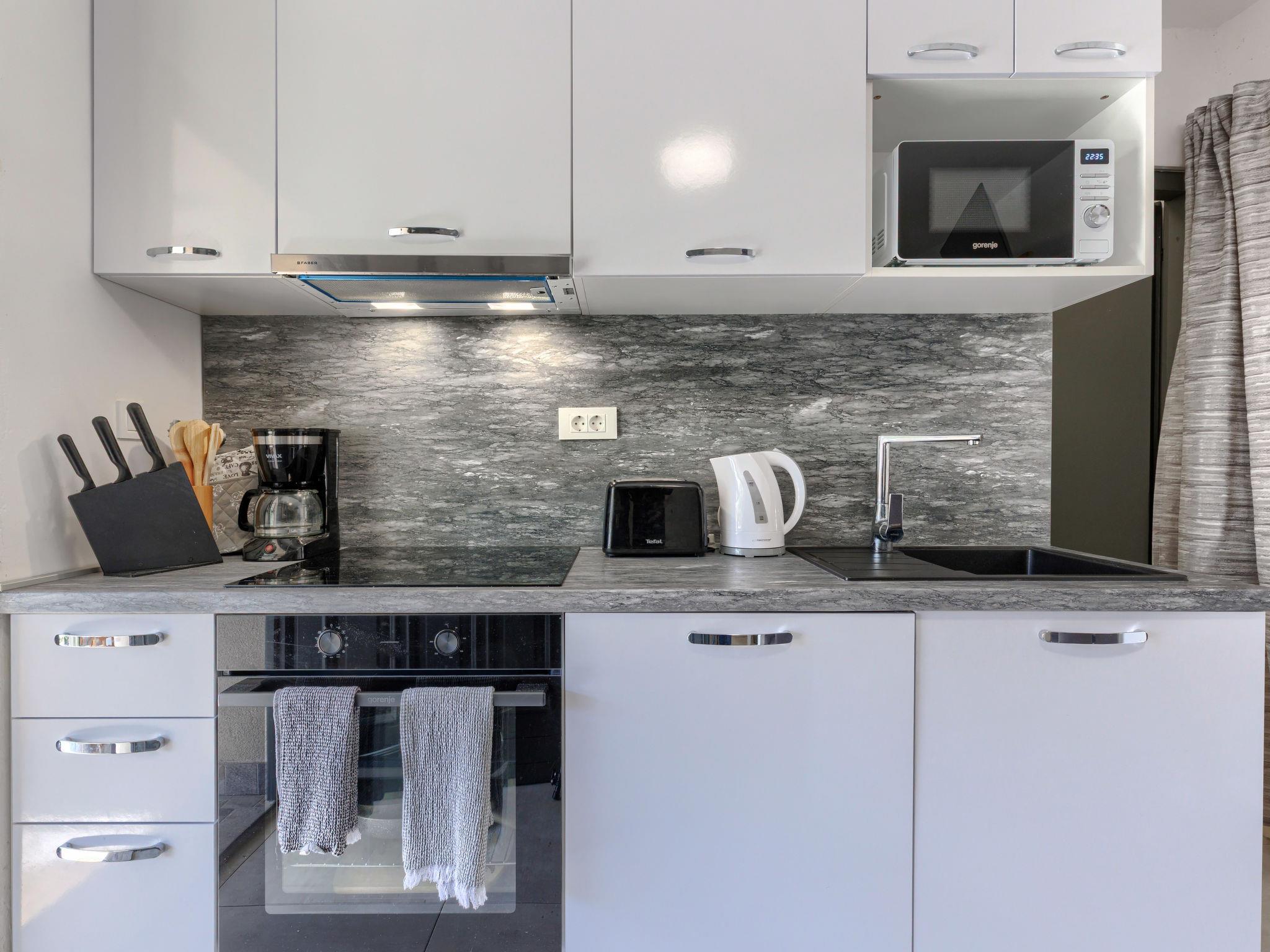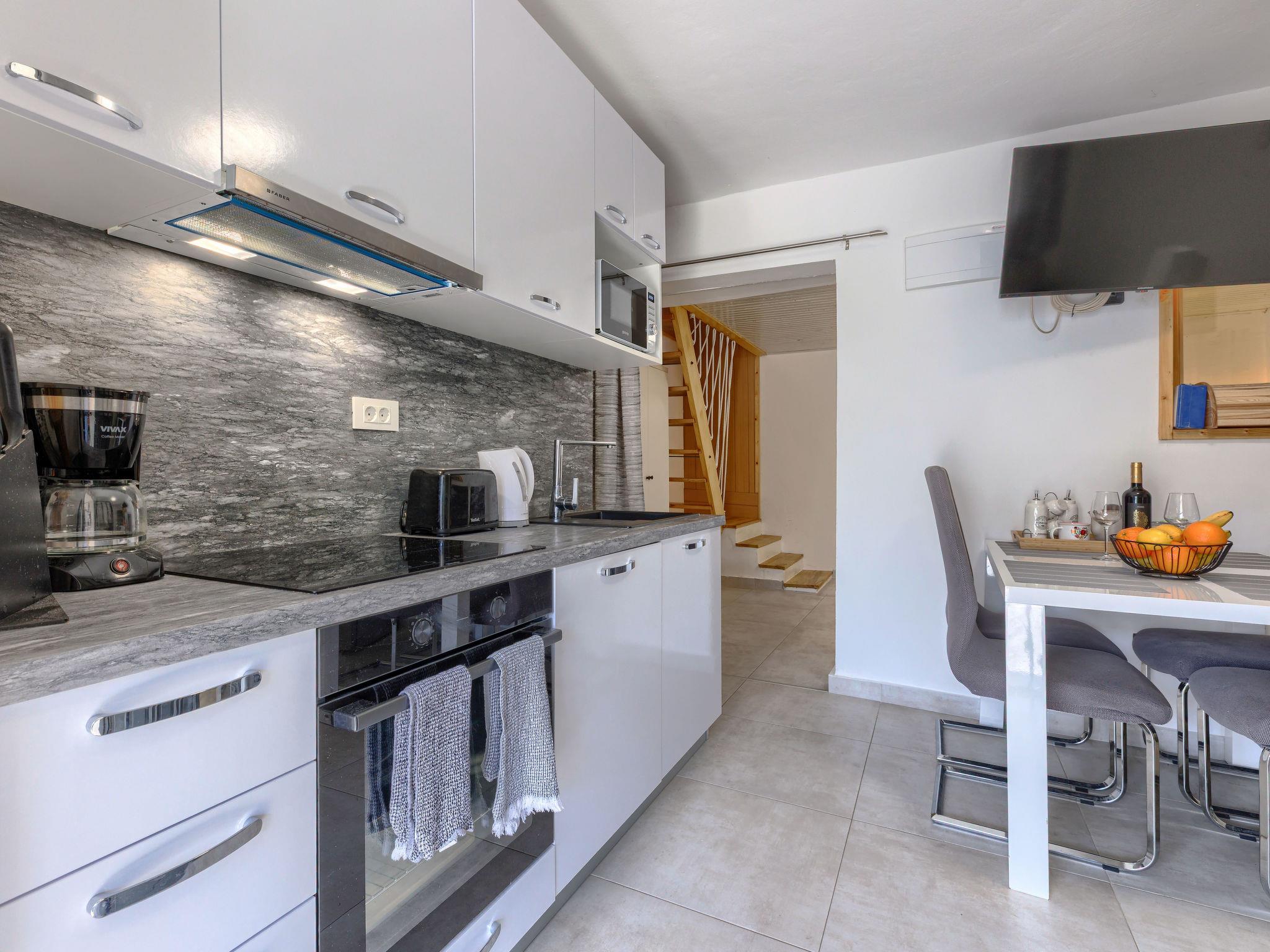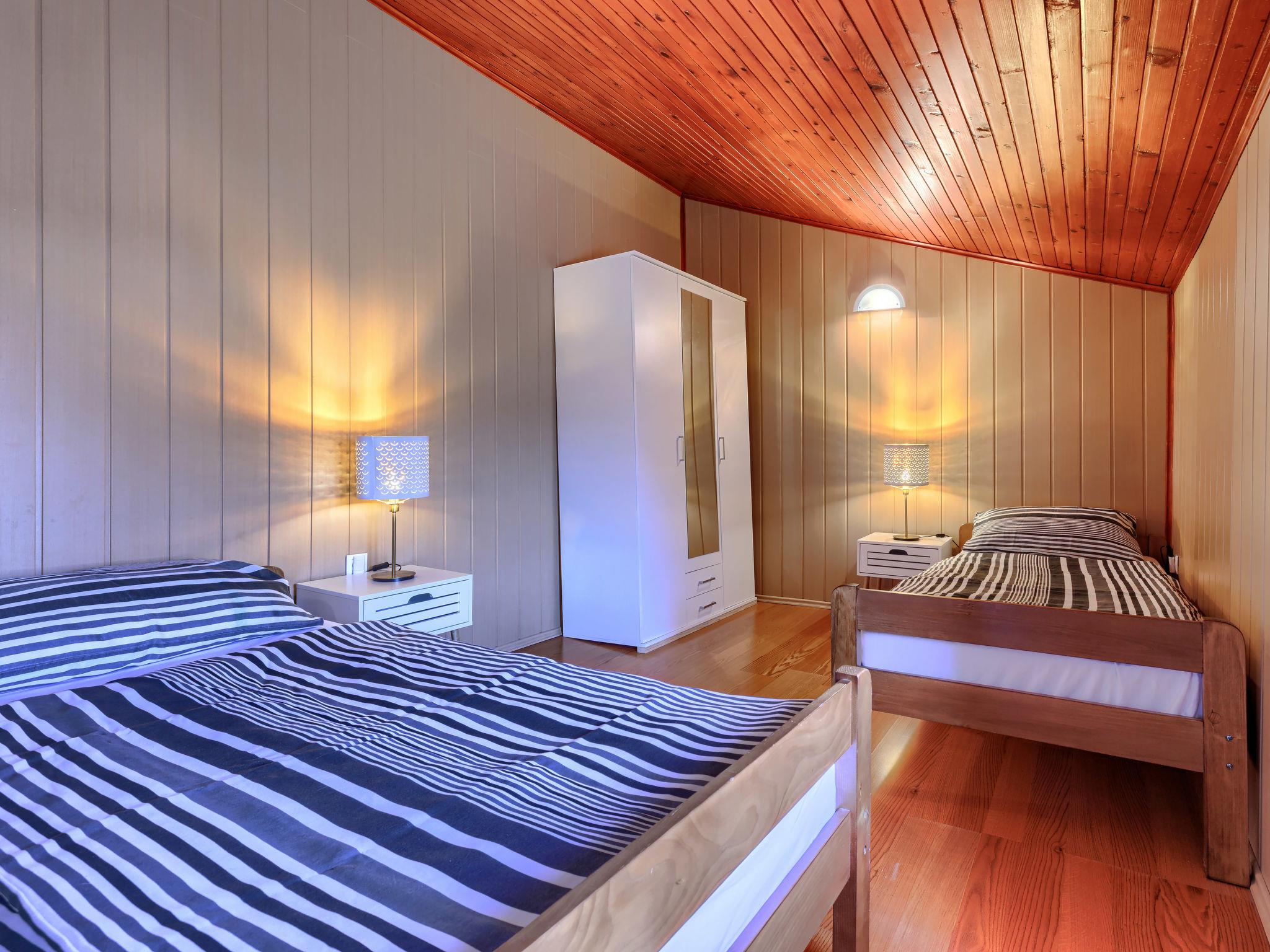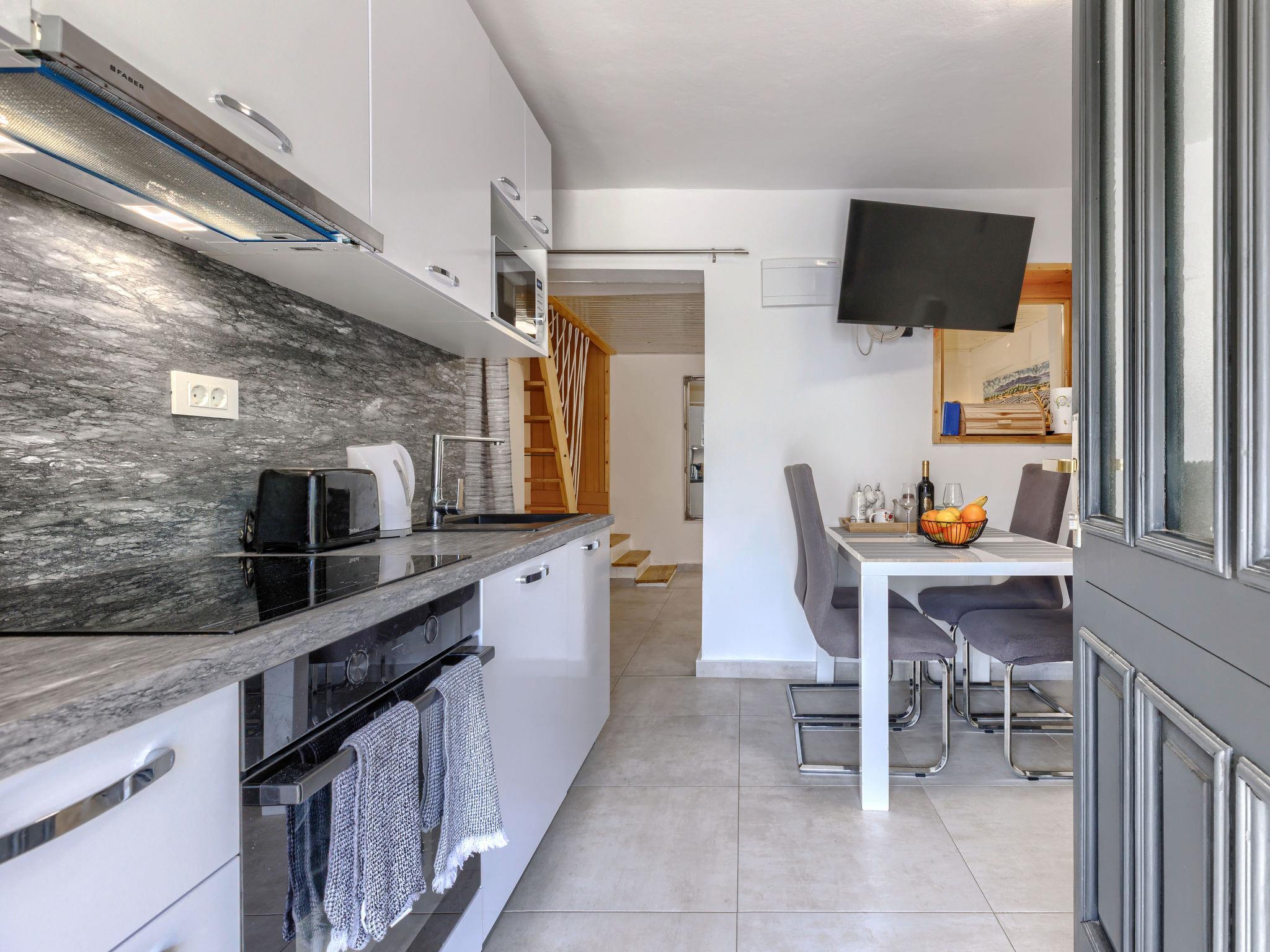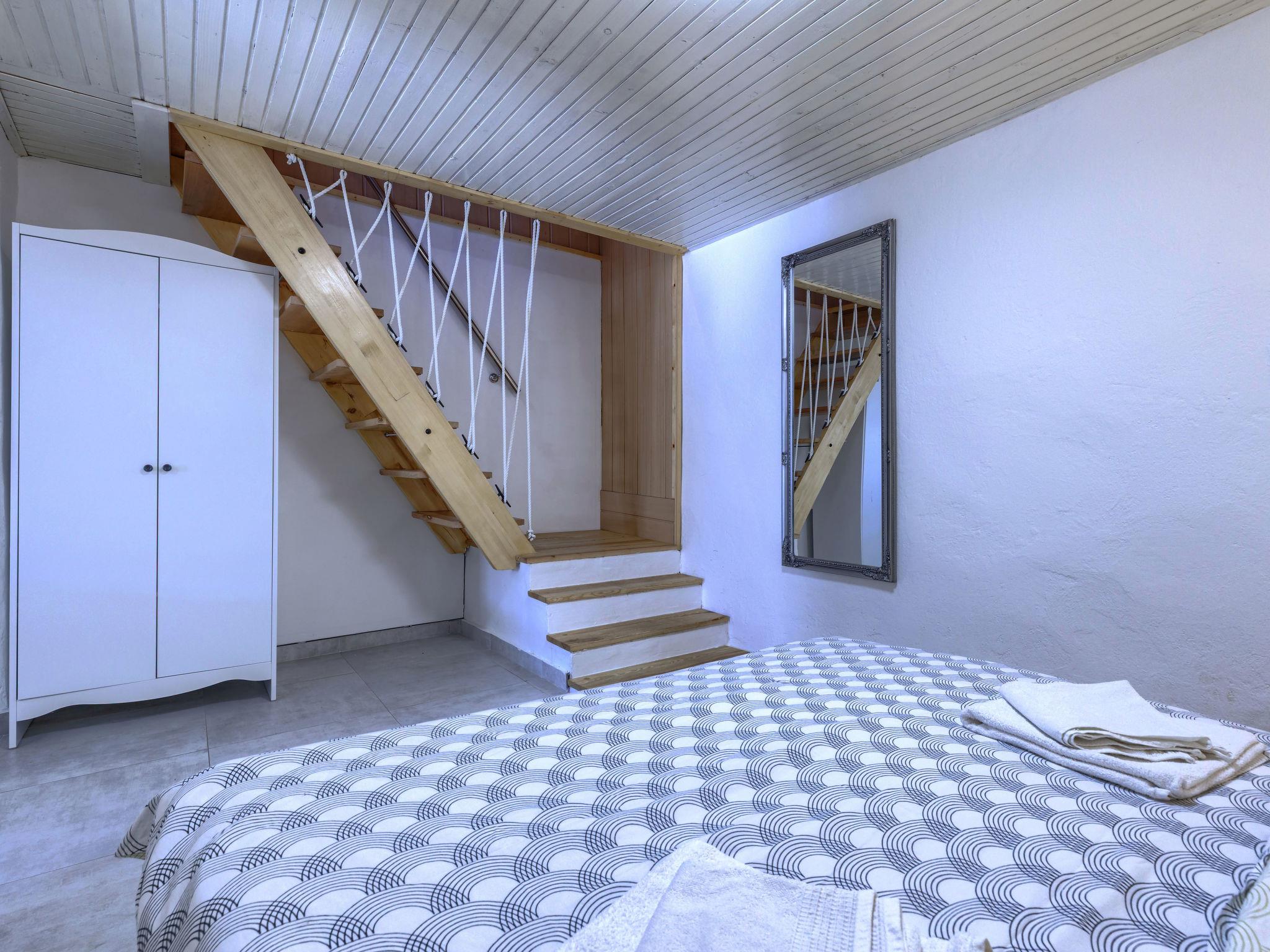 2-room house 40 m2 on 2 levels. Cosy furnishings: living/dining room with satellite TV and air conditioning. 1 room with 1 french bed (180 cm, length 200 cm). Open kitchen (oven, dishwasher, 4 ceramic glass hob hotplates, toaster, kettle, microwave, freezer, electric coffee machine). Exit to the terrace. Shower/WC. Upper floor: gallery with 2 beds (90 cm, length 200 cm), air conditioning. Forced-air heating. Terrace 18 m2, roofed. Terrace furniture, barbecue. Facilities: iron, mosquito net, hair dryer. Internet (WiFi, free). Maximum 1 pet/ dog allowed.