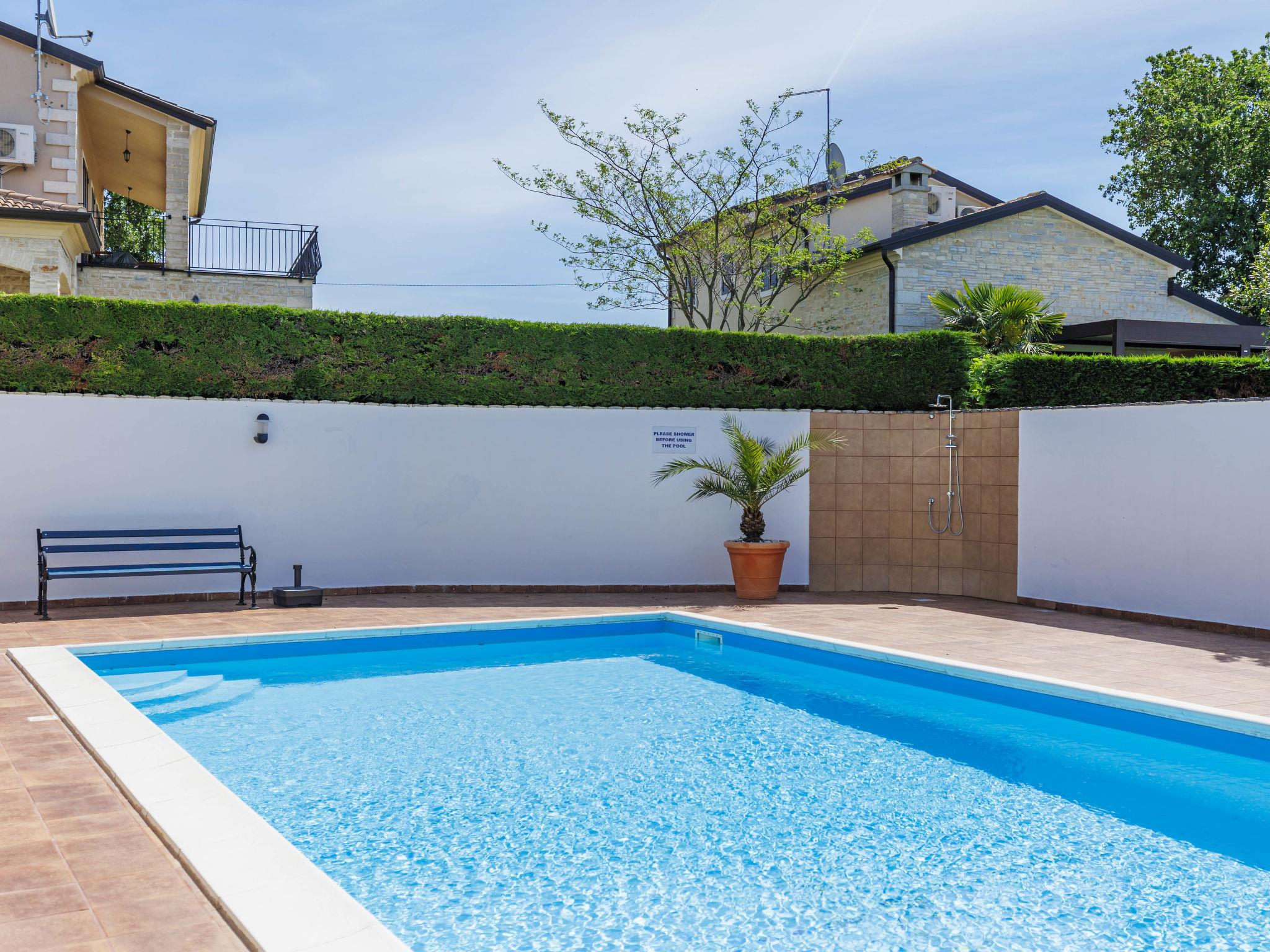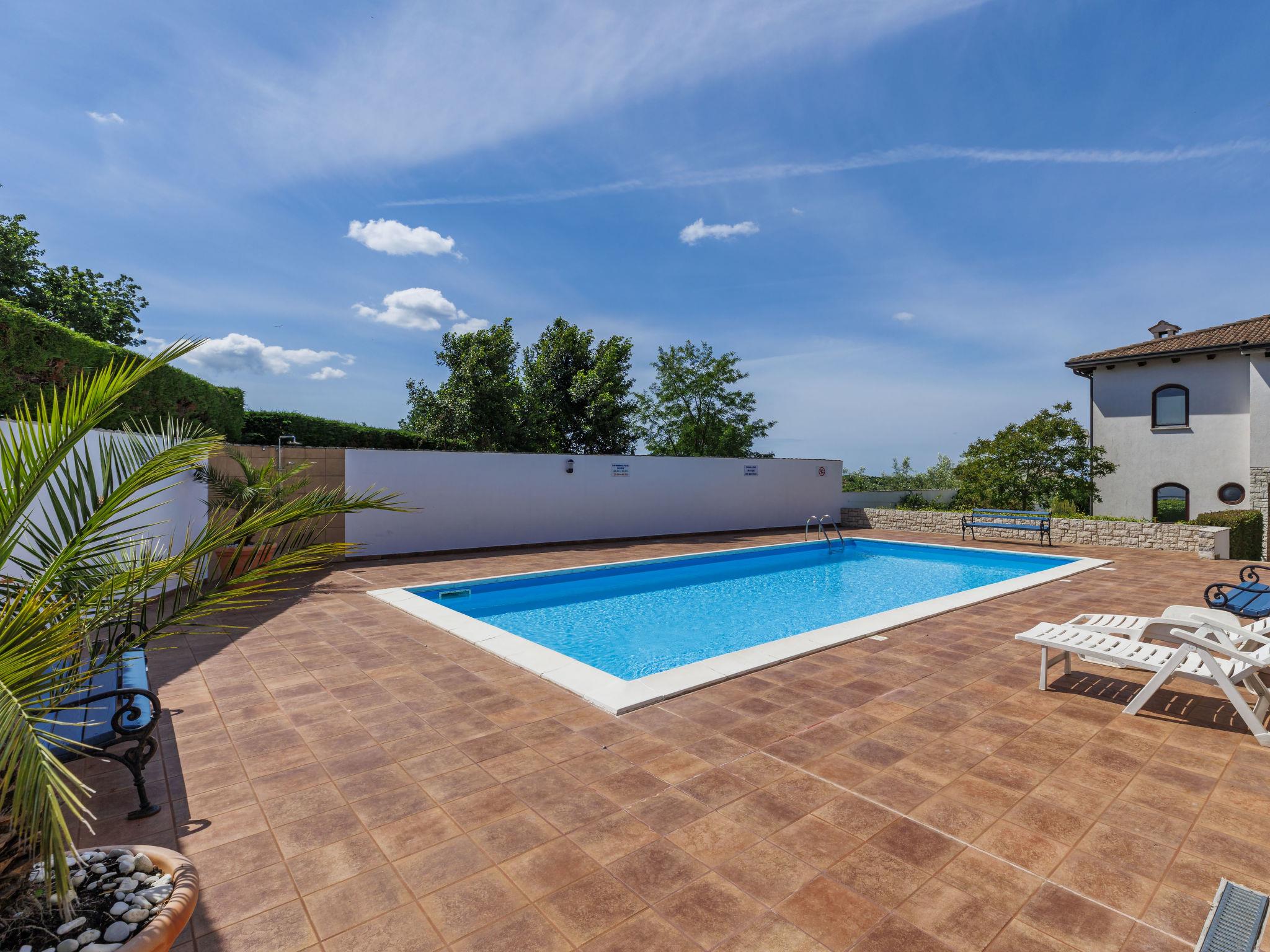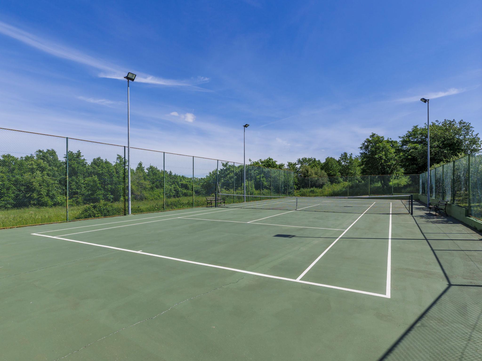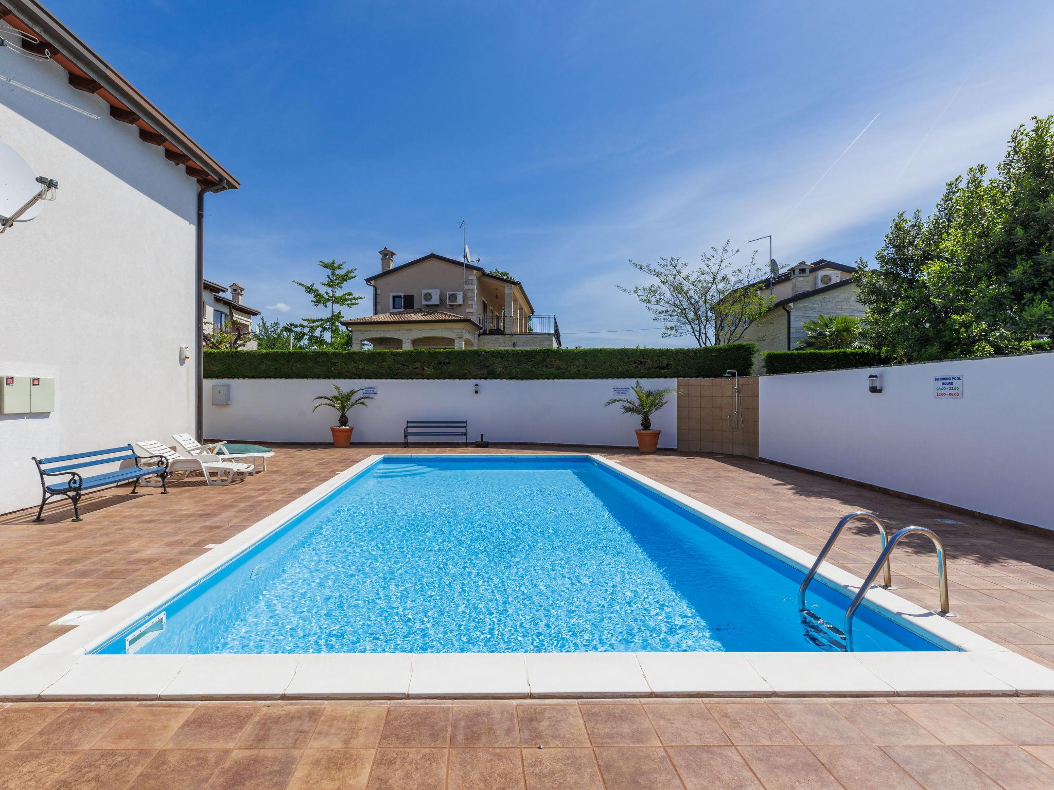 Comfortable terraced house "Dlan", 2 storeys. 600 m from the centre of Tar, 7 km from the centre of Novigrad, 11 km from the centre of Porec, 3 km from the sea, 3.5 km from the beach. For shared use: swimming pool angular (8 x 4 m, depth 80 - 150 cm, seasonal availability: 01.May. - 01.Nov.) with internal staircase. Outdoor shower, tennis. Private: property 200 m2 (fenced) with wildlife garden. Terrace (6 m2), garden furniture. In the house: internet access, washing machine. Shop 600 m, supermarket 2 km, restaurant 250 m, café 600 m, bus stop 1.4 km, sandy beach 3.5 km pebble beach 3.5 km, shingle beach 3.5 km. Tennis 5 km, riding stable 5 km, walking paths from the house, cycle lane 30 m. Nearby attractions: Aquapark 5.5 km. Please note: airfield 64 km from the property.