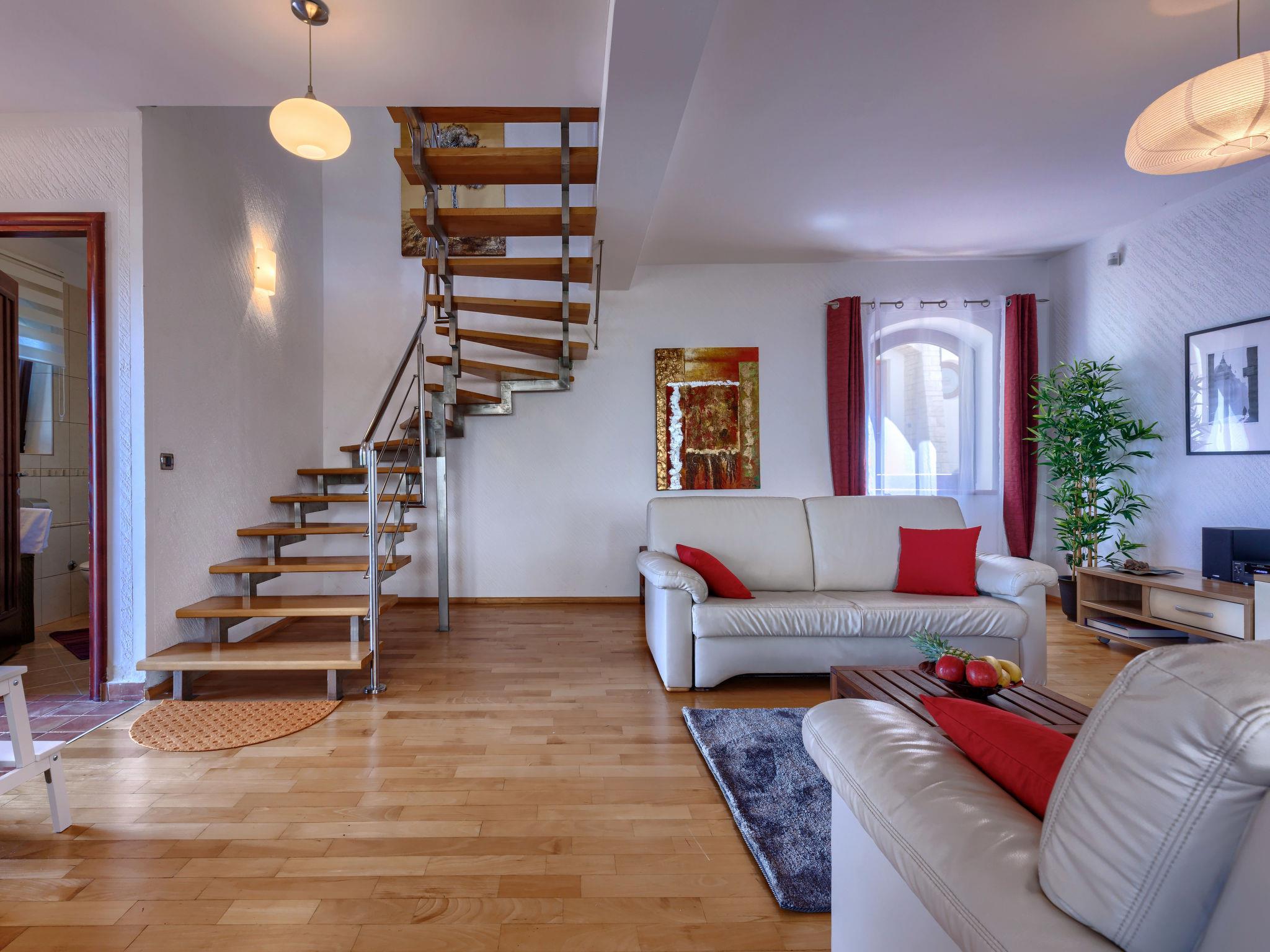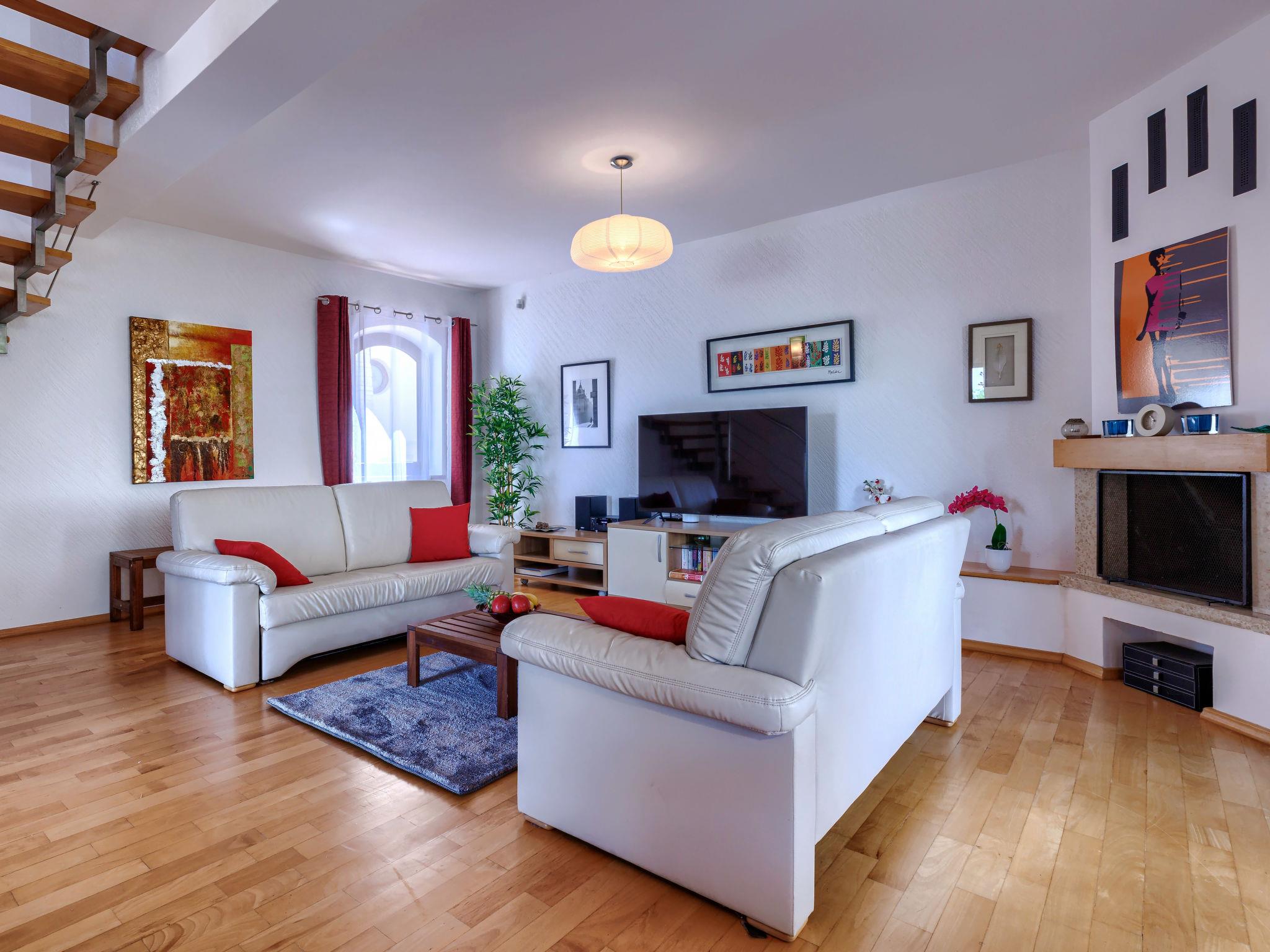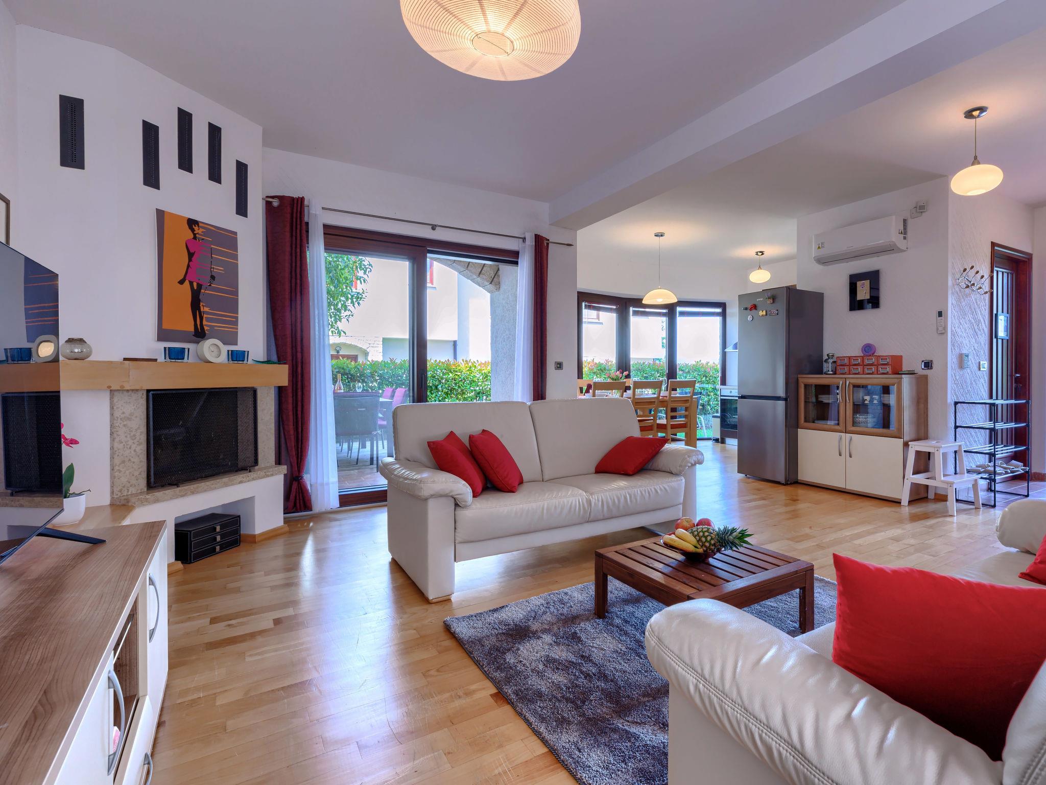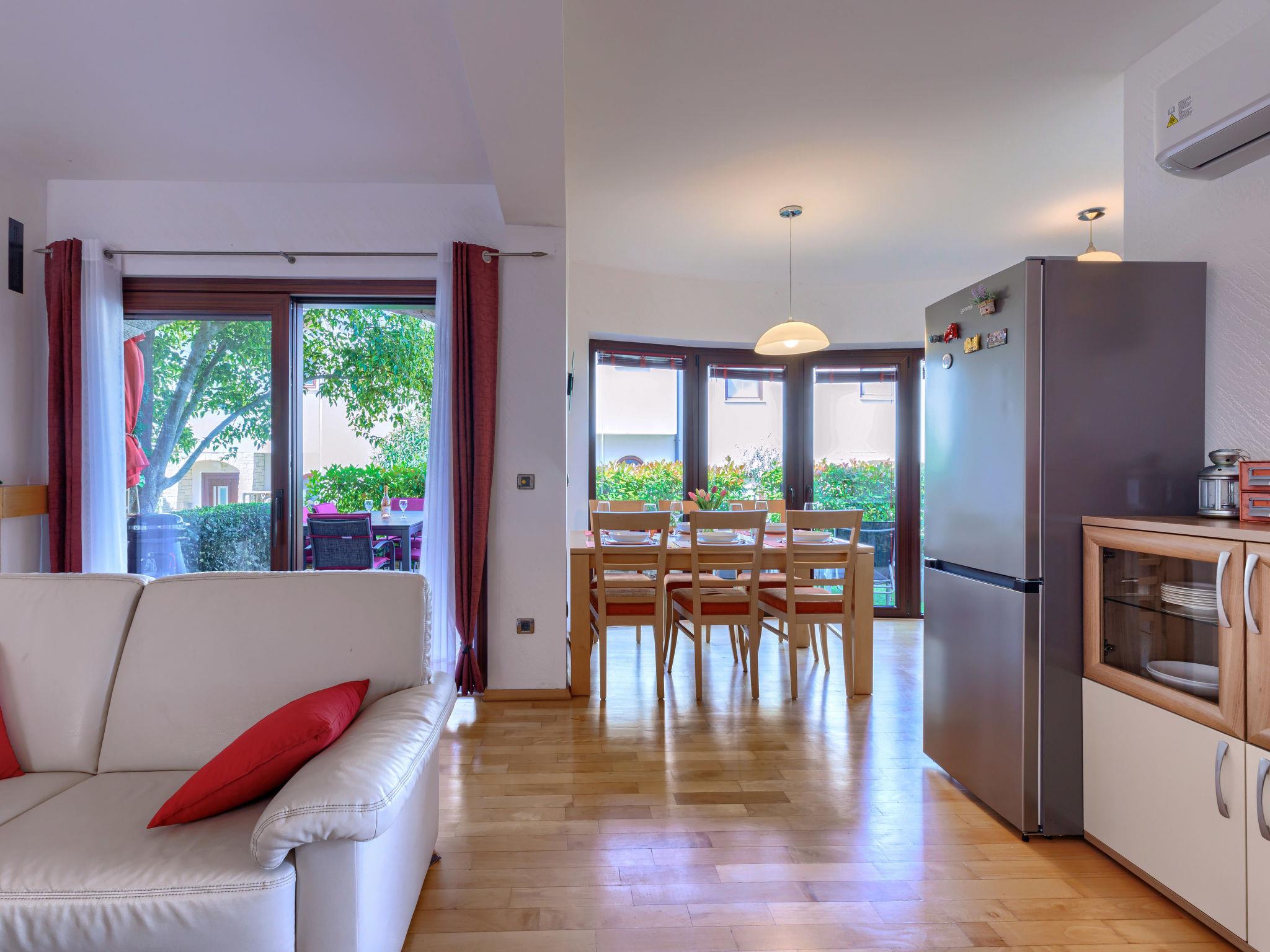 Comfortable terraced house "Dlan", 2 storeys. 600 m from the centre of Tar, 7 km from the centre of Novigrad, 11 km from the centre of Porec, 3 km from the sea, 3.5 km from the beach. For shared use: swimming pool angular (8 x 4 m, depth 80 - 150 cm, seasonal availability: 01.May. - 01.Nov.) with internal staircase. Outdoor shower, tennis. Private: property 200 m2 (fenced) with wildlife garden. Terrace (6 m2), garden furniture. In the house: internet access, washing machine. Shop 600 m, supermarket 2 km, restaurant 250 m, café 600 m, bus stop 1.4 km, sandy beach 3.5 km pebble beach 3.5 km, shingle beach 3.5 km. Tennis 5 km, riding stable 5 km, walking paths from the house, cycle lane 30 m. Nearby attractions: Aquapark 5.5 km. Please note: airfield 64 km from the property.