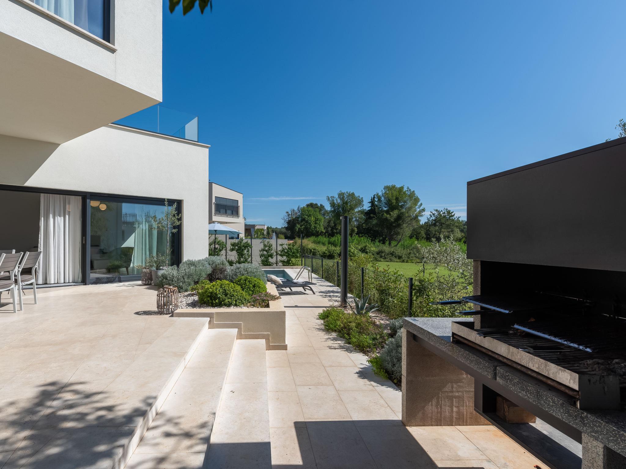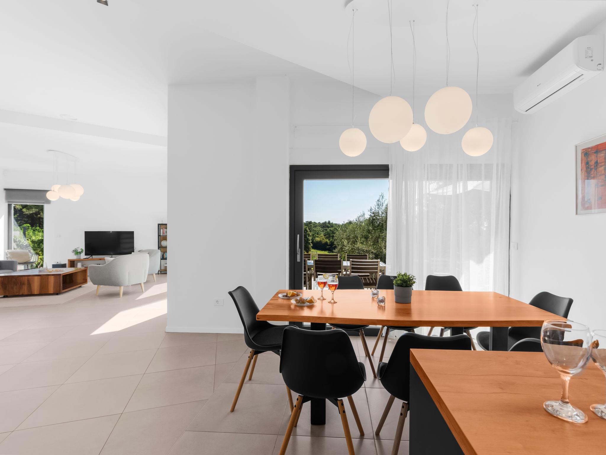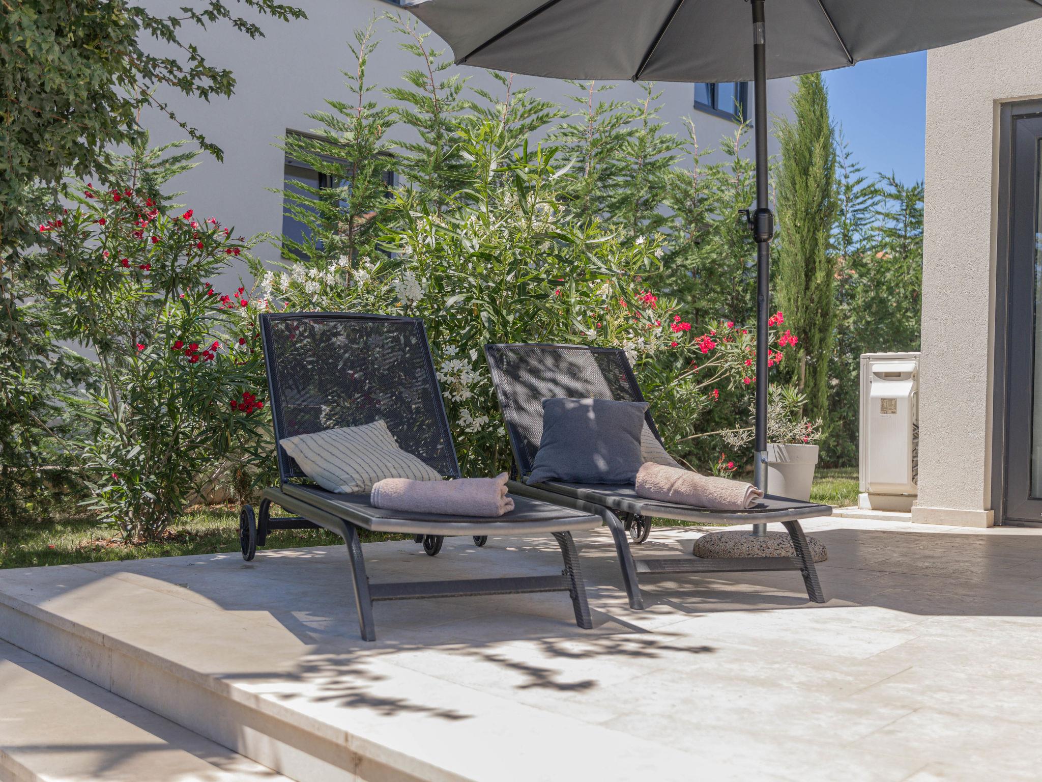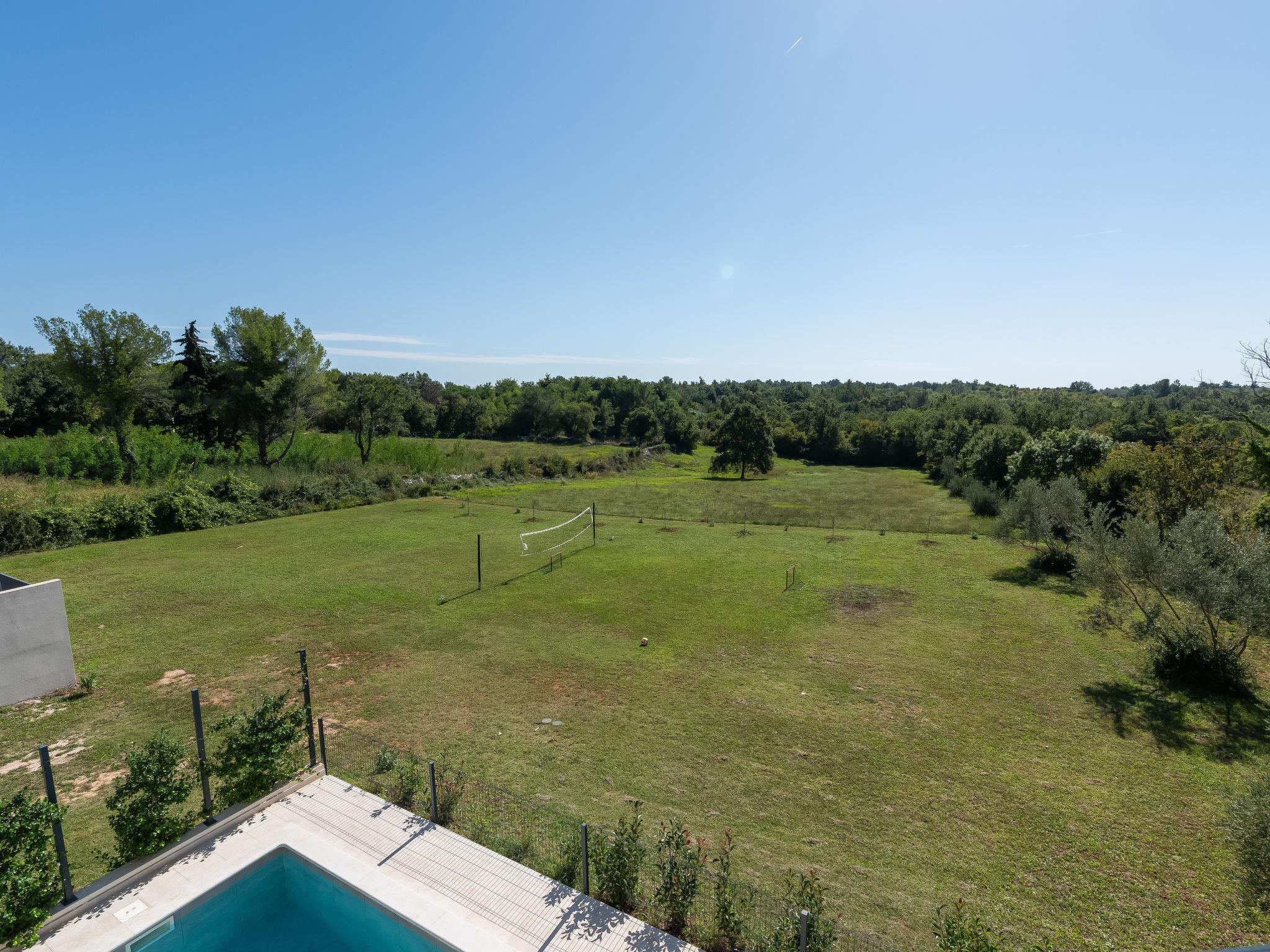 Tar 7 km from Porec: Modern villa "Marko Aurelia", 2 storeys. In the hamlet Vabriga 1 km from the centre of Tar, in a sunny position, 2 km from the sea, 2 km from the beach. Private: property 550 m2 (fenced), lawn, swimming pool angular (6 x 4 m, depth 150 cm, seasonal availability: 01.May. - 30.Sep.) with salt-electrolysis pool-cleaning system. Outdoor shower, garden furniture, barbecue. In the house: internet access, washing machine. Parking (for 2 cars) at the house on the premises. E-charging station. Shop 800 m, restaurant 300 m, bus stop 1.2 km, pebble beach 2 km, rocky beach 2 km. Walking paths from the house 100 m, cycle lane 150 m. Nearby attractions: Aquapark 14 km. The owner does not accept any youth groups. Electric vehicle charging station (domestic socket, on request and extra).