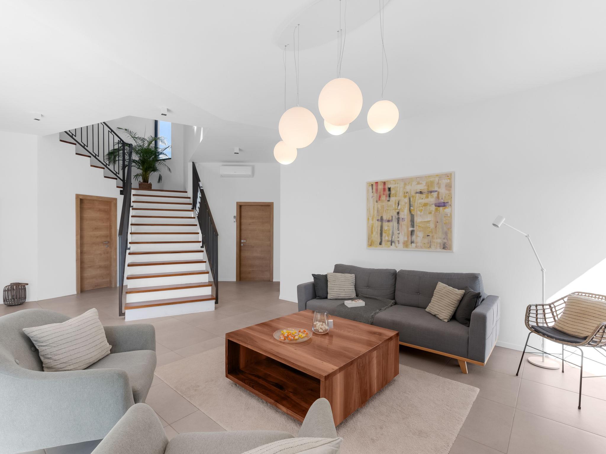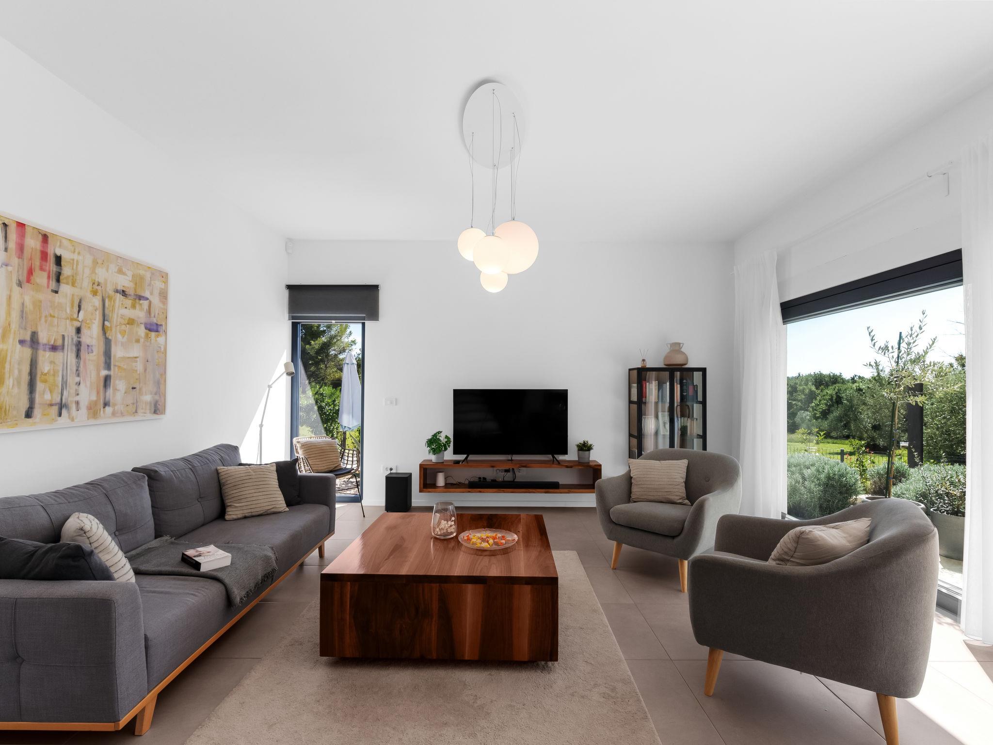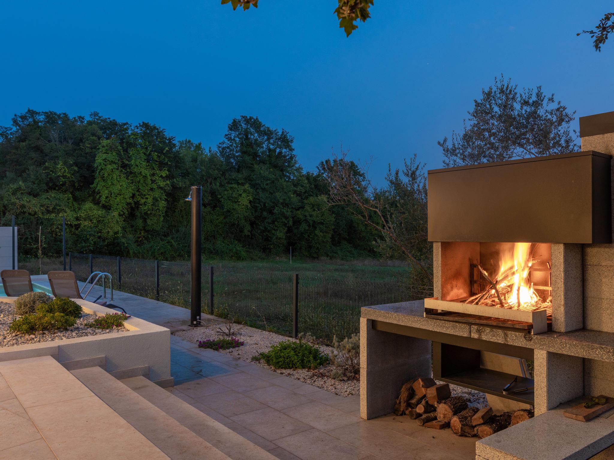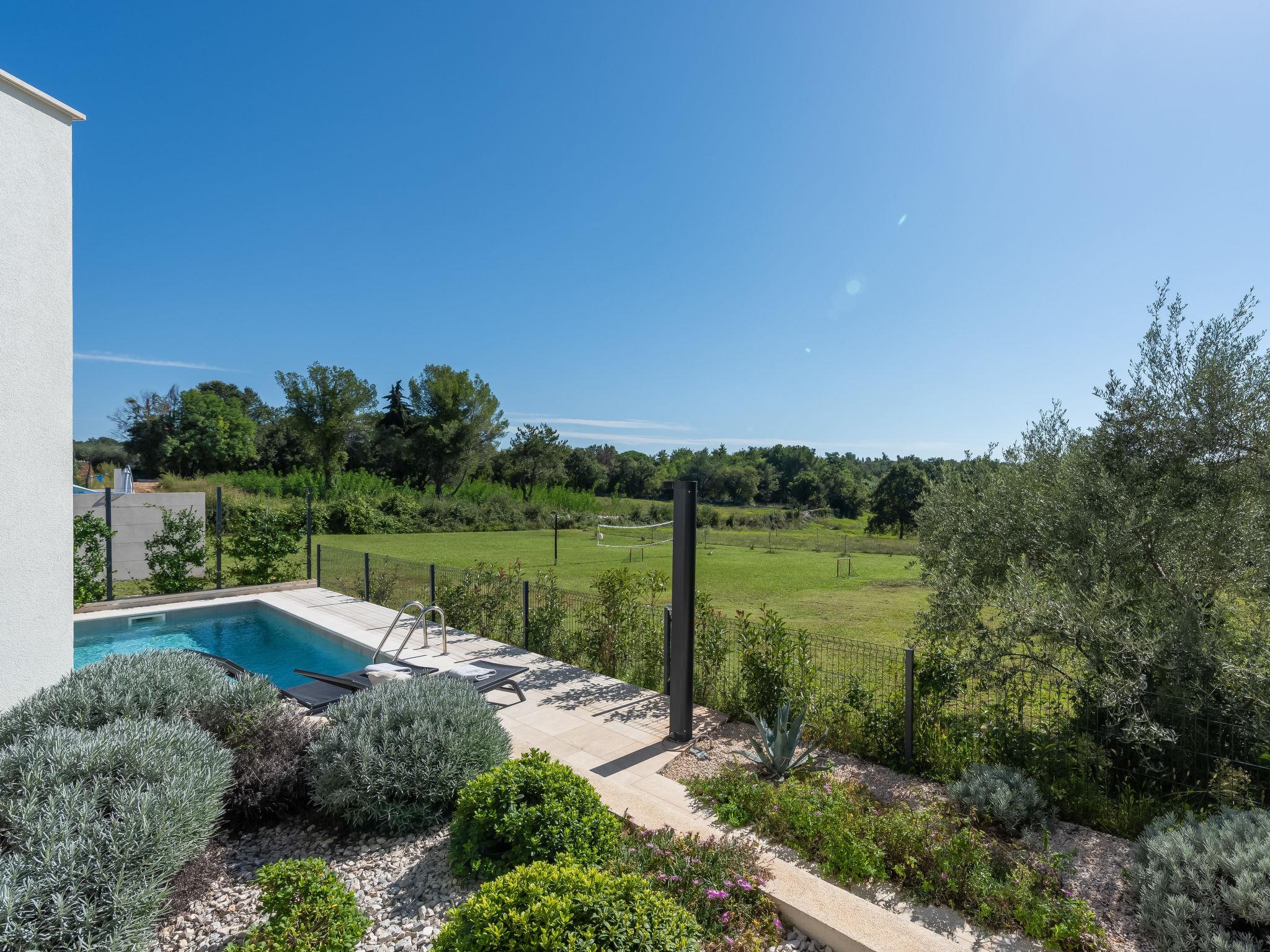 Tar 7 km from Porec: Modern villa "Marko Aurelia", 2 storeys. In the hamlet Vabriga 1 km from the centre of Tar, in a sunny position, 2 km from the sea, 2 km from the beach. Private: property 550 m2 (fenced), lawn, swimming pool angular (6 x 4 m, depth 150 cm, seasonal availability: 01.May. - 30.Sep.) with salt-electrolysis pool-cleaning system. Outdoor shower, garden furniture, barbecue. In the house: internet access, washing machine. Parking (for 2 cars) at the house on the premises. E-charging station. Shop 800 m, restaurant 300 m, bus stop 1.2 km, pebble beach 2 km, rocky beach 2 km. Walking paths from the house 100 m, cycle lane 150 m. Nearby attractions: Aquapark 14 km. The owner does not accept any youth groups. Electric vehicle charging station (domestic socket, on request and extra).