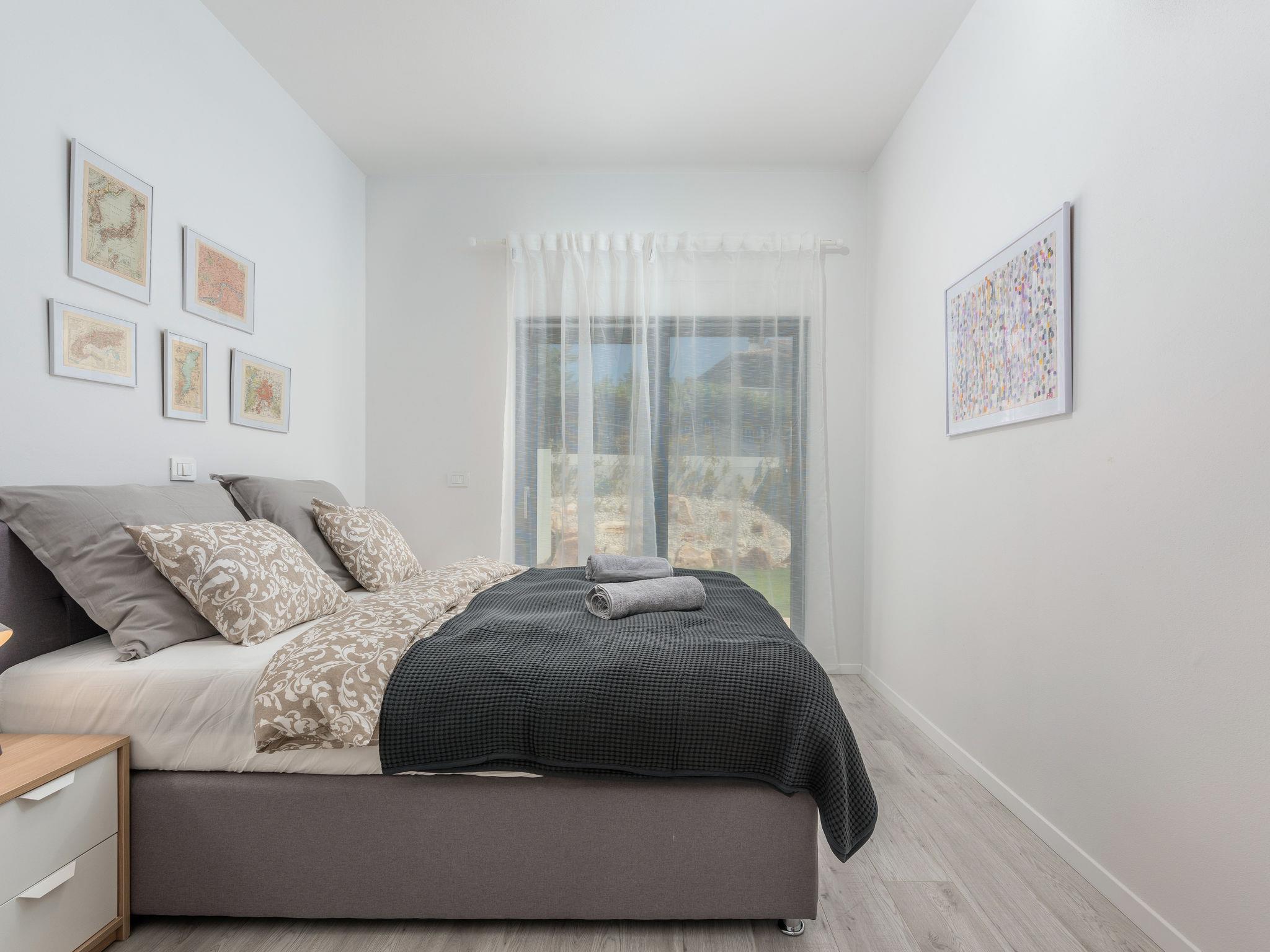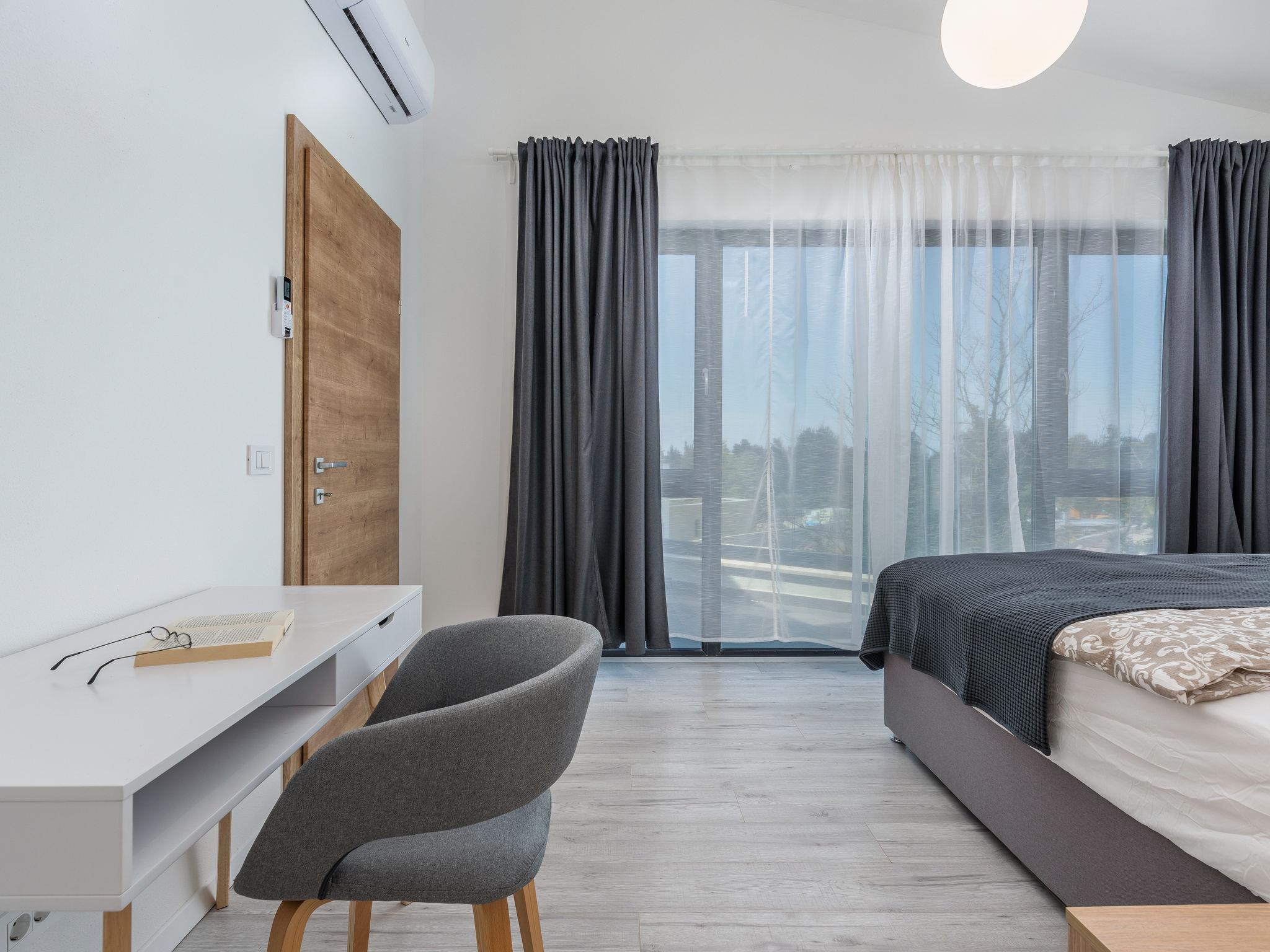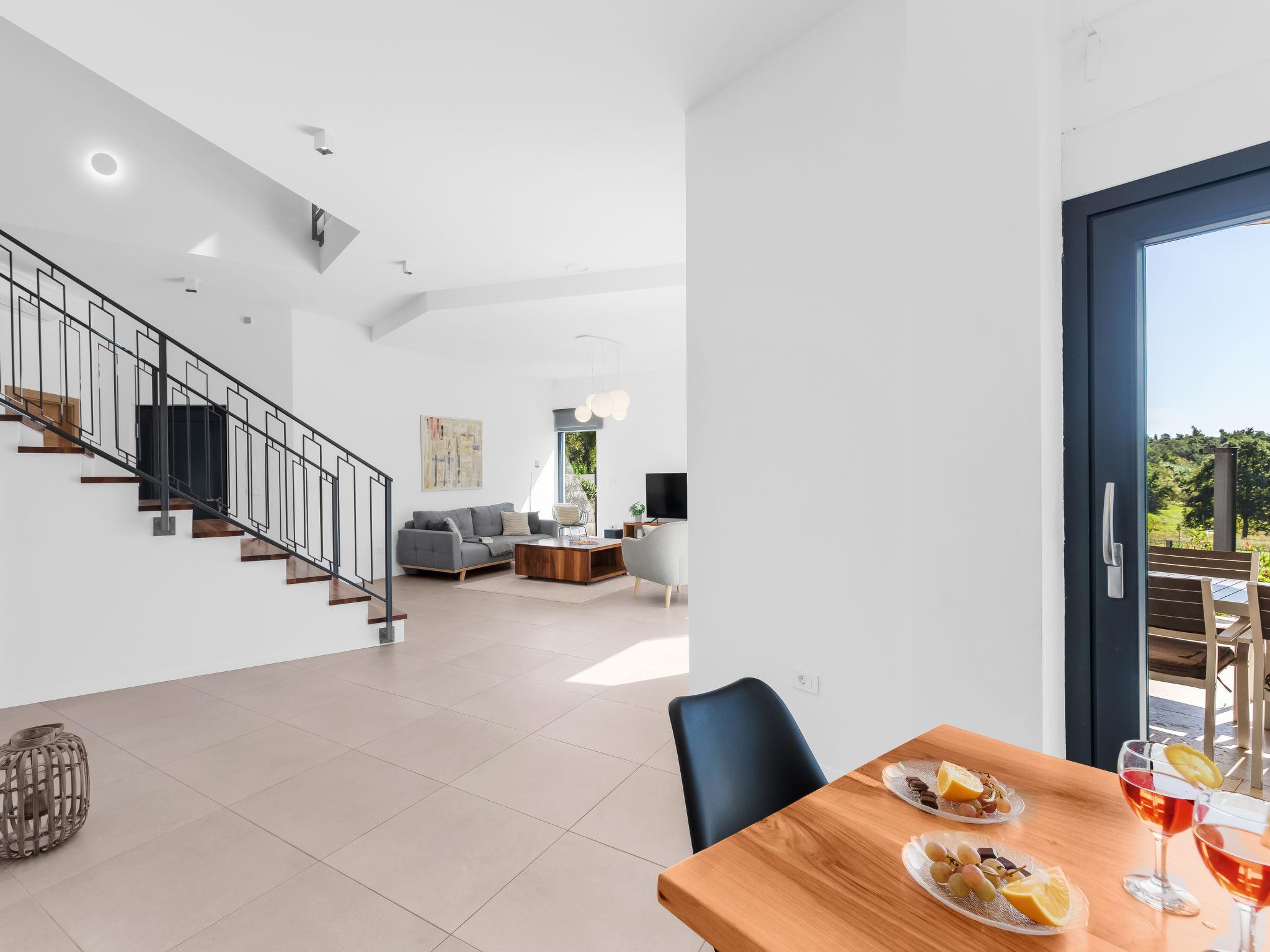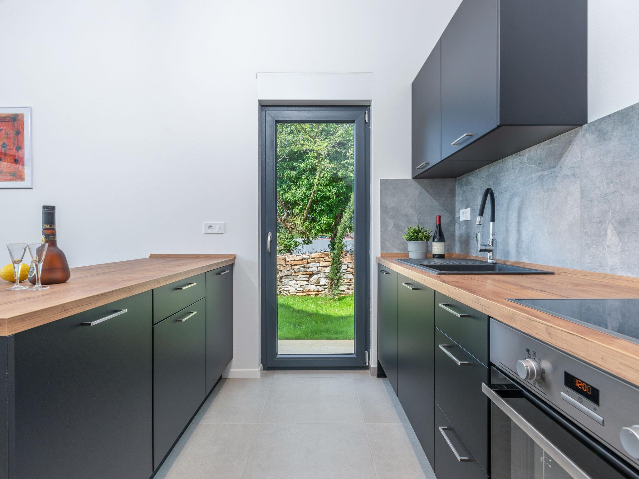 Tar 7 km from Porec: Modern villa "Marko Aurelia", 2 storeys. In the hamlet Vabriga 1 km from the centre of Tar, in a sunny position, 2 km from the sea, 2 km from the beach. Private: property 550 m2 (fenced), lawn, swimming pool angular (6 x 4 m, depth 150 cm, seasonal availability: 01.May. - 30.Sep.) with salt-electrolysis pool-cleaning system. Outdoor shower, garden furniture, barbecue. In the house: internet access, washing machine. Parking (for 2 cars) at the house on the premises. E-charging station. Shop 800 m, restaurant 300 m, bus stop 1.2 km, pebble beach 2 km, rocky beach 2 km. Walking paths from the house 100 m, cycle lane 150 m. Nearby attractions: Aquapark 14 km. The owner does not accept any youth groups. Electric vehicle charging station (domestic socket, on request and extra).