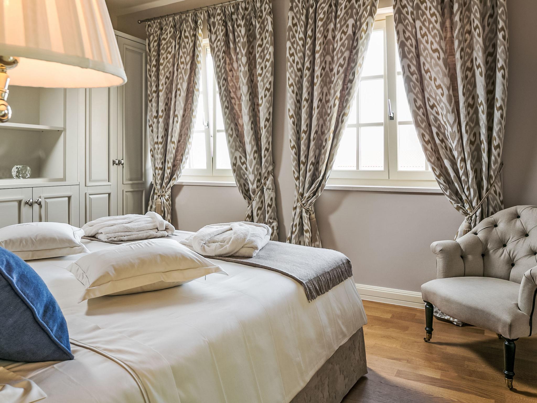 5-room villa 215 m2 on 2 levels. Tasteful and cosy furnishings: living/dining room with satellite TV and air conditioning. Exit to the swimming pool. 1 room with 1 french bed (180 cm, length 200 cm), shower/bidet/WC and air conditioning. Exit to the swimming pool. Open kitchen (oven, dishwasher, 4 ceramic glass hob hotplates, toaster, kettle, freezer, electric coffee machine). Sep. WC. Upper floor: 1 room with 1 french bed (180 cm, length 200 cm), bath/bidet/WC and air conditioning. Exit to the terrace, to the swimming pool. 2 rooms, each room with 1 french bed (180 cm, length 200 cm), shower/bidet/WC and air conditioning. Forced-air heating. Terrace roofed. Terrace furniture, deck chairs. Panoramic view of the sea. Facilities: safe, iron, hair dryer. Internet (WiFi, free). Maximum 2 pets/ dogs allowed.