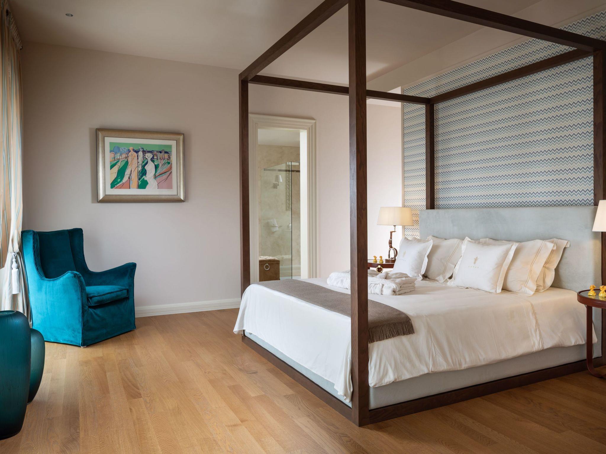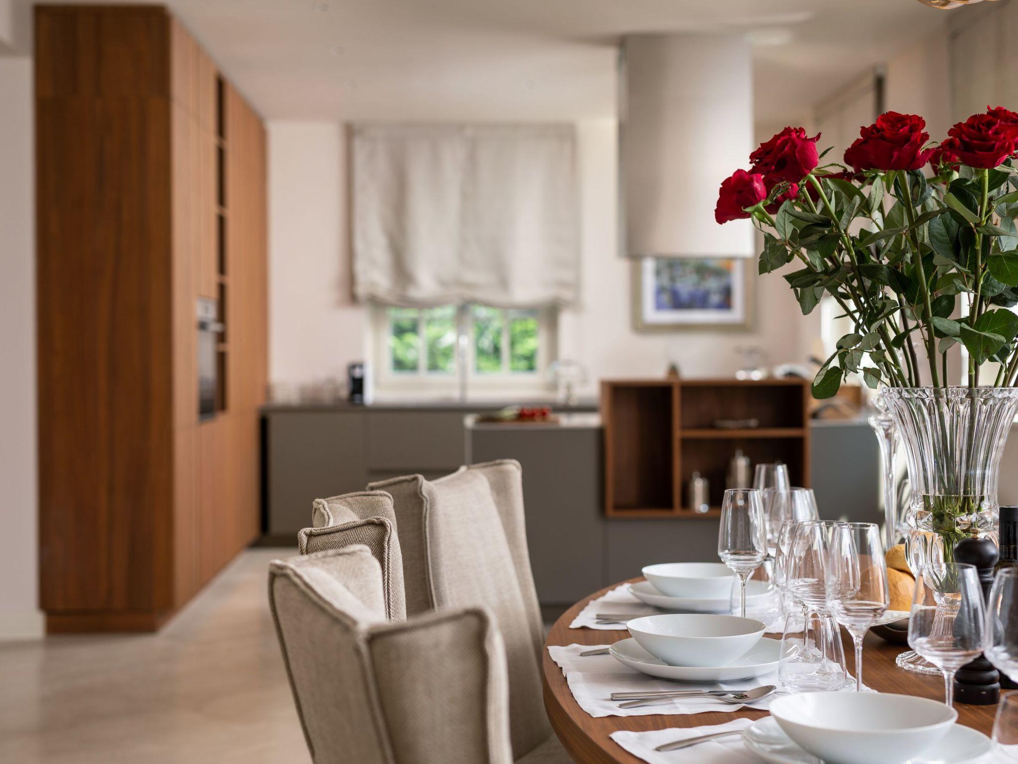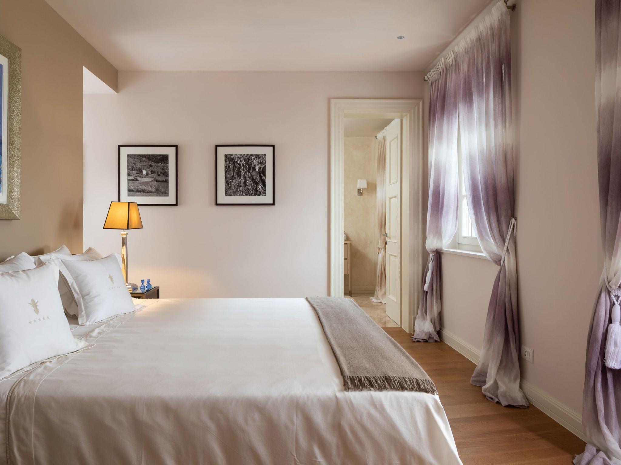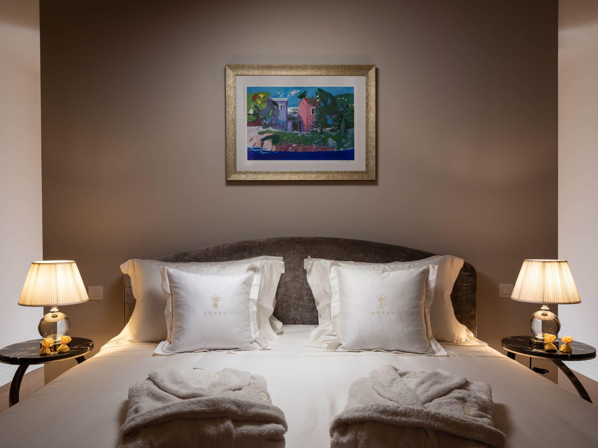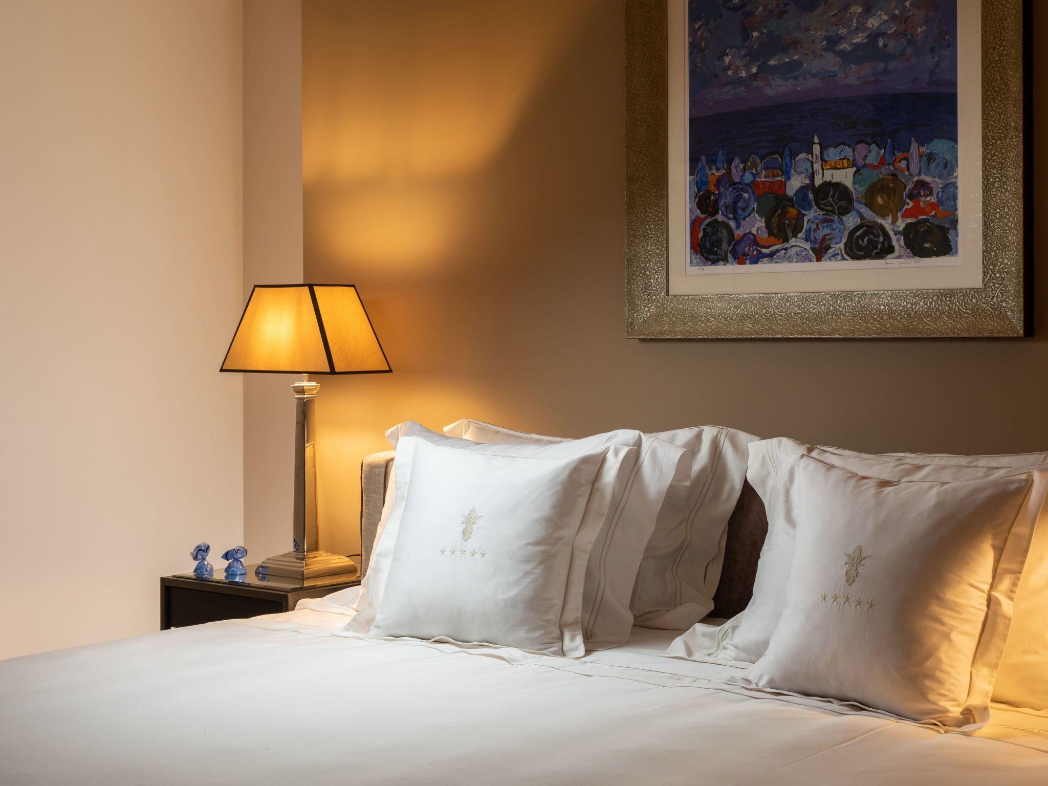 5-room villa 400 m2 on 2 levels. Tasteful furnishings: living/dining room with satellite TV and air conditioning. Exit to the swimming pool. 1 room with 1 french bed (180 cm, length 200 cm), shower/bidet/WC and air conditioning. Exit to the swimming pool. Open kitchen (oven, dishwasher, 4 ceramic glass hob hotplates, toaster, kettle, freezer, electric coffee machine). Sep. WC. Upper floor: 1 room with 1 french bed (180 cm, length 200 cm), bath/bidet/WC and air conditioning. Exit to the terrace. 1 room with 1 french bed (180 cm, length 200 cm), shower/bidet/WC and air conditioning. Exit to the terrace. 1 room with 1 french bed (180 cm, length 200 cm), shower/bidet/WC and air conditioning. Forced-air heating. Terrace roofed. Terrace furniture, deck chairs. Panoramic view of the sea. Facilities: safe, iron, hair dryer. Internet (WiFi, free). Maximum 2 pets/ dogs allowed.