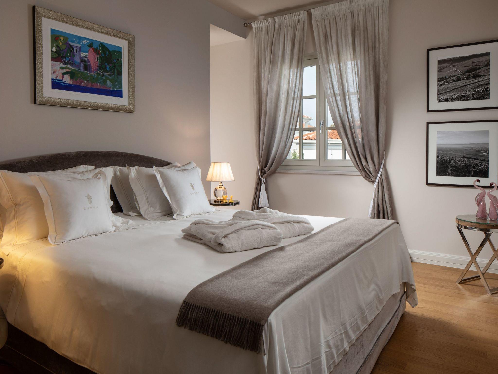 Tar 7 km from Porec: Beautiful villa "Zara", 2 storeys. In the hamlet Vabriga 1 km from the centre of Tar, 9 km from the centre of Novigrad, in a sunny position, 2 km from the sea, 2 km from the beach. Private: property 600 m2 (fenced), swimming pool angular, heated (7 x 7 m, depth 130 cm, seasonal availability: 01.May. - 01.Nov.) with internal staircase. Outdoor shower, terrace, garden furniture, barbecue. In the house: internet access, washing machine. Available: bicycles (2). Roofed, parking (for 2 cars) at the house on the premises. Shop 600 m, supermarket 800 m, restaurant 500 m, bus stop 600 m, pebble beach 2 km, rocky beach 2 km. Please note: airfield 60 km from the property. Swimming pool heated (extra).