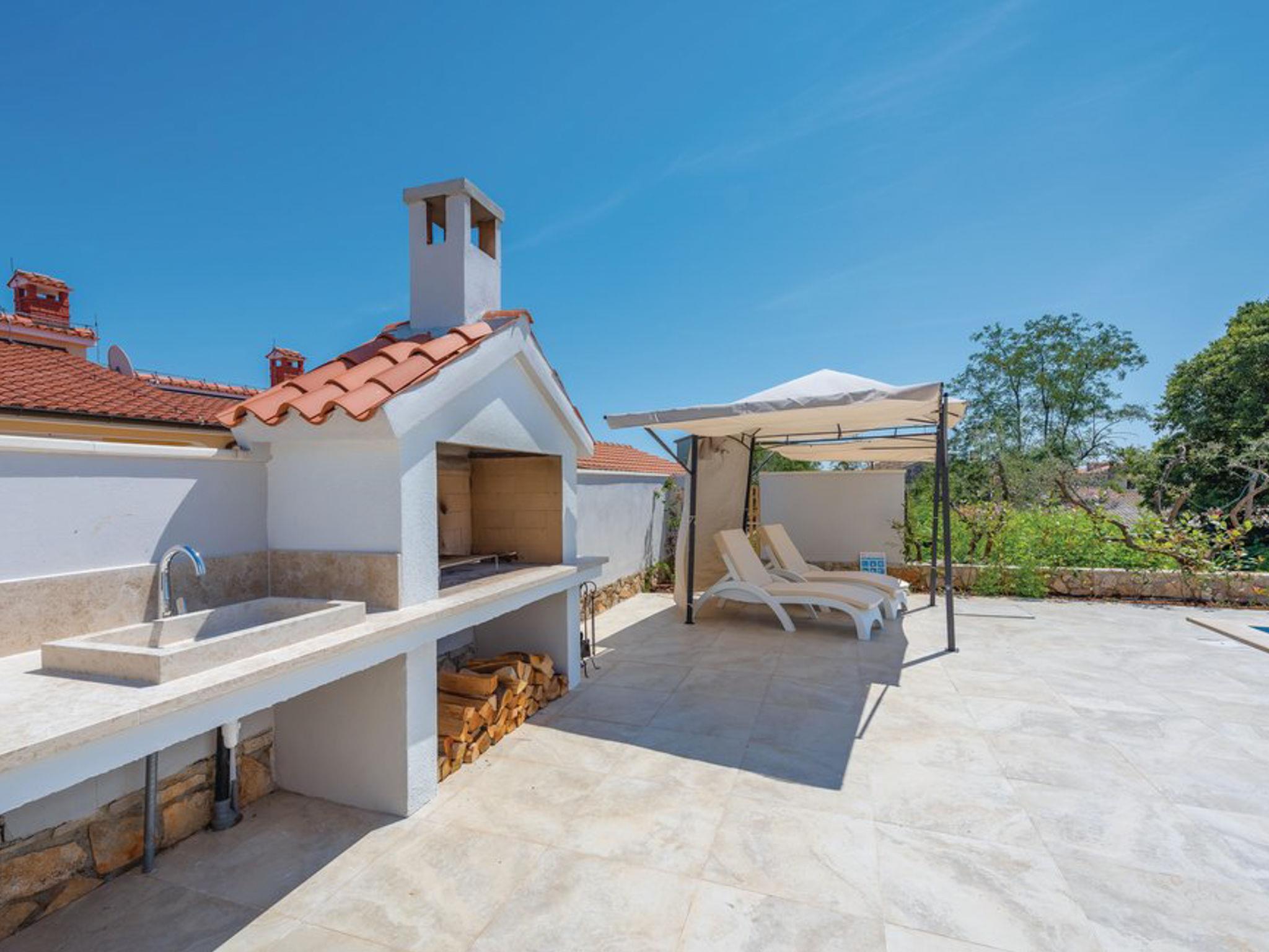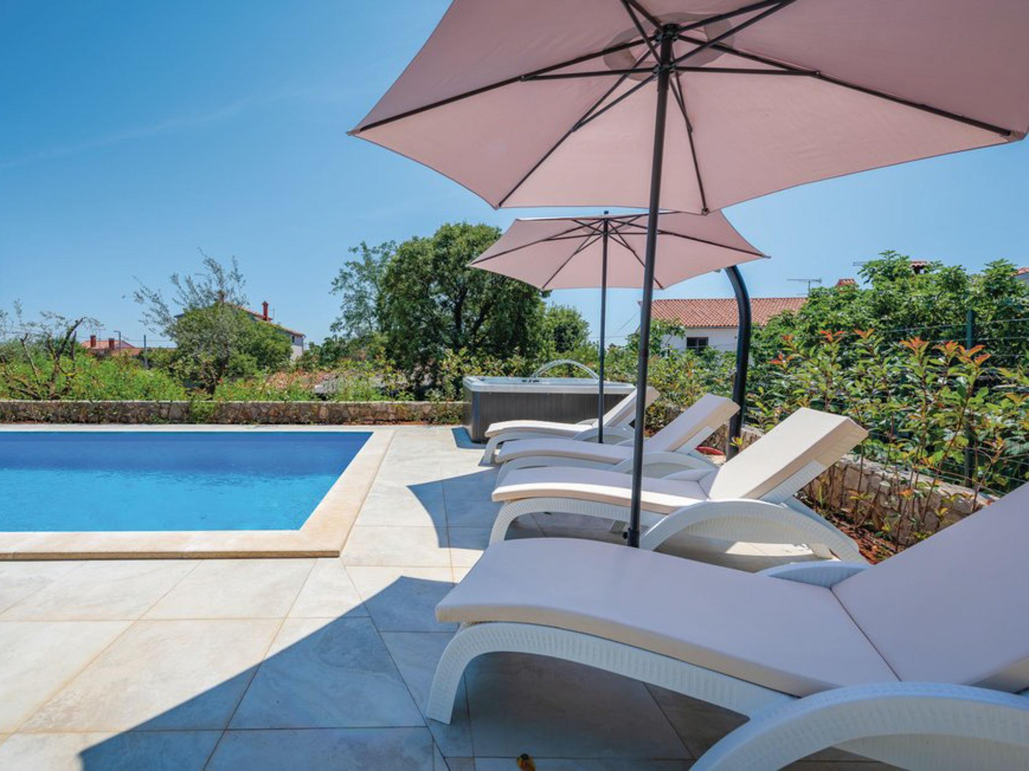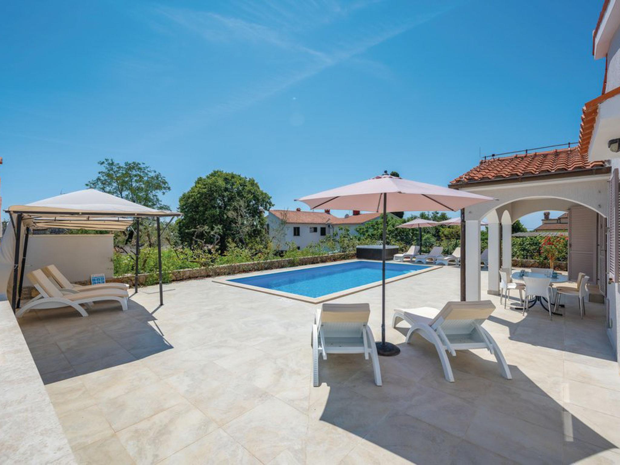 Tar 7 km from Porec: Single-family house "Alice". In the hamlet Vabriga 1 km from the centre of Tar, in a quiet position, 4 km from the sea, 4 km from the beach, in a cul-de-sac. Private: property 800 m2 (fenced), lawn 200 m2 flowers, natural garden, swimming pool angular (4 x 8 m, depth 135 cm, seasonal availability: 01.May. - 30.Sep.) with internal staircase. Outdoor shower, hot tub, garden furniture, barbecue. In the house: internet access, washing machine. Parking at the house on the premises. Shop 50 m, supermarket 100 m, restaurant 50 m, pedestrian zone 100 m, bus stop 1 km, pebble beach 4 km, shingle beach 4 km, rocky beach 4 km. Please note: suitable for families. The owner does not accept any groups.