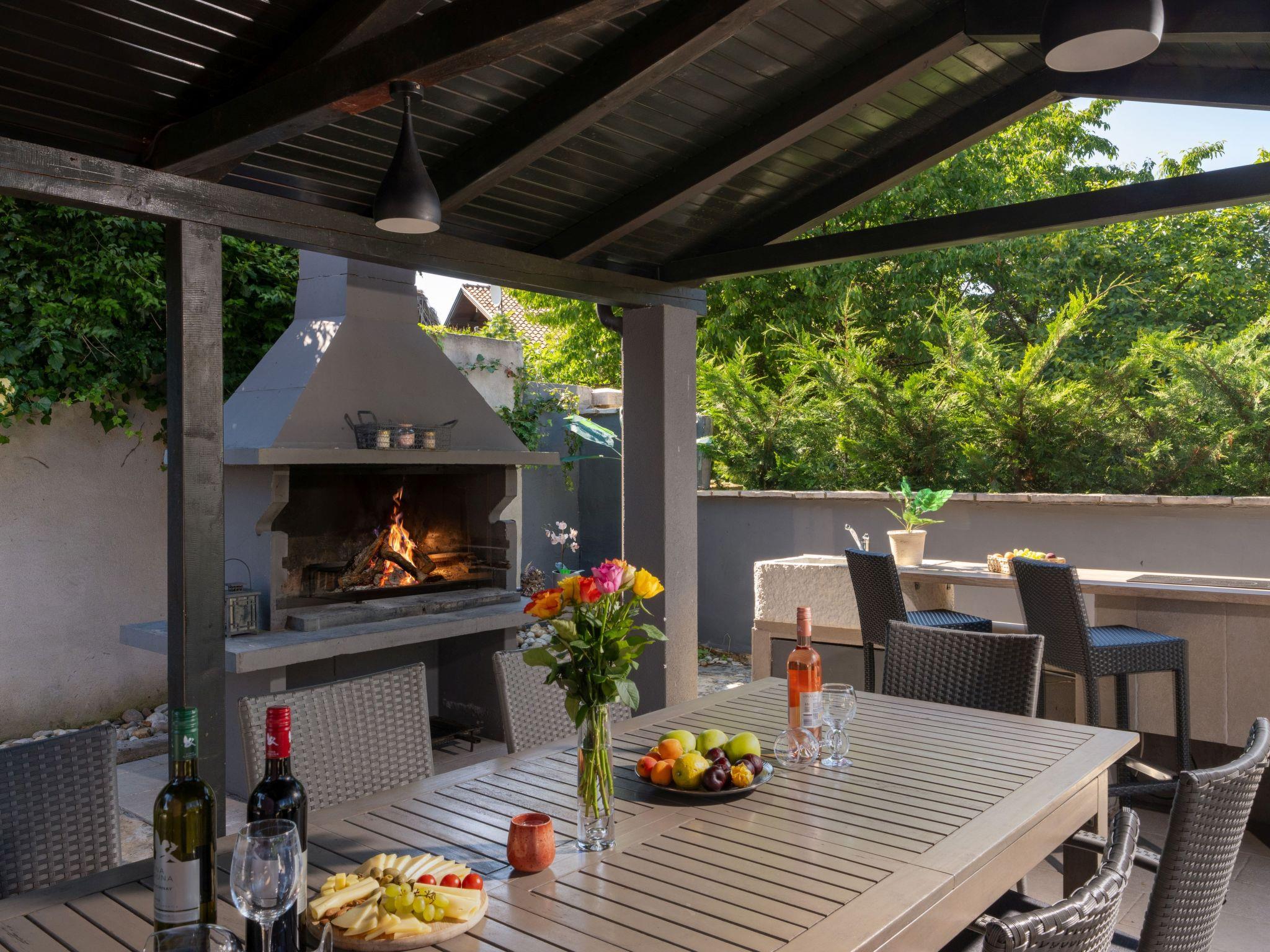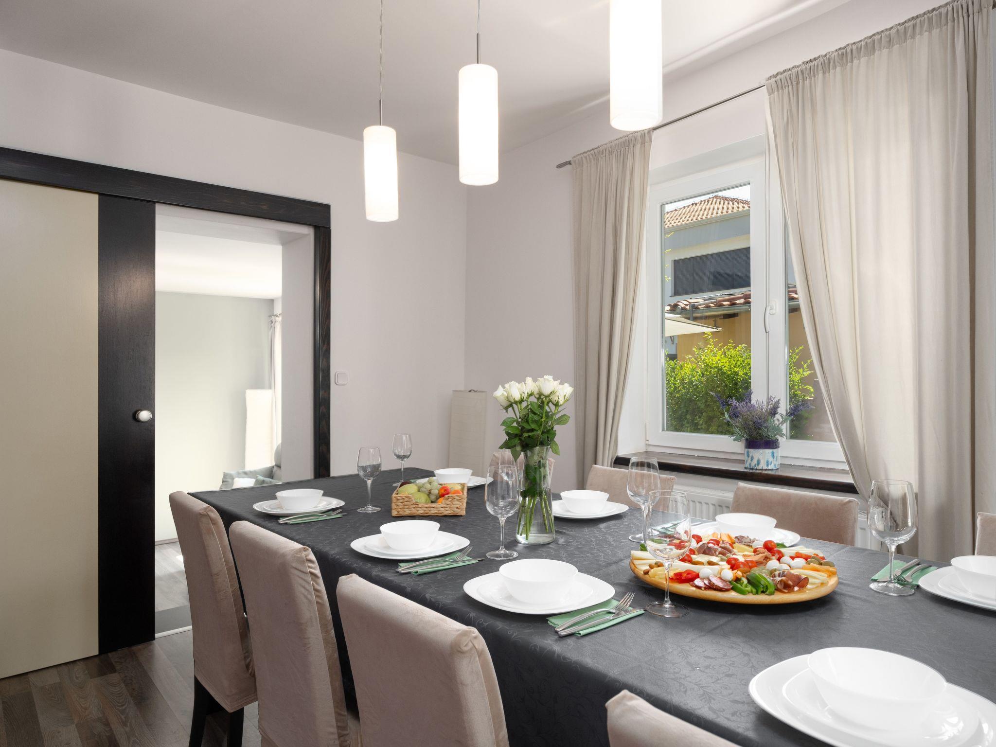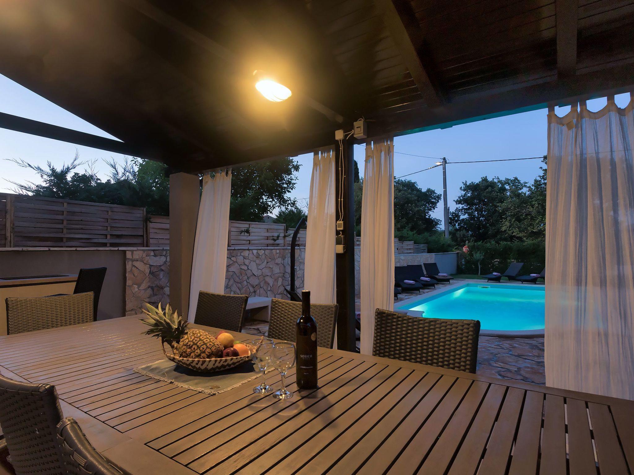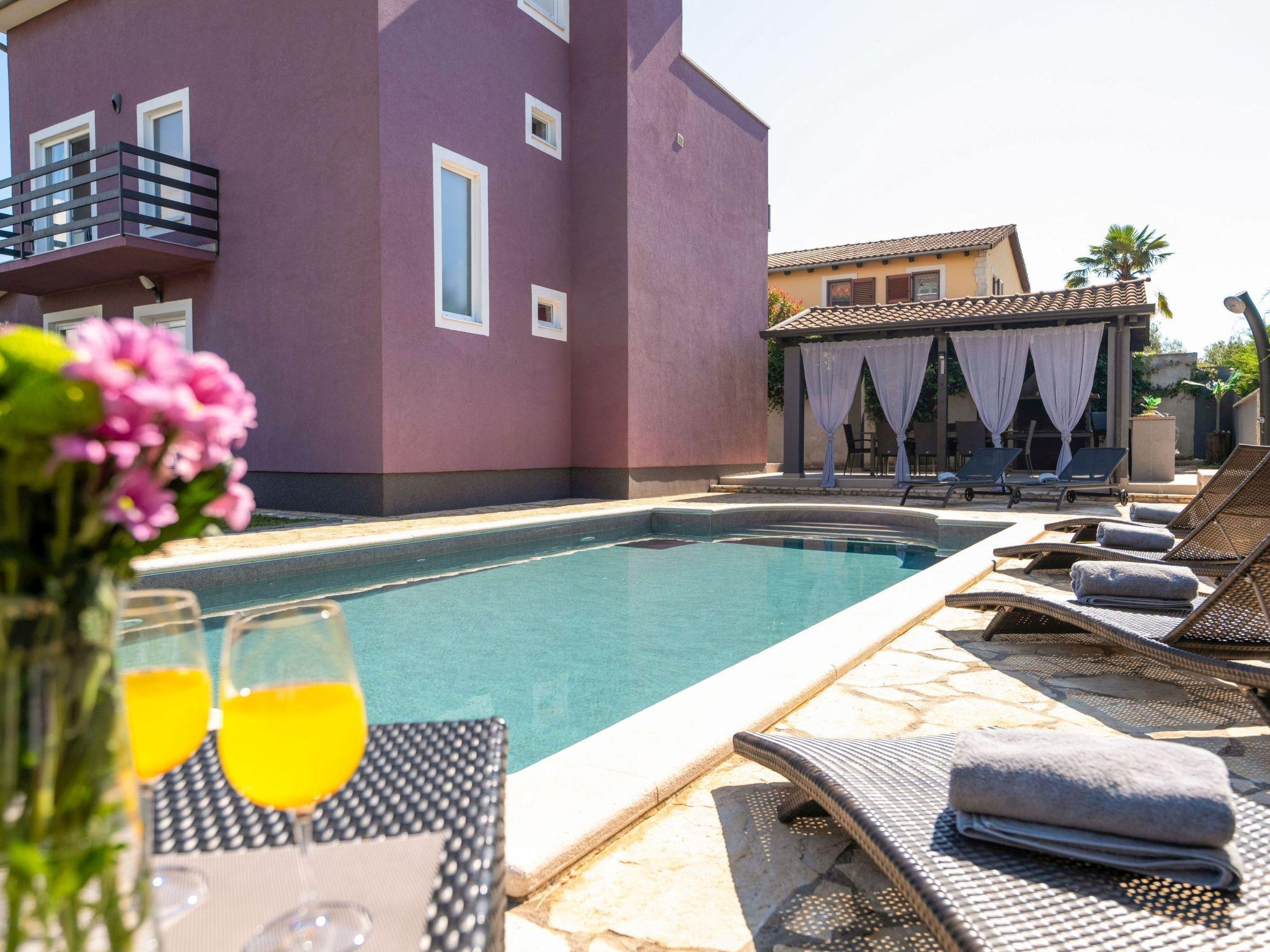Casa Viola is located in the small village Perci, 10 km from Porec, and 4 km from the tourist resort Lanterna with beautiful beaches and various sports facilities. Shops and restaurants are only a few minutes' drive away in town Tar. On the fenced garden of 900 m², guests have at their disposal swimming pool of 32 m², 10 deck chairs with pool towels, a parasol, a covered summer kitchen with a barbecue and a table for outdoor dining, a children's playground,maintained garden and 4 parking places.