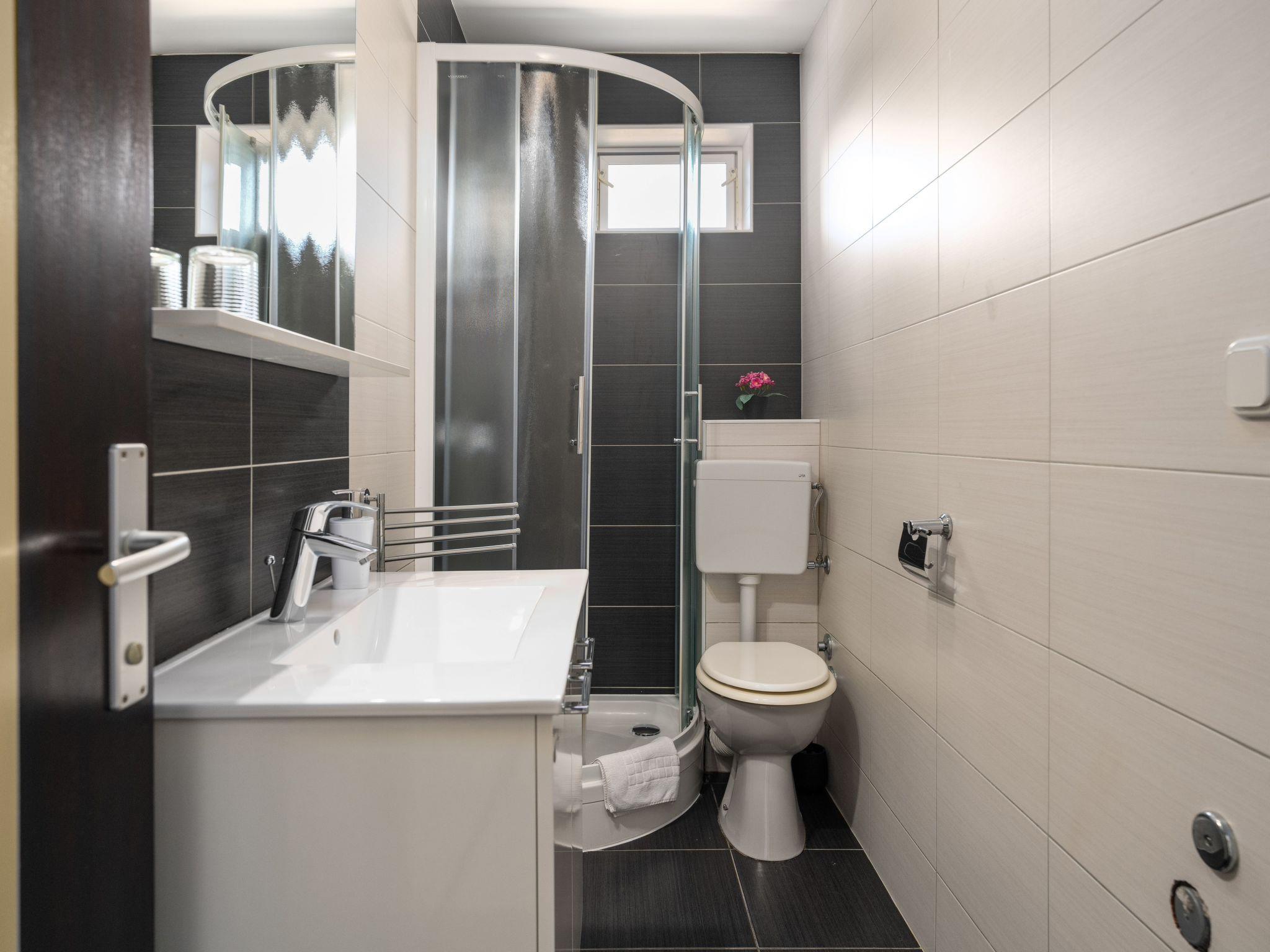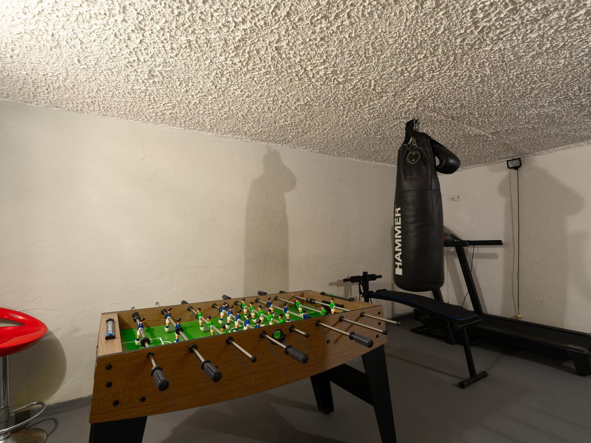 On the first floor of the house there are two double bedrooms, both with access to the balcony, and one with its own shower/toilet, one room with separate beds and a balcony with a beautiful panoramic view, and a bathroom with shower/toilet. in the hallway. In the attic of the house there is a spacious bedroom of 25 m2 with a double bed and a sofa bed for 2 people, a bathroom with a shower/toilet and a nice roof terrace with deck chairs. A common room with a table football and orbitrek fitness machine is also available to guests.