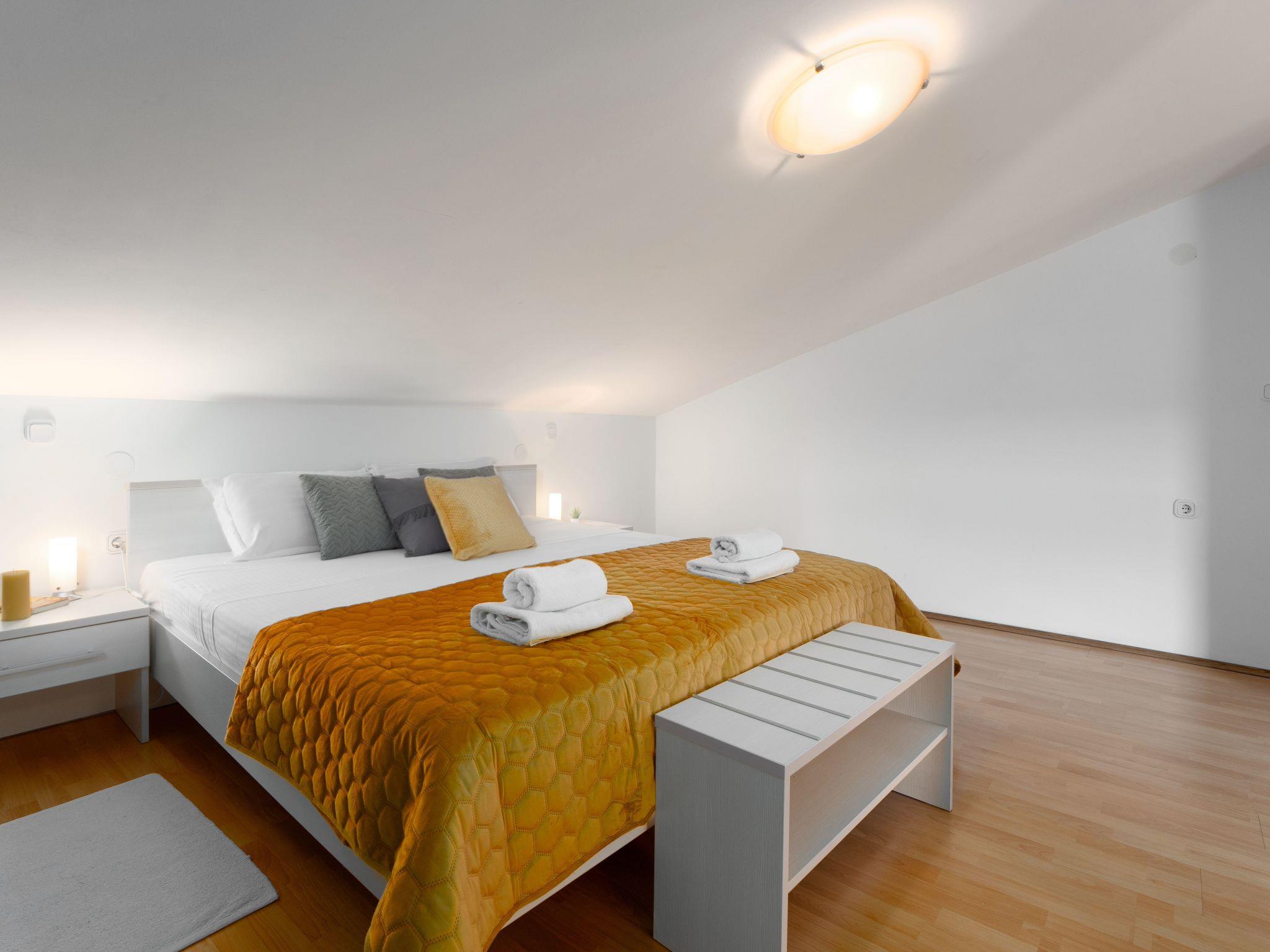 The house has a total area of ??280 m² on three floors, is fully air-conditioned and is suitable for 12 persons. On the ground floor there is a fully equipped kitchen with a dining table, a living room with an exit to the terrace with a sofa, one double bedroom, one bathroom with a shower/toilet, one bathroom with a bathtub and a washing machine, and a separate toilet.