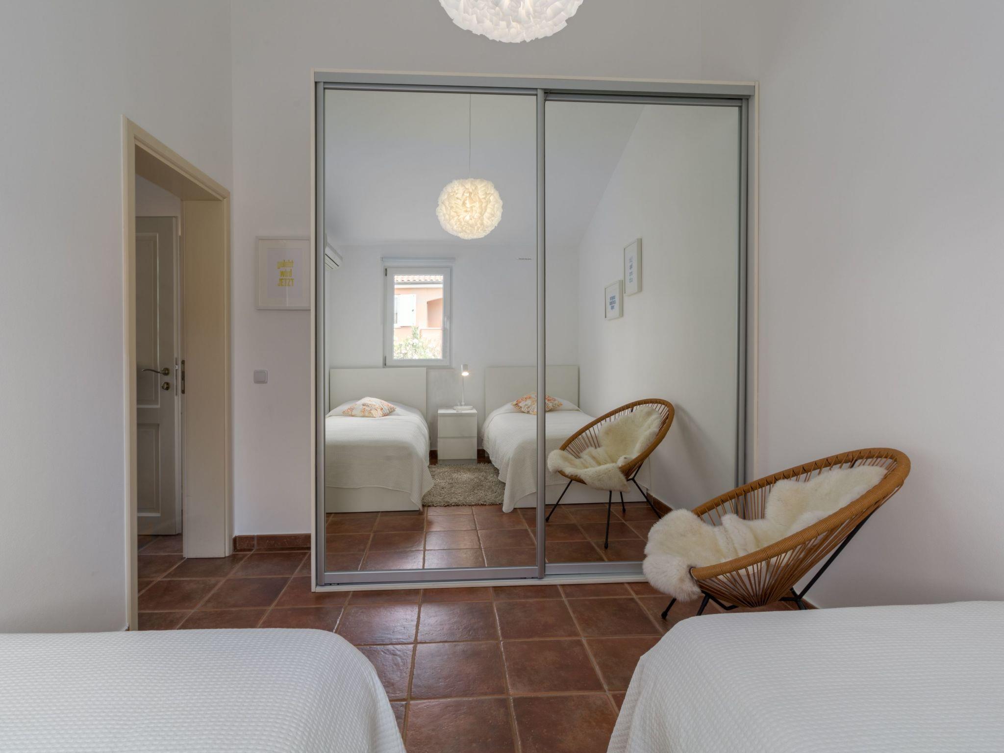 Holiday home for 4 people with 90m2 of living space. It is on 2 floors and consists of a living room with access to the garden, a fully equipped kitchen with dining area and access to the covered terrace with seating, barbecue and sun loungers, as well as a separate toilet. On the upper floor is the modern bedroom with double bed and exit to the covered balcony with seating set, bedroom with 2 single beds and the bathroom with shower/WC in the hallway.