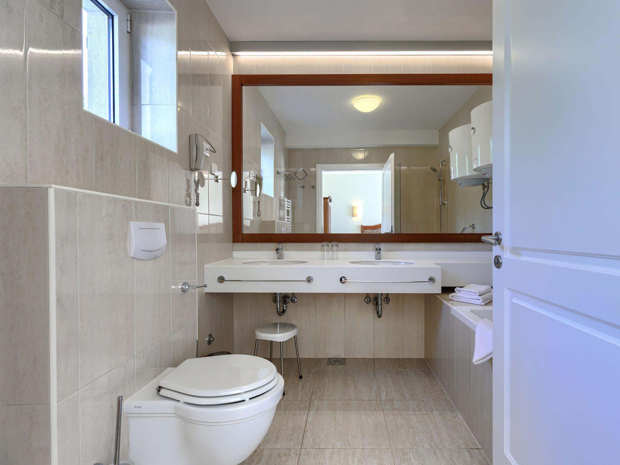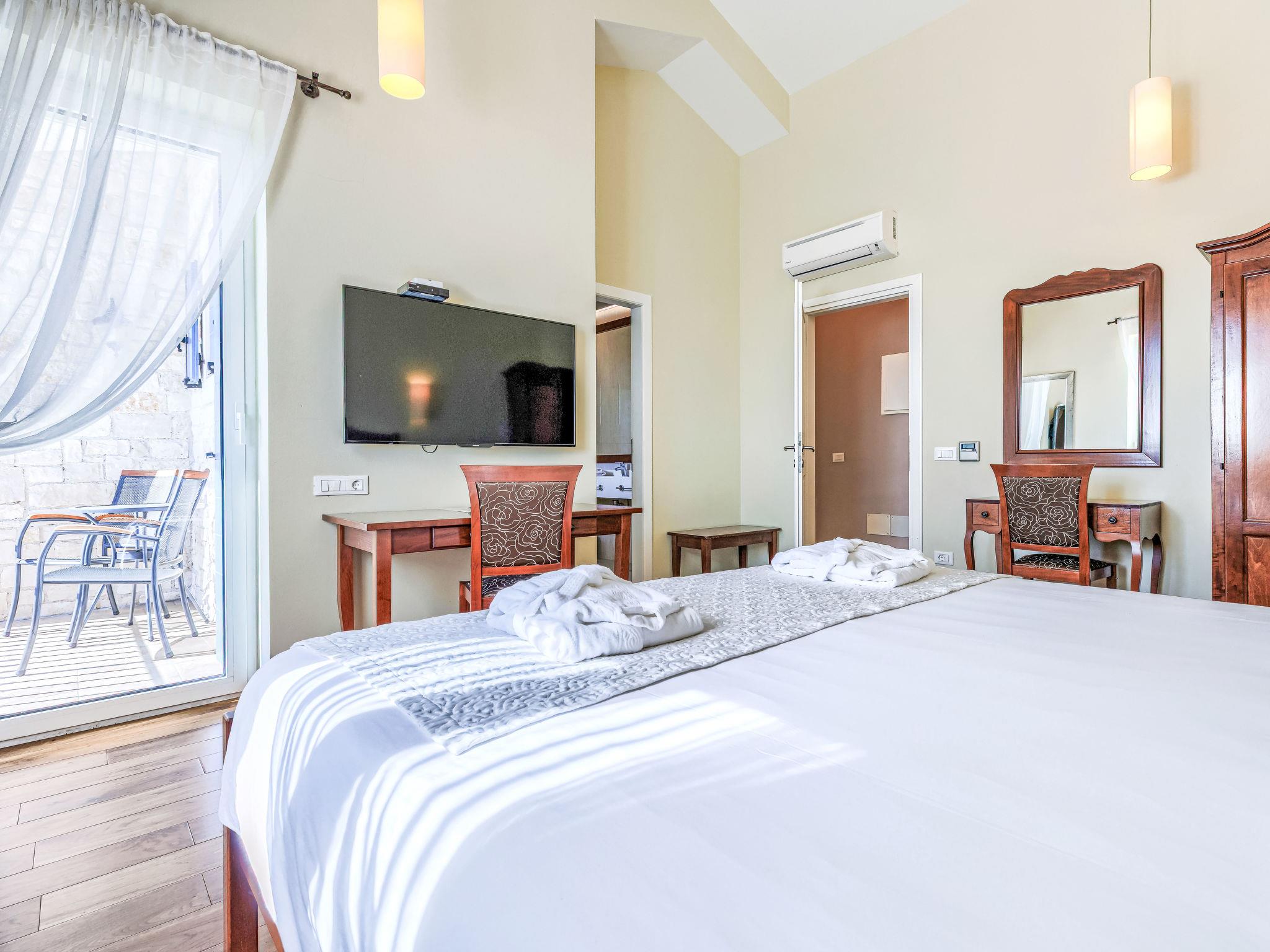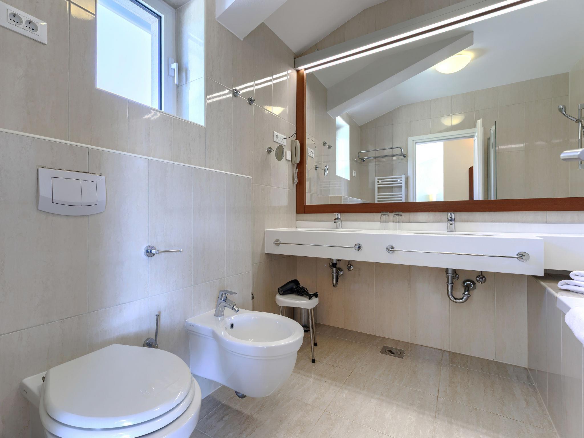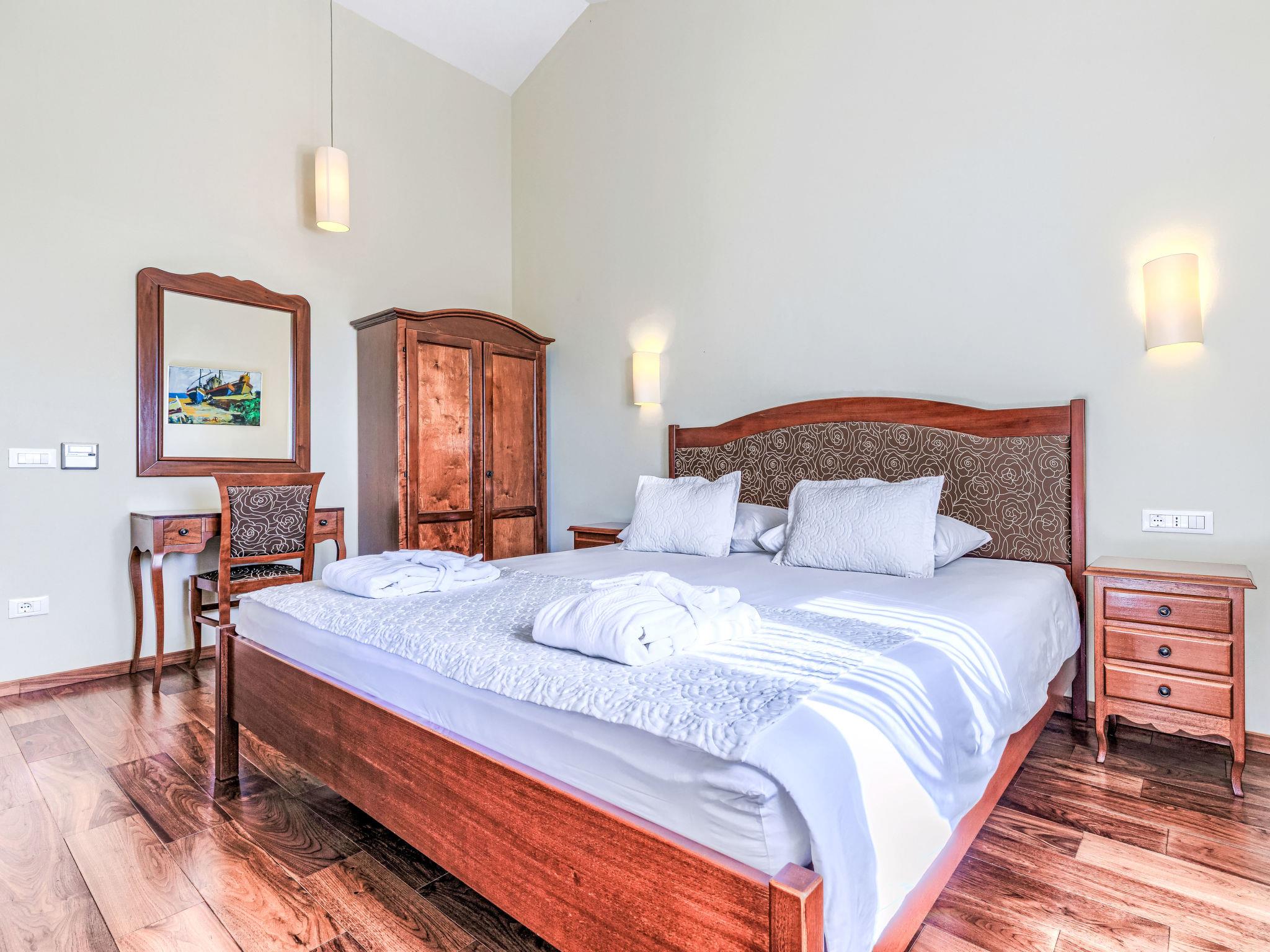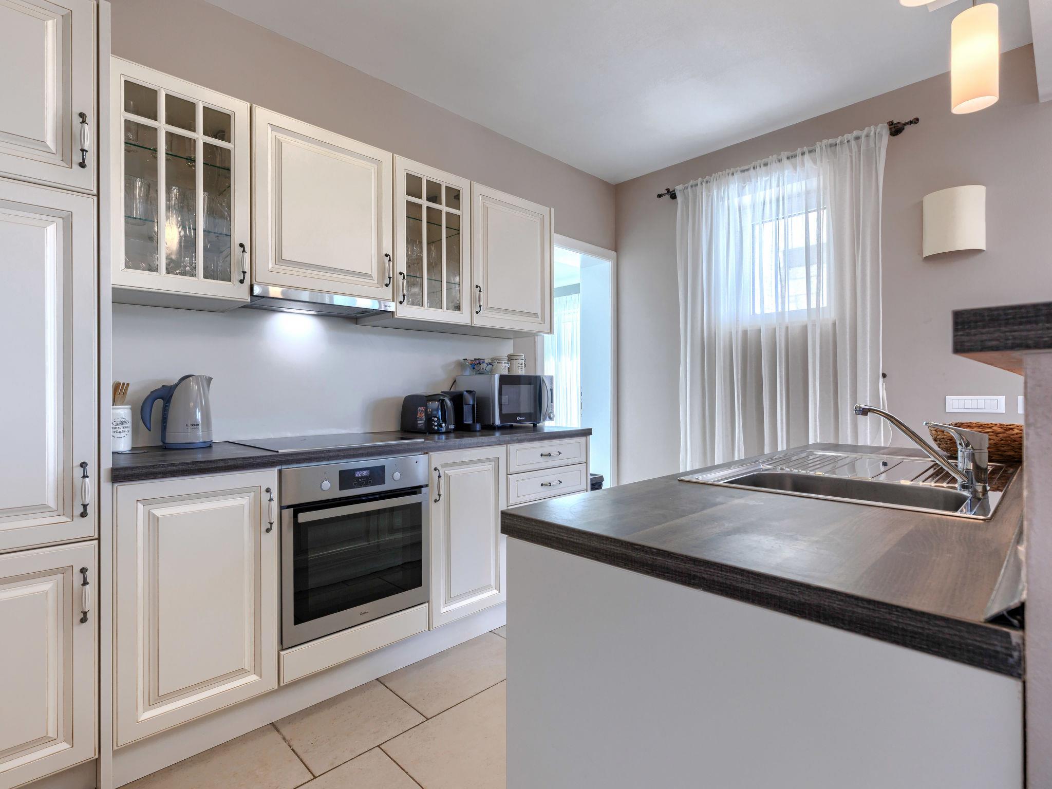 6-room villa 250 m2 on 2 levels. Tasteful and cosy furnishings: living/dining room with 1 double sofabed (180 cm, length 200 cm), open-hearth fireplace (only for decoration), satellite TV and air conditioning. Exit to the terrace. 1 room with 1 french bed (200 cm, length 210 cm), bath/WC, double hand-basin, satellite TV and air conditioning. Exit to the swimming pool. Open kitchen (oven, dishwasher, 4 ceramic glass hob hotplates, kettle, microwave, freezer, electric coffee machine). Sep. WC. Upper floor: 1 room with 1 french bed (200 cm, length 210 cm), bath/bidet/WC, double hand-basin, satellite TV and air conditioning. Exit to the terrace. 1 room with 1 french bed (200 cm, length 210 cm), bath/WC, double hand-basin, satellite TV and air conditioning. Exit to the terrace. 1 room with 1 french bed (200 cm, length 210 cm), bath/bidet/WC, double hand-basin, satellite TV and air conditioning. Exit to the terrace. Floor heating, forced-air heating. 2 terraces 3 m2, terrace 12 m2. Terrace furniture, deck chairs. Distant view of the sea. Facilities: safe, iron, mosquito net, children's high chair, baby cot, hair dryer. Internet (WiFi, free). Maximum 1 pet/ dog allowed.
