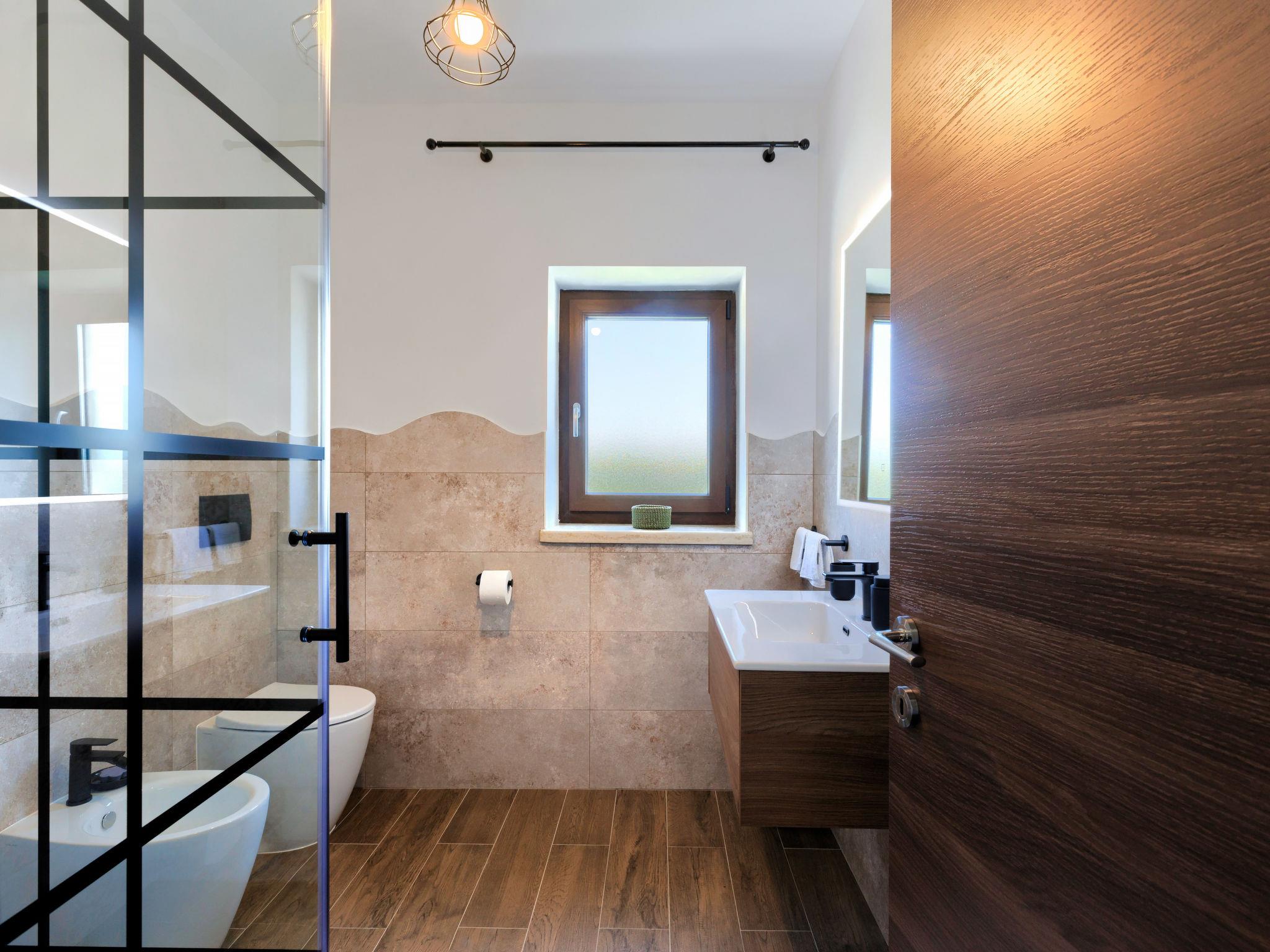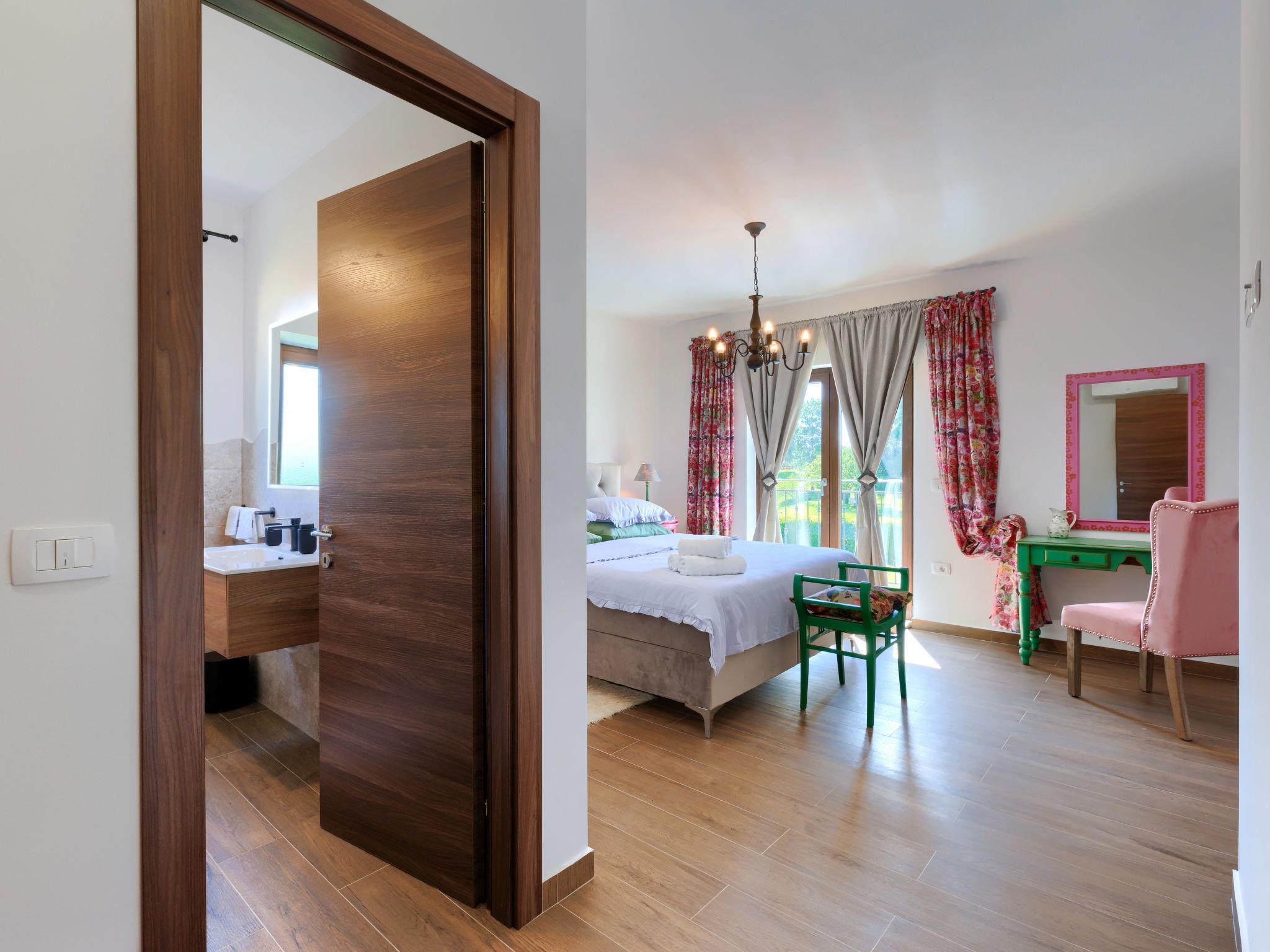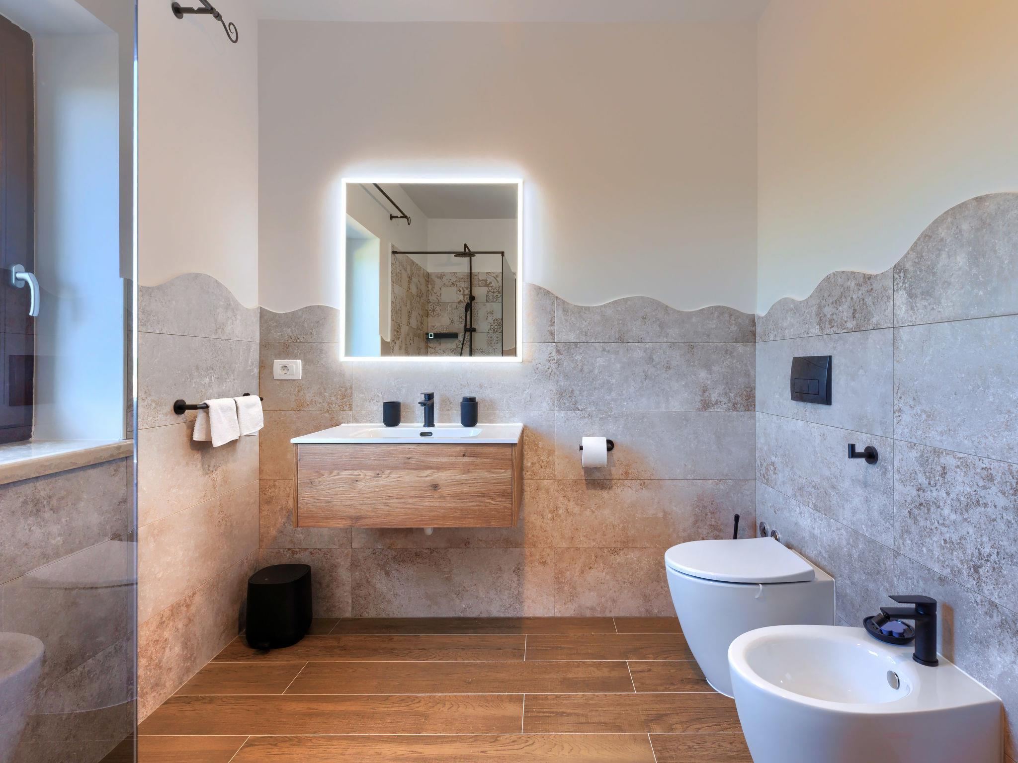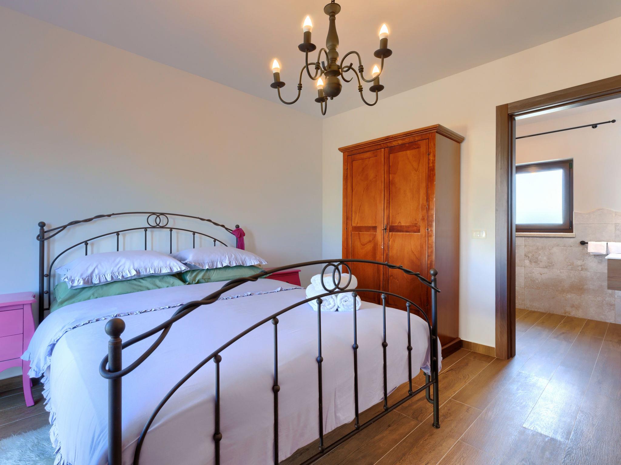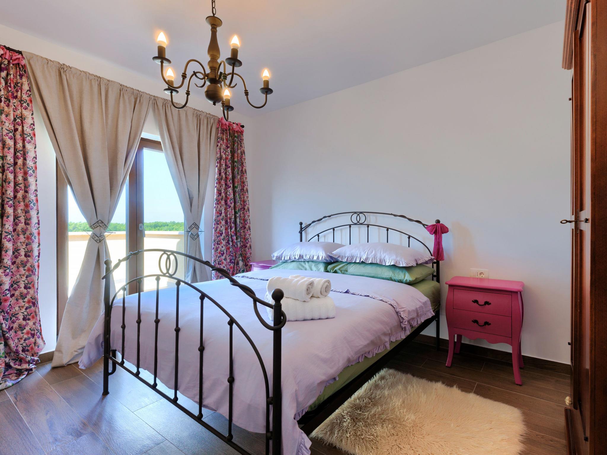 Large, beautiful single-family house "Gasparini", 2 storeys, built in 2022. In the hamlet Vranici 2 km from the centre of Višnjan, in a quiet, sunny position, 15 km from the sea, in the countryside. Private: property 3'000 m2 (fenced) with lawn and trees, swimming pool (10 x 4 m, depth 150 cm, seasonal availability: 01.May. - 15.Oct.) with internal staircase and salt-electrolysis pool-cleaning system. Outdoor shower, arbour, terrace (60 m2), garden furniture, barbecue, pool maintenance by the owner/gardener. In the house: internet access, burglar alarm system, washing machine. Parking (for 4 cars) at the house on the premises. Shop 2 km, supermarket 2 km, restaurant 2 km, bus stop 7.1 km, pebble beach 15 km. Please note: airfield 50 km from the property.