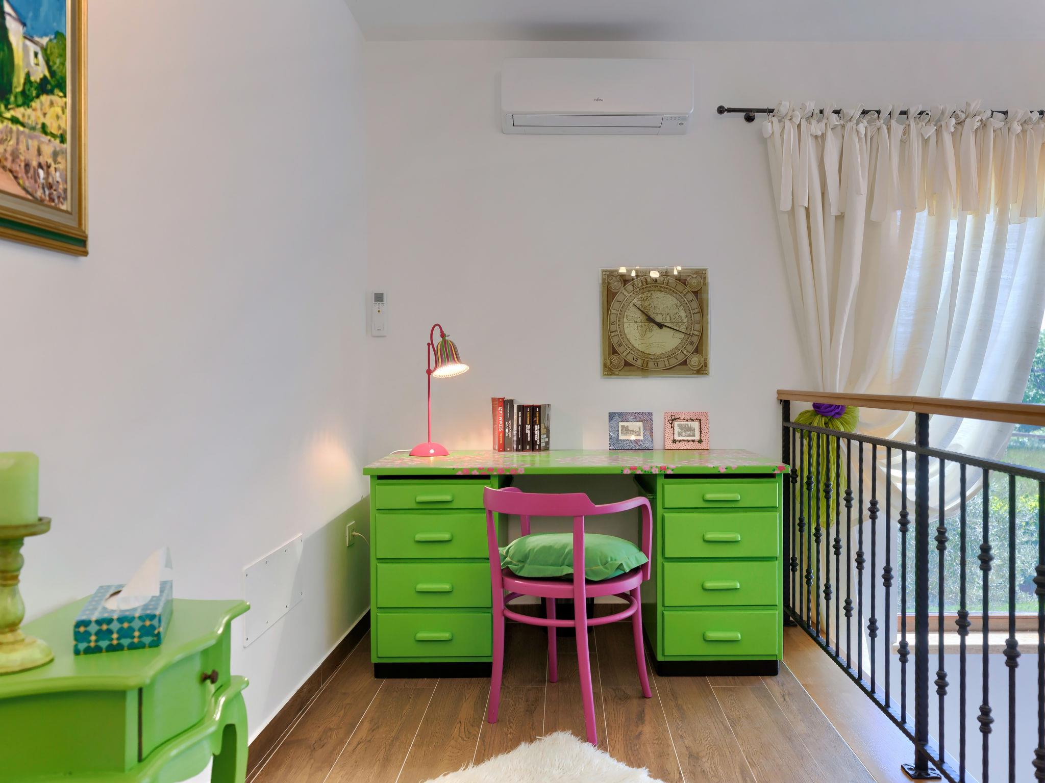 5-room house 240 m2 on 2 levels. Comfortable and beautiful furnishings: living/dining room with satellite TV and air conditioning. Exit to the terrace. 1 room with 1 french bed (160 cm, length 200 cm), shower/WC and air conditioning. Exit to the terrace. Open kitchen (oven, dishwasher, 4 ceramic glass hob hotplates, toaster, kettle, freezer, electric coffee machine). Shower/WC. Upper floor: 2 rooms, each room with 1 double bed (2 x 80 cm, length 200 cm), shower/WC and air conditioning. Exit to the terrace. 1 room with 1 double bed (2 x 80 cm, length 200 cm), air conditioning. Exit to the balcony. Forced-air heating. Balcony 3 m2, terrace 35 m2, terrace 10 m2. Terrace furniture, balcony furniture, deck chairs (8). Beautiful panoramic view of the countryside and the forest. Facilities: safe, iron, children's high chair, baby cot, hair dryer. Internet (WiFi, free).