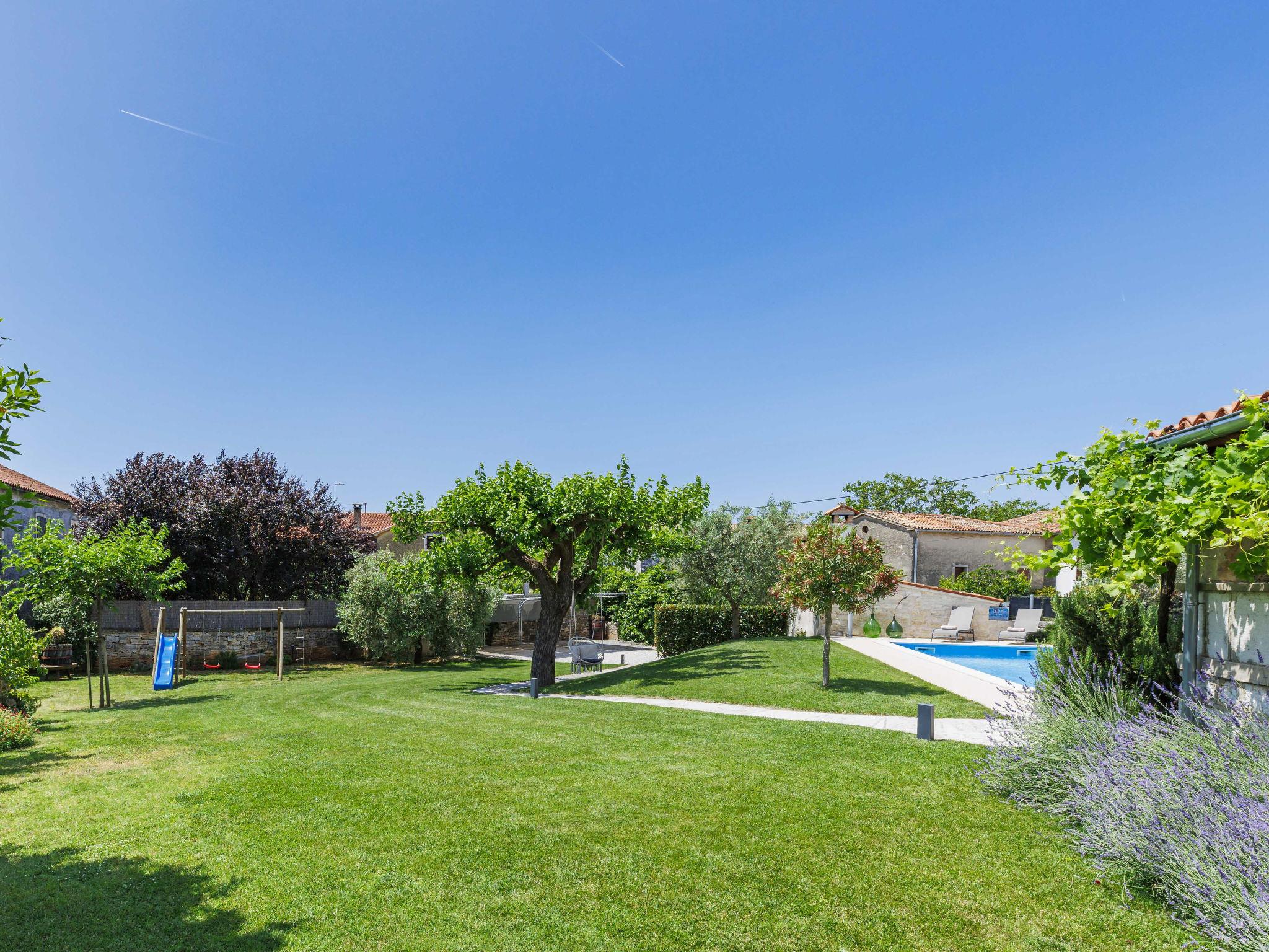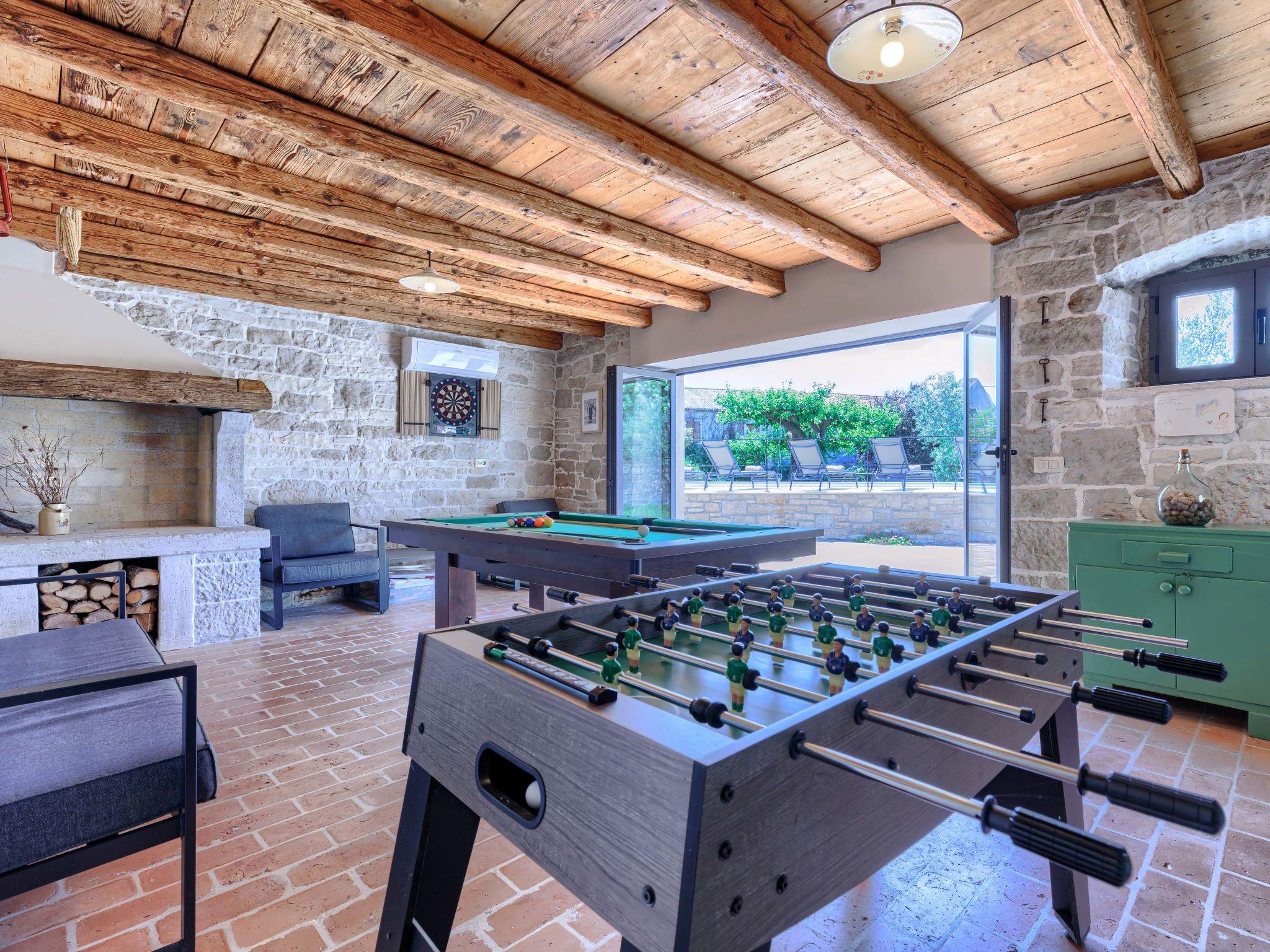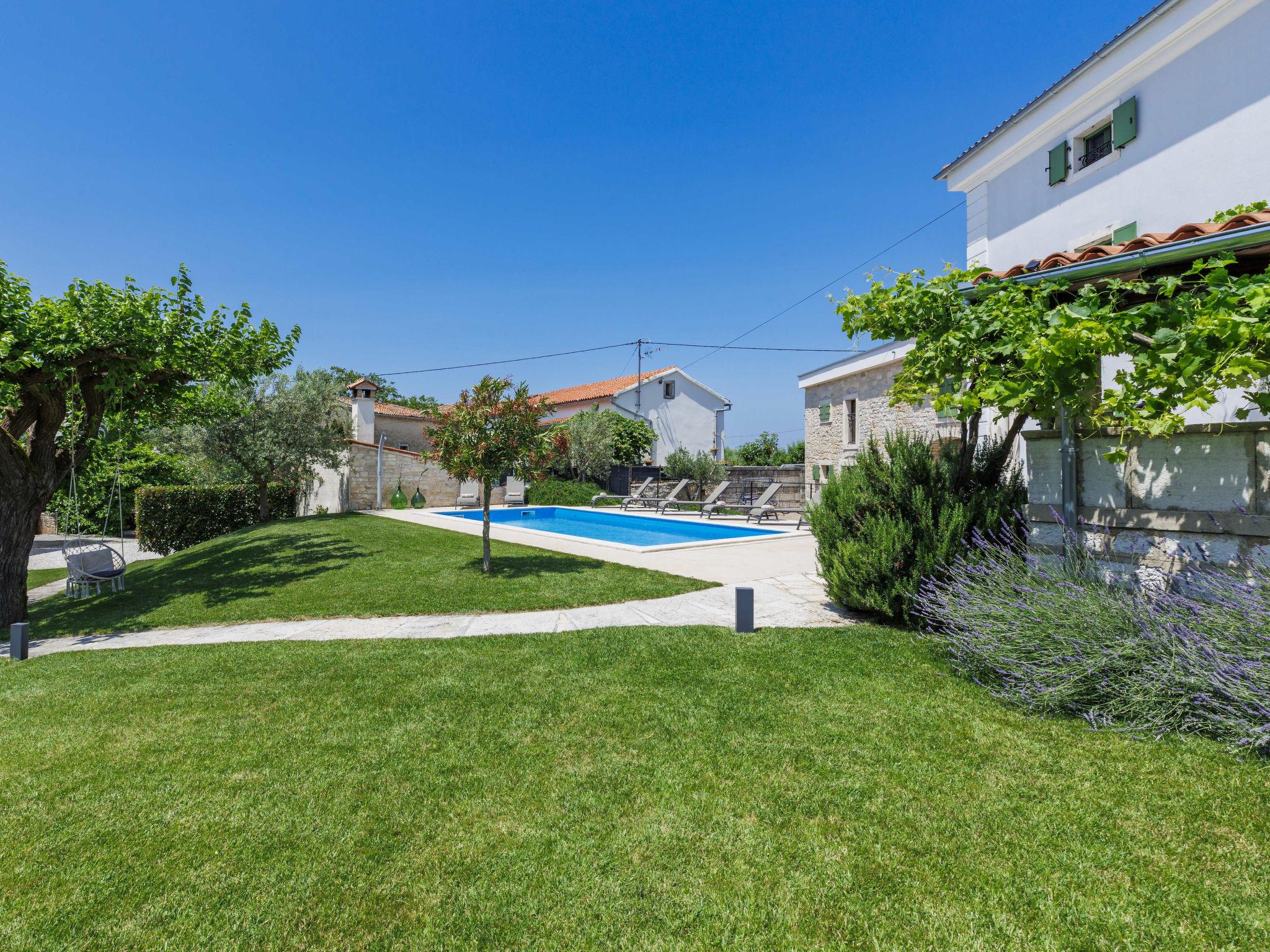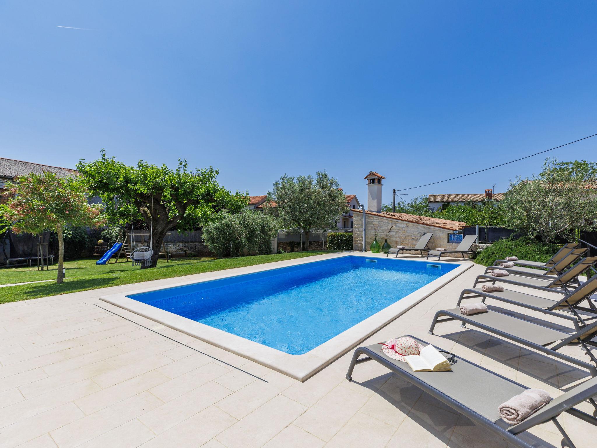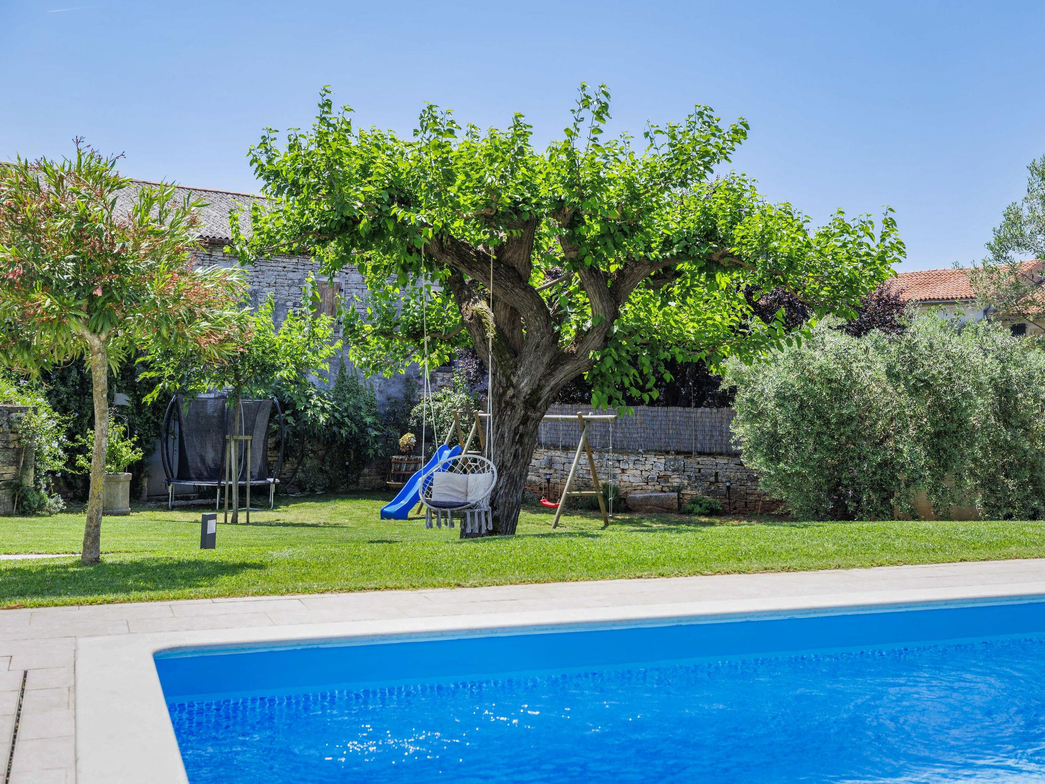 Beautiful single-family house "Villa Radovani", 3 storeys, from the 19th century, renovated in 2019. In the hamlet Radovani 5 km from the centre of Višnjan, 15 km from the centre of Porec, in a quiet, sunny position, 15 km from the sea. Private: property 1'500 m2 (fenced), garden with lawn, swimming pool angular (8 x 4 m, depth 150 cm, seasonal availability: 01.May. - 15.Oct.) with internal staircase. Outdoor shower, garden furniture, children's playground (swing). In the house: internet access, billiard table, table football, trampoline, washing machine. Roofed, parking (for 3 cars) at the house on the premises. Shop 5 km, restaurant 2.5 km, bus stop 500 m, pebble beach 15 km. Nearby attractions: Aquapark 17 km. Please note: airfield 50 km from the property.
