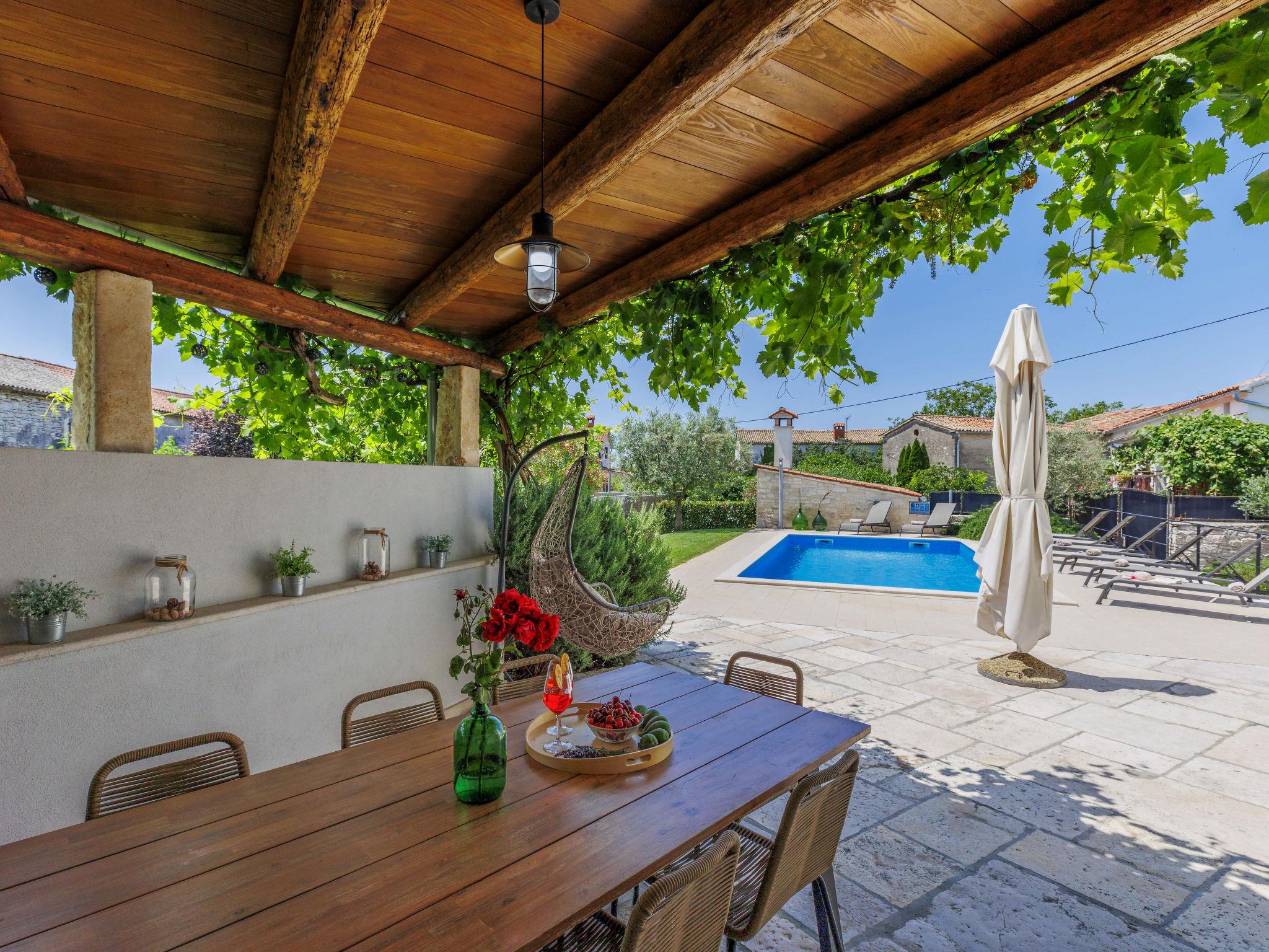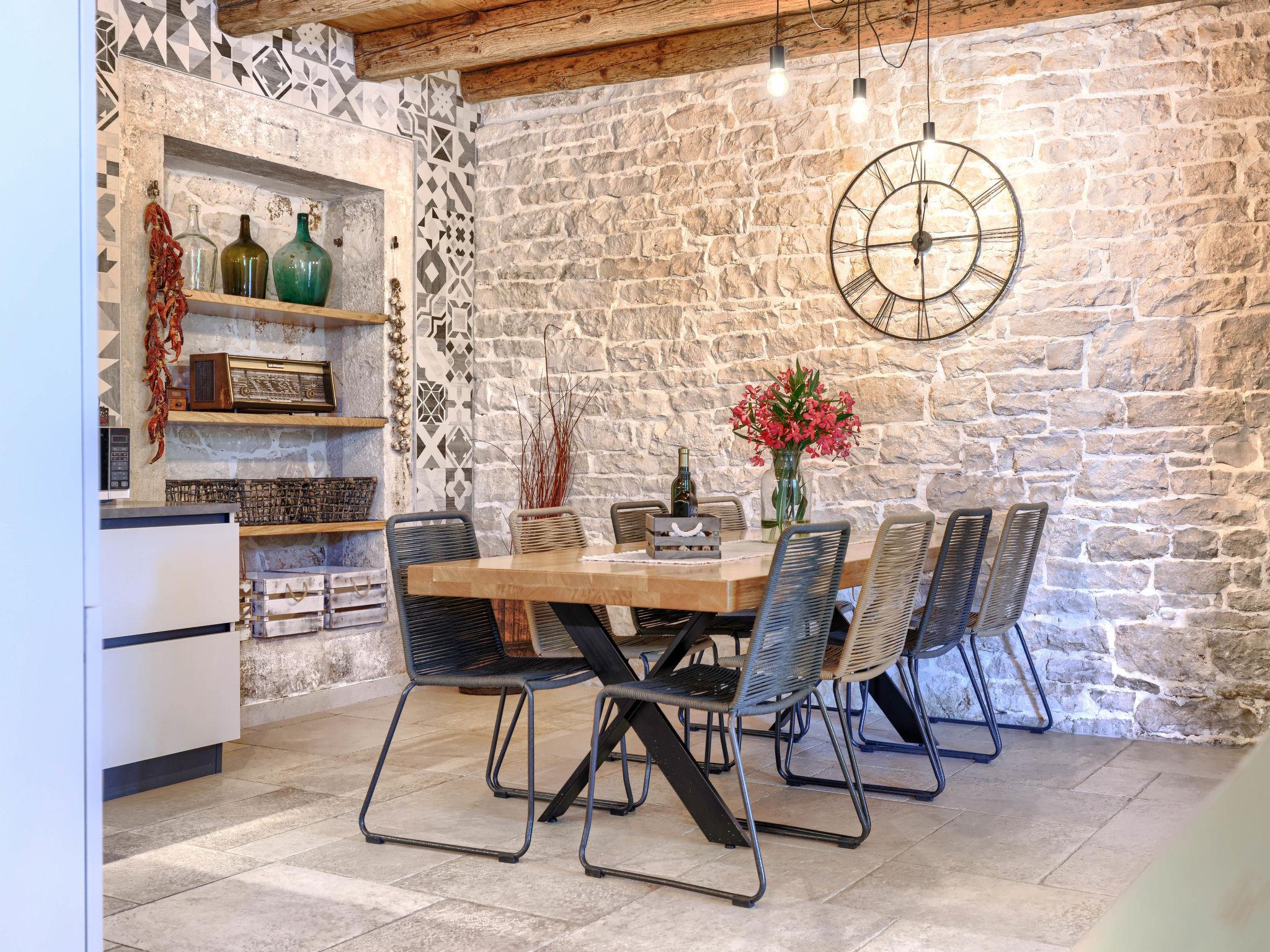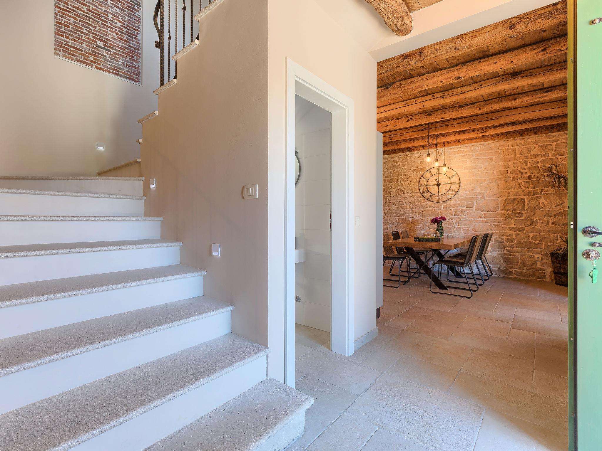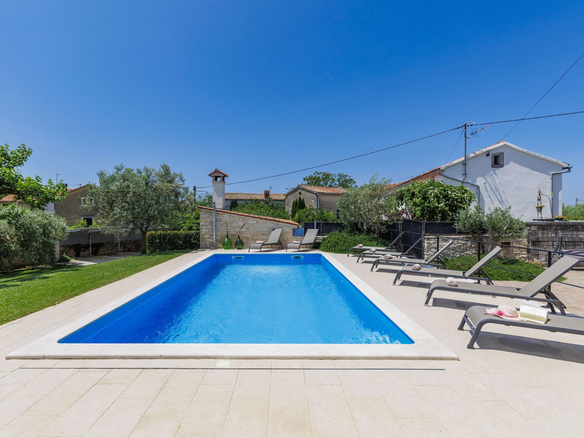 Beautiful single-family house "Villa Radovani", 3 storeys, from the 19th century, renovated in 2019. In the hamlet Radovani 5 km from the centre of Višnjan, 15 km from the centre of Porec, in a quiet, sunny position, 15 km from the sea. Private: property 1'500 m2 (fenced), garden with lawn, swimming pool angular (8 x 4 m, depth 150 cm, seasonal availability: 01.May. - 15.Oct.) with internal staircase. Outdoor shower, garden furniture, children's playground (swing). In the house: internet access, billiard table, table football, trampoline, washing machine. Roofed, parking (for 3 cars) at the house on the premises. Shop 5 km, restaurant 2.5 km, bus stop 500 m, pebble beach 15 km. Nearby attractions: Aquapark 17 km. Please note: airfield 50 km from the property.
