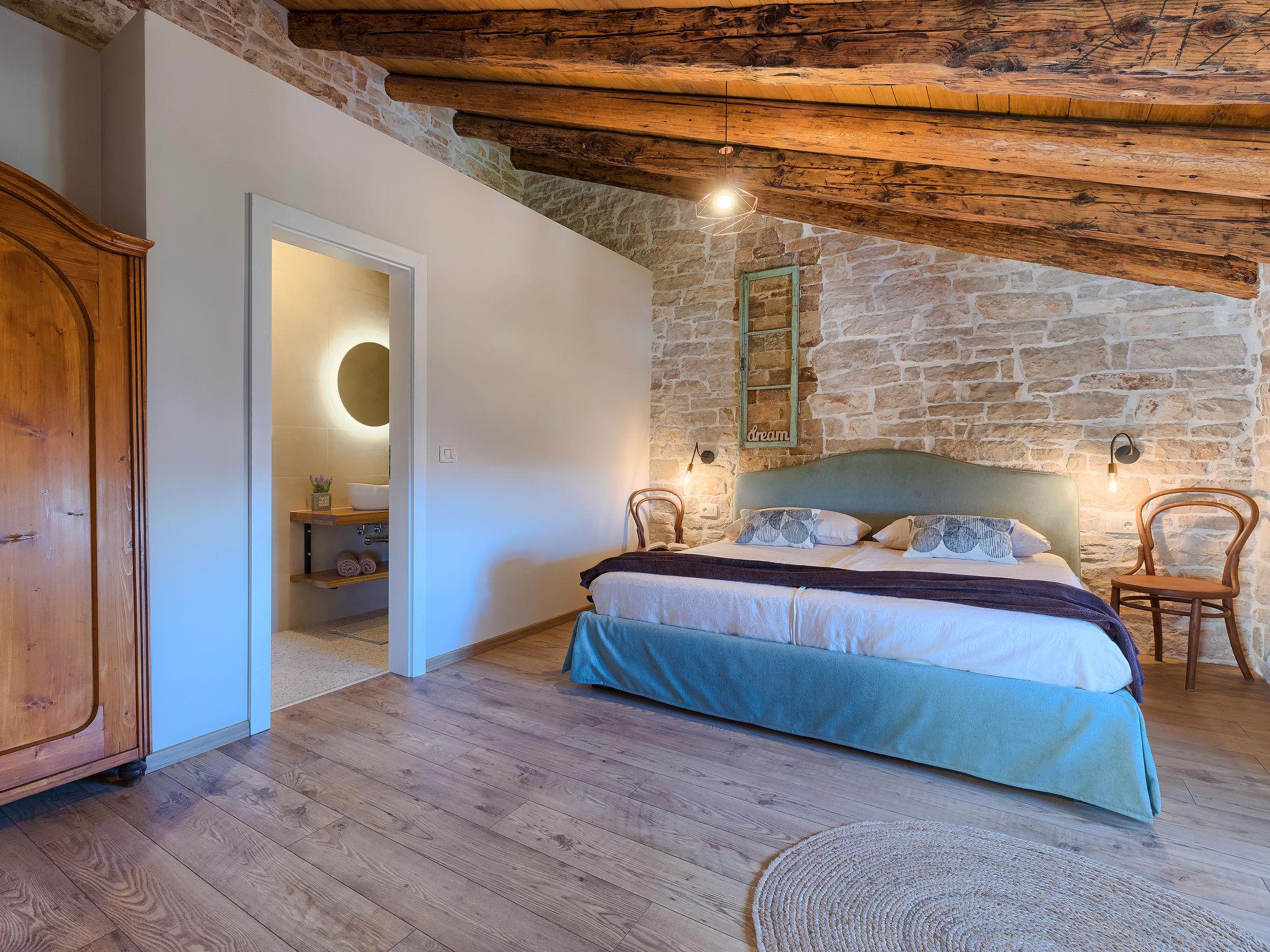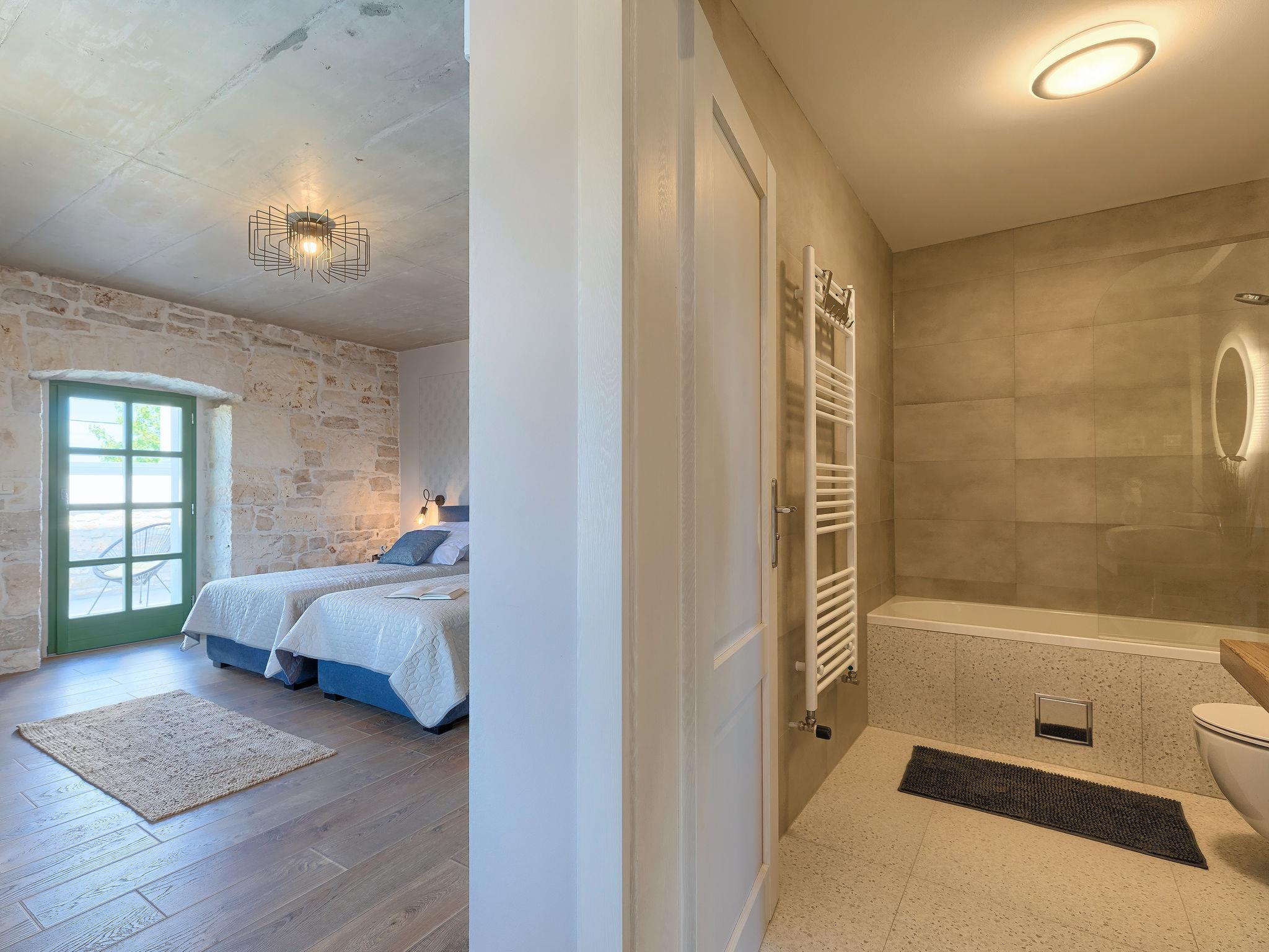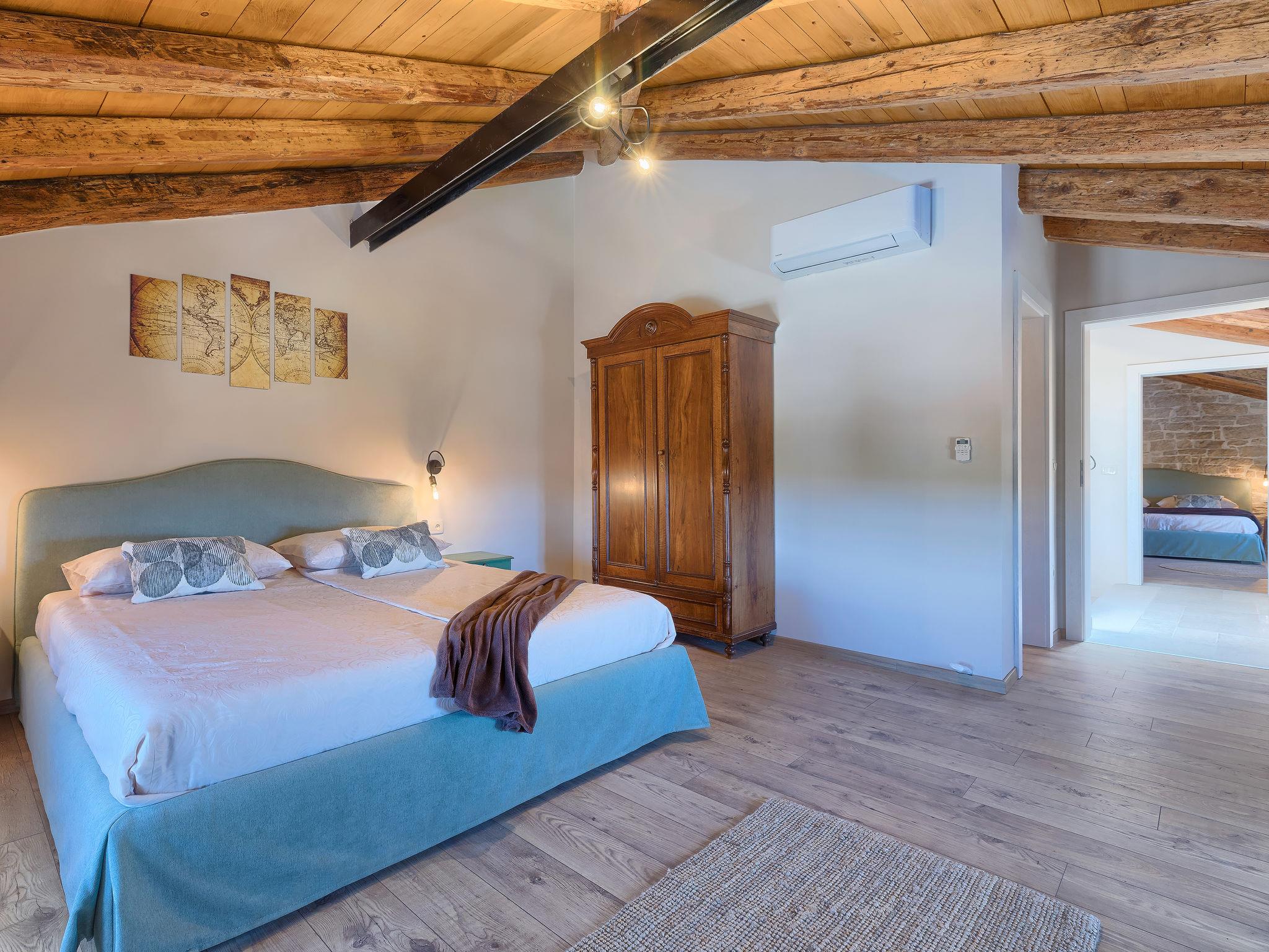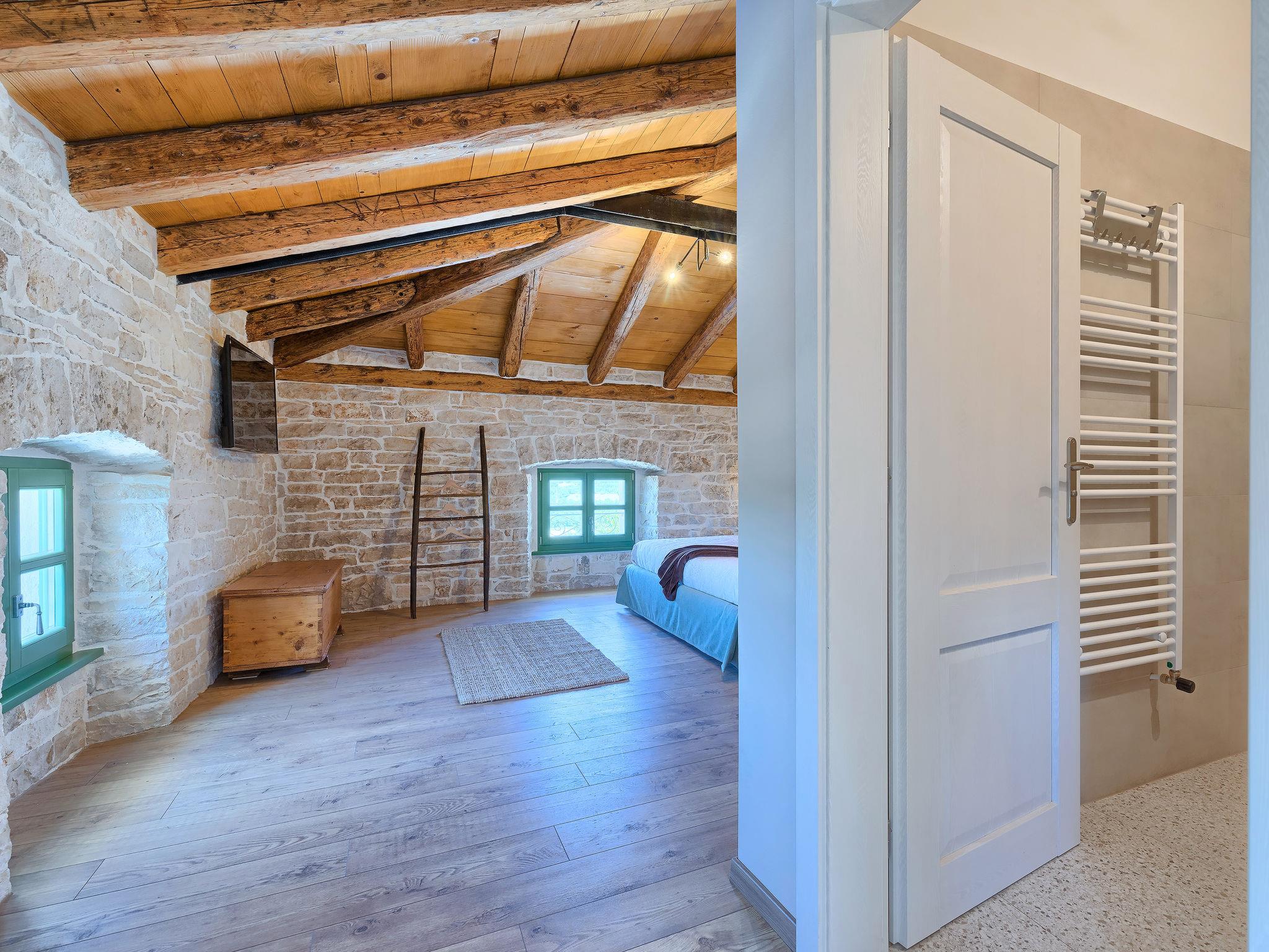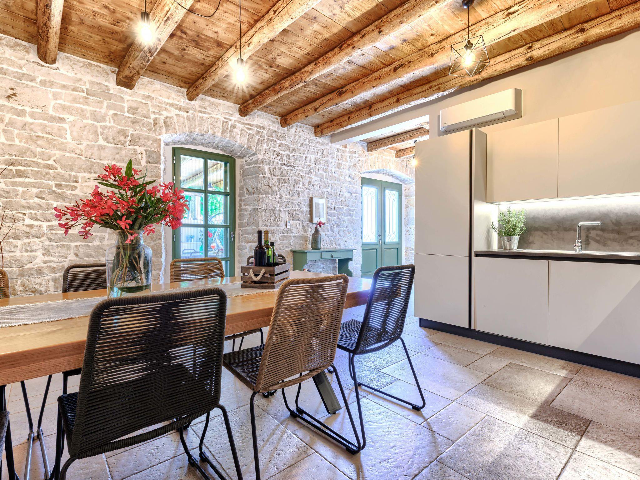 Beautiful single-family house "Villa Radovani", 3 storeys, from the 19th century, renovated in 2019. In the hamlet Radovani 5 km from the centre of Višnjan, 15 km from the centre of Porec, in a quiet, sunny position, 15 km from the sea. Private: property 1'500 m2 (fenced), garden with lawn, swimming pool angular (8 x 4 m, depth 150 cm, seasonal availability: 01.May. - 15.Oct.) with internal staircase. Outdoor shower, garden furniture, children's playground (swing). In the house: internet access, billiard table, table football, trampoline, washing machine. Roofed, parking (for 3 cars) at the house on the premises. Shop 5 km, restaurant 2.5 km, bus stop 500 m, pebble beach 15 km. Nearby attractions: Aquapark 17 km. Please note: airfield 50 km from the property.