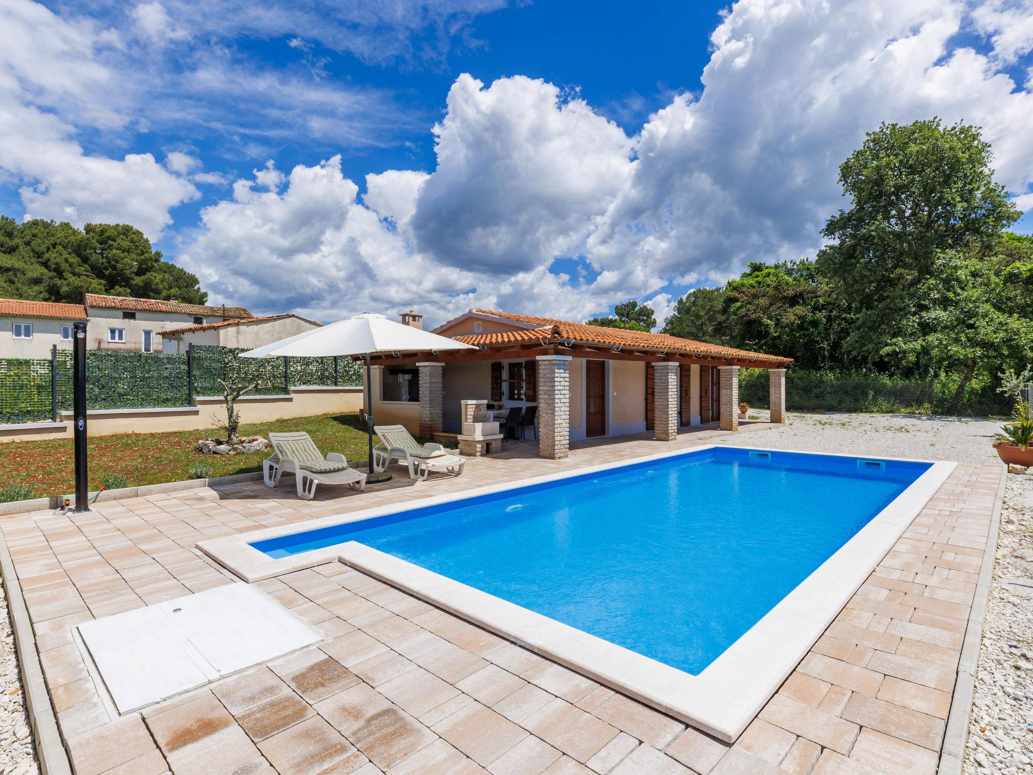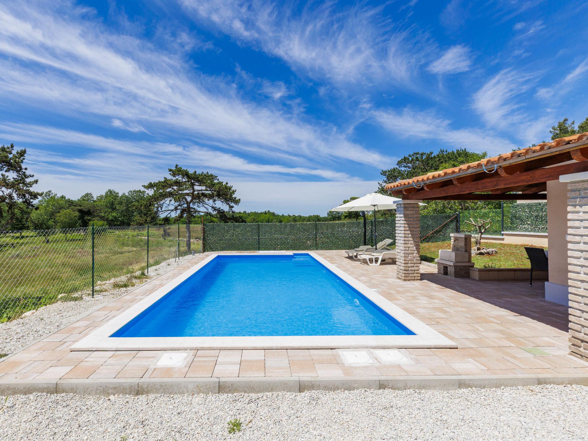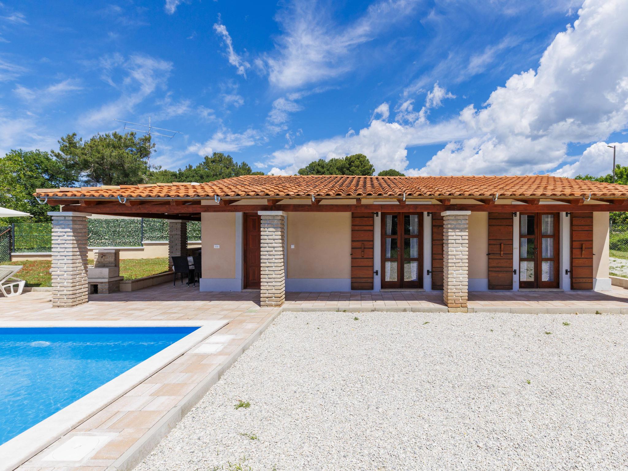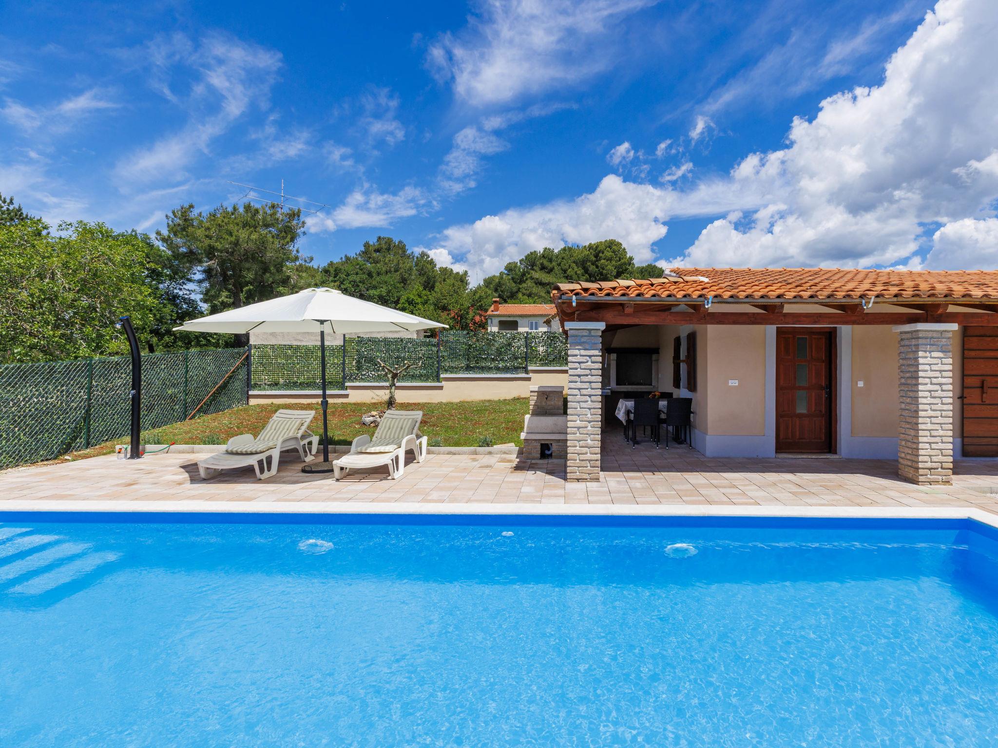 Single-family house "Santina", built in 2023. In the hamlet Cvitani 8 km from the centre of Višnjan, 13 km from the centre of Kaštelir, 15 km from the centre of Porec, 15 km from the sea. Private: property 600 m2, swimming pool (9 x 4 m, depth 135 cm, seasonal availability: 01.May. - 01.Oct.) with internal staircase. Outdoor shower, terrace (28 m2), garden furniture, barbecue, pool maintenance by the owner/gardener. In the house: internet access, washing machine. Parking (for 2 cars) at the house on the premises. Shop 8 km, restaurant 8 km, bus stop 4.1 km, rocky beach 15 km.