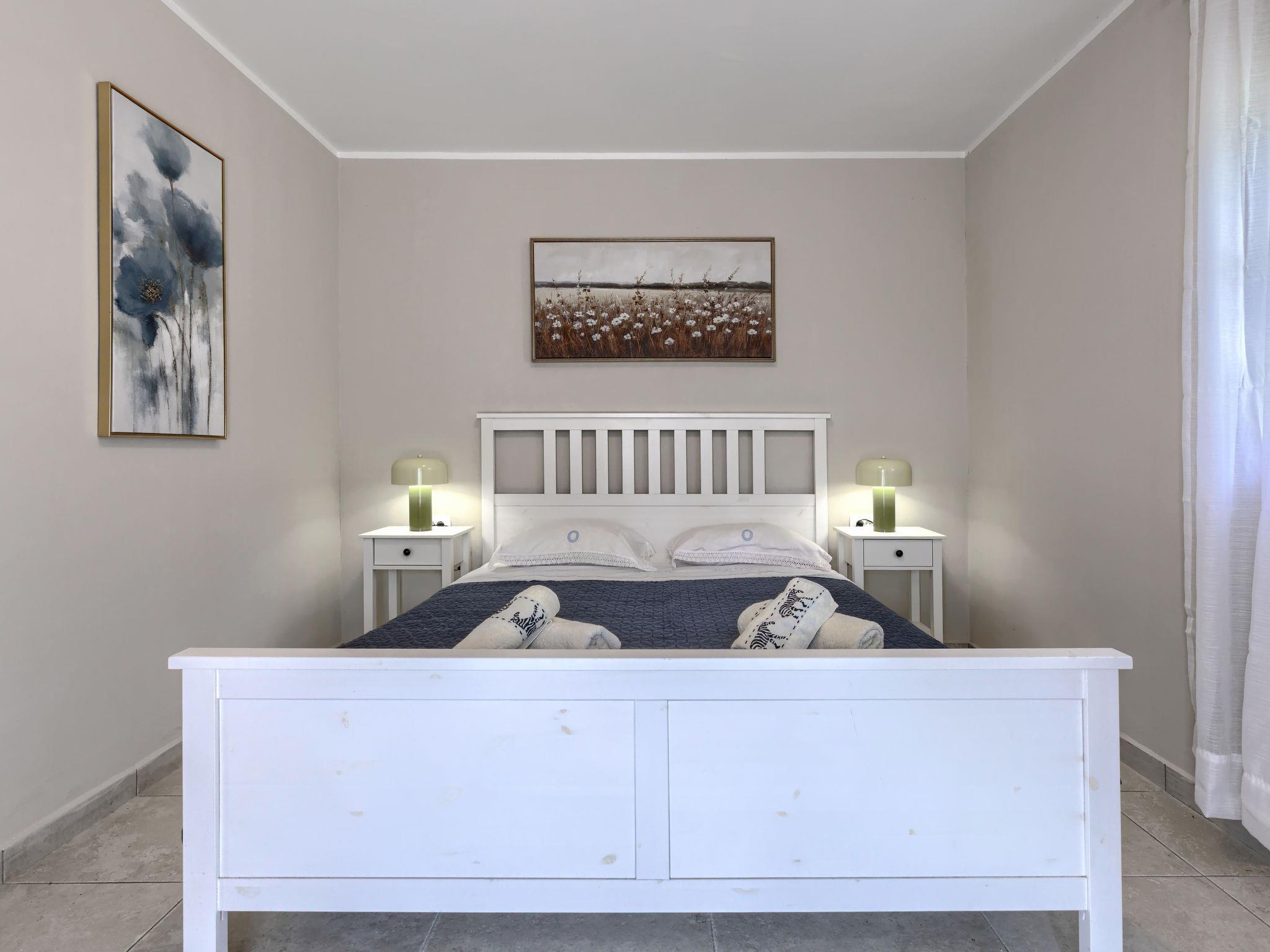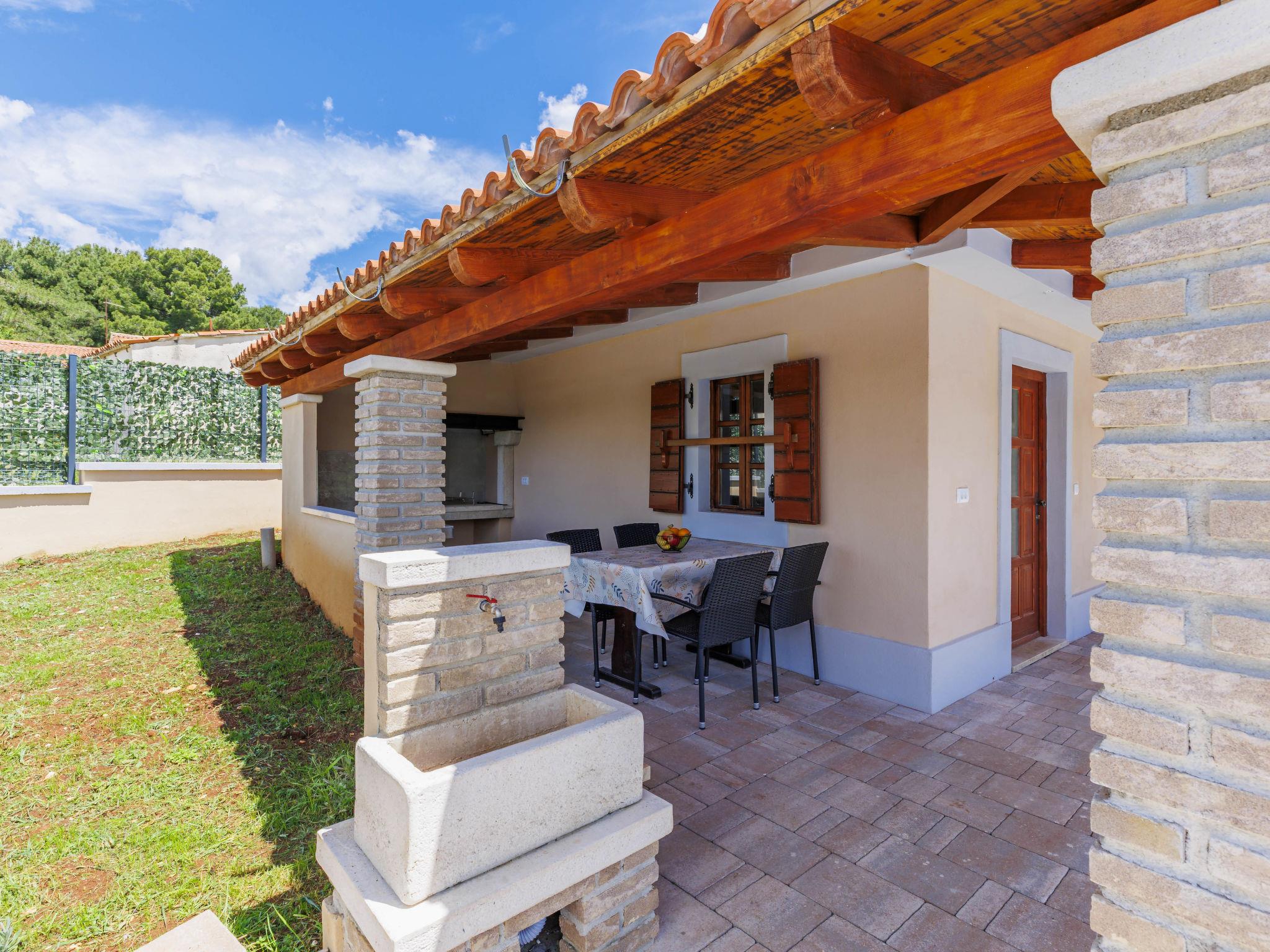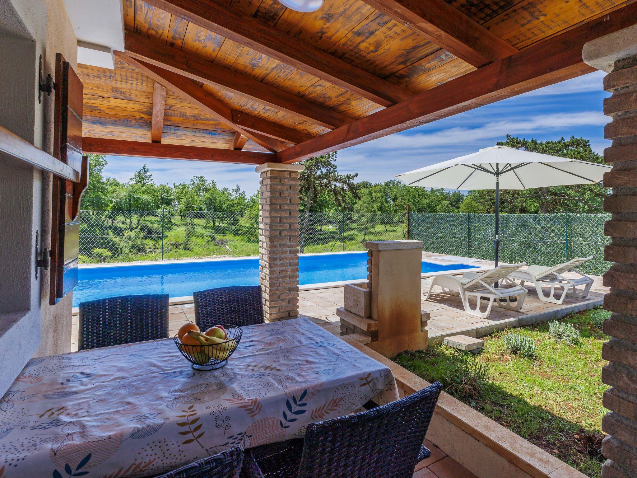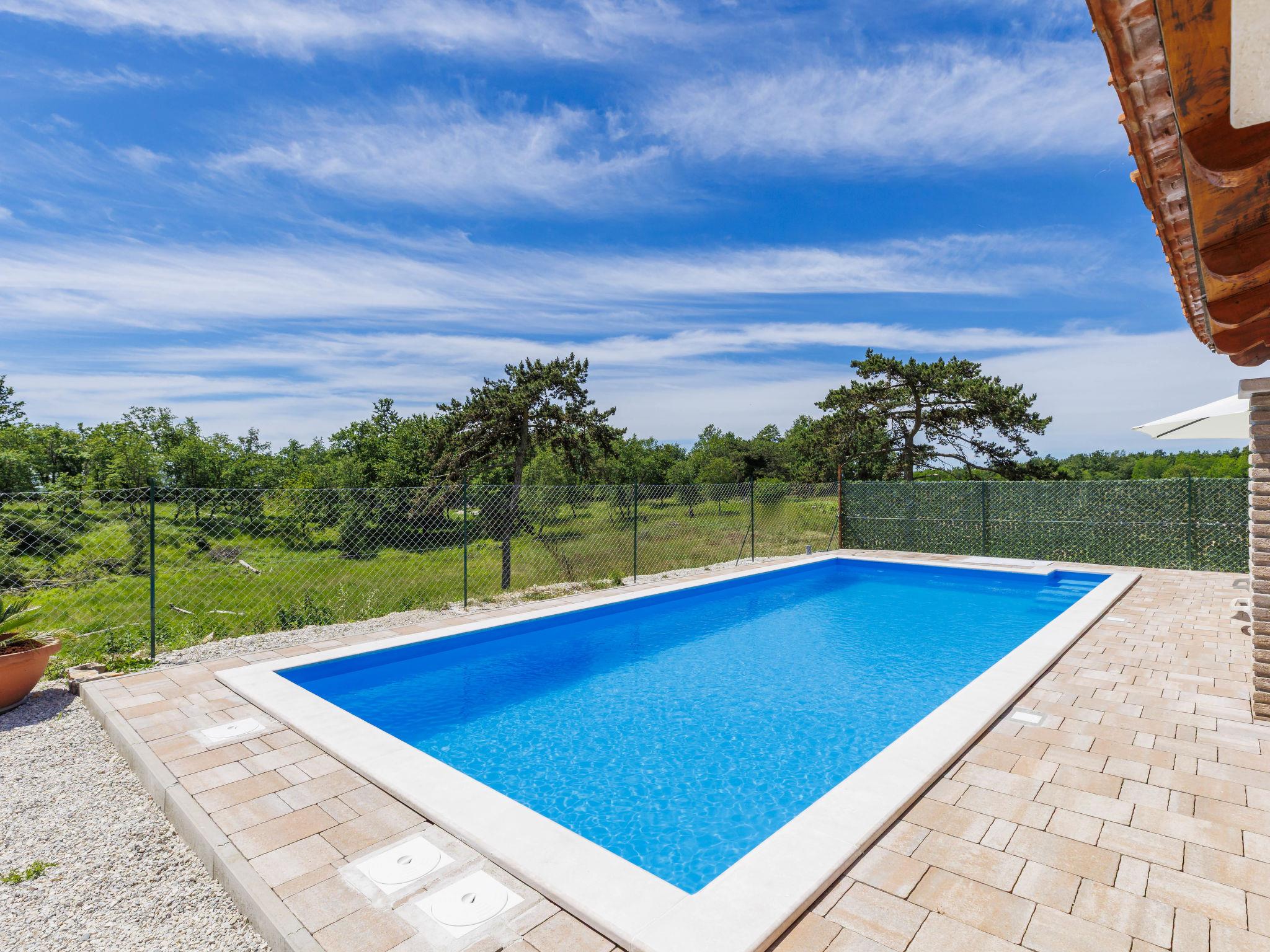 Single-family house "Santina", built in 2023. In the hamlet Cvitani 8 km from the centre of Višnjan, 13 km from the centre of Kaštelir, 15 km from the centre of Porec, 15 km from the sea. Private: property 600 m2, swimming pool (9 x 4 m, depth 135 cm, seasonal availability: 01.May. - 01.Oct.) with internal staircase. Outdoor shower, terrace (28 m2), garden furniture, barbecue, pool maintenance by the owner/gardener. In the house: internet access, washing machine. Parking (for 2 cars) at the house on the premises. Shop 8 km, restaurant 8 km, bus stop 4.1 km, rocky beach 15 km.