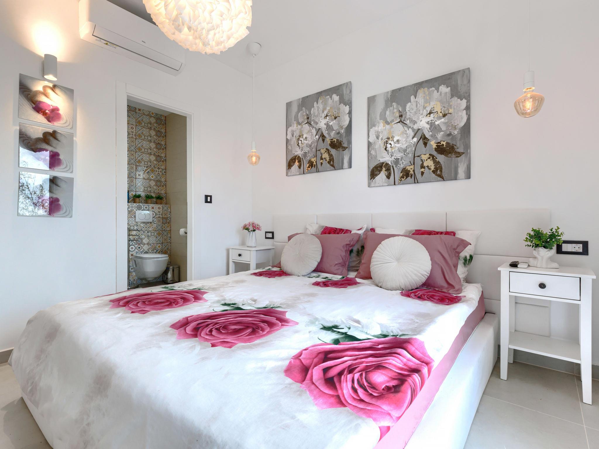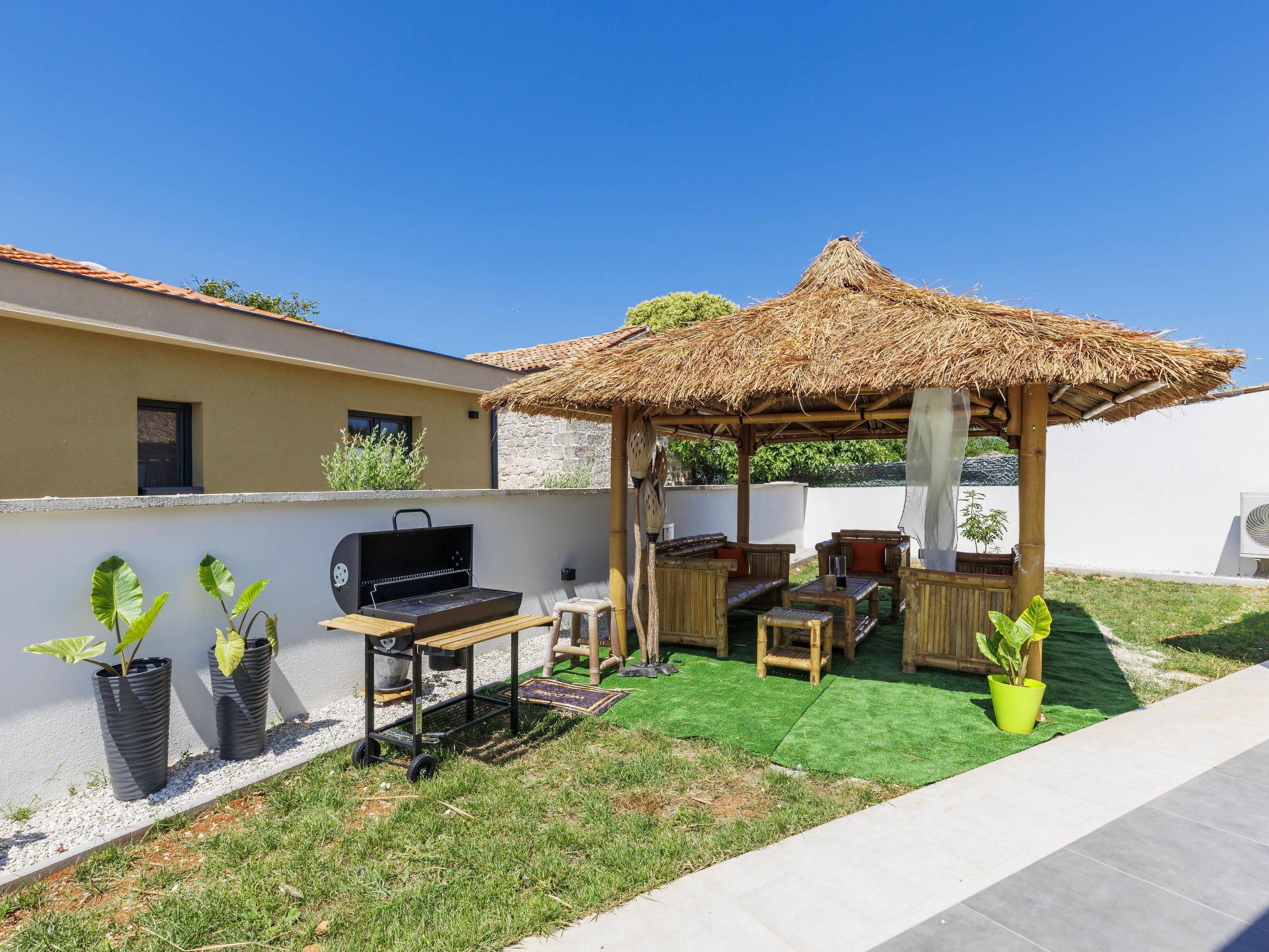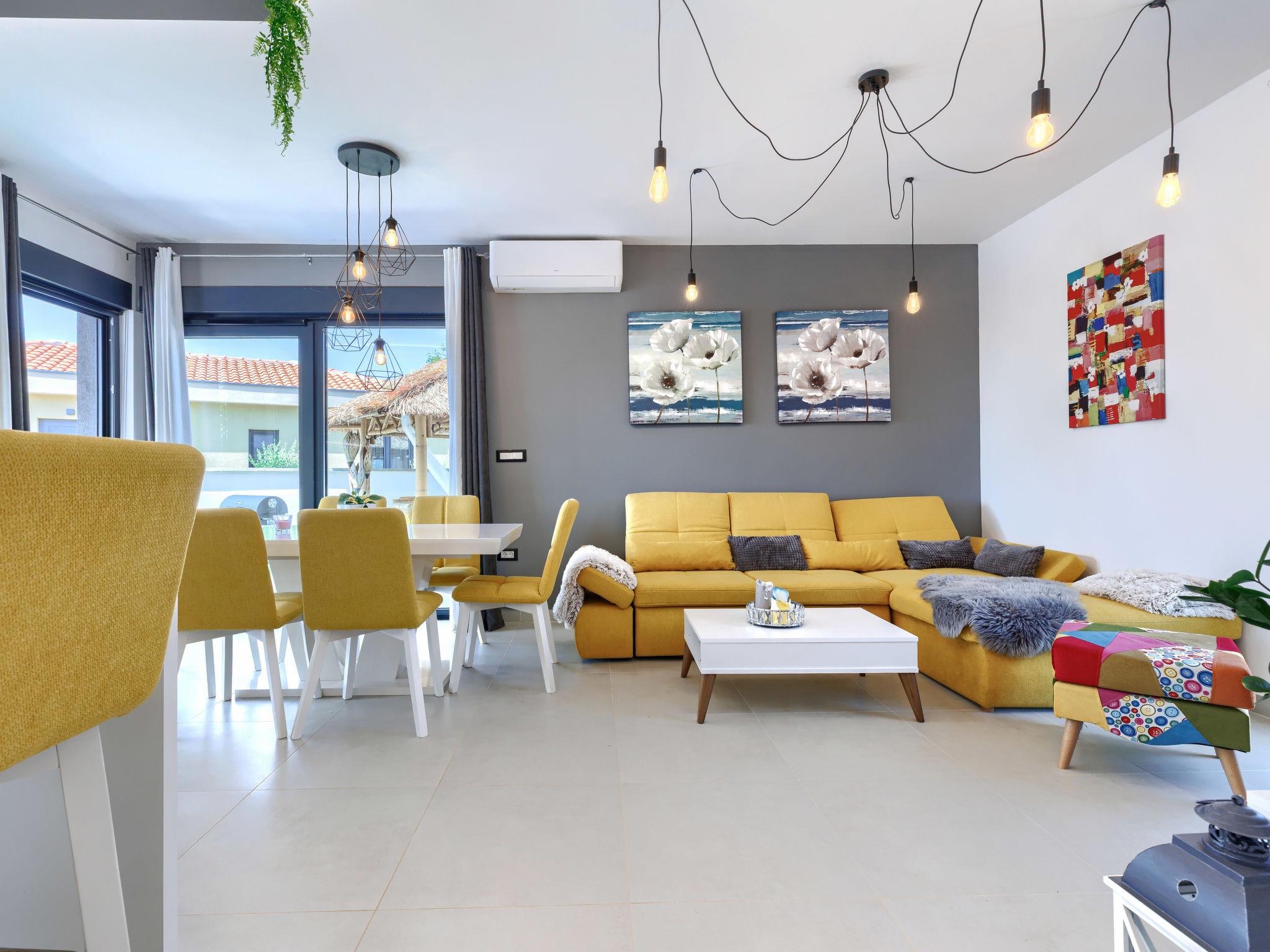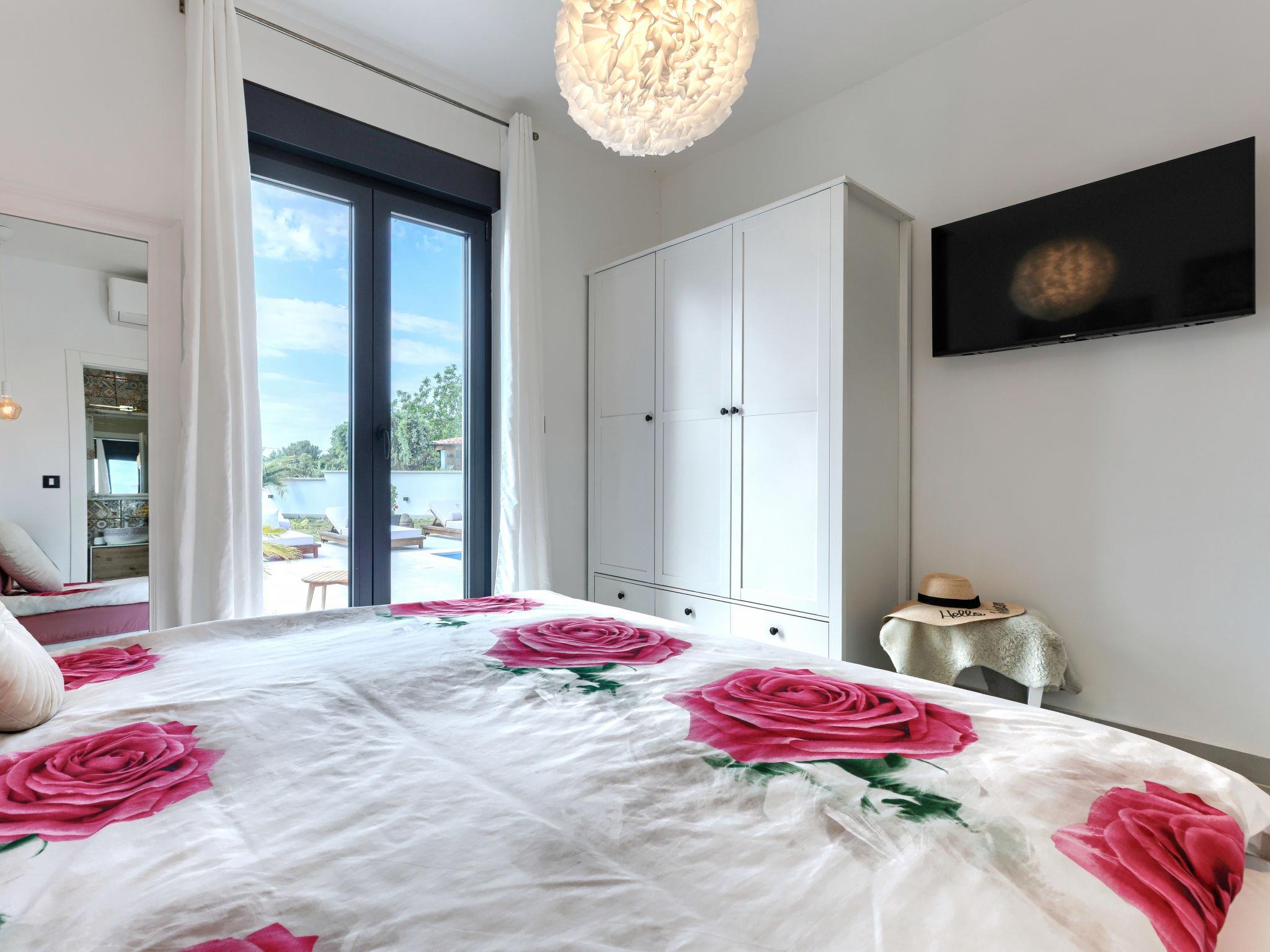 Single-family house "Villa Luna", built in 2024. In the hamlet Cvitani 8 km from the centre of Višnjan, 13 km from the centre of Kaštelir, 15 km from the centre of Porec, 15 km from the sea, in a cul-de-sac. Private: property 400 m2 (fenced), swimming pool angular (7 x 3 m, depth 145 cm, seasonal availability: 01.May. - 01.Oct.). Outdoor shower, arbour (16 m2), terrace (20 m2), garden furniture, pool maintenance by the owner/gardener. In the house: internet access, washing machine, tumble dryer. Parking (for 2 cars) at the house on the premises. Shop 8 km, restaurant 8 km, bus stop 4.1 km, rocky beach 15 km. Please note: airfield 50 km from the property.