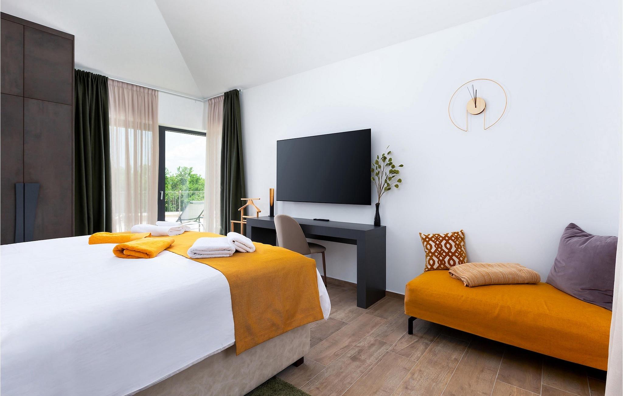 Villa Faloniga er en smuk ferievilla i den maleriske landsby Vižinada i Istrien. Villaen er ideel til en rolig ferie med familie og venner. En imponerende swimmingpool med udsigt til det grønne, på størrelse med 68 m2, får denne villa til at skille sig ud. Swimmingpoolen er placeret på hovedterrassen og er ideel til afslapning og forfriskning i sommervarmen. Nyd den istriske sol på liggestolene ved poolen. Tilbered traditionelle istriske retter på grillen til hele familien og vennerne. Tilbring uforglemmelige samvær med tilberedte måltider i det overdækkede område ved poolen ved et bord med 8 siddepladser. Villaens indre med sin smukke moderne udsmykning vil bestemt ikke skuffe dig. I stueetagen af villaen er der et åbent rum med et fuldt udstyret køkken til tilberedning af fiske- og skaldyrsspecialiteter, en spisestue og en rummelig stue til at tilbringe tid med hele familien. Det første soveværelse er beregnet til hvile og fredelige drømme, det er udstyret med en dobbeltseng og et privat badeværelse i stueetagen. Der er også et separat toilet i stueetagen. På første sal er de resterende soveværelser. To soveværelser har dobbeltsenge og en-suite badeværelser, mens det sidste soveværelse har 2 enkeltsenge. På terrasserne på første sal kan du nyde morgenen med kaffe og en smuk udsigt over det grønne. Tilbring en perfekt ferie med dine kære i Villa Faloniga i det magiske Istrien. Villa Faloniga ligger i landsbyen Vižinada i Istrien. Dette maleriske sted ligger på en bakke over dalen af floden Mirna, og er rig på kulturelle monumenter og et unikt gastronomisk tilbud. Smag ekstra jomfru olivenolie, istrisk prosciutto og hjemmelavede fugaer. Lær den lokale befolkning at kende og besøg adskillige Vižinad-begivenheder. Naturelskere vil helt sikkert blive henrykte over den naturlige skønhed, som du kan opdage på adskillige cykel- og vandrestier. Udforsk dette område på den berømte Parenzana vandresti. Besøg det charmerende Motovun, som vil glæde dig med sine seværdigheder, smalle gader, stenhuse. Gå ikke glip af filmfestivalen i Motovun. Gå ikke glip af at besøge de vigtigste turistcentre i Istrien: Rovinj, Porec og Pula. I Rovinj kan du se den barokke kirke St. Euphemia, mens du i Porec kan besøge den byzantinske Euphrasian Basilica, der er optaget på UNESCOs verdenskulturarvsliste. Gå ikke glip af at besøge den største istriske by Pula, hvor du kan se Pula Arena, Augustus-templet, Den Gyldne Port og mange andre kulturelle og historiske monumenter. Udforsk endelig Brijuni-øgruppen med den berømte Brijuni Nationalpark.