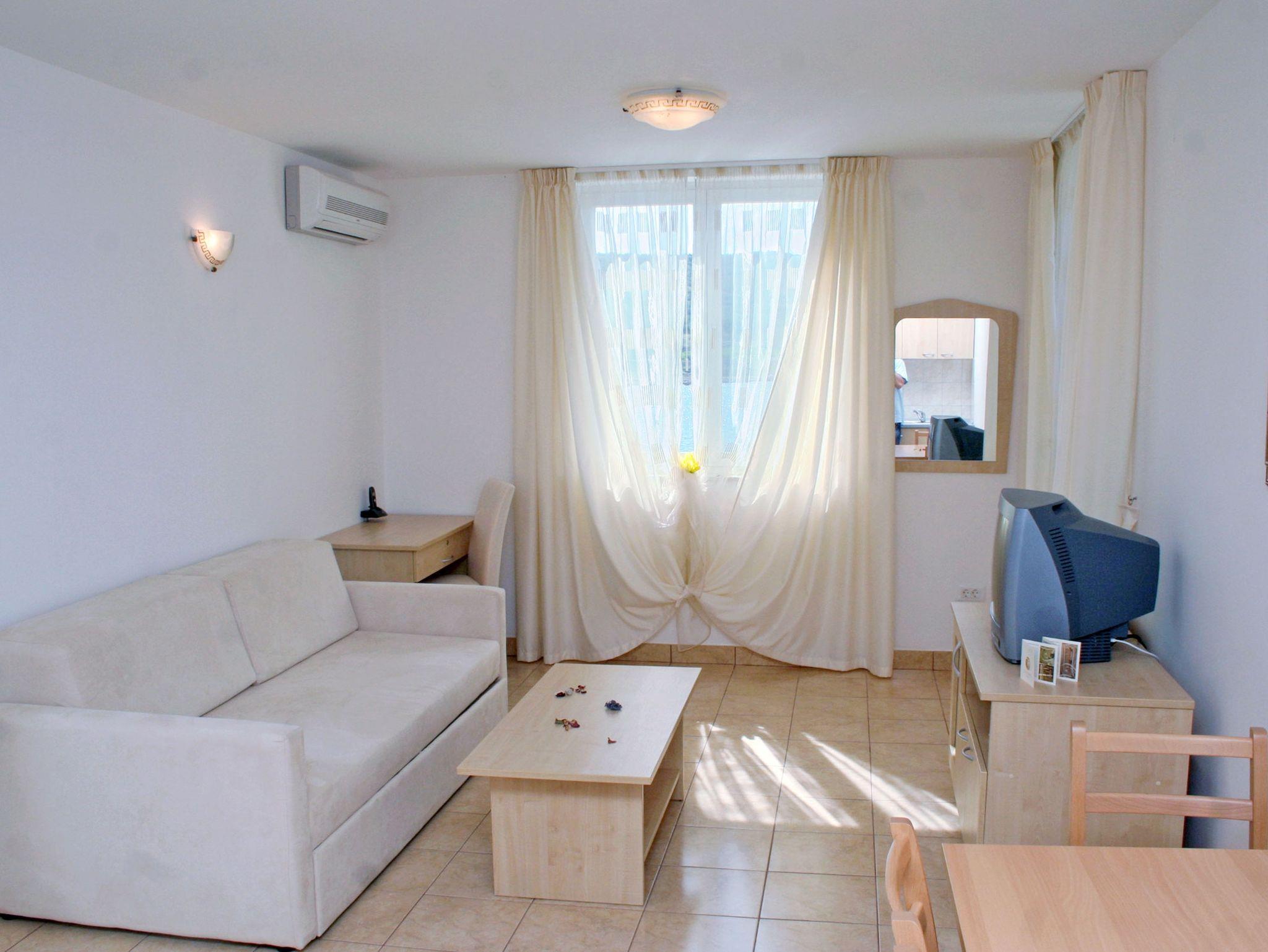 Ferienwohnung bietet Platz für 4 Gäste. Die Betten sind in Schlafzimmern, die es 1 gibt, und in Wohnzimmer, innerhalb einer Gesamtfläche von 42m2, angeordnet. Die reservierte Unterkunftseinheit hat keinen Balkon und keine Terrasse. IM PREIS INBEGRIFFEN: Endreinigung, Klimatisierung, Parkplatz, Internet, Bügeleisen, Bügelbrett, Föhn, Sonnenschirm, Liegestühle. VERBINDLICHE ZUSÄTZLICHE KOSTEN: Kurtaxe (Erwachsene 0,93 € - 1,50 € Nacht/Person, Kinderermäßigung 12 - 17 Jahre), Aufzahlung für Kurzaufenthalte (prozentualer Zuschlag pro Nächtigungsanzahl: 30% - 1, 20% - 2, 10% - 3). UNVERBINDLICHE ZUSÄTZLICHE KOSTEN: Zusatzbett (35,00 € pro Nacht). Die Verfügbarkeit zusätzlicher Dienstleistungen in Ihrem reservierten Termin und die Preise derselben (falls nicht aufgeführt) müssen im Voraus überprüft werden. Zusätzliche Dienstleistungen die in der Zahlungsaufforderung nicht aufgeführt sind werden direkt beim Vermieter bezahlt, angenommen der Gast nutzt auch diese.