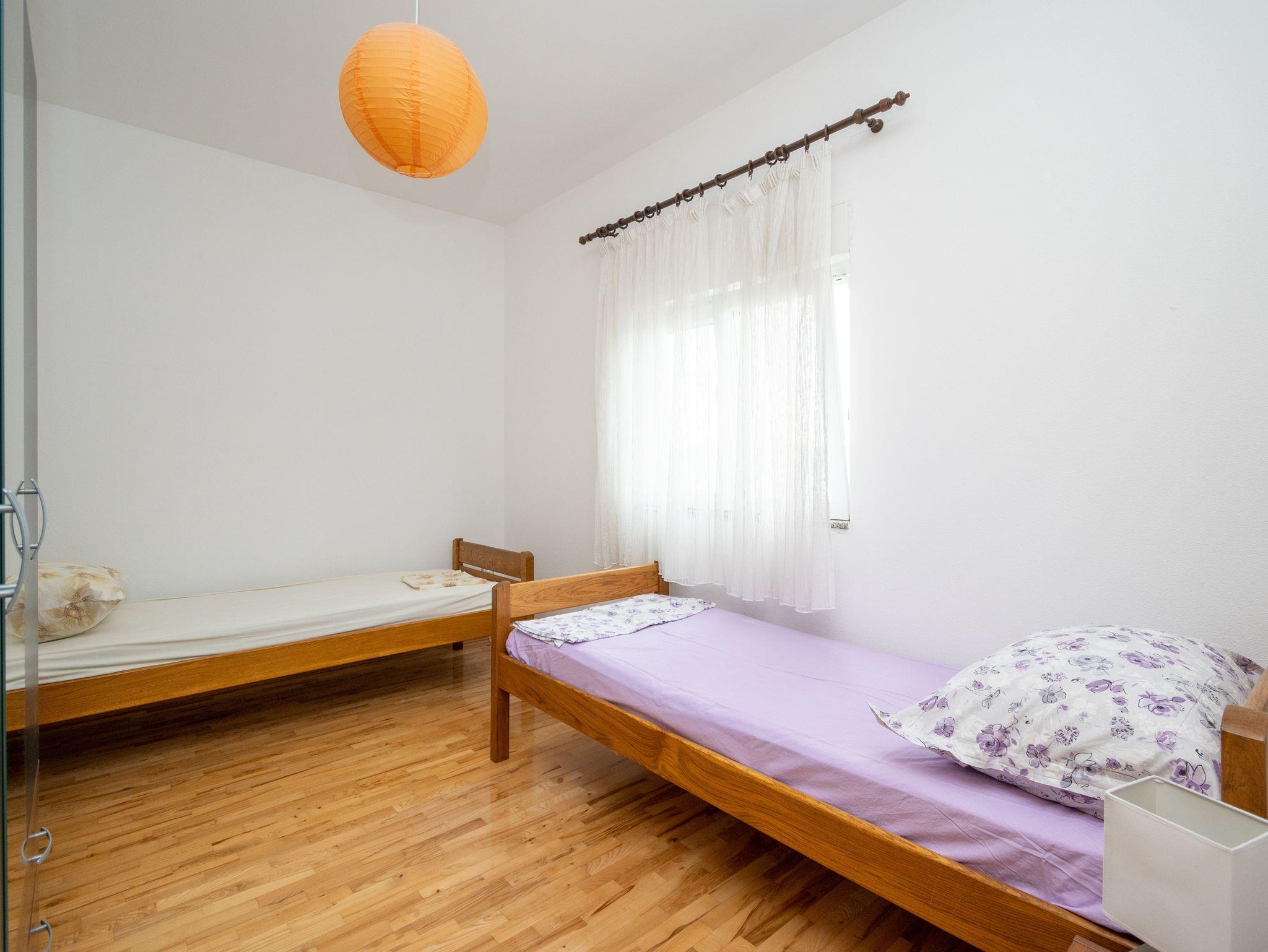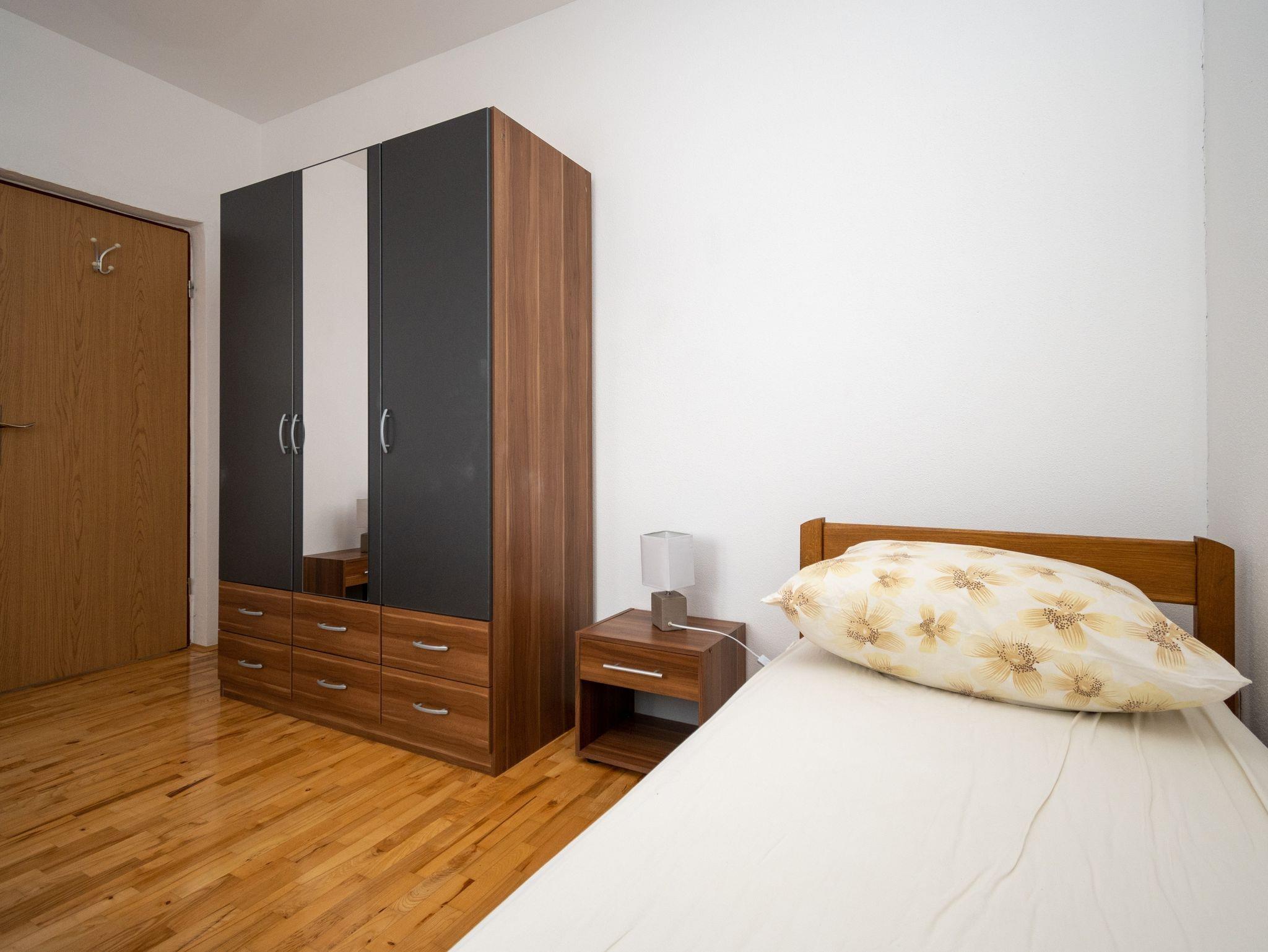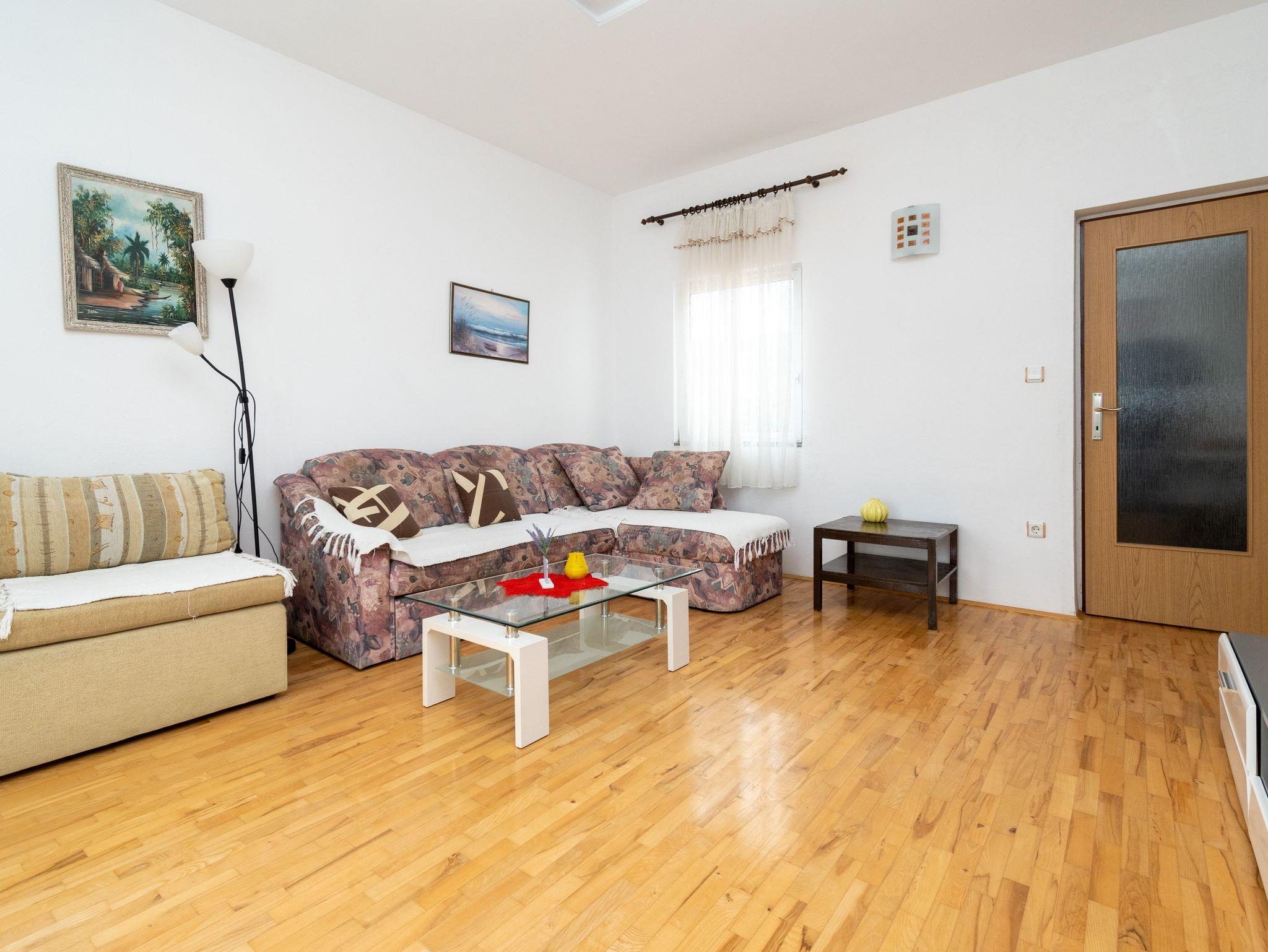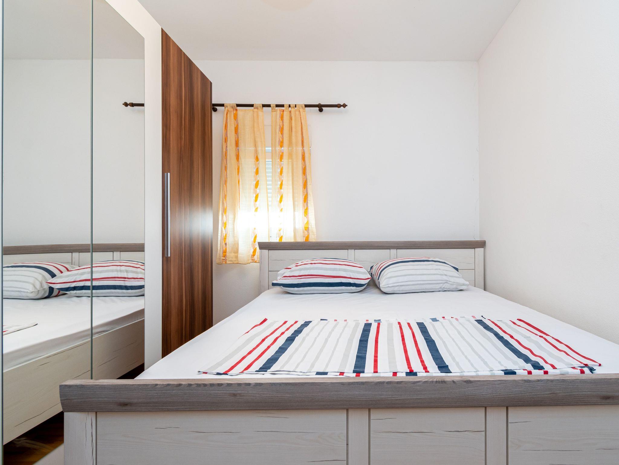 Ferienwohnung bietet Platz für 5 Gäste. Die Betten sind in Schlafzimmern, die es 2 gibt, und in Wohnzimmer, innerhalb einer Gesamtfläche von 62m2, angeordnet. Die Gäste haben einen eigenen Balkon zur Verfügung, auf der sie in warmen Sommernächten genießen können. Das Apartment bietet Meerblick. Es ist erlaubt, Speisen auf dem Gemeinschafts-Grill vorzubereiten. IM PREIS INBEGRIFFEN: Kurtaxe, Endreinigung, Klimatisierung, Parkplatz, Internet. VERBINDLICHE ZUSÄTZLICHE KOSTEN: Aufzahlung für Kurzaufenthalte (prozentualer Zuschlag pro Nächtigungsanzahl: 30% - 1, 20% - 2, 10% - 3). Die Verfügbarkeit zusätzlicher Dienstleistungen in Ihrem reservierten Termin und die Preise derselben (falls nicht aufgeführt) müssen im Voraus überprüft werden. Zusätzliche Dienstleistungen die in der Zahlungsaufforderung nicht aufgeführt sind werden direkt beim Vermieter bezahlt, angenommen der Gast nutzt auch diese. Ermäßigung auf den Grundpreis: Gratistag 14=13 (bei einem Aufenthalt von 14 Tagen oder mehr erhalten Sie einen Gratistag für den Aufenthalt bis 31.12.26).