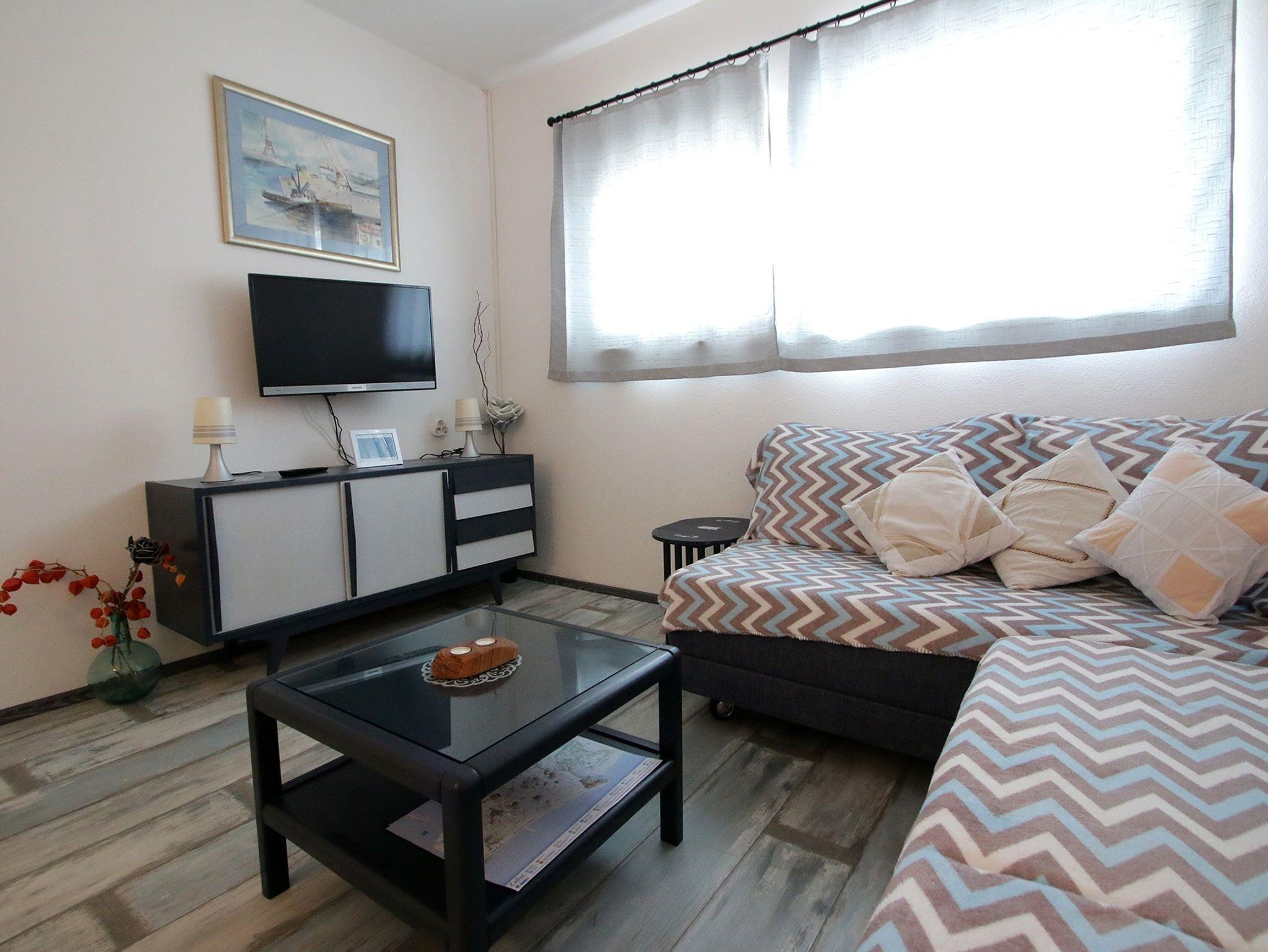 Ferienwohnung bietet Platz für 4 Gäste. Die Betten sind in Schlafzimmern, die es 1 gibt, und in Wohnzimmer, innerhalb einer Gesamtfläche von 47m2, angeordnet. Die Gäste haben eine eigene Terrasse zur Verfügung, auf der sie in warmen Sommernächten genießen können. Es ist erlaubt, Speisen auf dem Gemeinschafts-Grill vorzubereiten. In der Unterkunftseinheit besteht die Möglichkeit des Mitbringens von Haustieren gegen Aufpreis. IM PREIS INBEGRIFFEN: Kurtaxe, Endreinigung, Klimatisierung, Parkplatz, Internet, Wäschewaschen, Kinderbett, Bügeleisen, Bügelbrett, Föhn, tragbarer Grill. VERBINDLICHE ZUSÄTZLICHE KOSTEN: Aufzahlung für Kurzaufenthalte (prozentualer Zuschlag pro Nächtigungsanzahl: 30% - 1, 20% - 2, 10% - 3). UNVERBINDLICHE ZUSÄTZLICHE KOSTEN: Haustiere (5,00 € pro Nacht). Die Verfügbarkeit zusätzlicher Dienstleistungen in Ihrem reservierten Termin und die Preise derselben (falls nicht aufgeführt) müssen im Voraus überprüft werden. Zusätzliche Dienstleistungen die in der Zahlungsaufforderung nicht aufgeführt sind werden direkt beim Vermieter bezahlt, angenommen der Gast nutzt auch diese.