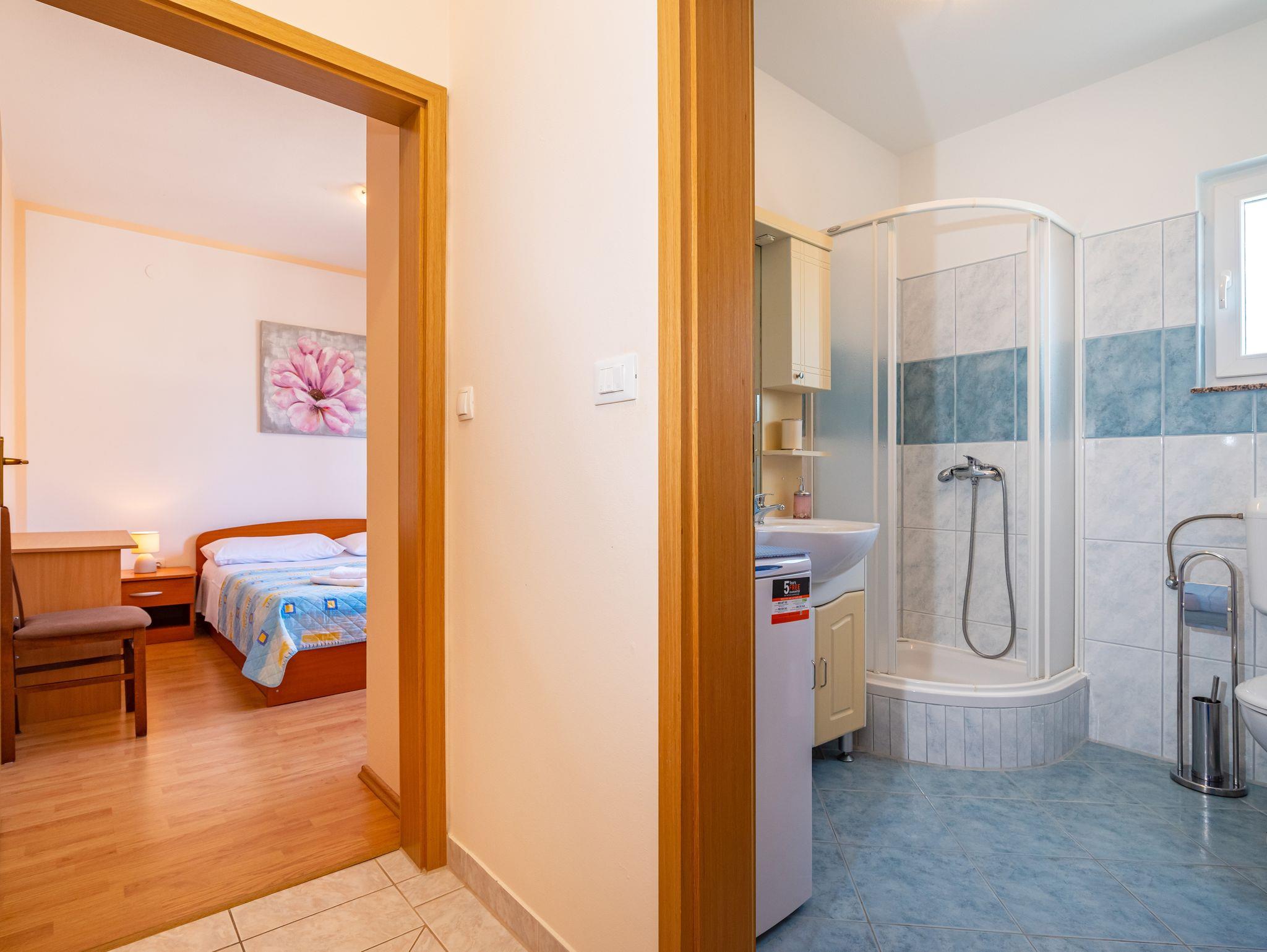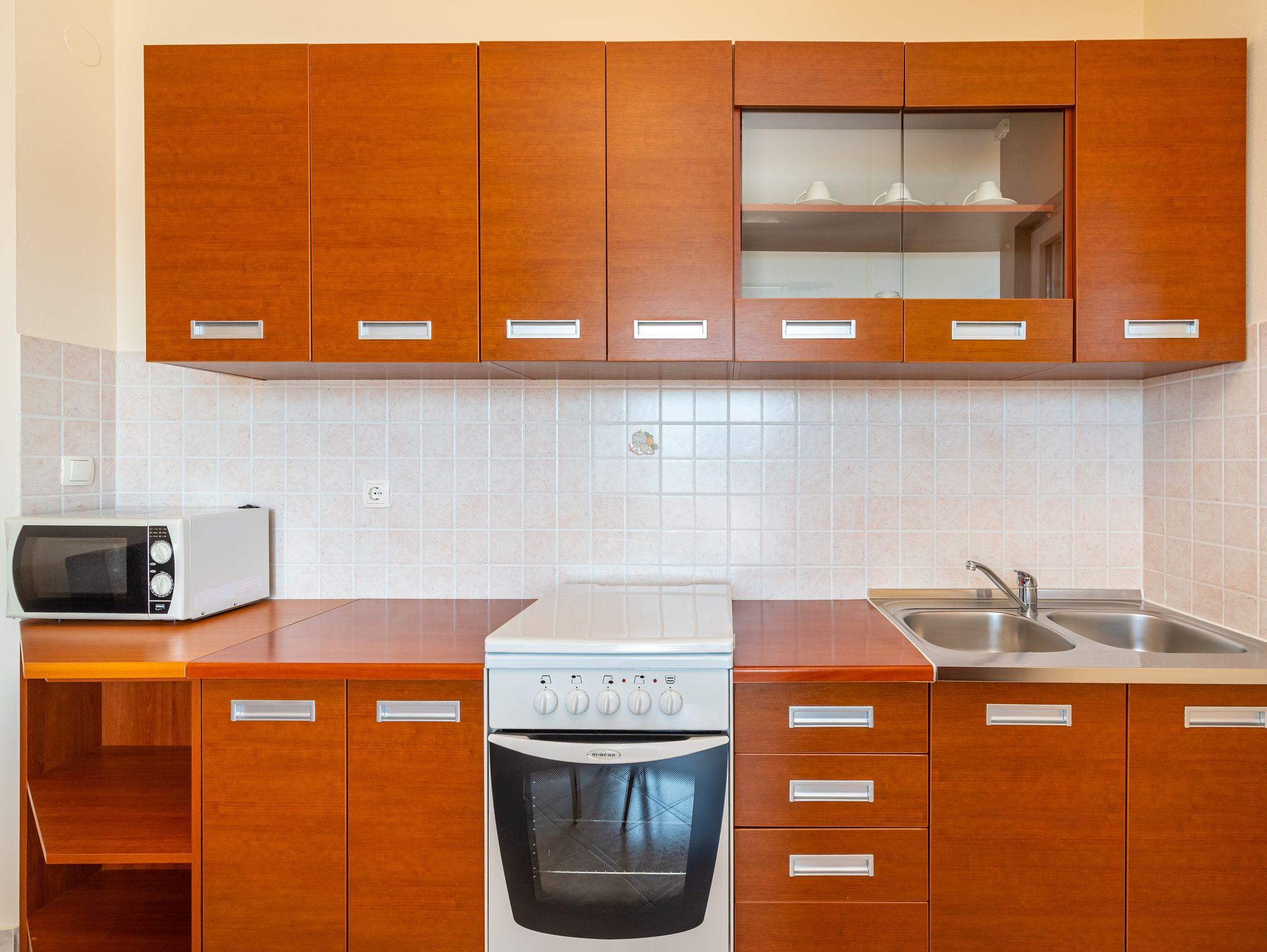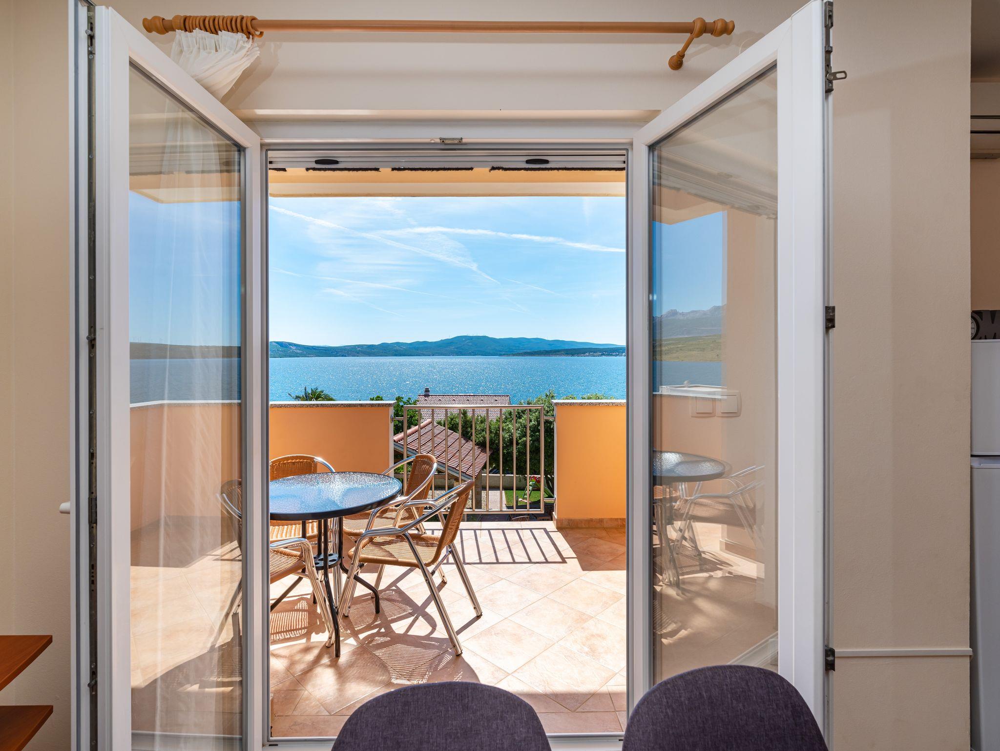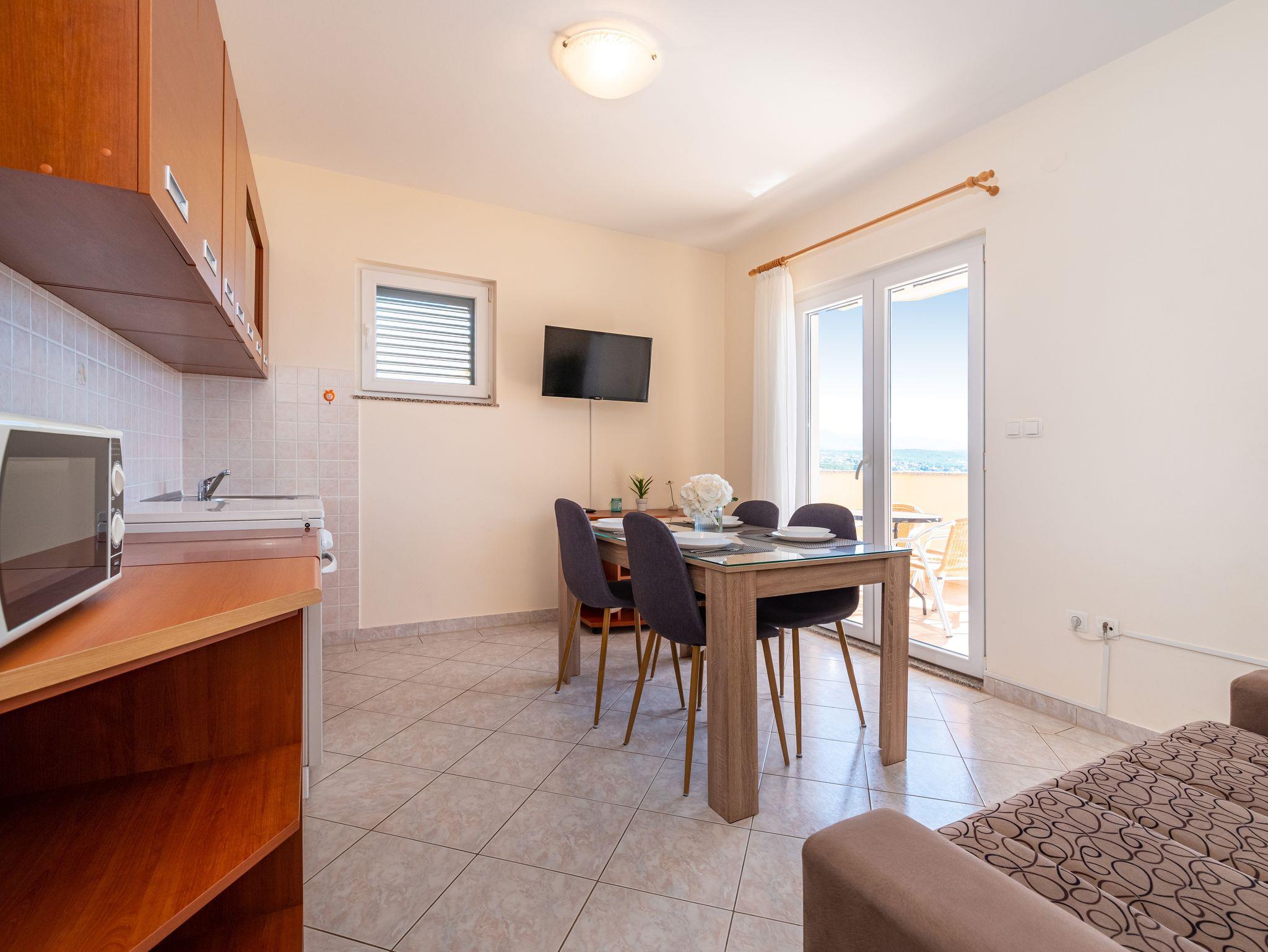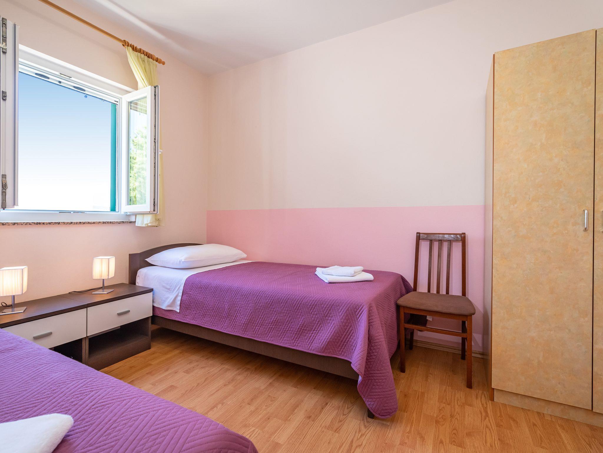 Ferienwohnung bietet Platz für 4 Gäste. Die Betten sind in Schlafzimmern, die es 2 gibt, innerhalb einer Gesamtfläche von 48m2, angeordnet. Die Gäste haben eine eigene Terrasse zur Verfügung, auf der sie in warmen Sommernächten genießen können. Das Apartment bietet Meerblick. Es ist erlaubt, Speisen auf dem Gemeinschafts-Grill vorzubereiten. Während ihres Aufenthalts können Gäste das gemeinsam zur Nutzung stehende Schwimmbad benutzen. IM PREIS INBEGRIFFEN: Kurtaxe, Endreinigung, Klimatisierung, Pool, Parkplatz, Internet, Kinderbett, Bügeleisen, Bügelbrett, Föhn, Sonnenschirm, Liegestühle. VERBINDLICHE ZUSÄTZLICHE KOSTEN: Aufzahlung für Kurzaufenthalte (prozentualer Zuschlag pro Nächtigungsanzahl: 30% - 1, 20% - 2, 10% - 3). Die Verfügbarkeit zusätzlicher Dienstleistungen in Ihrem reservierten Termin und die Preise derselben (falls nicht aufgeführt) müssen im Voraus überprüft werden. Zusätzliche Dienstleistungen die in der Zahlungsaufforderung nicht aufgeführt sind werden direkt beim Vermieter bezahlt, angenommen der Gast nutzt auch diese. Ermäßigung auf den Grundpreis: Gratistag 14=13 (bei einem Aufenthalt von 14 Tagen oder mehr erhalten Sie einen Gratistag für den Aufenthalt bis 31.12.26).