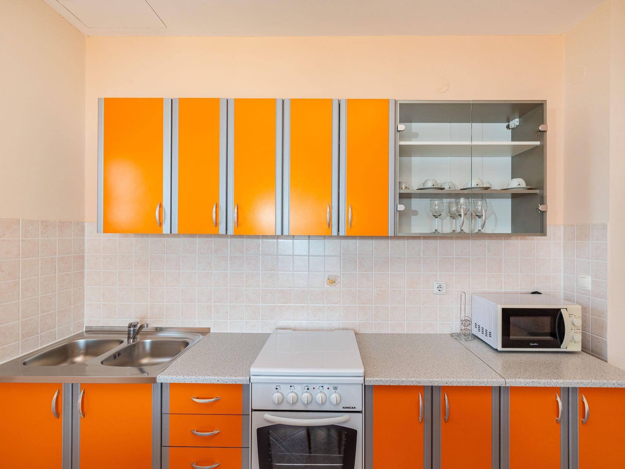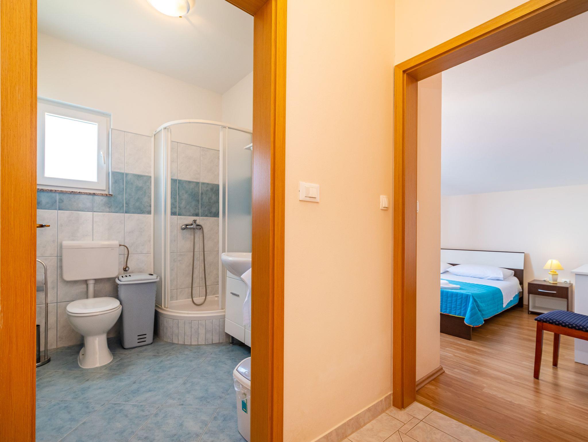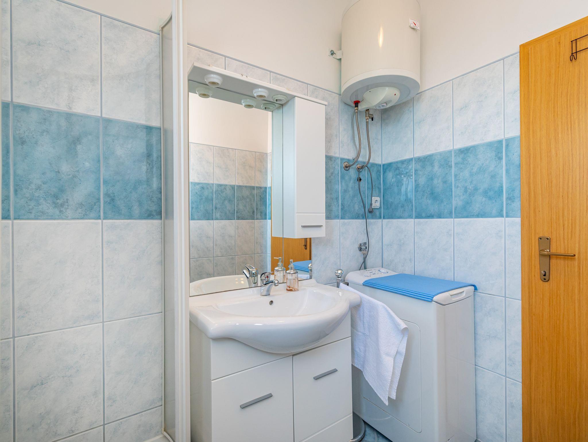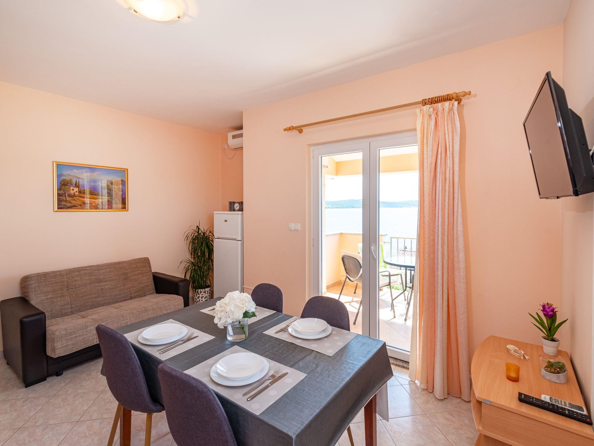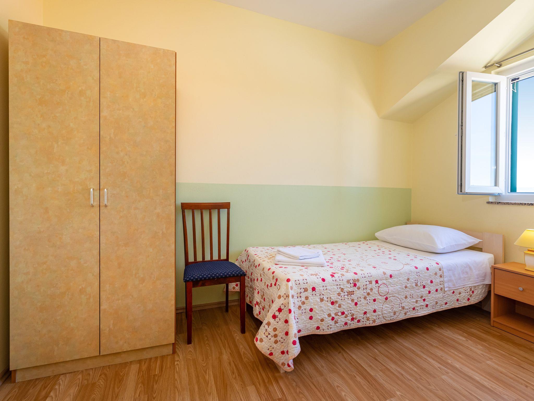 Ferienwohnung bietet Platz für 4 Gäste. Die Betten sind in Schlafzimmern, die es 2 gibt, innerhalb einer Gesamtfläche von 48m2, angeordnet. Die Gäste haben eine eigene Terrasse zur Verfügung, auf der sie in warmen Sommernächten genießen können. Das Apartment bietet Meerblick. Es ist erlaubt, Speisen auf dem Gemeinschafts-Grill vorzubereiten. Während ihres Aufenthalts können Gäste das gemeinsam zur Nutzung stehende Schwimmbad benutzen. IM PREIS INBEGRIFFEN: Kurtaxe, Endreinigung, Klimatisierung, Pool, Parkplatz, Internet, Kinderbett, Bügeleisen, Bügelbrett, Föhn, Sonnenschirm, Liegestühle. VERBINDLICHE ZUSÄTZLICHE KOSTEN: Aufzahlung für Kurzaufenthalte (prozentualer Zuschlag pro Nächtigungsanzahl: 30% - 1, 20% - 2, 10% - 3). Die Verfügbarkeit zusätzlicher Dienstleistungen in Ihrem reservierten Termin und die Preise derselben (falls nicht aufgeführt) müssen im Voraus überprüft werden. Zusätzliche Dienstleistungen die in der Zahlungsaufforderung nicht aufgeführt sind werden direkt beim Vermieter bezahlt, angenommen der Gast nutzt auch diese. Ermäßigung auf den Grundpreis: Gratistag 14=13 (bei einem Aufenthalt von 14 Tagen oder mehr erhalten Sie einen Gratistag für den Aufenthalt bis 31.12.26).