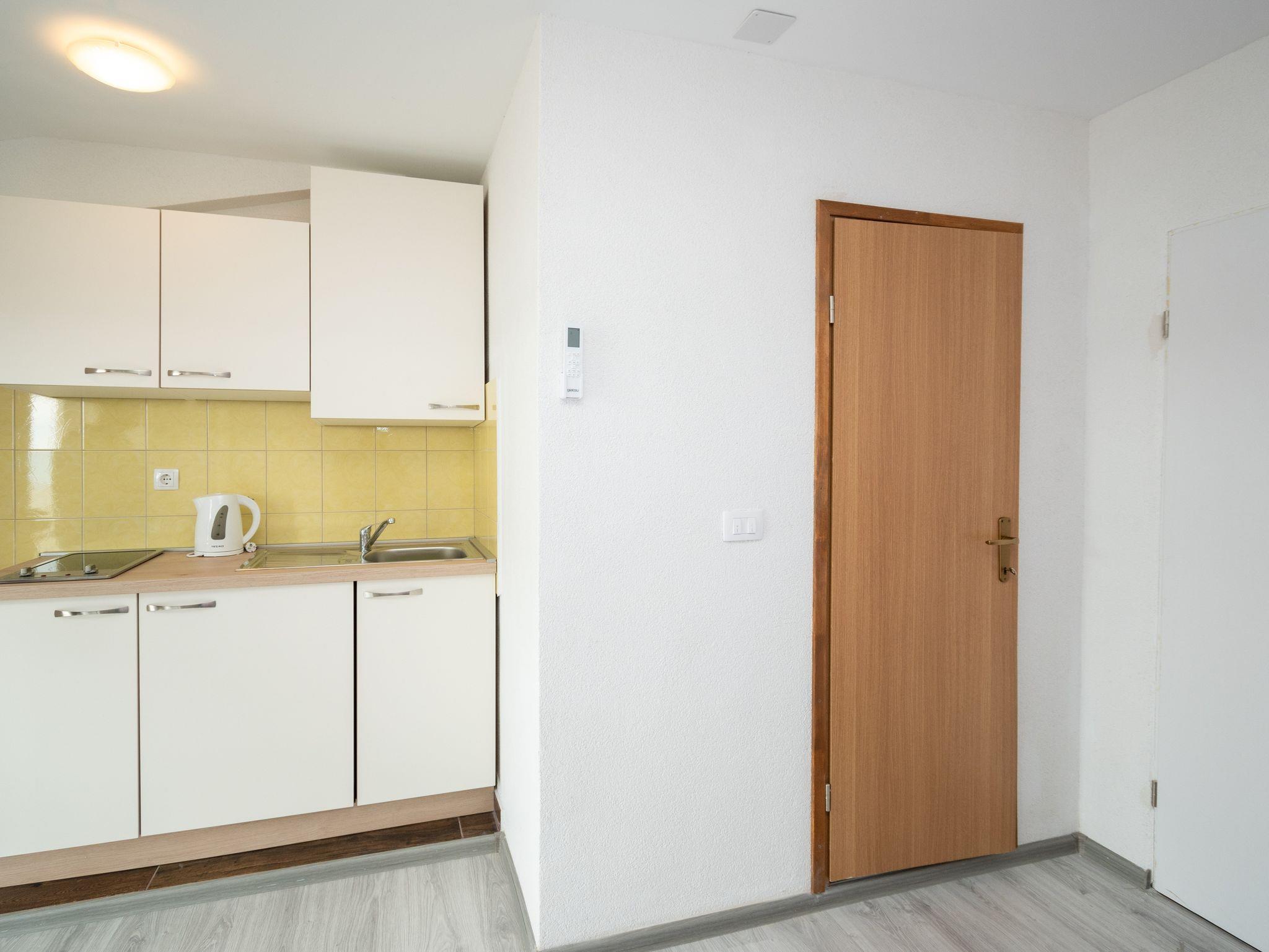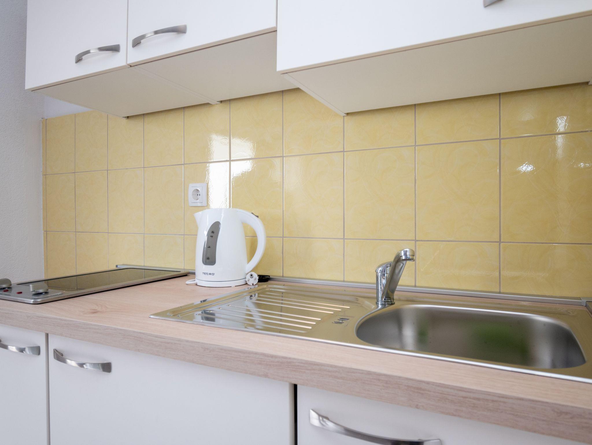 Studio bietet Platz für 2 Gäste. Die Betten sind in Schlafzimmern, die es 1 gibt, innerhalb einer Gesamtfläche von 17m2, angeordnet. Das Studio-Apartment bietet Meerblick. Es ist erlaubt, Speisen auf dem Gemeinschafts-Grill vorzubereiten. Die reservierte Unterkunftseinheit verfügt über einen gemeinsame Terrasse. IM PREIS INBEGRIFFEN: Kurtaxe, Endreinigung, Klimatisierung, Parkplatz, Internet. VERBINDLICHE ZUSÄTZLICHE KOSTEN: Aufzahlung für Kurzaufenthalte (prozentualer Zuschlag pro Nächtigungsanzahl: 30% - 1, 20% - 2, 10% - 3). Die Verfügbarkeit zusätzlicher Dienstleistungen in Ihrem reservierten Termin und die Preise derselben (falls nicht aufgeführt) müssen im Voraus überprüft werden. Zusätzliche Dienstleistungen die in der Zahlungsaufforderung nicht aufgeführt sind werden direkt beim Vermieter bezahlt, angenommen der Gast nutzt auch diese. Ermäßigung auf den Grundpreis: Gratistag 14=13 (bei einem Aufenthalt von 14 Tagen oder mehr erhalten Sie einen Gratistag für den Aufenthalt bis 31.12.26).