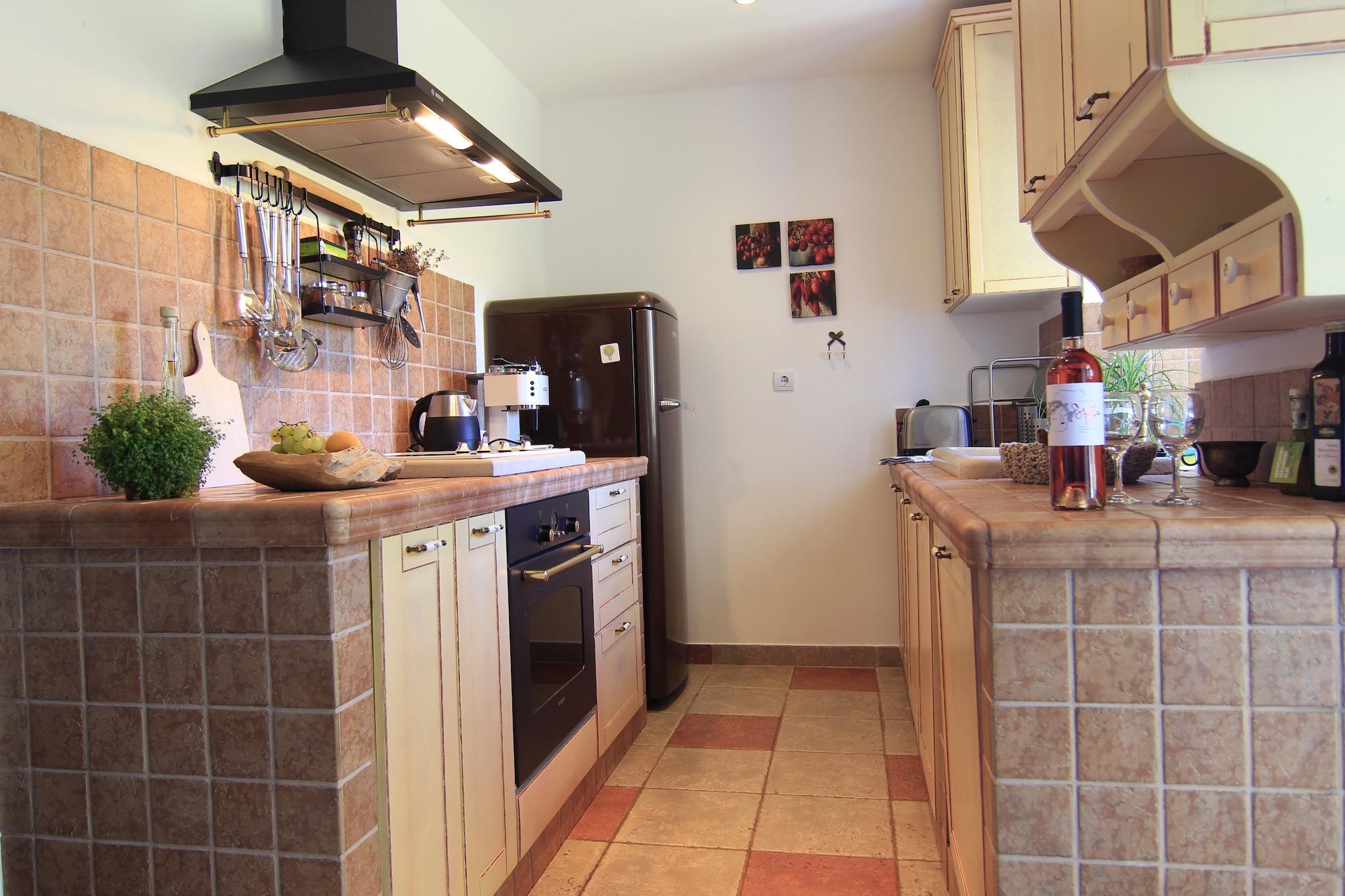 Villa Dol er indkvartering med egen forplejning beliggende i Dol på øen Brac. Privat parkering er til rådighed, reservation er ikke påkrævet.Dette 200 år gamle dalmatiske hus blev renoveret i traditionel stil, lavet af sten og omgivet af oliventræer og smuk have, spredt på 1500 m2. Med pool og en smuk udsigt er det en unik kombination af vildmark og menneskeskabte funktioner, der egner sig til afsondret eventyr, romantiske udflugter, familieferier og mange forskellige ture og udforskning. Villaen ligger afsondret på bakken over landsbyen og giver privatliv og intimitet. Der er en have foran huset med økologiske grøntsager og farverige blomster. Både det indre og det ydre rum giver fredelig og miljøvenlig indkvartering på grund af sin beliggenhed og naturlige omgivelser, som omfatter en stor mangfoldighed af flora og fauna. Du kan slappe af foran huset, som har omfattende stenterrasser og en swimmingpool med udendørs bruser, liggestole og parasol. Desuden er der et bord i grillpladsen og et mindre bord i skyggen af træet foran huset. Terrassen lavet af sten er udstyret med gammeldags pejs, herunder traditionel dalmatisk klokke til bagning af brød og tilberedning af mad. Denne dejlige villa er beliggende i jorden og på første sal. På 1. sal i villaen er der 1 soveværelse med kingsize dobbeltseng og 1 soveværelse med to enkeltsenge. Der er også 1 soveværelse med king size dobbeltseng i stueetagen. Restaurerede møbler og håndlavede lamper er i alle rum, hvilket gør dem unikke og underholdende. Rummeligt badeværelse på første sal med brusevæg, toilet med bidet og to toiletter. Badeværelse i stueetagen indeholder bruseniche, toilet, toilet og vaskemaskine. Der er skabe og hylder på hvert badeværelse. Håndklæder og sengetøj leveres, og rengøring er valgfri. Køkkenet er udstyret med køkkenredskaber, opvaskemaskine, mikroovn, espressomaskine, køleskab med fryser, komfur
