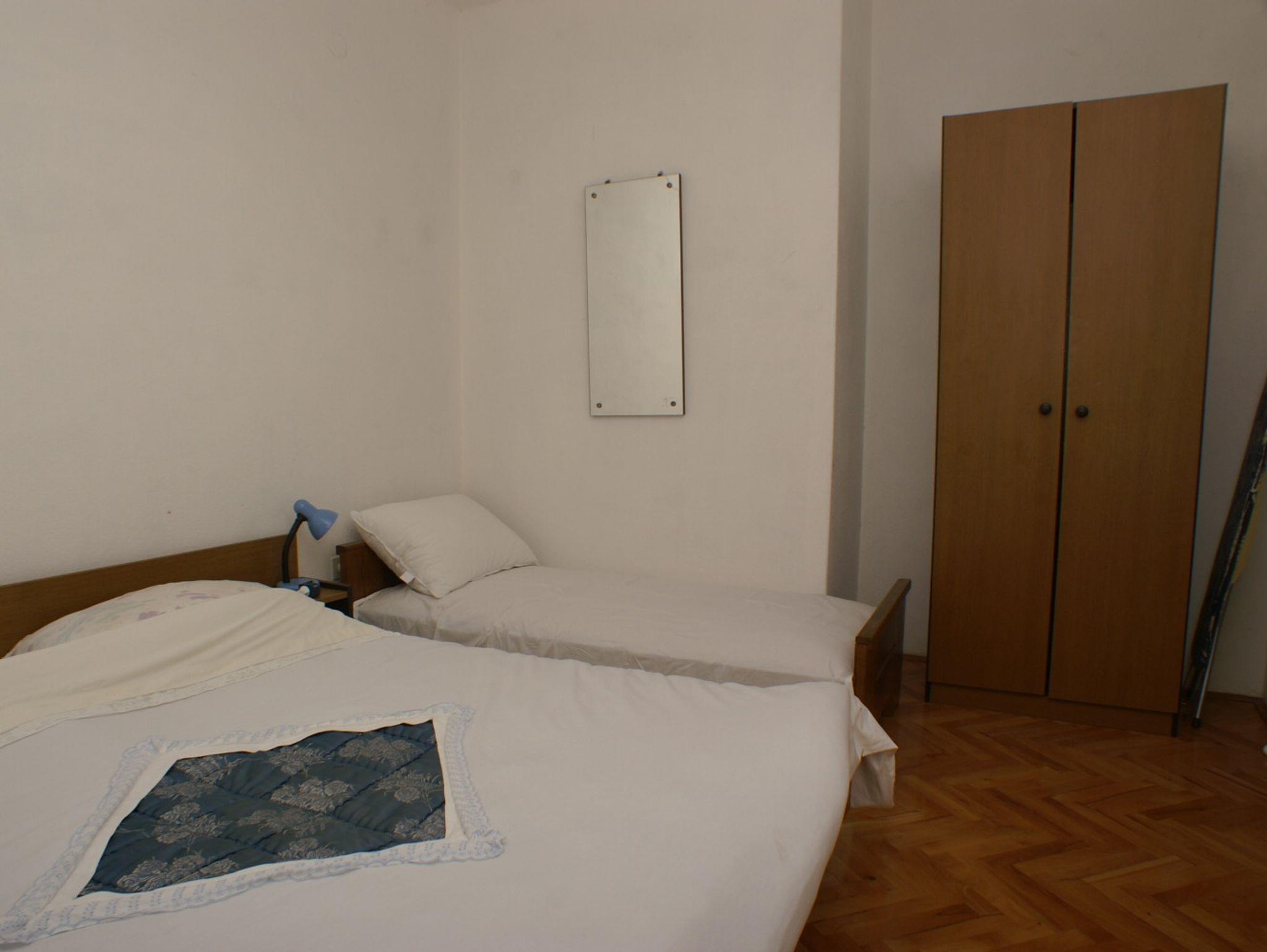 Ferienwohnung bietet Platz für 8 Gäste. Die Betten sind in Schlafzimmern, die es 3 gibt, und in Wohnzimmer, innerhalb einer Gesamtfläche von 93m2, angeordnet. Die Gäste haben eine eigene Terrasse zur Verfügung, auf der sie in warmen Sommernächten genießen können. Das Apartment bietet Meerblick. Es ist erlaubt, Speisen auf dem Gemeinschafts-Grill vorzubereiten. In der Unterkunftseinheit besteht die Möglichkeit des Mitbringens von Haustieren gegen Aufpreis. IM PREIS INBEGRIFFEN: Kurtaxe, Endreinigung, Klimatisierung, Parkplatz, Internet, Bügeleisen, Bügelbrett, tragbarer Grill. VERBINDLICHE ZUSÄTZLICHE KOSTEN: Aufzahlung für Kurzaufenthalte (prozentualer Zuschlag pro Nächtigungsanzahl: 30% - 1, 20% - 2, 10% - 3). UNVERBINDLICHE ZUSÄTZLICHE KOSTEN: Haustiere (5,00 € pro Nacht). Die Verfügbarkeit zusätzlicher Dienstleistungen in Ihrem reservierten Termin und die Preise derselben (falls nicht aufgeführt) müssen im Voraus überprüft werden. Zusätzliche Dienstleistungen die in der Zahlungsaufforderung nicht aufgeführt sind werden direkt beim Vermieter bezahlt, angenommen der Gast nutzt auch diese. Ermäßigung auf den Grundpreis: Gratistag 14=13 (bei einem Aufenthalt von 14 Tagen oder mehr erhalten Sie einen Gratistag für den Aufenthalt bis 31.12.26).