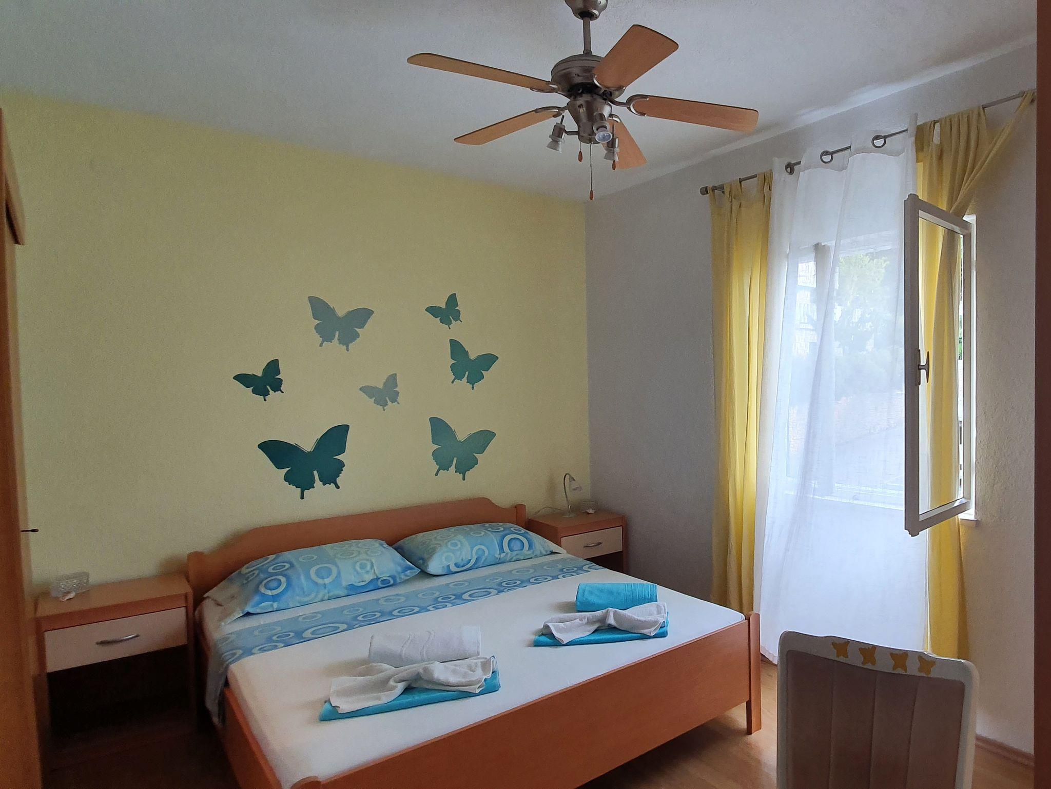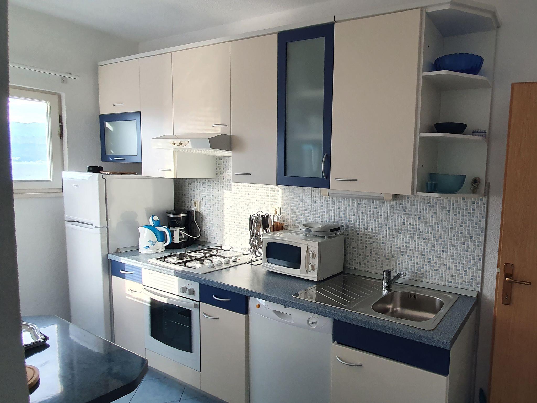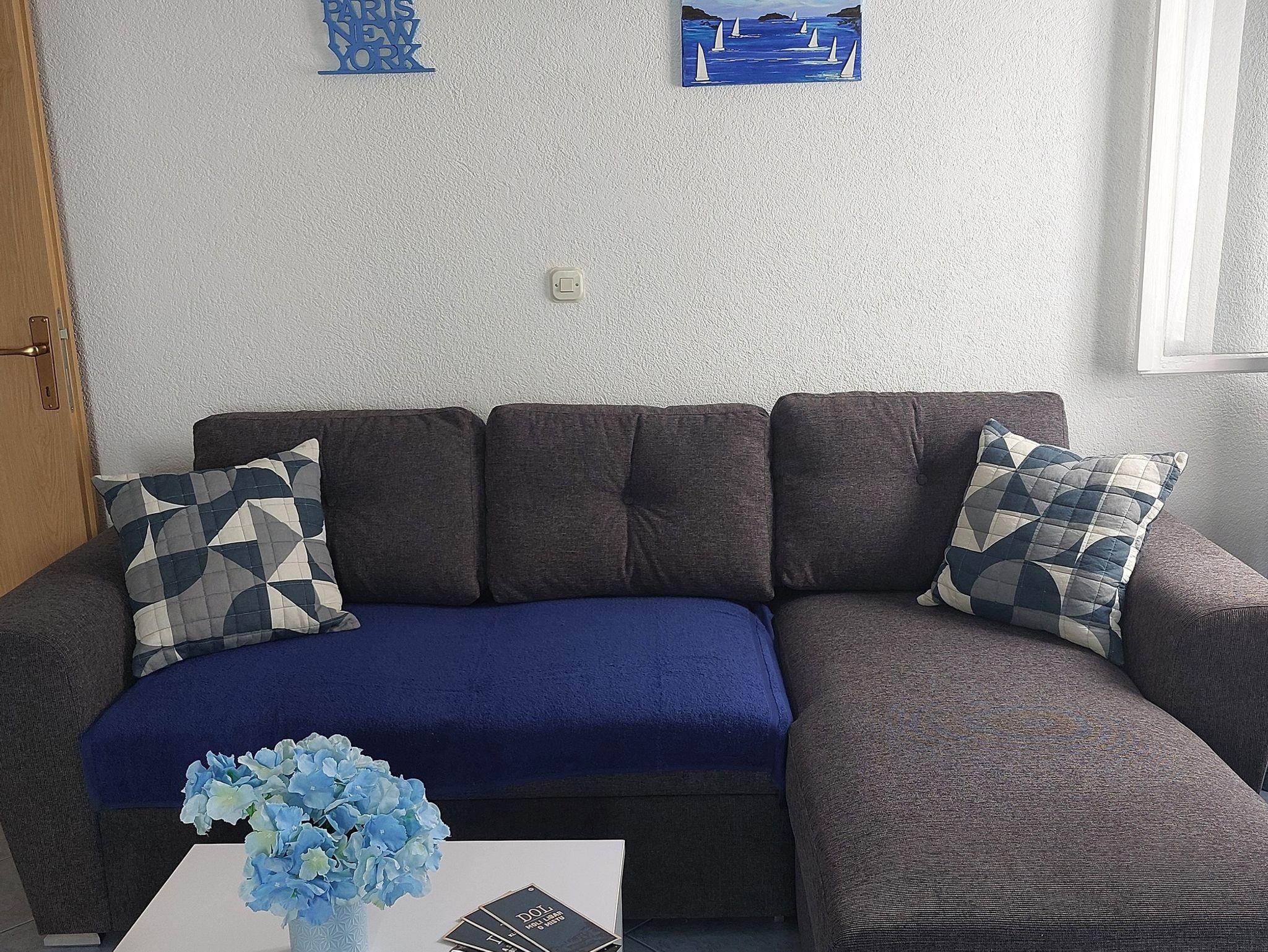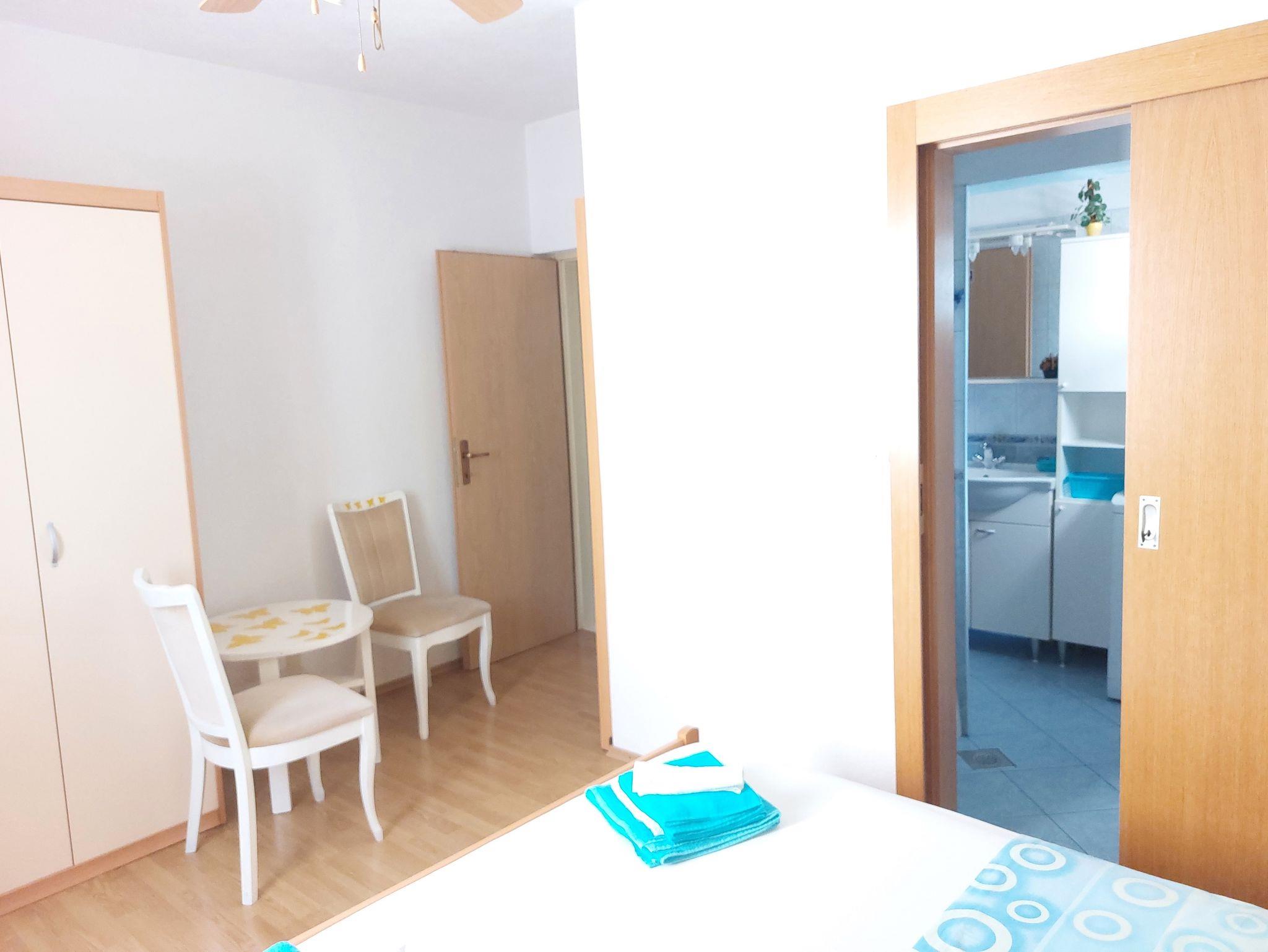 Ferienwohnung bietet Platz für 3 Gäste. Die Betten sind in Schlafzimmern, die es 1 gibt, und in Wohnzimmer, innerhalb einer Gesamtfläche von 43m2, angeordnet. Die Gäste haben eine eigene Terrasse zur Verfügung, auf der sie in warmen Sommernächten genießen können. Das Apartment bietet Meerblick. Es ist erlaubt, Speisen auf dem Gemeinschafts-Grill vorzubereiten. IM PREIS INBEGRIFFEN: Kurtaxe, Endreinigung, Klimatisierung, Parkplatz, Internet, Kinderbett, Bügeleisen, Bügelbrett, Föhn. VERBINDLICHE ZUSÄTZLICHE KOSTEN: Aufzahlung für Kurzaufenthalte (prozentualer Zuschlag pro Nächtigungsanzahl: 30% - 1, 20% - 2, 10% - 3). Die Verfügbarkeit zusätzlicher Dienstleistungen in Ihrem reservierten Termin und die Preise derselben (falls nicht aufgeführt) müssen im Voraus überprüft werden. Zusätzliche Dienstleistungen die in der Zahlungsaufforderung nicht aufgeführt sind werden direkt beim Vermieter bezahlt, angenommen der Gast nutzt auch diese. Ermäßigung auf den Grundpreis: Gratistag 14=13 (bei einem Aufenthalt von 14 Tagen oder mehr erhalten Sie einen Gratistag für den Aufenthalt bis 31.12.26).