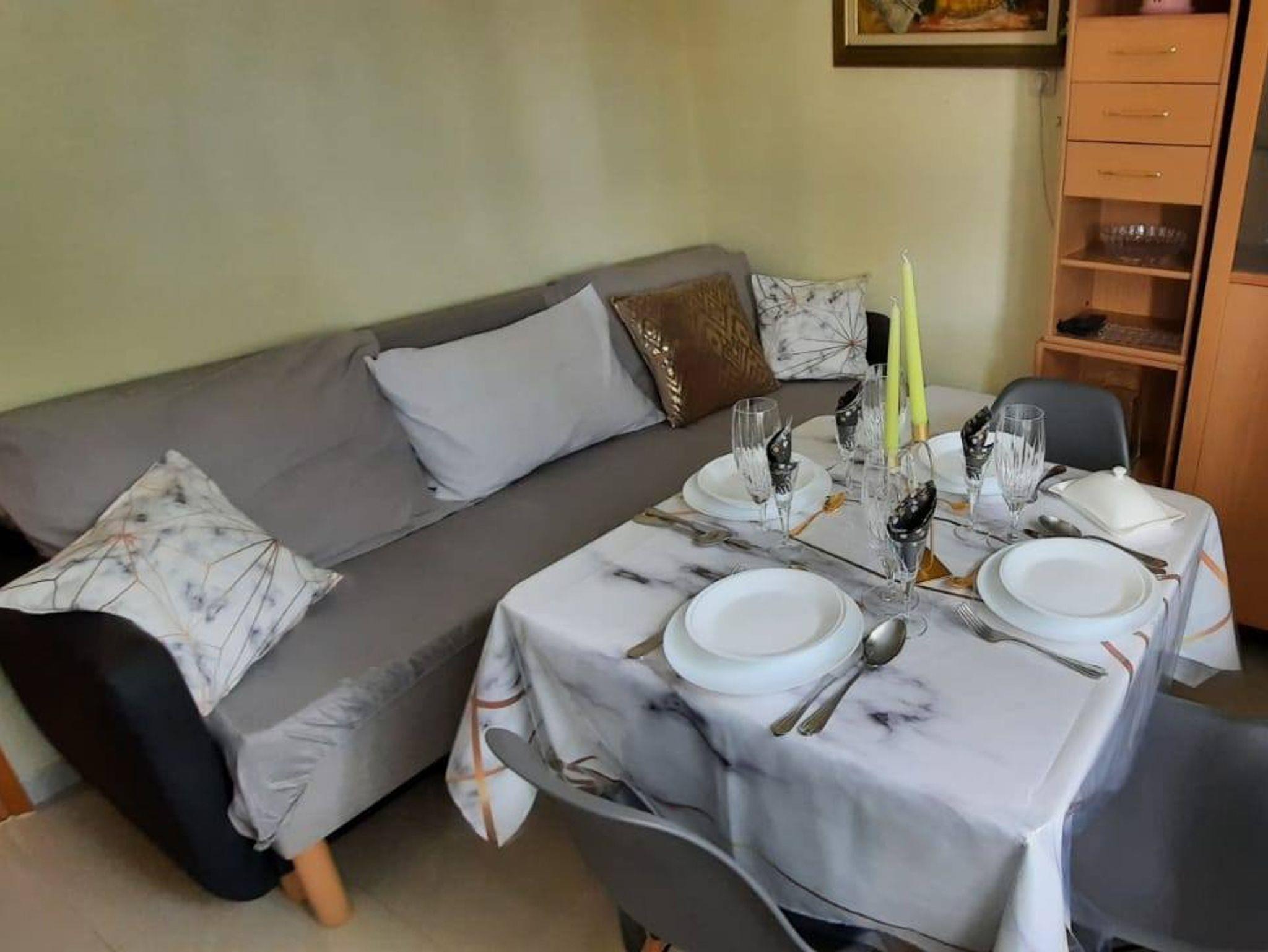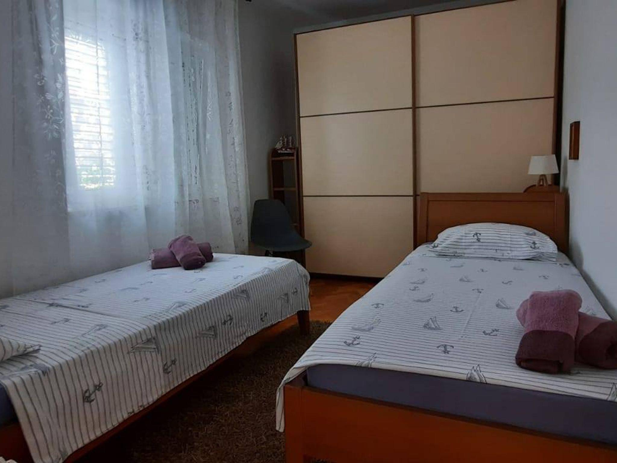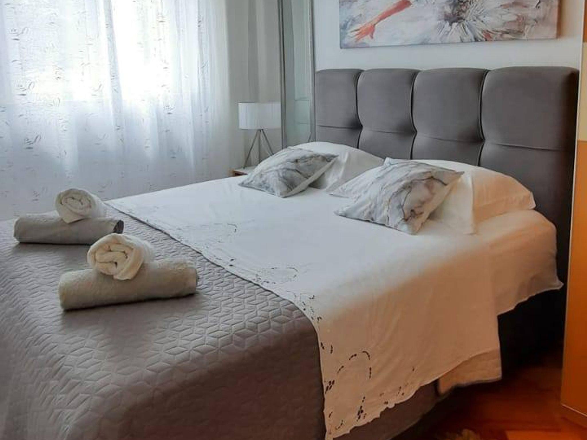 Ferienwohnung bietet Platz für 4 Gäste. Die Betten sind in Schlafzimmern, die es 2 gibt, innerhalb einer Gesamtfläche von 42m2, angeordnet. Die Gäste haben eine eigene Terrasse zur Verfügung, auf der sie in warmen Sommernächten genießen können. Für vollen Genuss und Entspannung gibt es einen privaten Grill für Gäste dieser Unterkunft. IM PREIS INBEGRIFFEN: Kurtaxe, Endreinigung, Klimatisierung, Parkplatz, Internet, Kinderbett, Bügeleisen, Bügelbrett, Föhn. Die Verfügbarkeit zusätzlicher Dienstleistungen in Ihrem reservierten Termin und die Preise derselben (falls nicht aufgeführt) müssen im Voraus überprüft werden. Zusätzliche Dienstleistungen die in der Zahlungsaufforderung nicht aufgeführt sind werden direkt beim Vermieter bezahlt, angenommen der Gast nutzt auch diese.