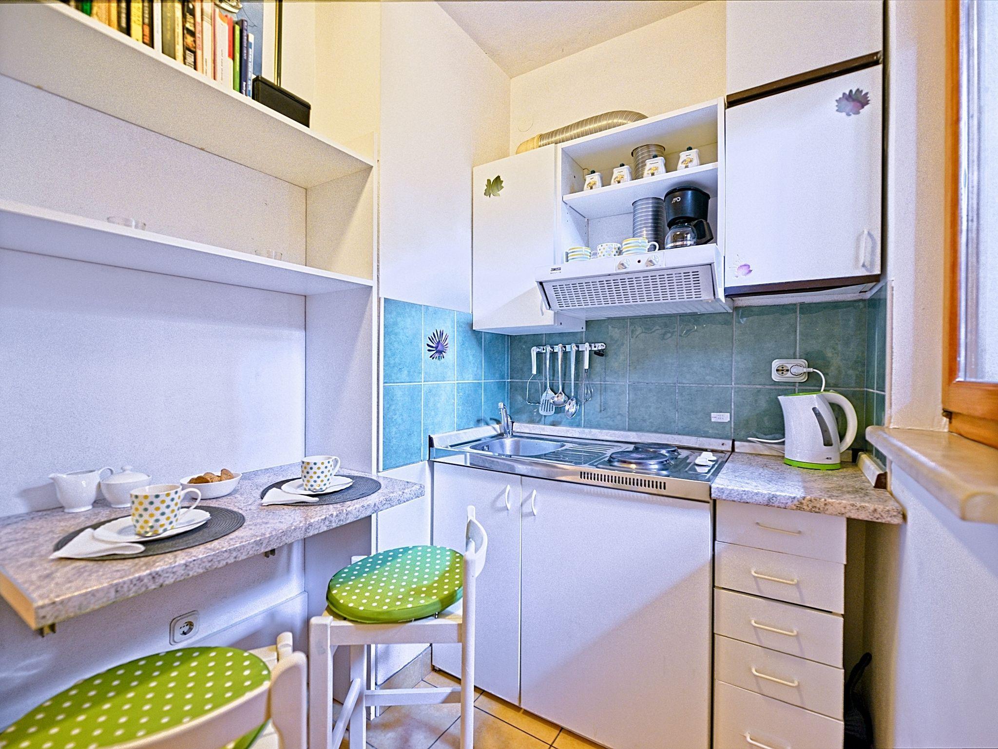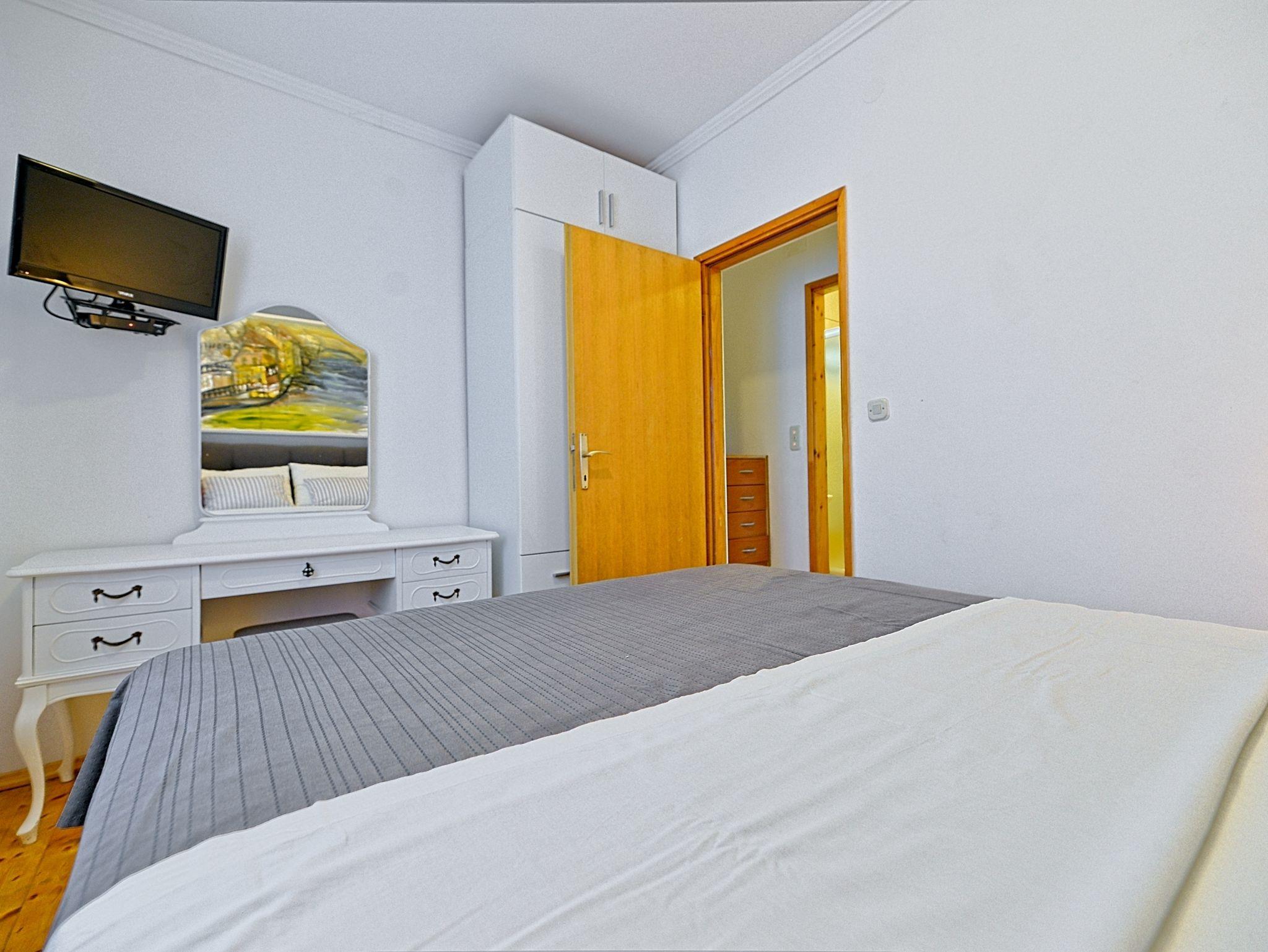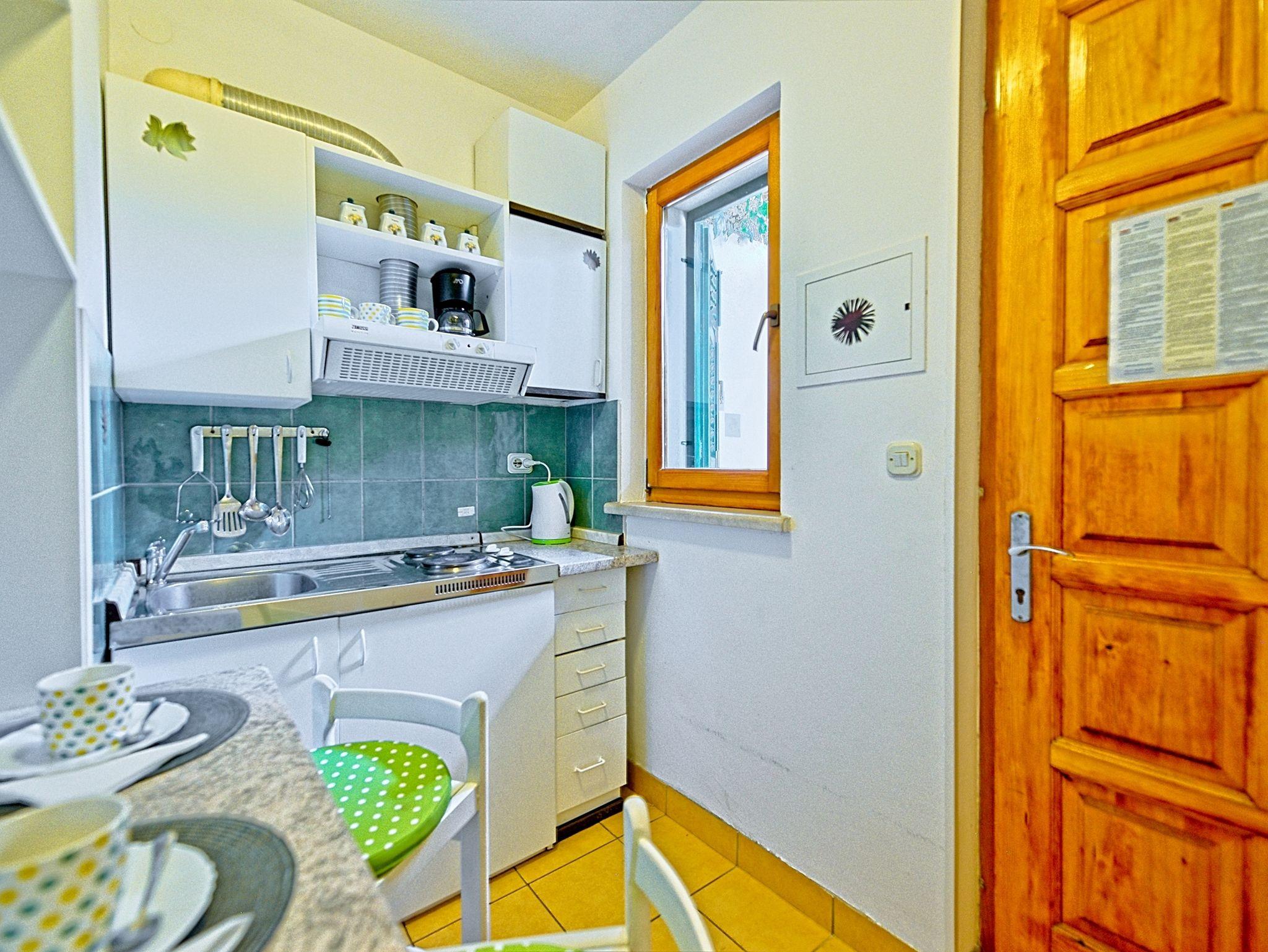 Ferienwohnung bietet Platz für 2 Gäste. Die Betten sind in Schlafzimmern, die es 1 gibt, innerhalb einer Gesamtfläche von 17m2, angeordnet. Die Gäste haben eine eigene Terrasse zur Verfügung, auf der sie in warmen Sommernächten genießen können. Das Apartment bietet Meerblick. Es ist erlaubt, Speisen auf dem Gemeinschafts-Grill vorzubereiten. In der Unterkunftseinheit besteht die Möglichkeit des Mitbringens von Haustieren gegen Aufpreis. IM PREIS INBEGRIFFEN: Kurtaxe, Endreinigung, Klimatisierung, Parkplatz, Internet, Kinderbett, Bügeleisen, Bügelbrett, Föhn, tragbarer Grill. VERBINDLICHE ZUSÄTZLICHE KOSTEN: Aufzahlung für Kurzaufenthalte (prozentualer Zuschlag pro Nächtigungsanzahl: 30% - 1, 20% - 2, 10% - 3). UNVERBINDLICHE ZUSÄTZLICHE KOSTEN: Wäschewaschen (5,00 € Waschen), Haustiere (7,00 € pro Nacht). Die Verfügbarkeit zusätzlicher Dienstleistungen in Ihrem reservierten Termin und die Preise derselben (falls nicht aufgeführt) müssen im Voraus überprüft werden. Zusätzliche Dienstleistungen die in der Zahlungsaufforderung nicht aufgeführt sind werden direkt beim Vermieter bezahlt, angenommen der Gast nutzt auch diese. Ermäßigung auf den Grundpreis: Gratistag 14=13 (bei einem Aufenthalt von 14 Tagen oder mehr erhalten Sie einen Gratistag für den Aufenthalt bis 31.12.26).