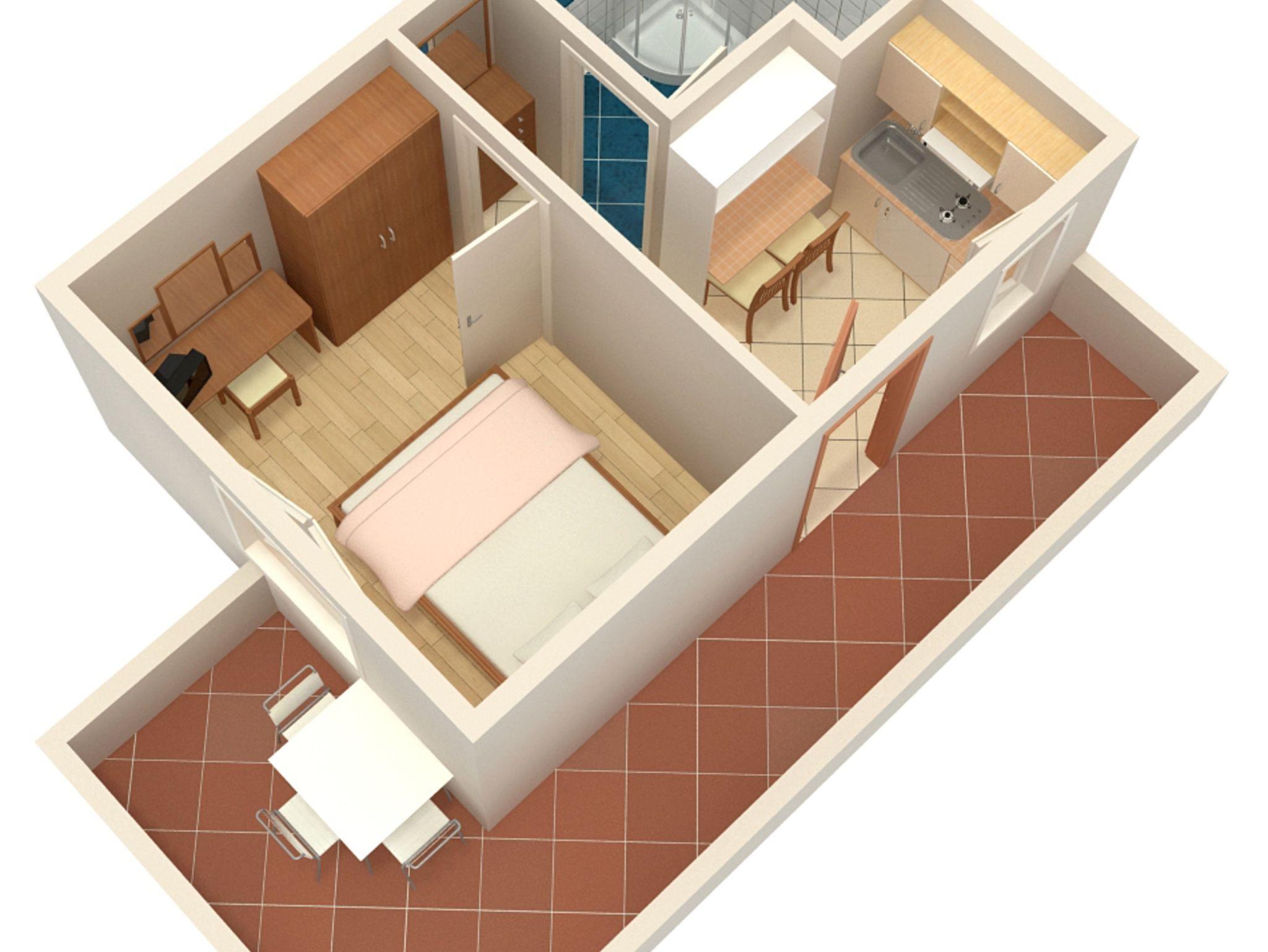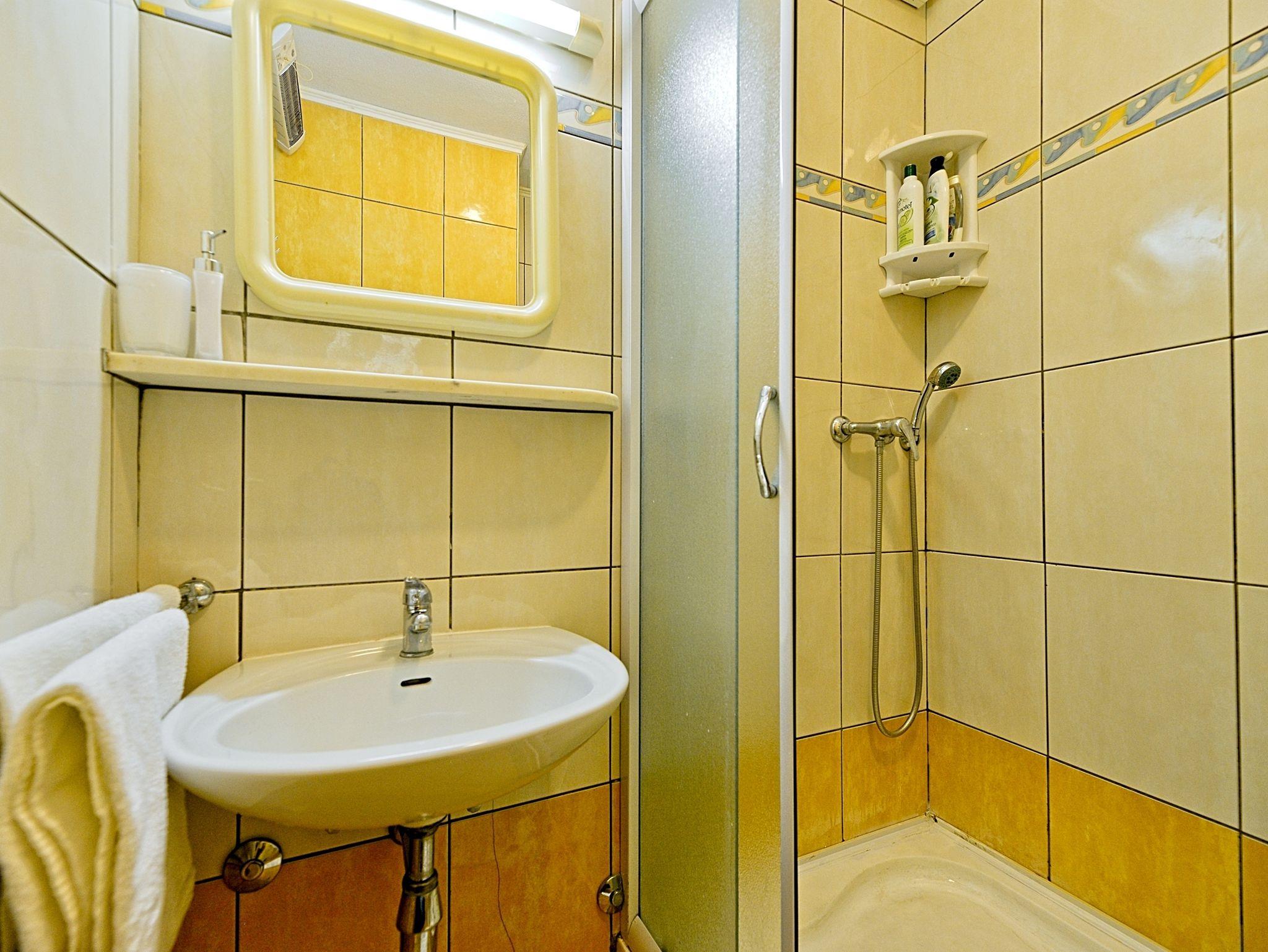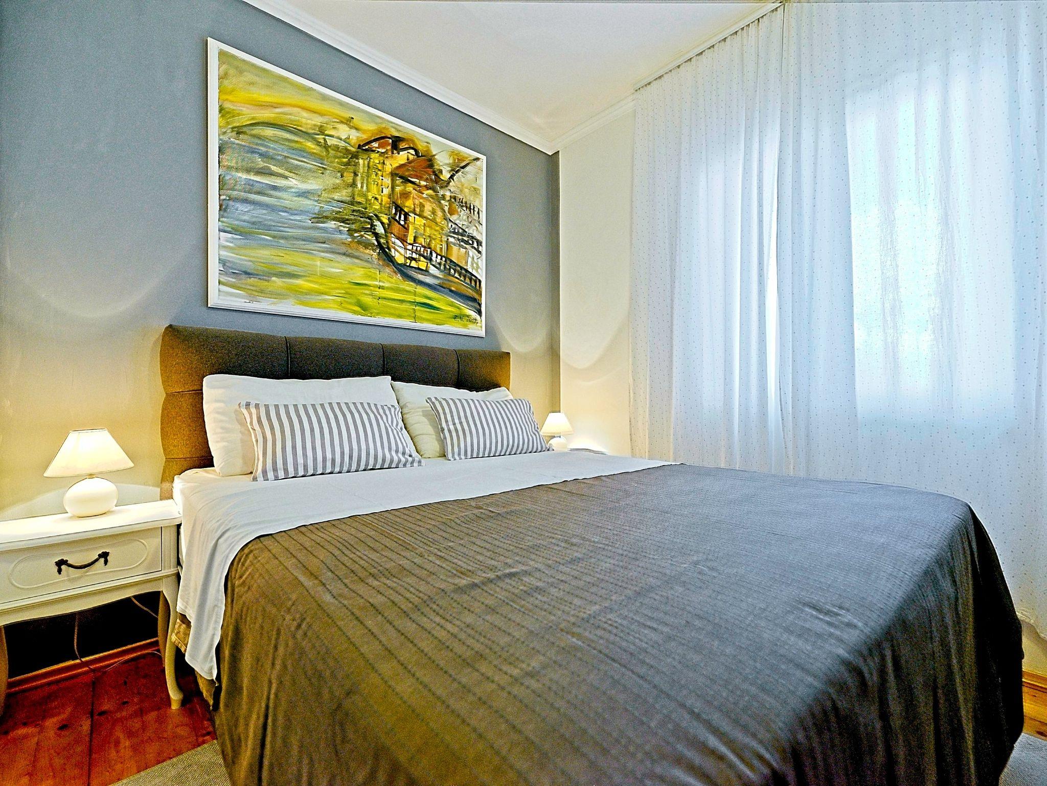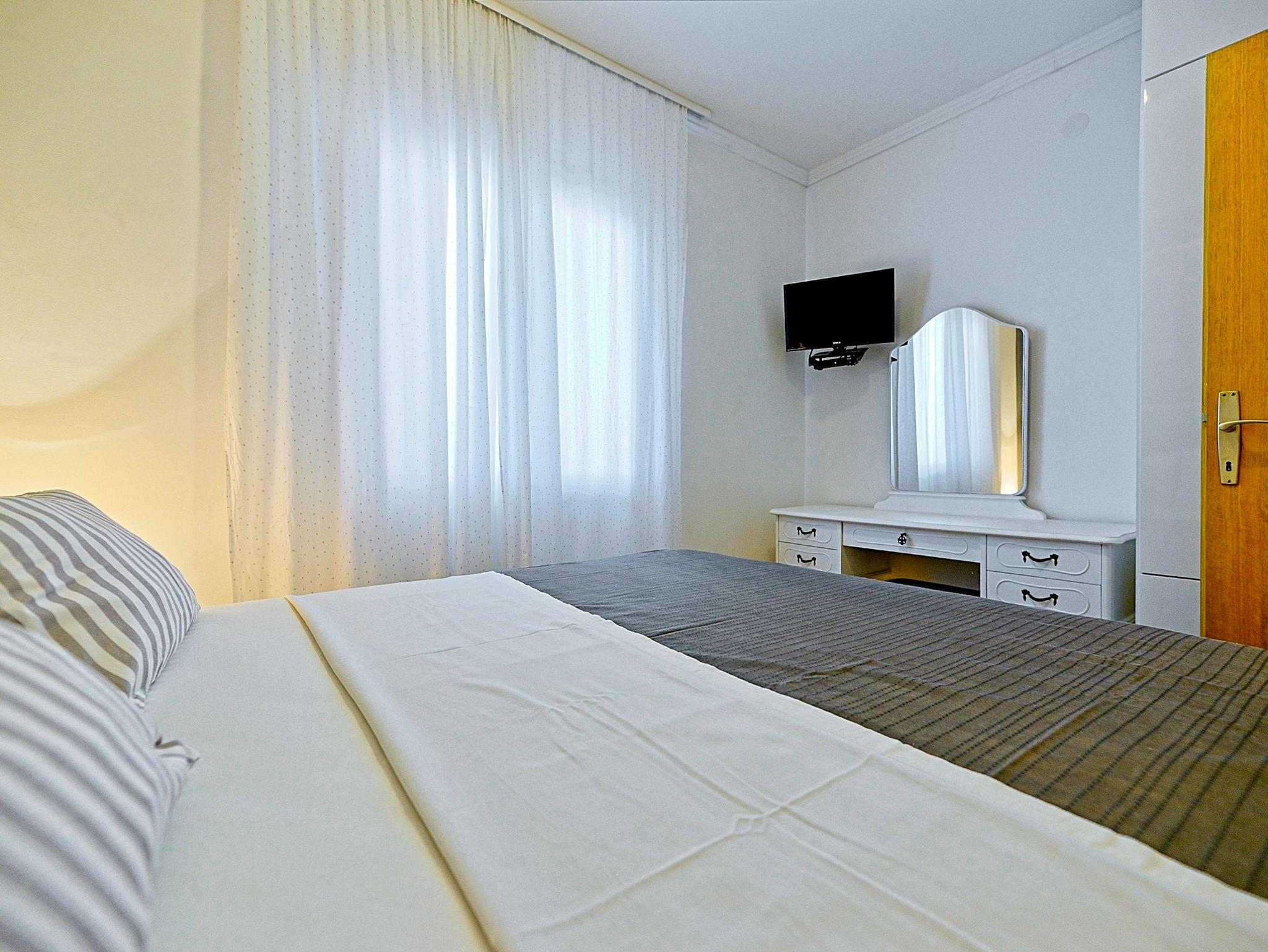 Ferienwohnung bietet Platz für 2 Gäste. Die Betten sind in Schlafzimmern, die es 1 gibt, innerhalb einer Gesamtfläche von 17m2, angeordnet. Die Gäste haben eine eigene Terrasse zur Verfügung, auf der sie in warmen Sommernächten genießen können. Das Apartment bietet Meerblick. Es ist erlaubt, Speisen auf dem Gemeinschafts-Grill vorzubereiten. In der Unterkunftseinheit besteht die Möglichkeit des Mitbringens von Haustieren gegen Aufpreis. IM PREIS INBEGRIFFEN: Kurtaxe, Endreinigung, Klimatisierung, Parkplatz, Internet, Kinderbett, Bügeleisen, Bügelbrett, Föhn, tragbarer Grill. VERBINDLICHE ZUSÄTZLICHE KOSTEN: Aufzahlung für Kurzaufenthalte (prozentualer Zuschlag pro Nächtigungsanzahl: 30% - 1, 20% - 2, 10% - 3). UNVERBINDLICHE ZUSÄTZLICHE KOSTEN: Wäschewaschen (5,00 € Waschen), Haustiere (7,00 € pro Nacht). Die Verfügbarkeit zusätzlicher Dienstleistungen in Ihrem reservierten Termin und die Preise derselben (falls nicht aufgeführt) müssen im Voraus überprüft werden. Zusätzliche Dienstleistungen die in der Zahlungsaufforderung nicht aufgeführt sind werden direkt beim Vermieter bezahlt, angenommen der Gast nutzt auch diese. Ermäßigung auf den Grundpreis: Gratistag 14=13 (bei einem Aufenthalt von 14 Tagen oder mehr erhalten Sie einen Gratistag für den Aufenthalt bis 31.12.26).