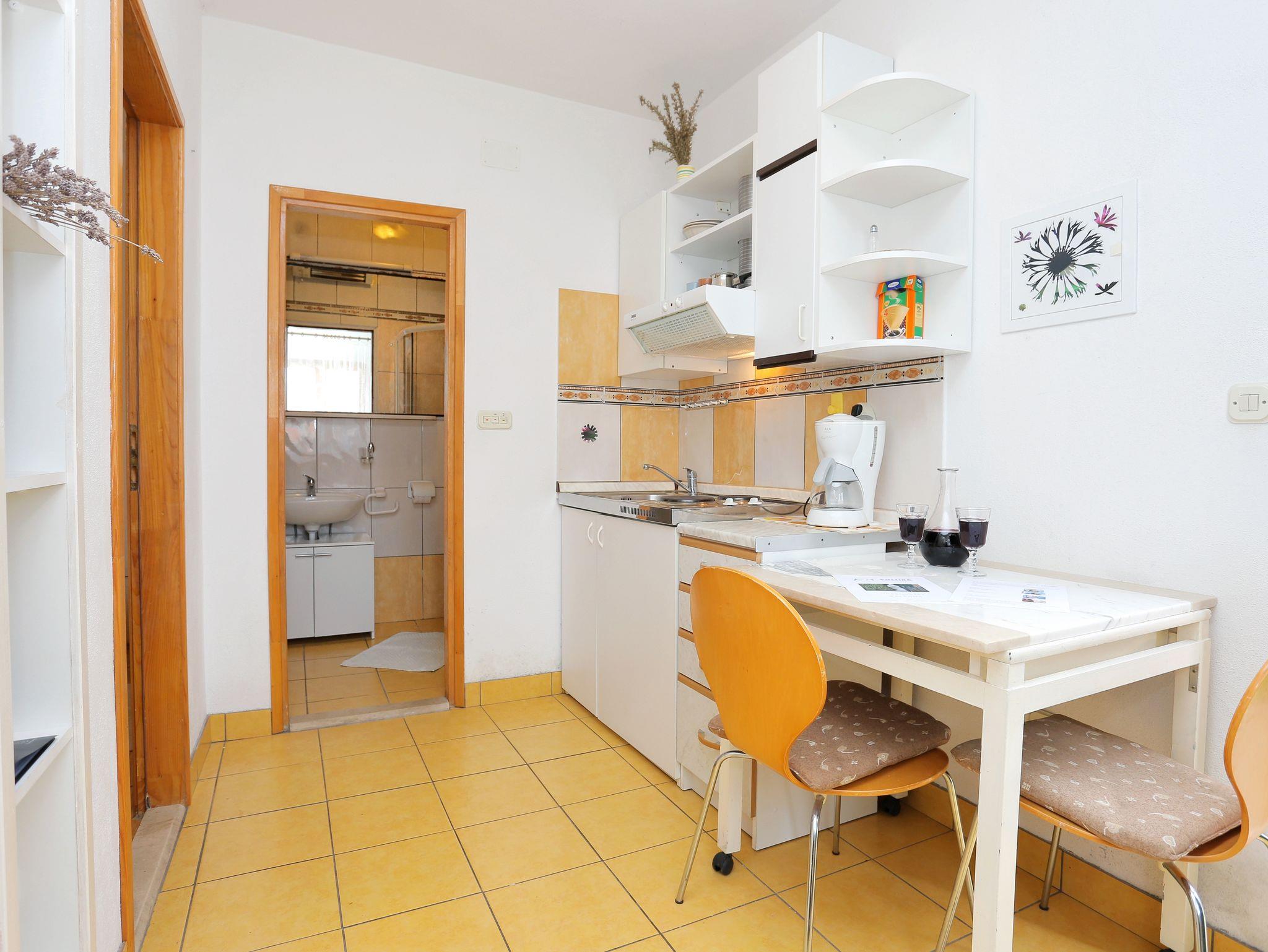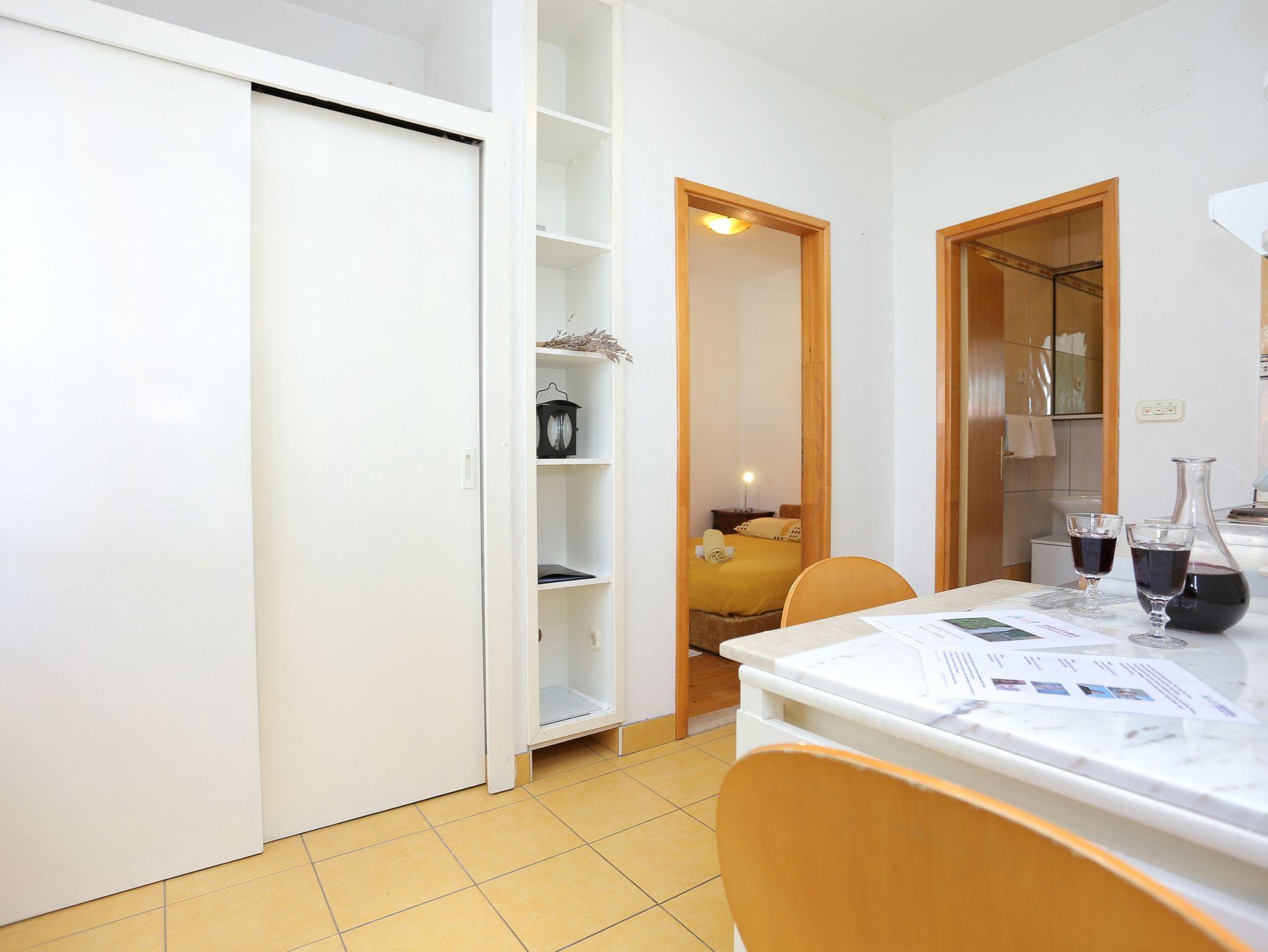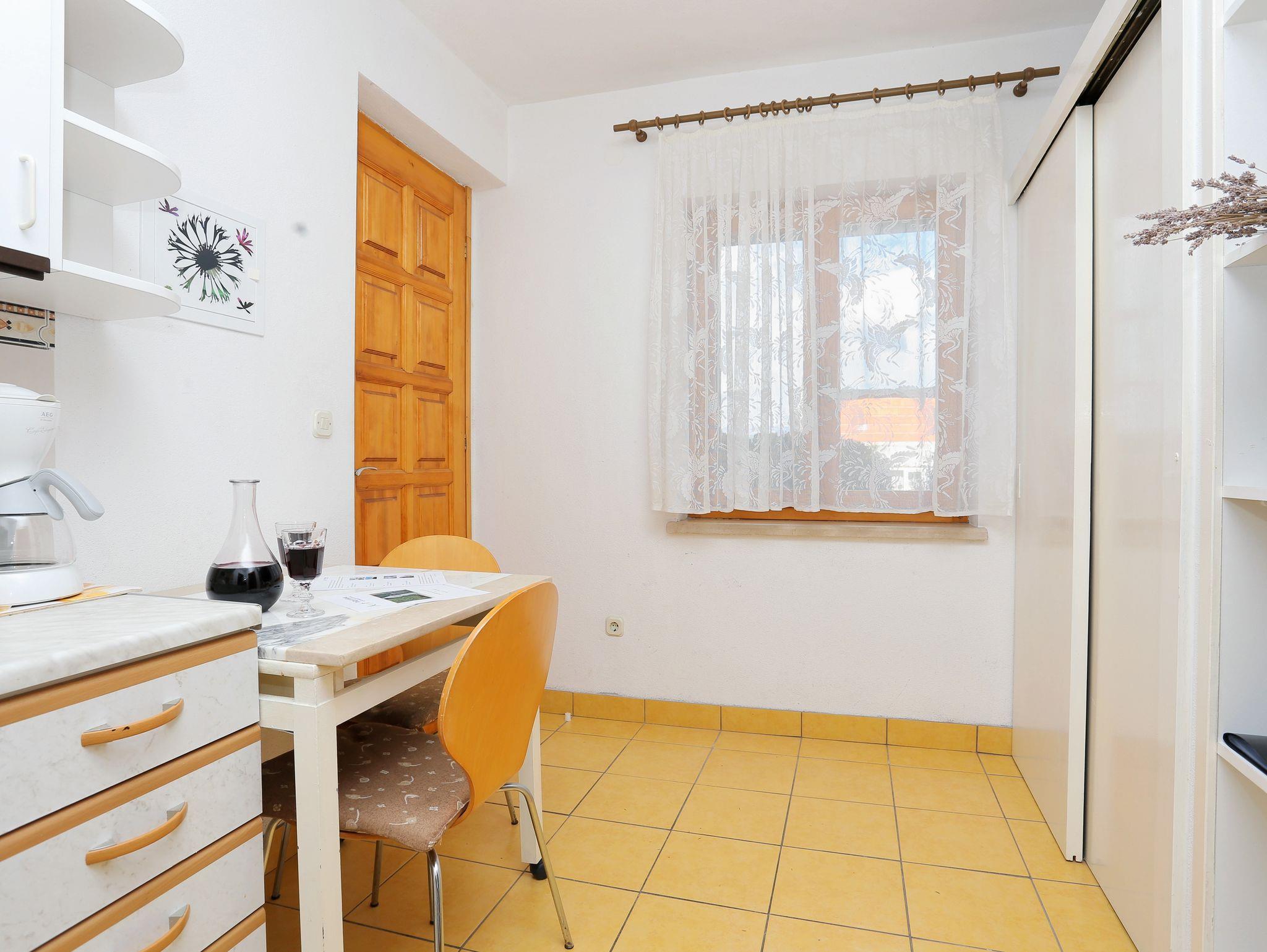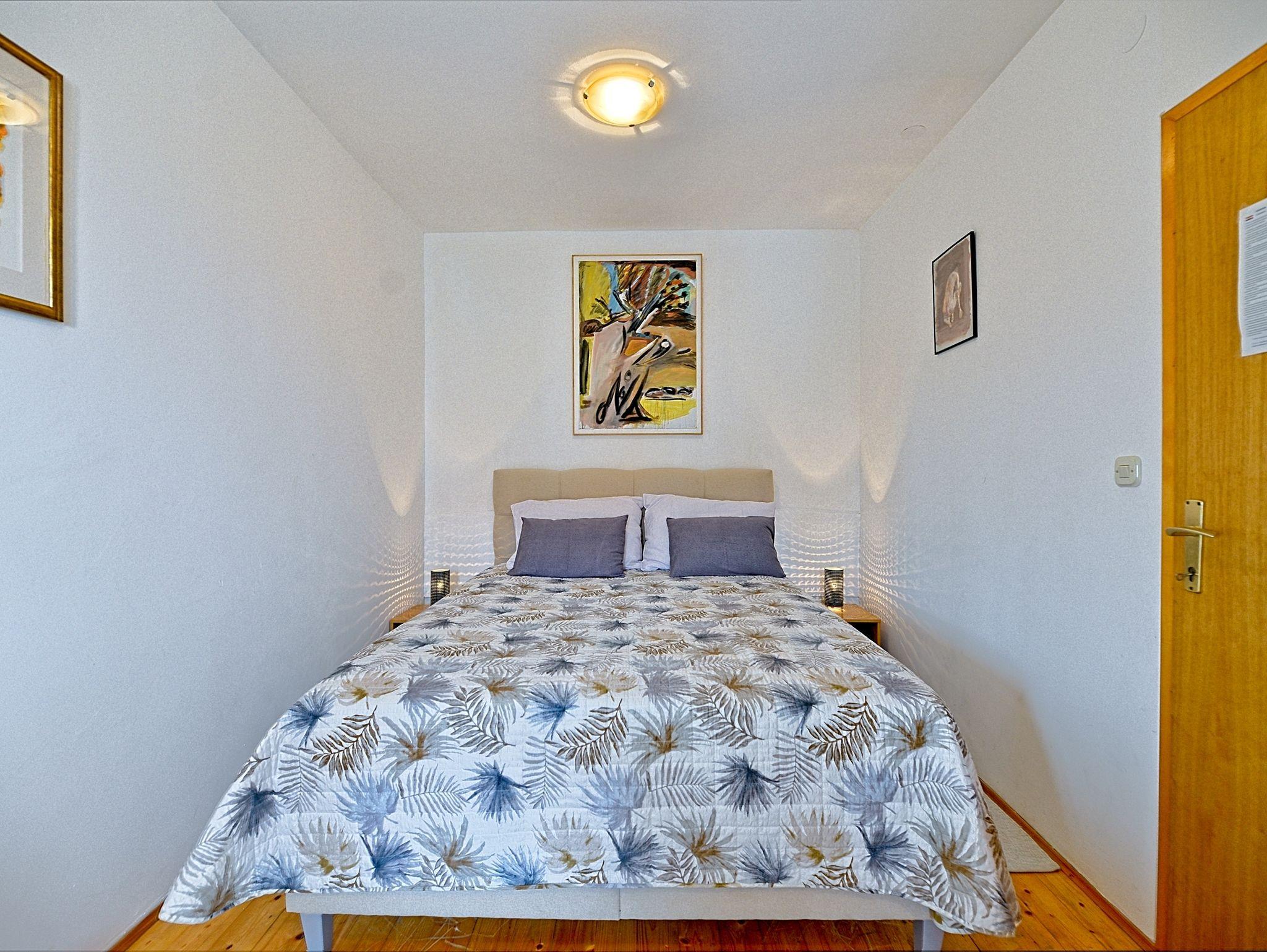Ferienwohnung bietet Platz für 2 Gäste. Die Betten sind in Schlafzimmern, die es 1 gibt, innerhalb einer Gesamtfläche von 22m2, angeordnet. Die Gäste haben eine eigene Terrasse zur Verfügung, auf der sie in warmen Sommernächten genießen können. Das Apartment bietet Meerblick. Es ist erlaubt, Speisen auf dem Gemeinschafts-Grill vorzubereiten. In der Unterkunftseinheit besteht die Möglichkeit des Mitbringens von Haustieren gegen Aufpreis. IM PREIS INBEGRIFFEN: Kurtaxe, Endreinigung, Klimatisierung, Parkplatz, Internet, Kinderbett, Bügeleisen, Bügelbrett, Föhn, tragbarer Grill. VERBINDLICHE ZUSÄTZLICHE KOSTEN: Aufzahlung für Kurzaufenthalte (prozentualer Zuschlag pro Nächtigungsanzahl: 30% - 1, 20% - 2, 10% - 3). UNVERBINDLICHE ZUSÄTZLICHE KOSTEN: Wäschewaschen (5,00 € Waschen), Haustiere (7,00 € pro Nacht). Die Verfügbarkeit zusätzlicher Dienstleistungen in Ihrem reservierten Termin und die Preise derselben (falls nicht aufgeführt) müssen im Voraus überprüft werden. Zusätzliche Dienstleistungen die in der Zahlungsaufforderung nicht aufgeführt sind werden direkt beim Vermieter bezahlt, angenommen der Gast nutzt auch diese. Ermäßigung auf den Grundpreis: Gratistag 14=13 (bei einem Aufenthalt von 14 Tagen oder mehr erhalten Sie einen Gratistag für den Aufenthalt bis 31.12.26).