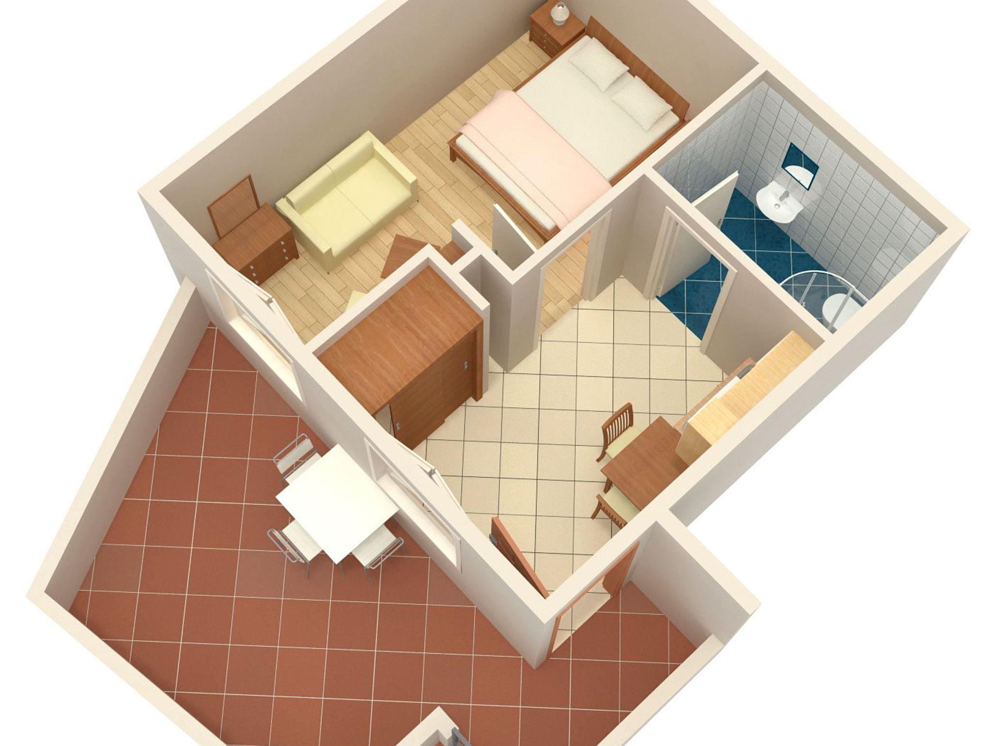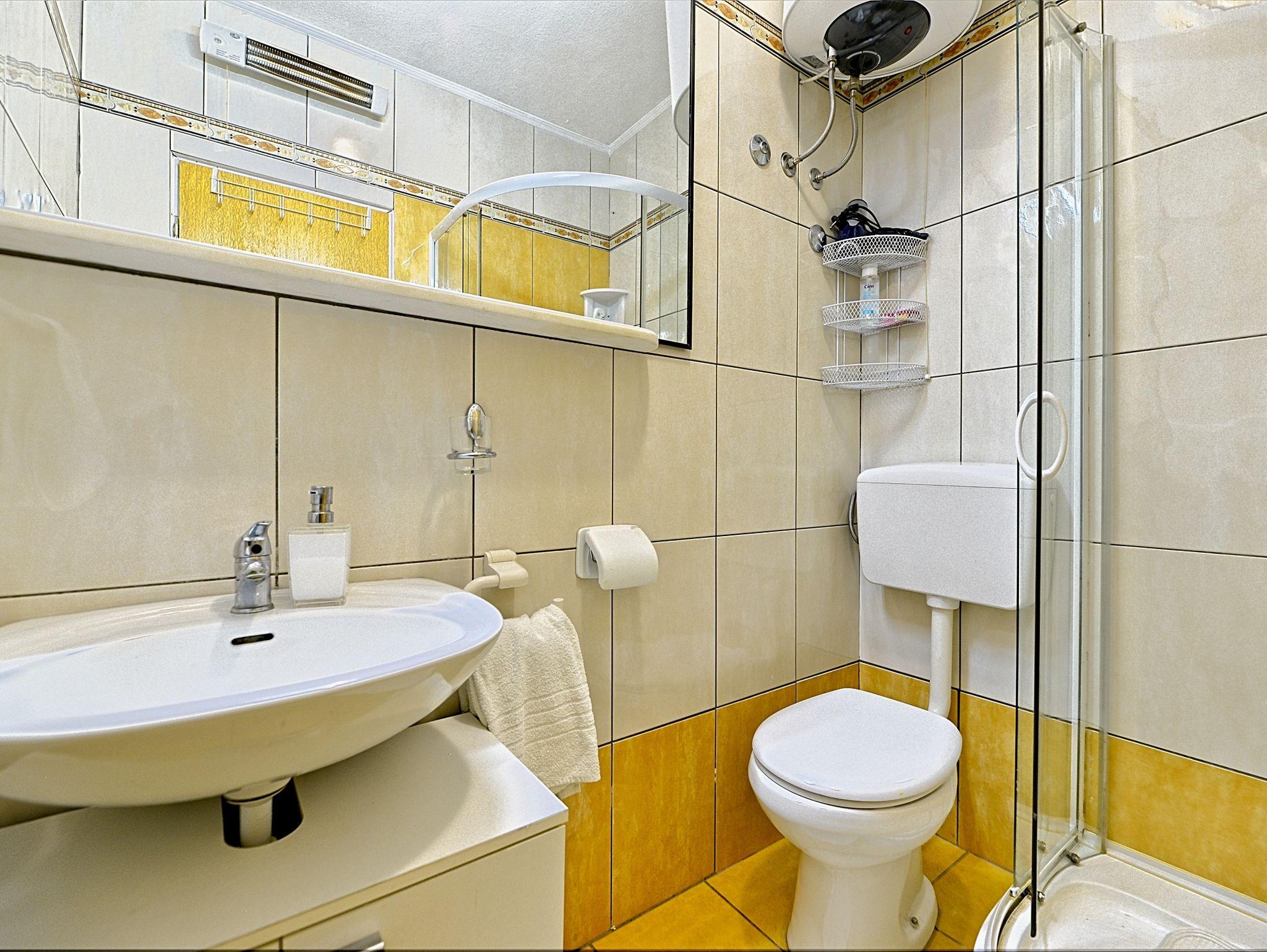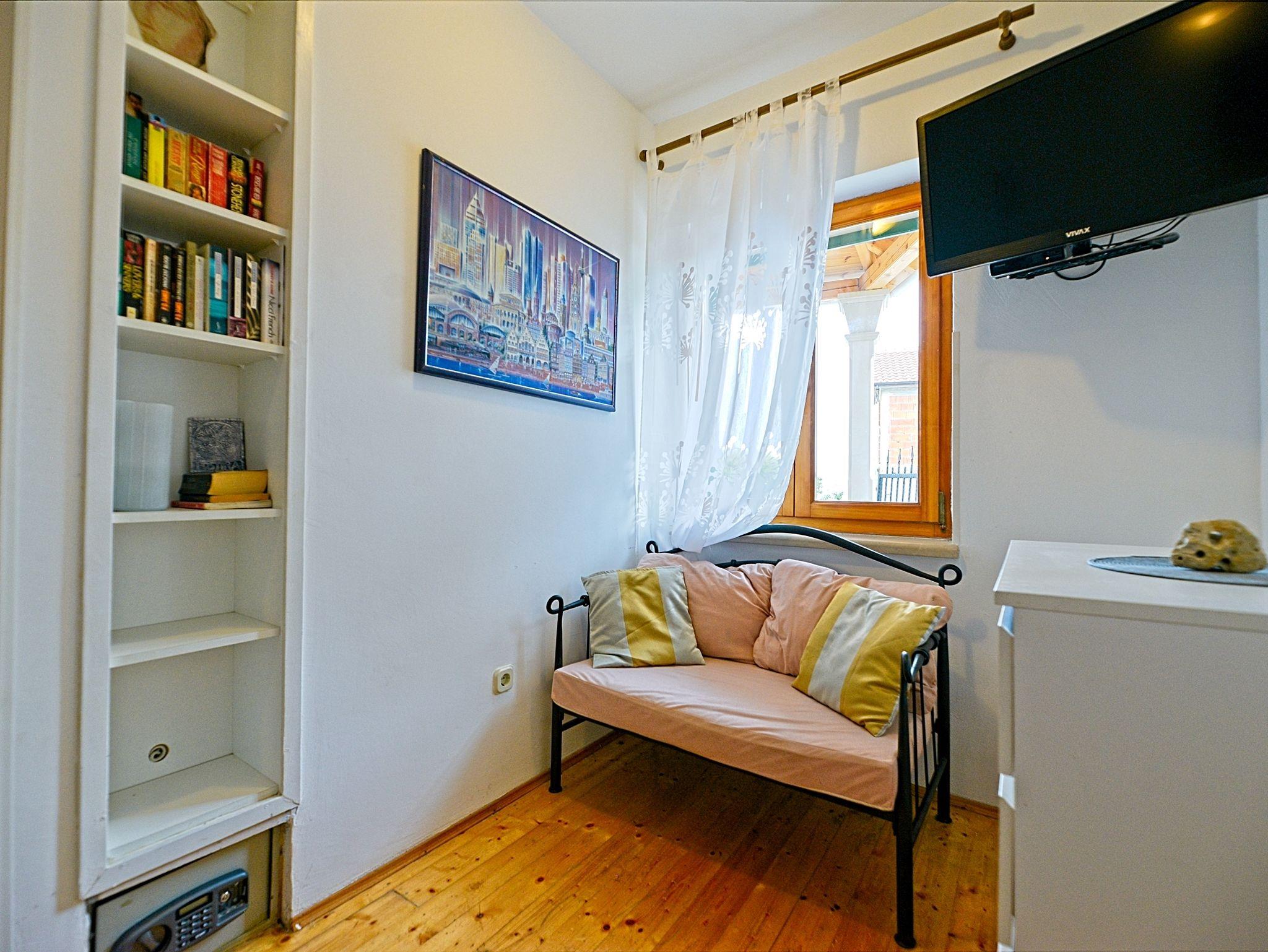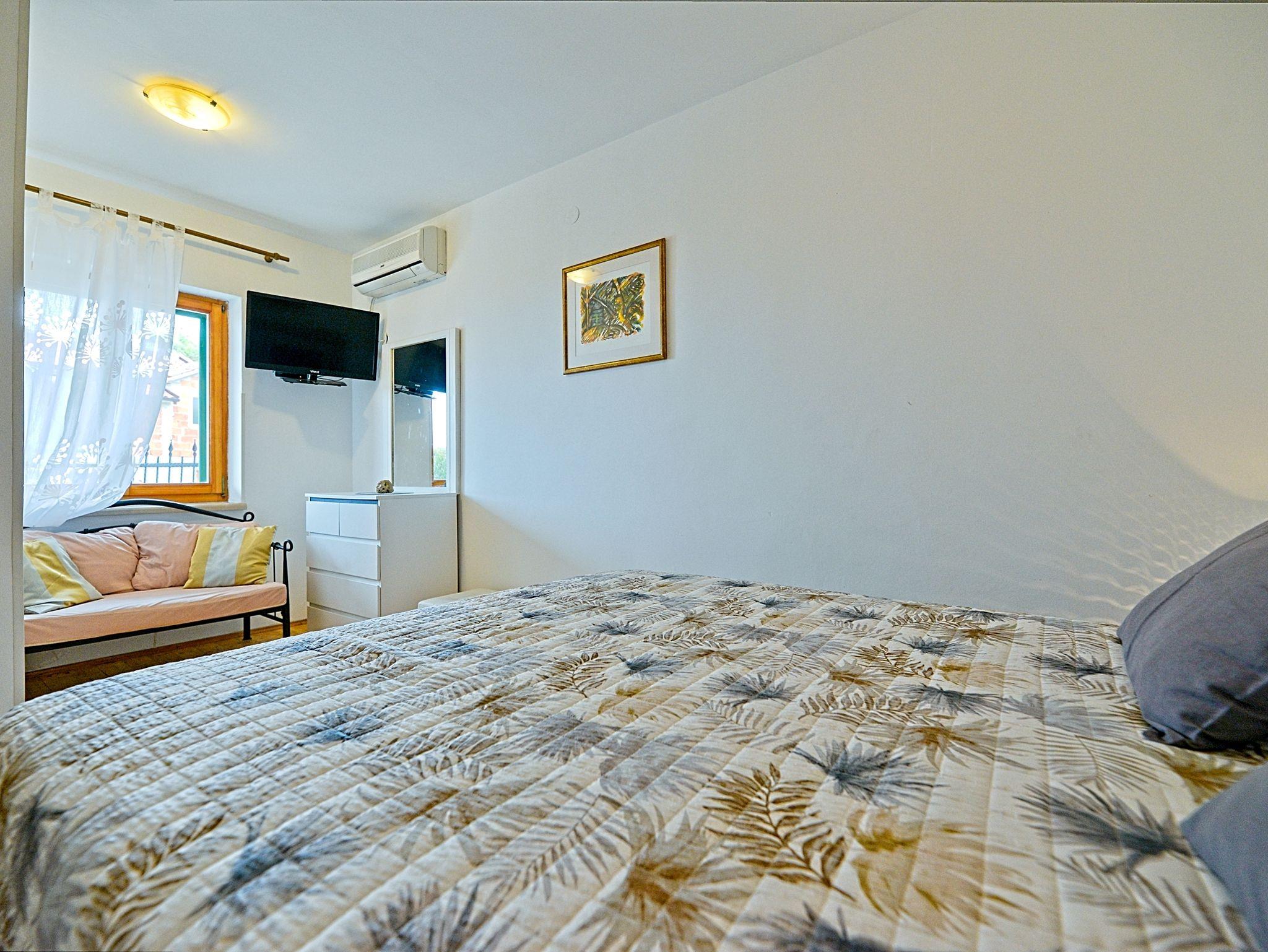 Ferienwohnung bietet Platz für 2 Gäste. Die Betten sind in Schlafzimmern, die es 1 gibt, innerhalb einer Gesamtfläche von 22m2, angeordnet. Die Gäste haben eine eigene Terrasse zur Verfügung, auf der sie in warmen Sommernächten genießen können. Das Apartment bietet Meerblick. Es ist erlaubt, Speisen auf dem Gemeinschafts-Grill vorzubereiten. In der Unterkunftseinheit besteht die Möglichkeit des Mitbringens von Haustieren gegen Aufpreis. IM PREIS INBEGRIFFEN: Kurtaxe, Endreinigung, Klimatisierung, Parkplatz, Internet, Kinderbett, Bügeleisen, Bügelbrett, Föhn, tragbarer Grill. VERBINDLICHE ZUSÄTZLICHE KOSTEN: Aufzahlung für Kurzaufenthalte (prozentualer Zuschlag pro Nächtigungsanzahl: 30% - 1, 20% - 2, 10% - 3). UNVERBINDLICHE ZUSÄTZLICHE KOSTEN: Wäschewaschen (5,00 € Waschen), Haustiere (7,00 € pro Nacht). Die Verfügbarkeit zusätzlicher Dienstleistungen in Ihrem reservierten Termin und die Preise derselben (falls nicht aufgeführt) müssen im Voraus überprüft werden. Zusätzliche Dienstleistungen die in der Zahlungsaufforderung nicht aufgeführt sind werden direkt beim Vermieter bezahlt, angenommen der Gast nutzt auch diese. Ermäßigung auf den Grundpreis: Gratistag 14=13 (bei einem Aufenthalt von 14 Tagen oder mehr erhalten Sie einen Gratistag für den Aufenthalt bis 31.12.26).