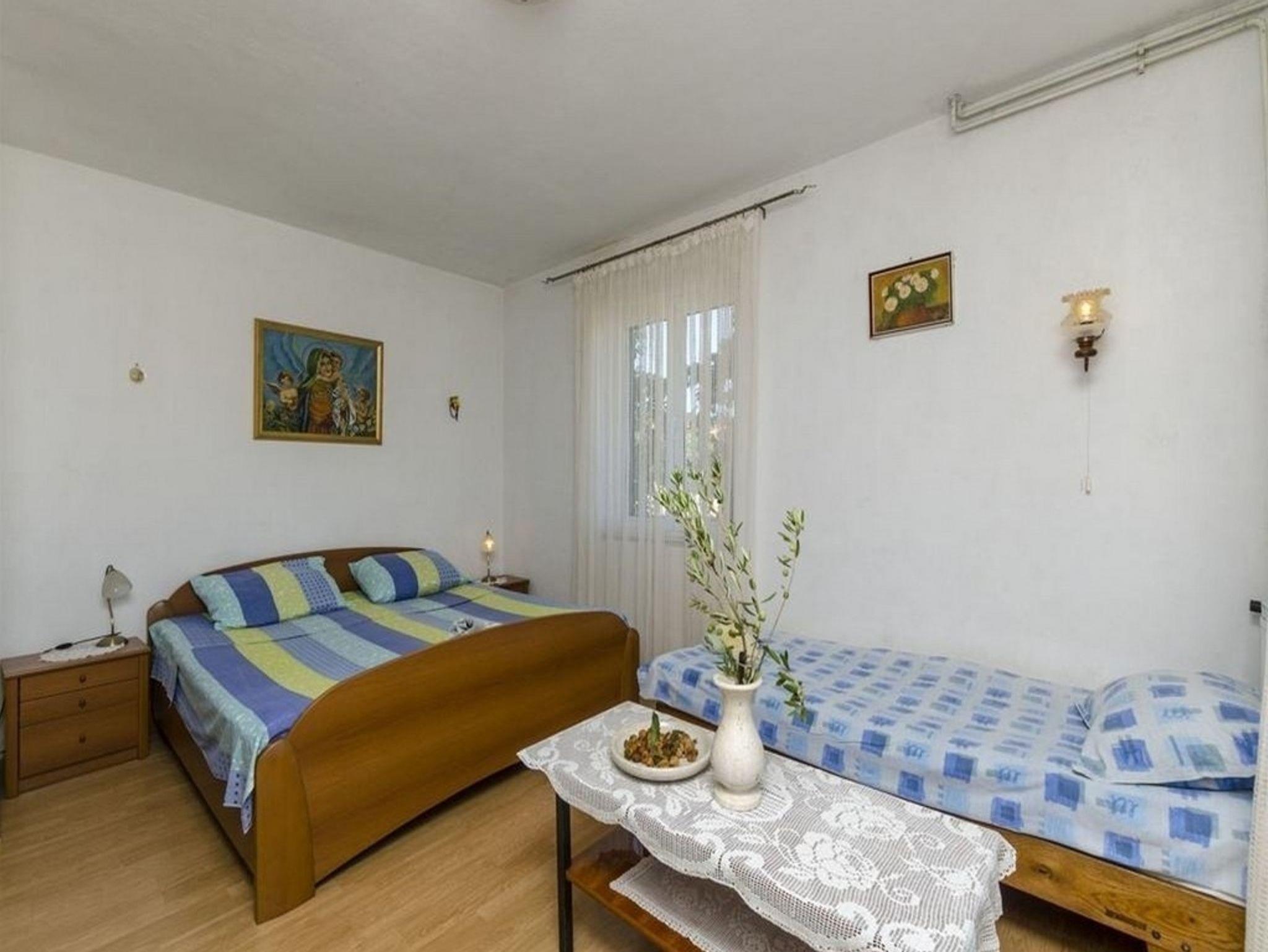 Ferienwohnung bietet Platz für 4 Gäste. Die Betten sind in Schlafzimmern, die es 1 gibt, und in Wohnzimmer, innerhalb einer Gesamtfläche von 57m2, angeordnet. Die Gäste haben eine eigene Terrasse zur Verfügung, auf der sie in warmen Sommernächten genießen können. Das Apartment bietet Meerblick. In der Unterkunftseinheit besteht die Möglichkeit des Mitbringens von Haustieren gegen Aufpreis. IM PREIS INBEGRIFFEN: Kurtaxe, Endreinigung, Klimatisierung, Parkplatz, Internet, Bügeleisen, Föhn. VERBINDLICHE ZUSÄTZLICHE KOSTEN: Aufzahlung für Kurzaufenthalte (prozentualer Zuschlag pro Nächtigungsanzahl: 30% - 1, 20% - 2, 10% - 3). UNVERBINDLICHE ZUSÄTZLICHE KOSTEN: Haustiere (5,00 € pro Nacht). Die Verfügbarkeit zusätzlicher Dienstleistungen in Ihrem reservierten Termin und die Preise derselben (falls nicht aufgeführt) müssen im Voraus überprüft werden. Zusätzliche Dienstleistungen die in der Zahlungsaufforderung nicht aufgeführt sind werden direkt beim Vermieter bezahlt, angenommen der Gast nutzt auch diese.