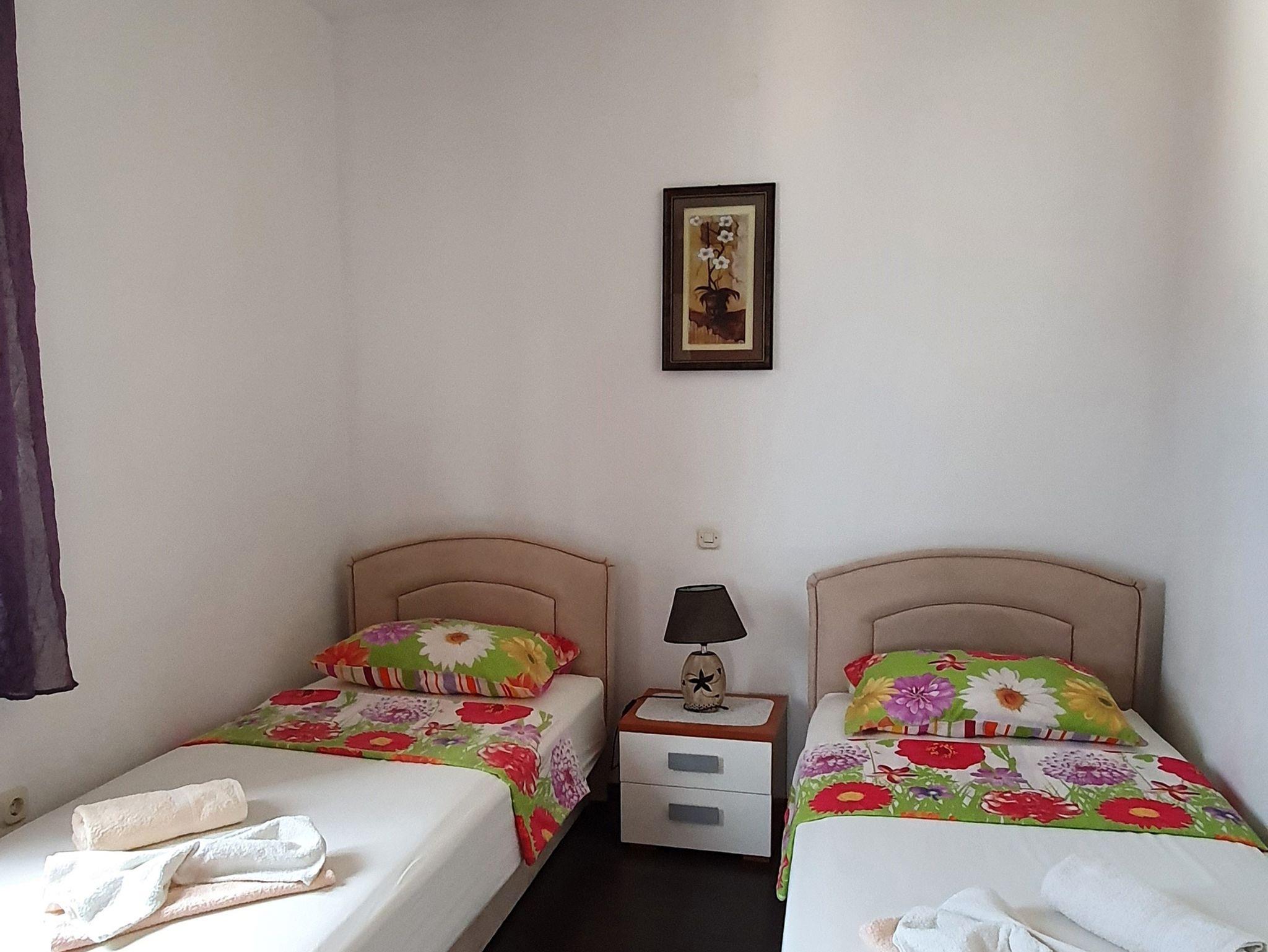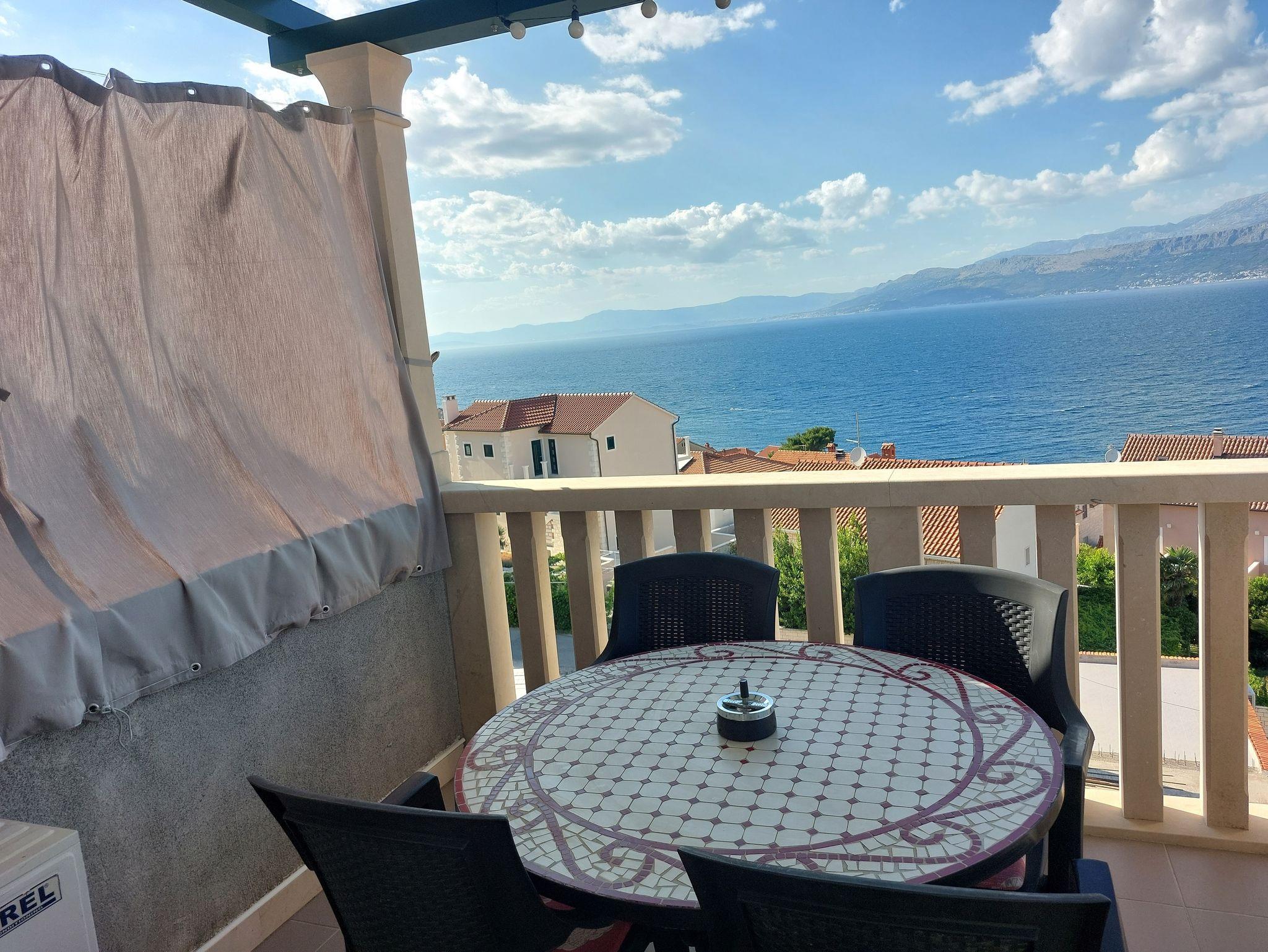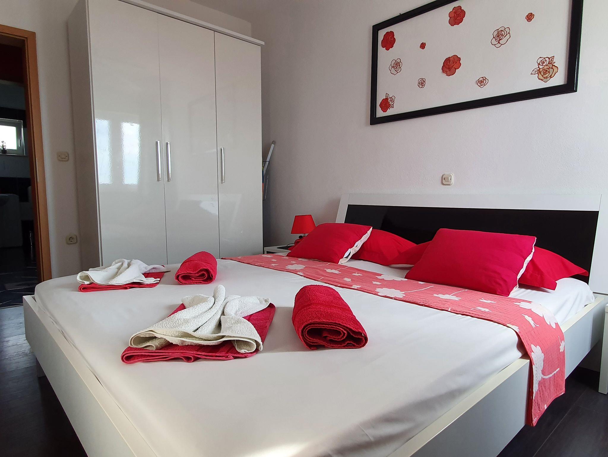 Ferienwohnung bietet Platz für 4 Gäste. Die Betten sind in Schlafzimmern, die es 2 gibt, innerhalb einer Gesamtfläche von 41m2, angeordnet. Die Gäste haben eine eigene Terrasse zur Verfügung, auf der sie in warmen Sommernächten genießen können. Das Apartment bietet Meerblick. Es ist erlaubt, Speisen auf dem Gemeinschafts-Grill vorzubereiten. IM PREIS INBEGRIFFEN: Kurtaxe, Endreinigung, Klimatisierung, Parkplatz, Internet, Kinderbett, Bügeleisen, Bügelbrett, Föhn. VERBINDLICHE ZUSÄTZLICHE KOSTEN: Aufzahlung für Kurzaufenthalte (prozentualer Zuschlag pro Nächtigungsanzahl: 30% - 1, 20% - 2, 10% - 3). Die Verfügbarkeit zusätzlicher Dienstleistungen in Ihrem reservierten Termin und die Preise derselben (falls nicht aufgeführt) müssen im Voraus überprüft werden. Zusätzliche Dienstleistungen die in der Zahlungsaufforderung nicht aufgeführt sind werden direkt beim Vermieter bezahlt, angenommen der Gast nutzt auch diese. Ermäßigung auf den Grundpreis: Gratistag 14=13 (bei einem Aufenthalt von 14 Tagen oder mehr erhalten Sie einen Gratistag für den Aufenthalt bis 31.12.26).