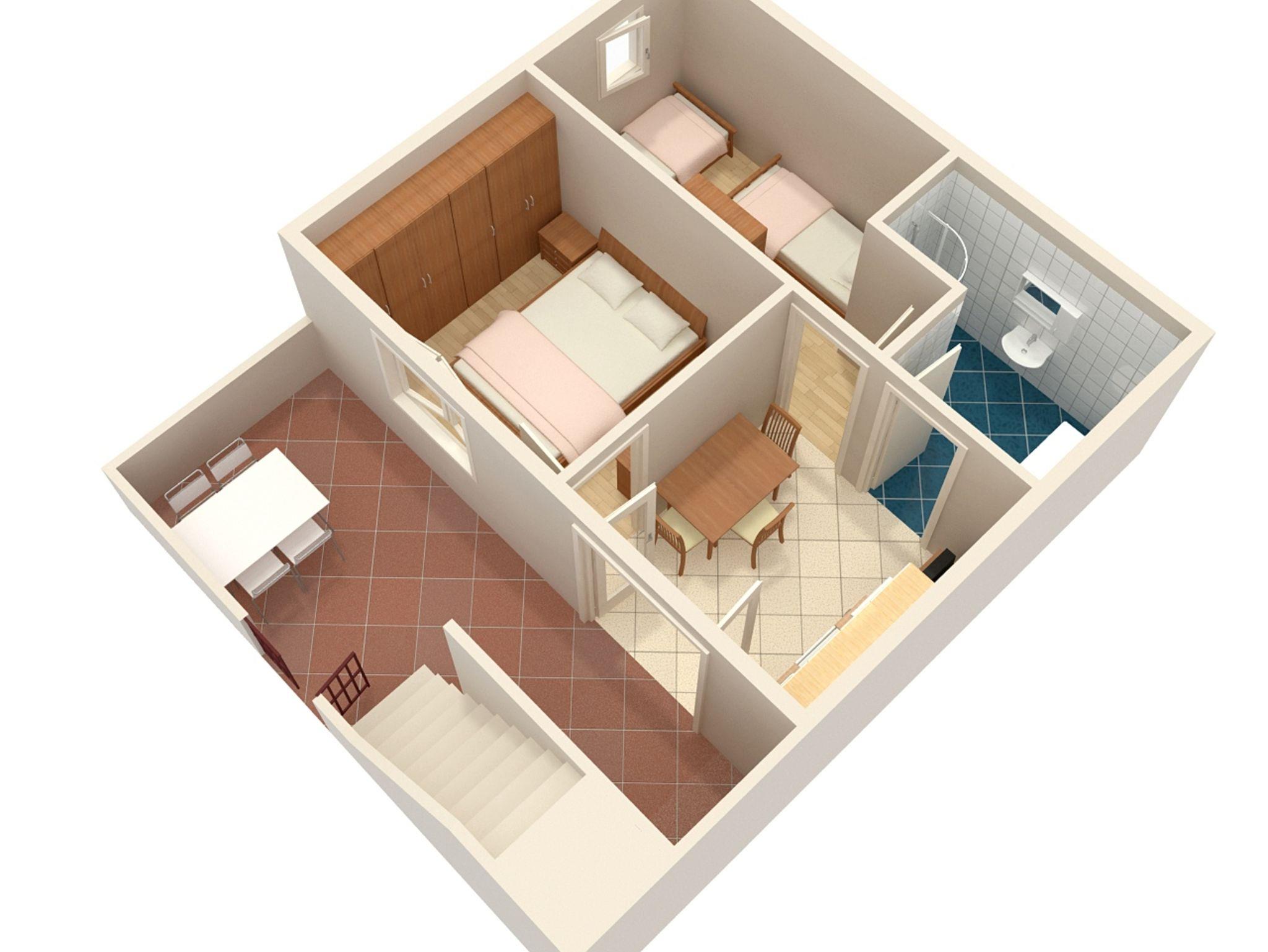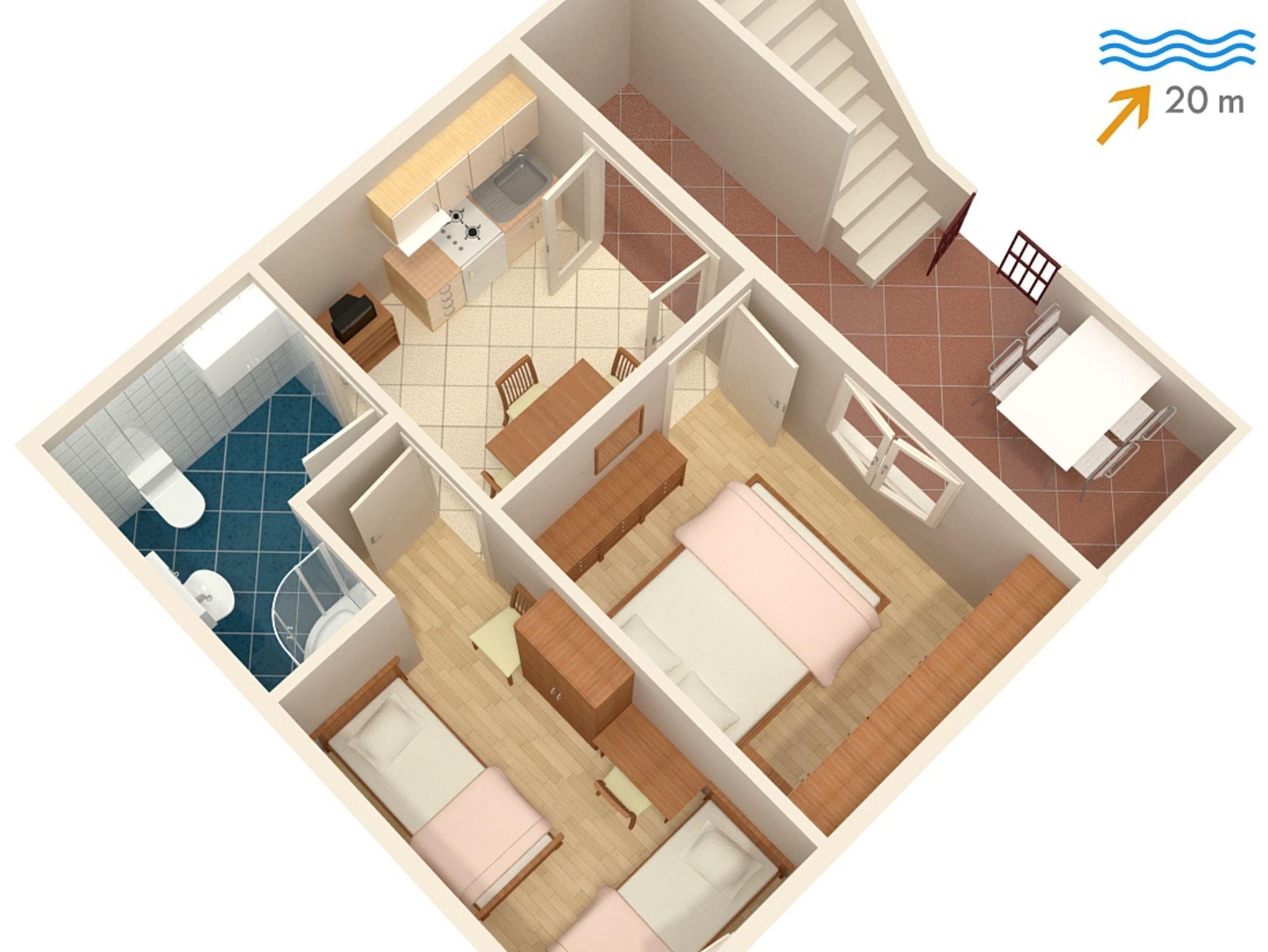 Ferienwohnung bietet Platz für 4 Gäste. Die Betten sind in Schlafzimmern, die es 2 gibt, innerhalb einer Gesamtfläche von 30m2, angeordnet. Die Gäste haben eine eigene Terrasse zur Verfügung, auf der sie in warmen Sommernächten genießen können. Das Apartment bietet Meerblick. Es ist erlaubt, Speisen auf dem Gemeinschafts-Grill vorzubereiten. Durch die Terrasse der gebuchten Unterkunftseinheit gehen auch andere Gäste oder Vermieter. IM PREIS INBEGRIFFEN: Kurtaxe, Endreinigung, Internet, Bügeleisen, Föhn, tragbarer Grill. Die Verfügbarkeit zusätzlicher Dienstleistungen in Ihrem reservierten Termin und die Preise derselben (falls nicht aufgeführt) müssen im Voraus überprüft werden. Zusätzliche Dienstleistungen die in der Zahlungsaufforderung nicht aufgeführt sind werden direkt beim Vermieter bezahlt, angenommen der Gast nutzt auch diese.