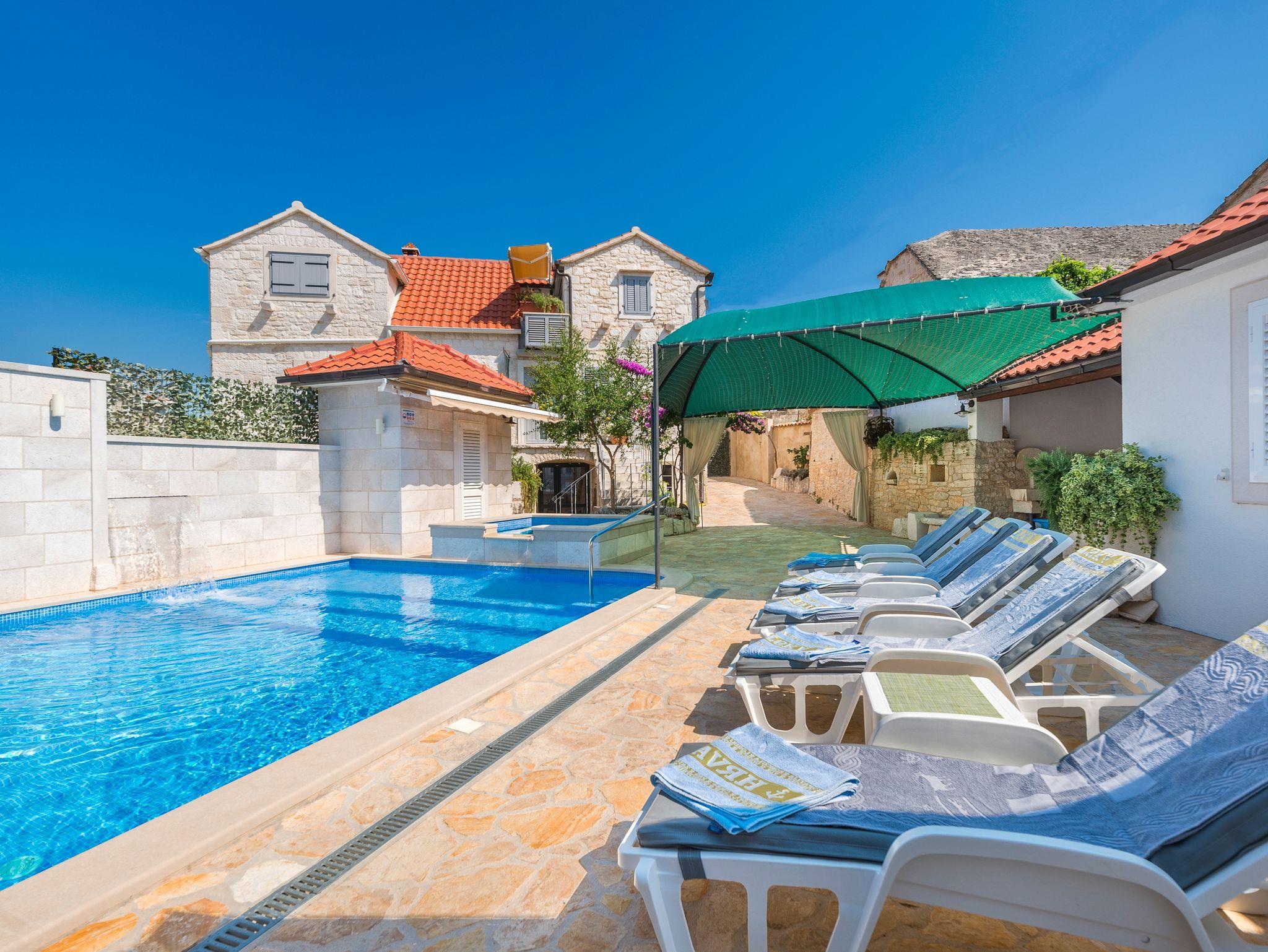Haus mit Pool für Familien Skrip, Brac - 17345, 3-Zimmer-Haus mit Balkon und Meerblick Skrip, Brac K-17345