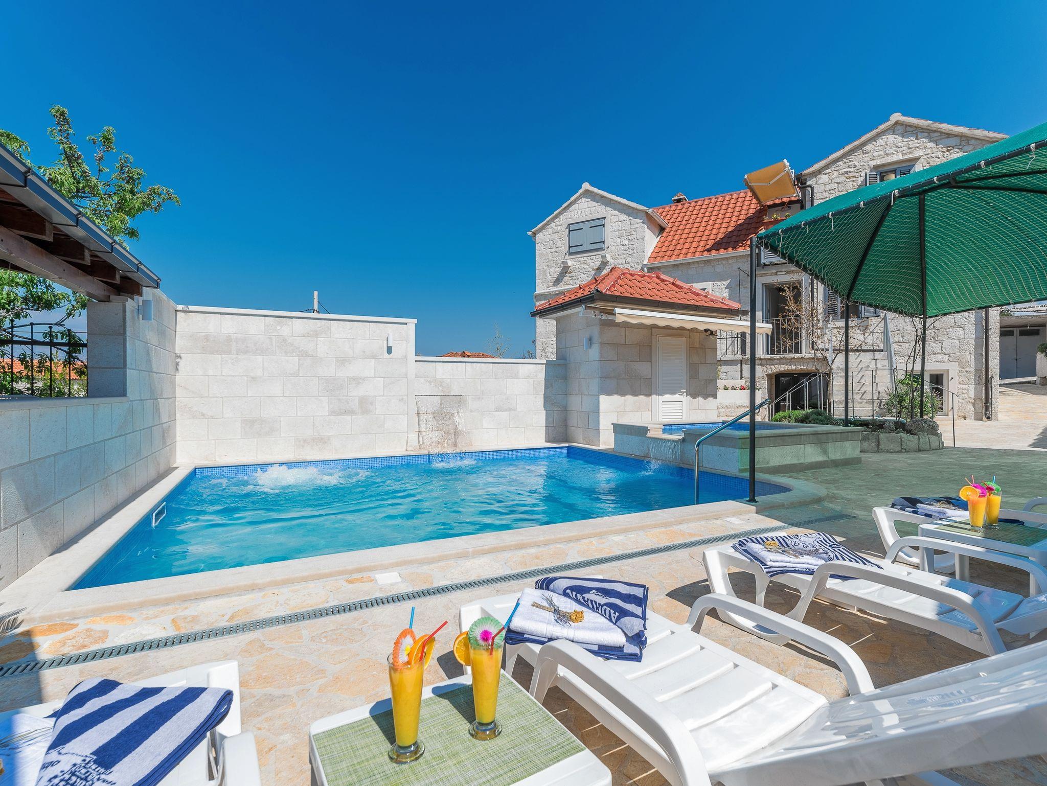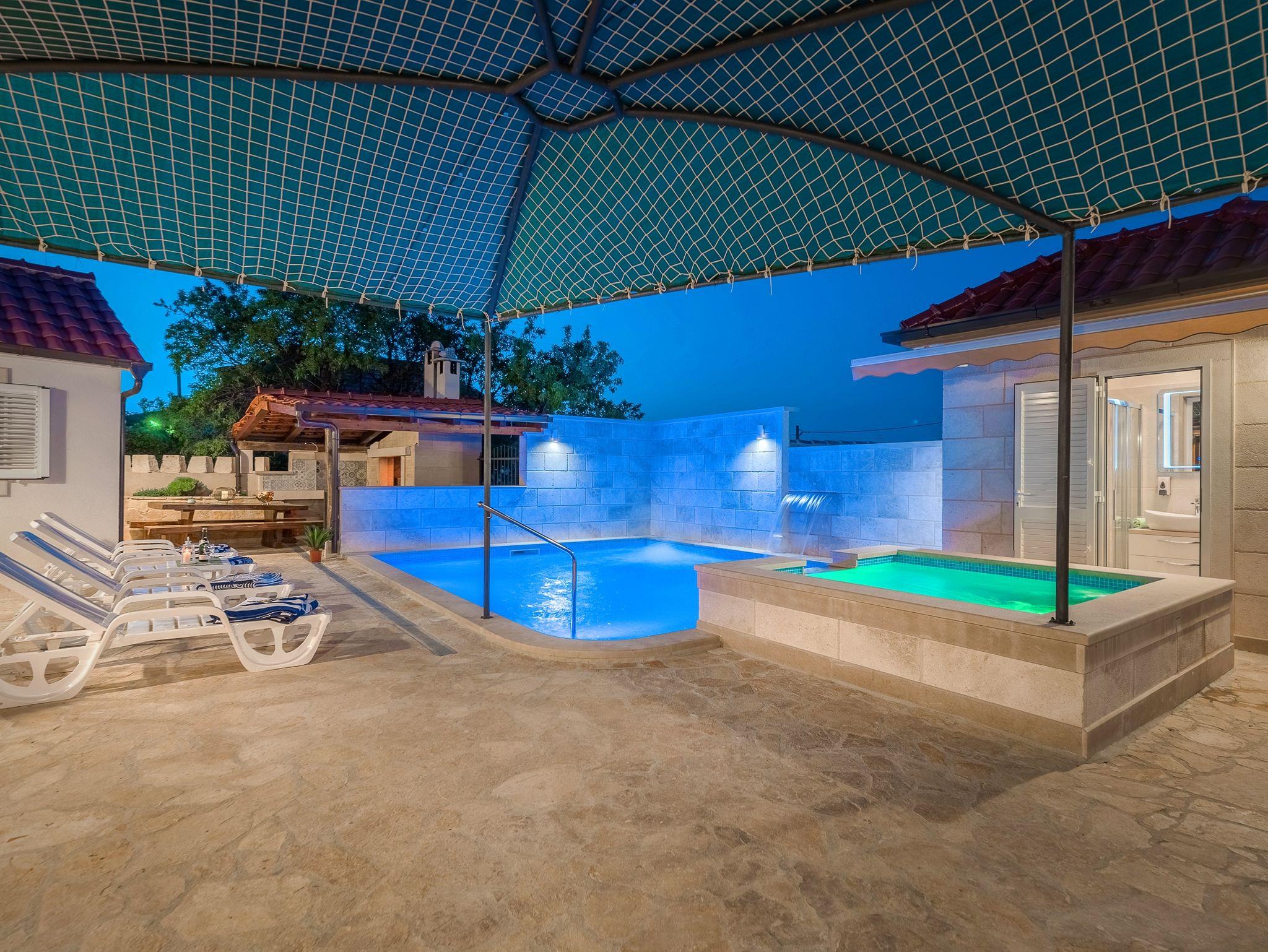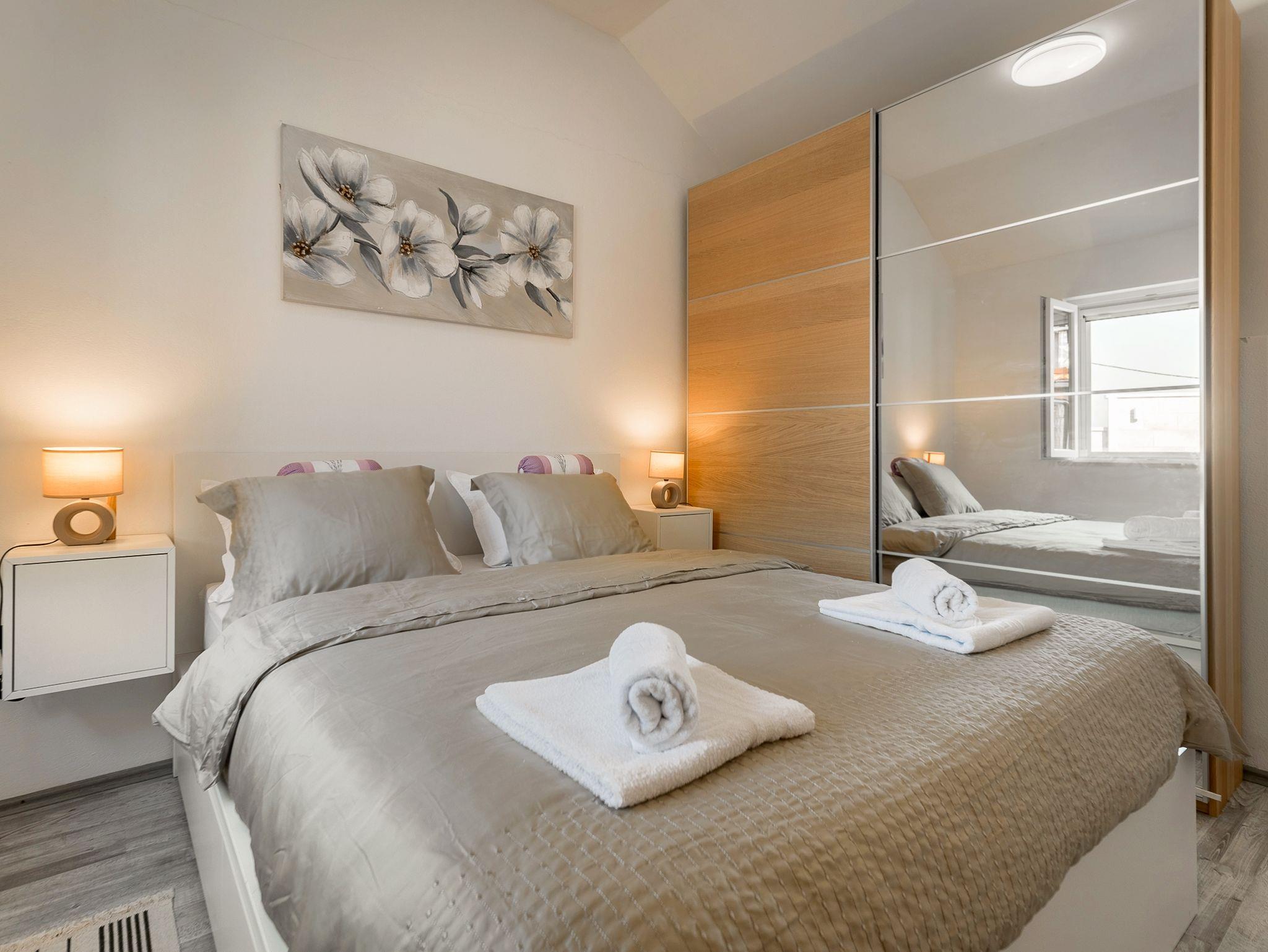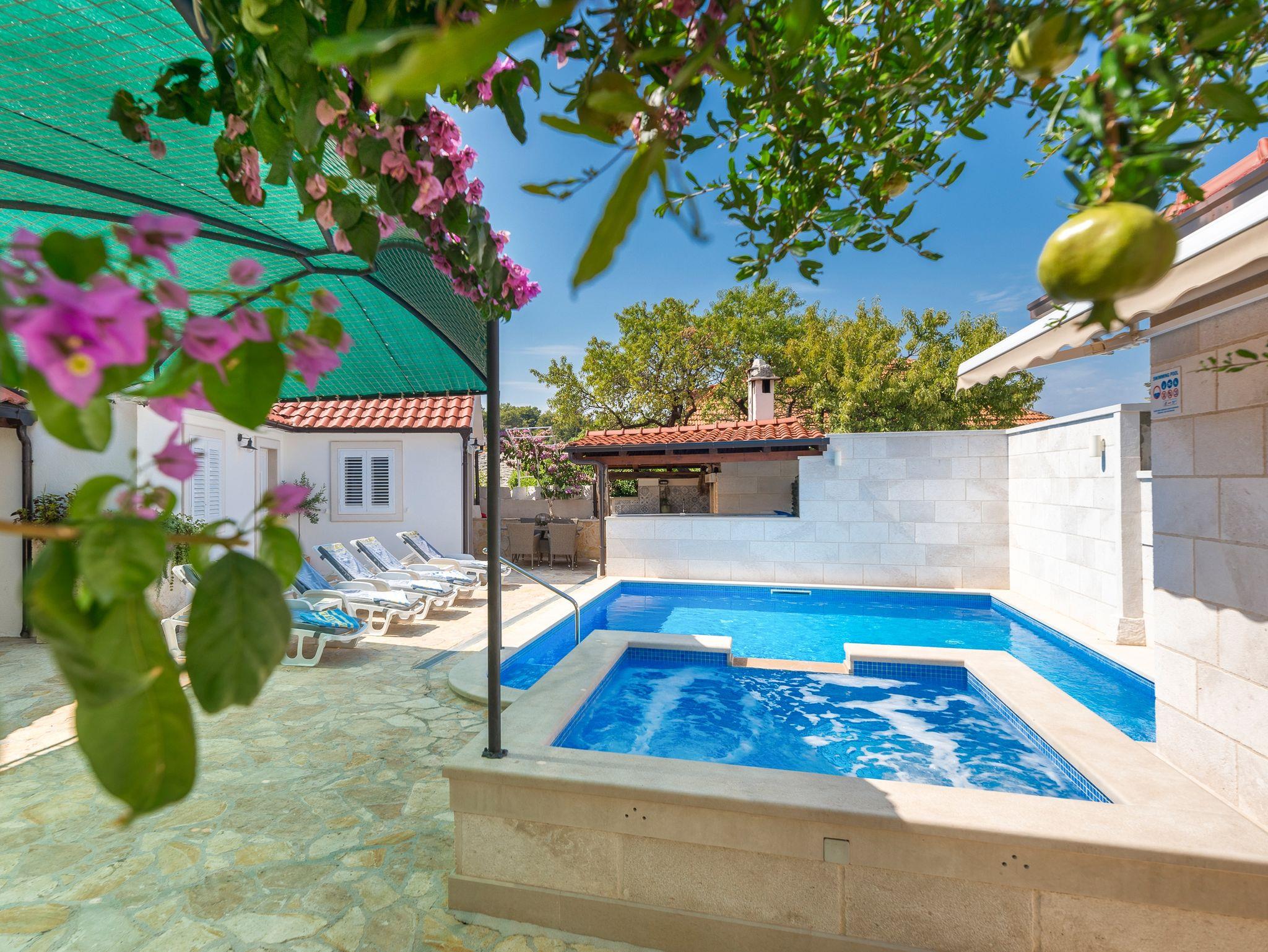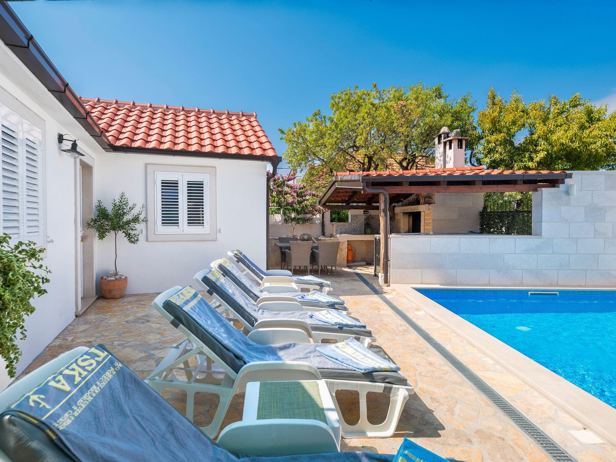 Haus bietet Platz für 6 Gäste. Die Betten sind in Schlafzimmern, die es 3 gibt, innerhalb einer Gesamtfläche von 84m2, angeordnet. Die Gäste haben einen eigenen Balkon zur Verfügung, auf der sie in warmen Sommernächten genießen können. Das Haus bietet Meerblick. Für vollen Genuss und Entspannung gibt es einen privaten Grill für Gäste dieser Unterkunft. Während ihres Aufenthalts können sich Gäste im privaten Schwimmbad entspannen. Räume der gebuchten Unterkunftseinheit werden nicht in eine Ganze verbunden. IM PREIS INBEGRIFFEN: Kurtaxe, Endreinigung, Klimatisierung, Pool, Parkplatz, Internet, Kinderbett, Bügeleisen, Bügelbrett, Föhn, Liegestühle. Die Verfügbarkeit zusätzlicher Dienstleistungen in Ihrem reservierten Termin und die Preise derselben (falls nicht aufgeführt) müssen im Voraus überprüft werden. Zusätzliche Dienstleistungen die in der Zahlungsaufforderung nicht aufgeführt sind werden direkt beim Vermieter bezahlt, angenommen der Gast nutzt auch diese.