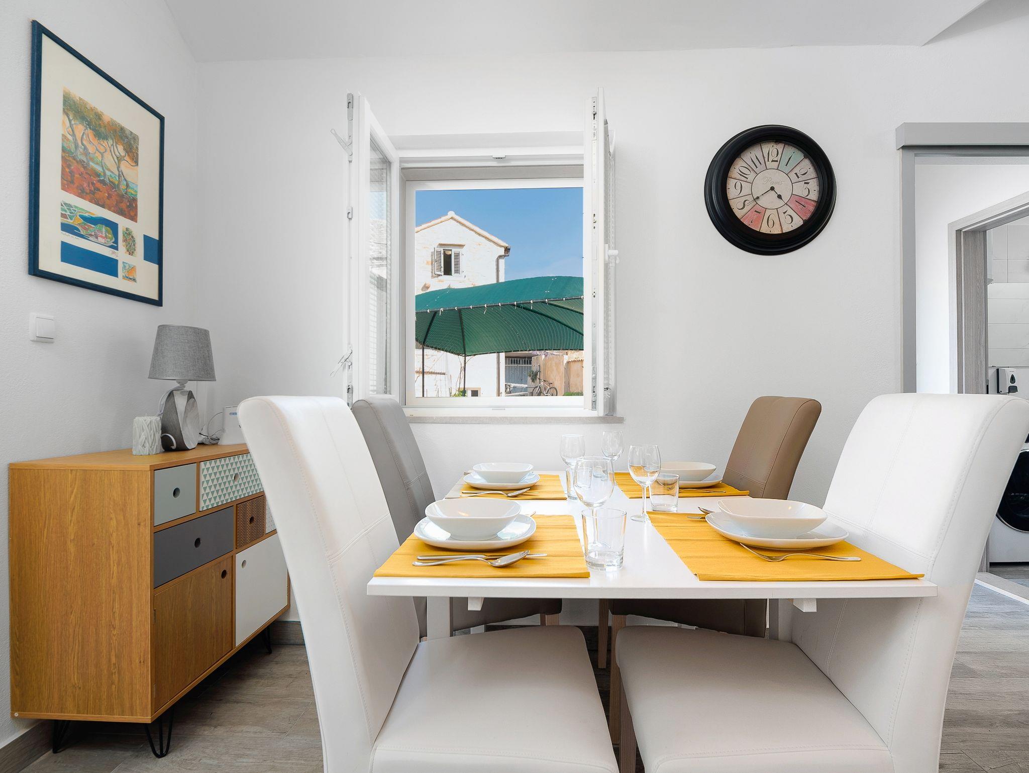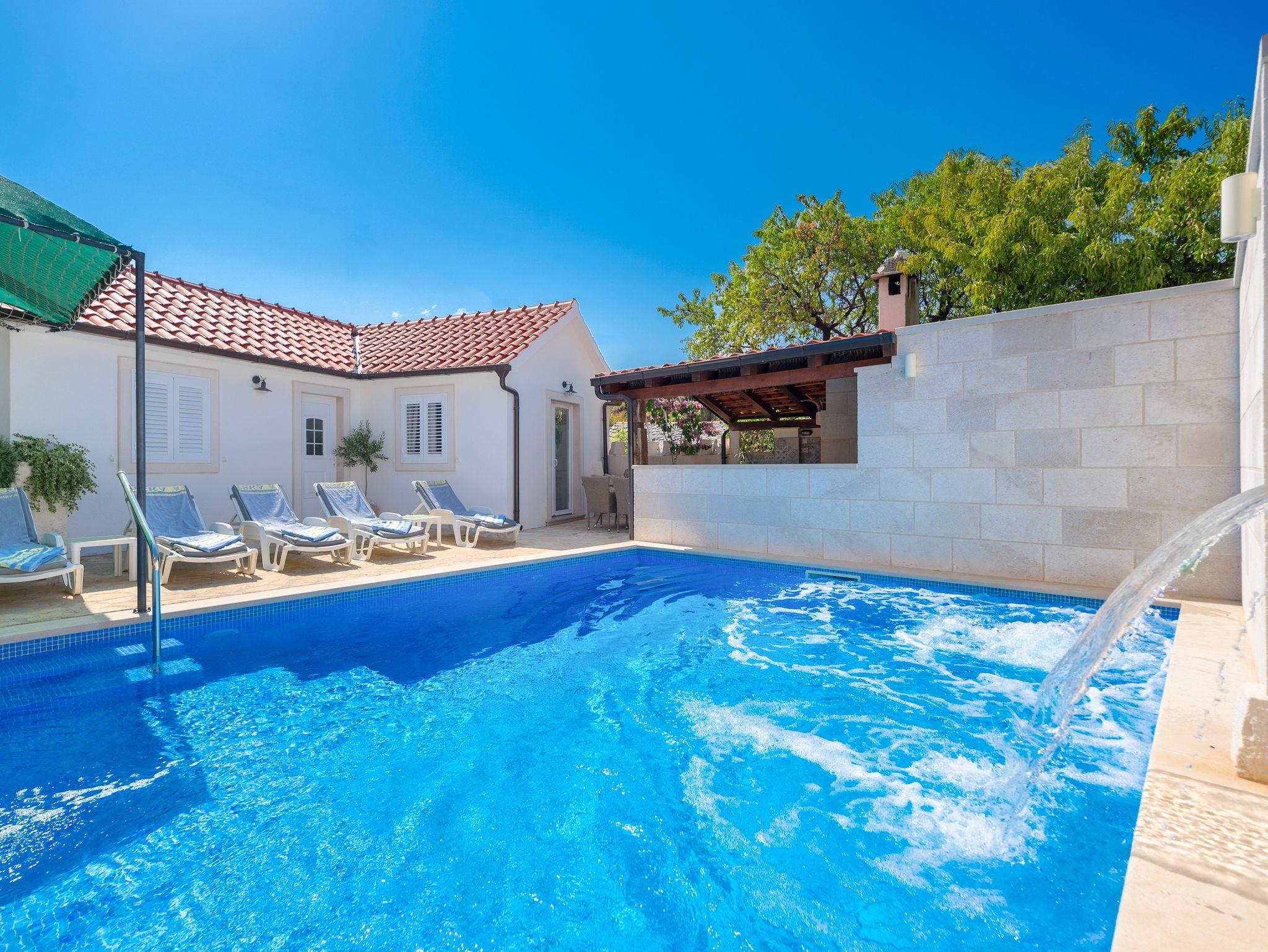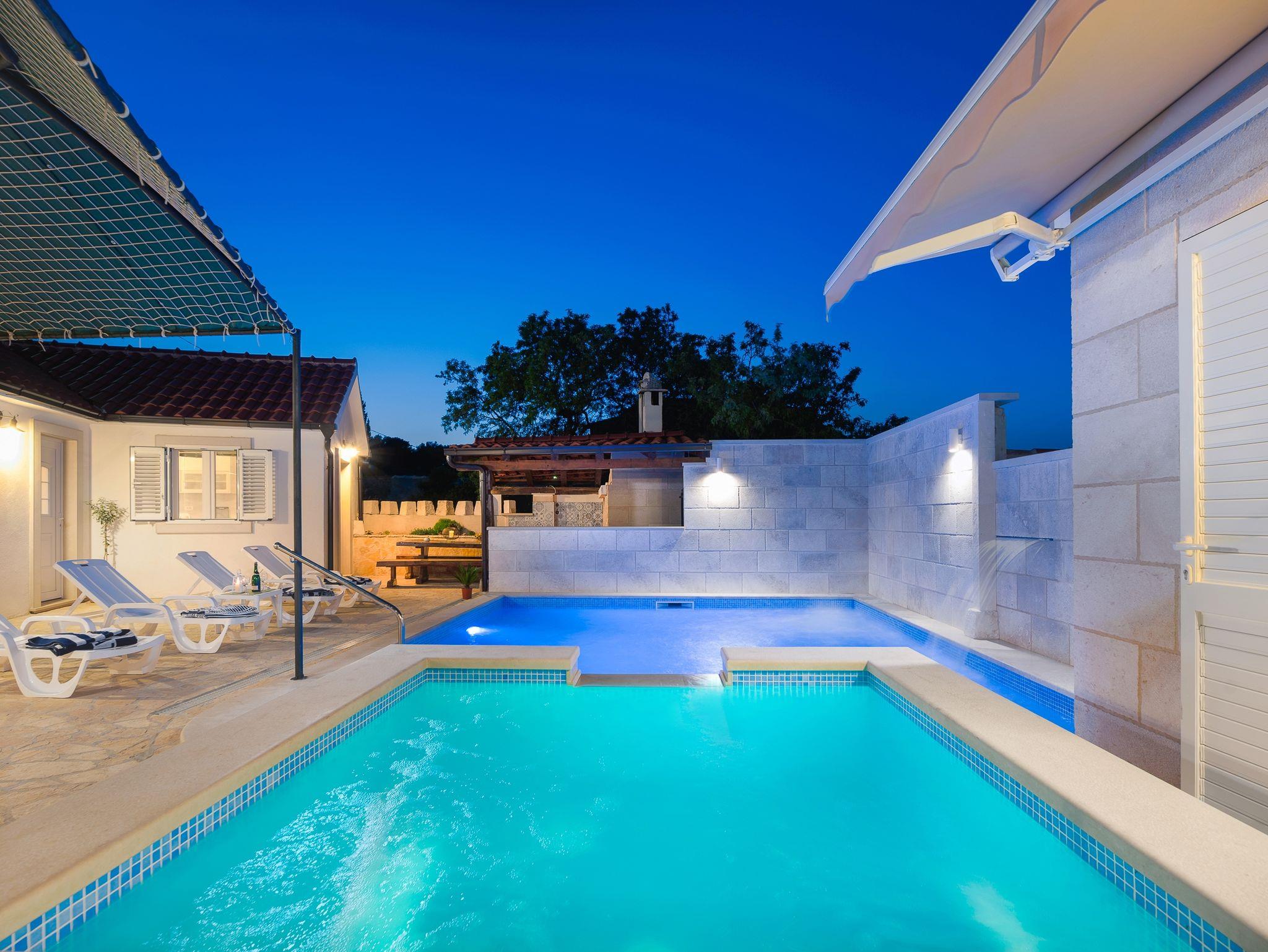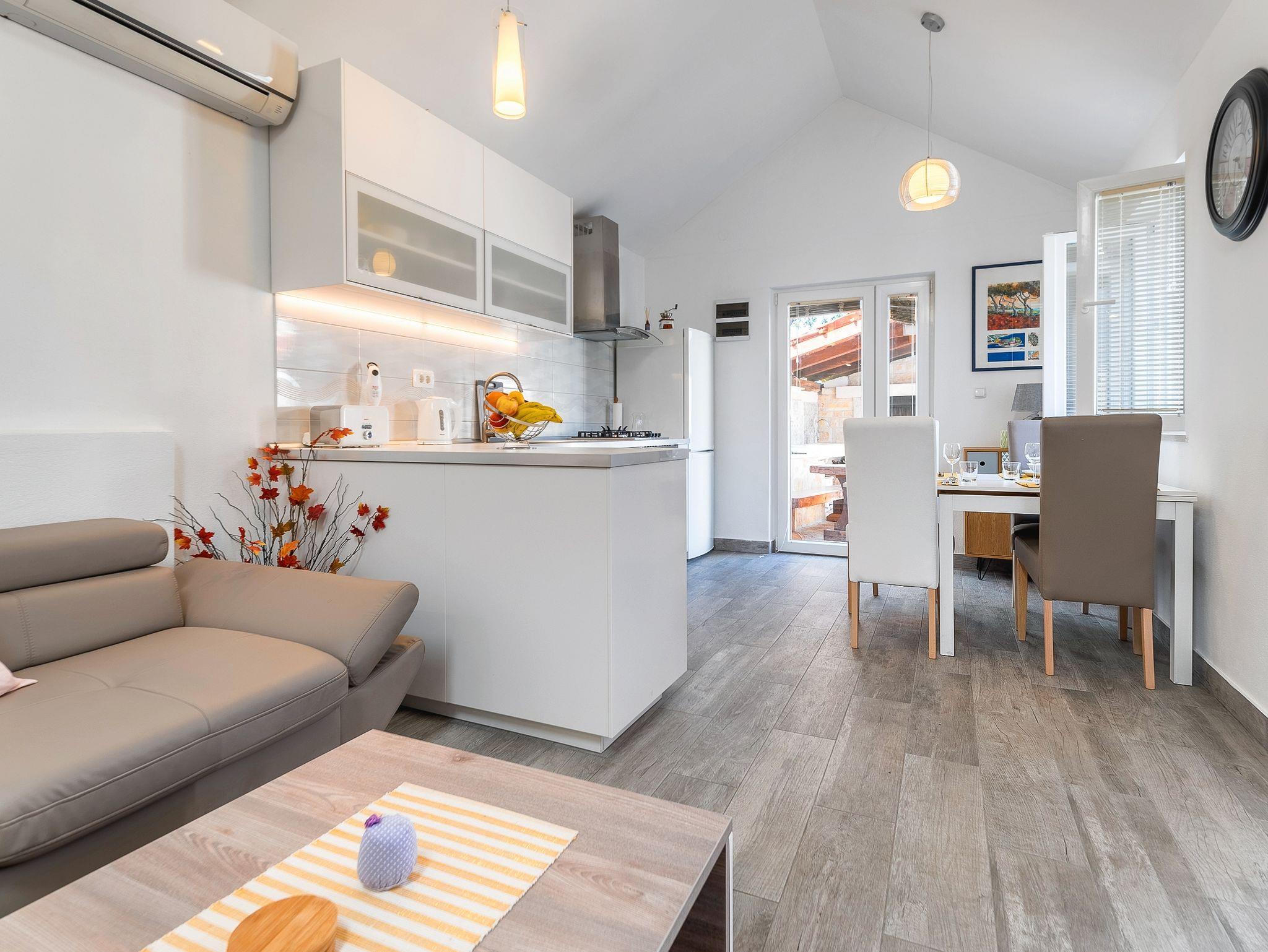 Haus bietet Platz für 6 Gäste. Die Betten sind in Schlafzimmern, die es 3 gibt, innerhalb einer Gesamtfläche von 84m2, angeordnet. Die Gäste haben einen eigenen Balkon zur Verfügung, auf der sie in warmen Sommernächten genießen können. Das Haus bietet Meerblick. Für vollen Genuss und Entspannung gibt es einen privaten Grill für Gäste dieser Unterkunft. Während ihres Aufenthalts können sich Gäste im privaten Schwimmbad entspannen. Räume der gebuchten Unterkunftseinheit werden nicht in eine Ganze verbunden. IM PREIS INBEGRIFFEN: Kurtaxe, Endreinigung, Klimatisierung, Pool, Parkplatz, Internet, Kinderbett, Bügeleisen, Bügelbrett, Föhn, Liegestühle. Die Verfügbarkeit zusätzlicher Dienstleistungen in Ihrem reservierten Termin und die Preise derselben (falls nicht aufgeführt) müssen im Voraus überprüft werden. Zusätzliche Dienstleistungen die in der Zahlungsaufforderung nicht aufgeführt sind werden direkt beim Vermieter bezahlt, angenommen der Gast nutzt auch diese.