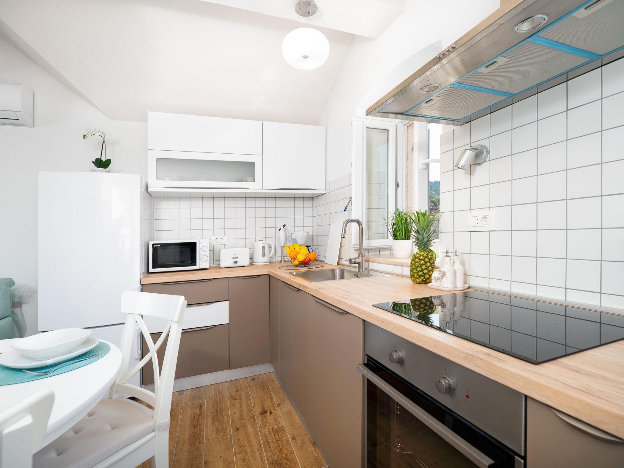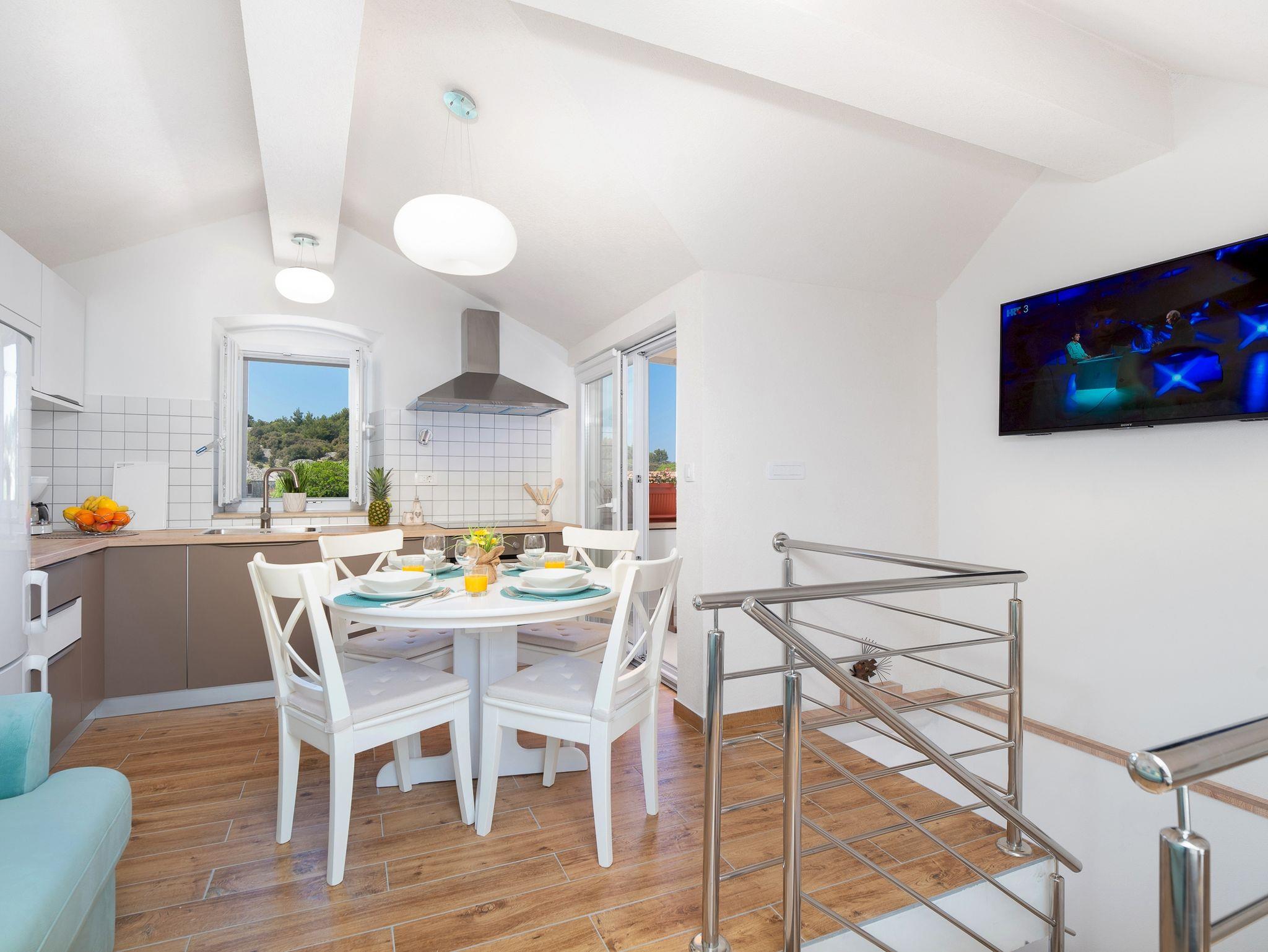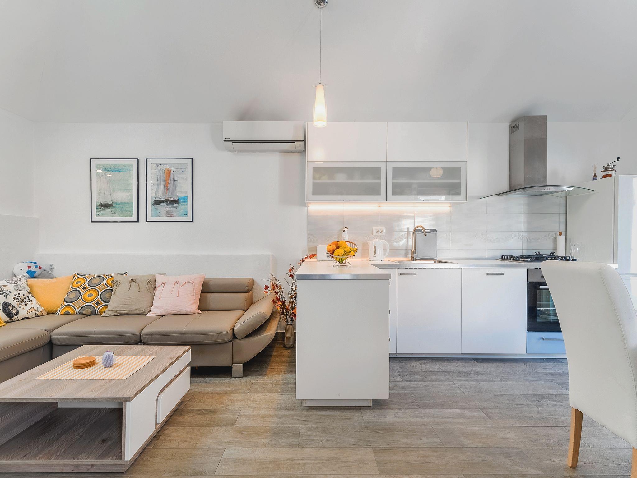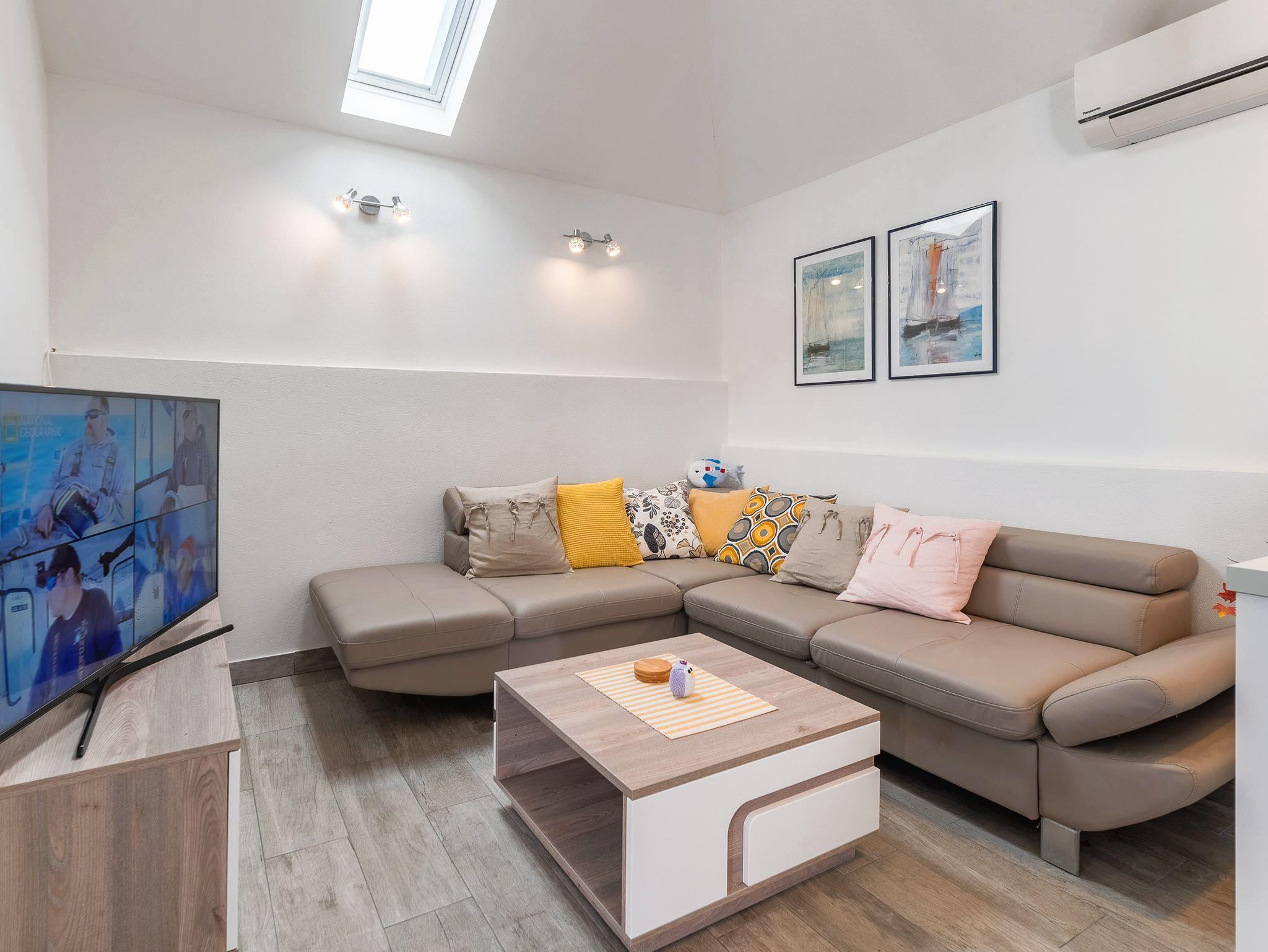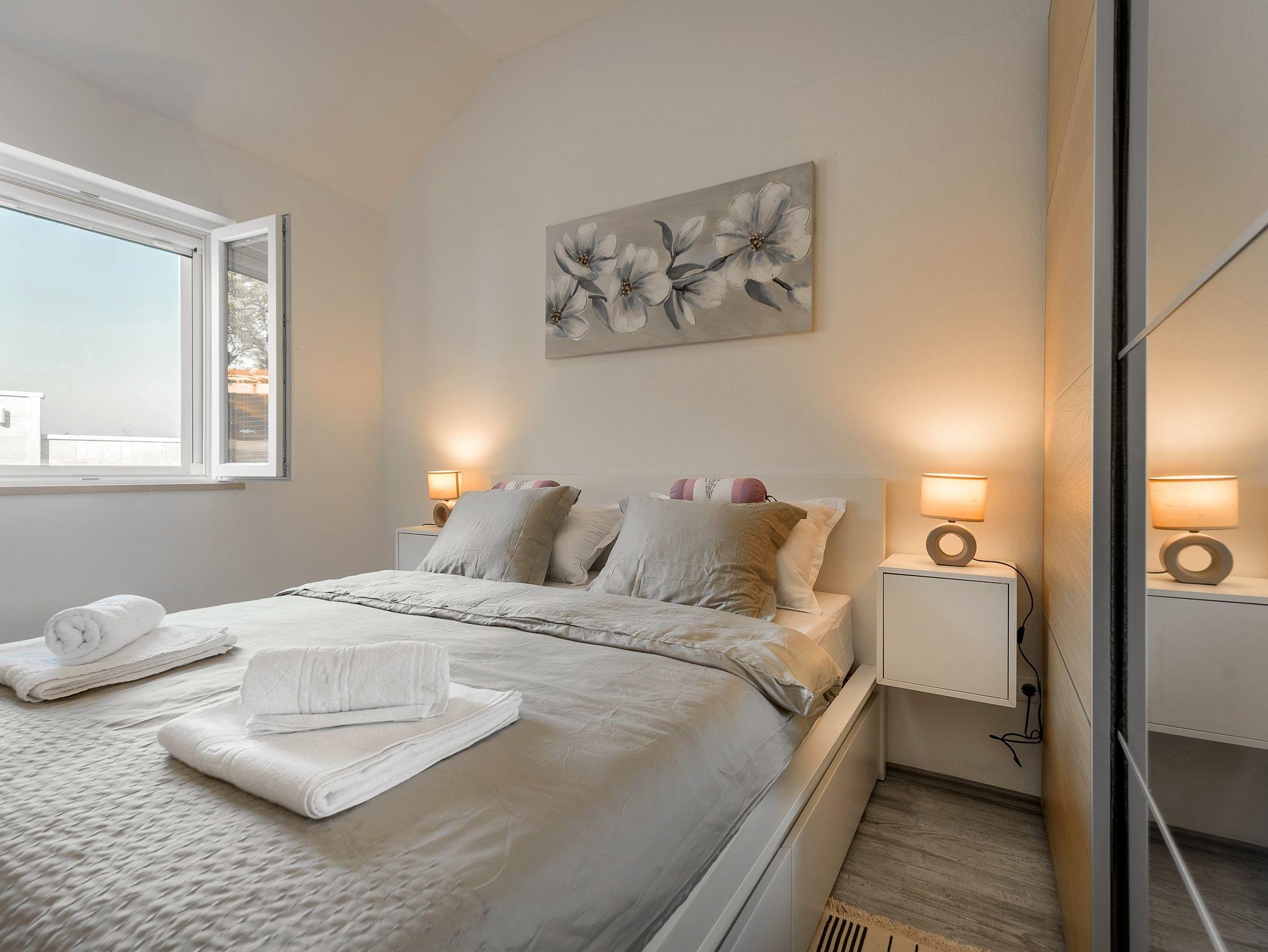 Haus bietet Platz für 6 Gäste. Die Betten sind in Schlafzimmern, die es 3 gibt, innerhalb einer Gesamtfläche von 84m2, angeordnet. Die Gäste haben einen eigenen Balkon zur Verfügung, auf der sie in warmen Sommernächten genießen können. Das Haus bietet Meerblick. Für vollen Genuss und Entspannung gibt es einen privaten Grill für Gäste dieser Unterkunft. Während ihres Aufenthalts können sich Gäste im privaten Schwimmbad entspannen. Räume der gebuchten Unterkunftseinheit werden nicht in eine Ganze verbunden. IM PREIS INBEGRIFFEN: Kurtaxe, Endreinigung, Klimatisierung, Pool, Parkplatz, Internet, Kinderbett, Bügeleisen, Bügelbrett, Föhn, Liegestühle. Die Verfügbarkeit zusätzlicher Dienstleistungen in Ihrem reservierten Termin und die Preise derselben (falls nicht aufgeführt) müssen im Voraus überprüft werden. Zusätzliche Dienstleistungen die in der Zahlungsaufforderung nicht aufgeführt sind werden direkt beim Vermieter bezahlt, angenommen der Gast nutzt auch diese.
