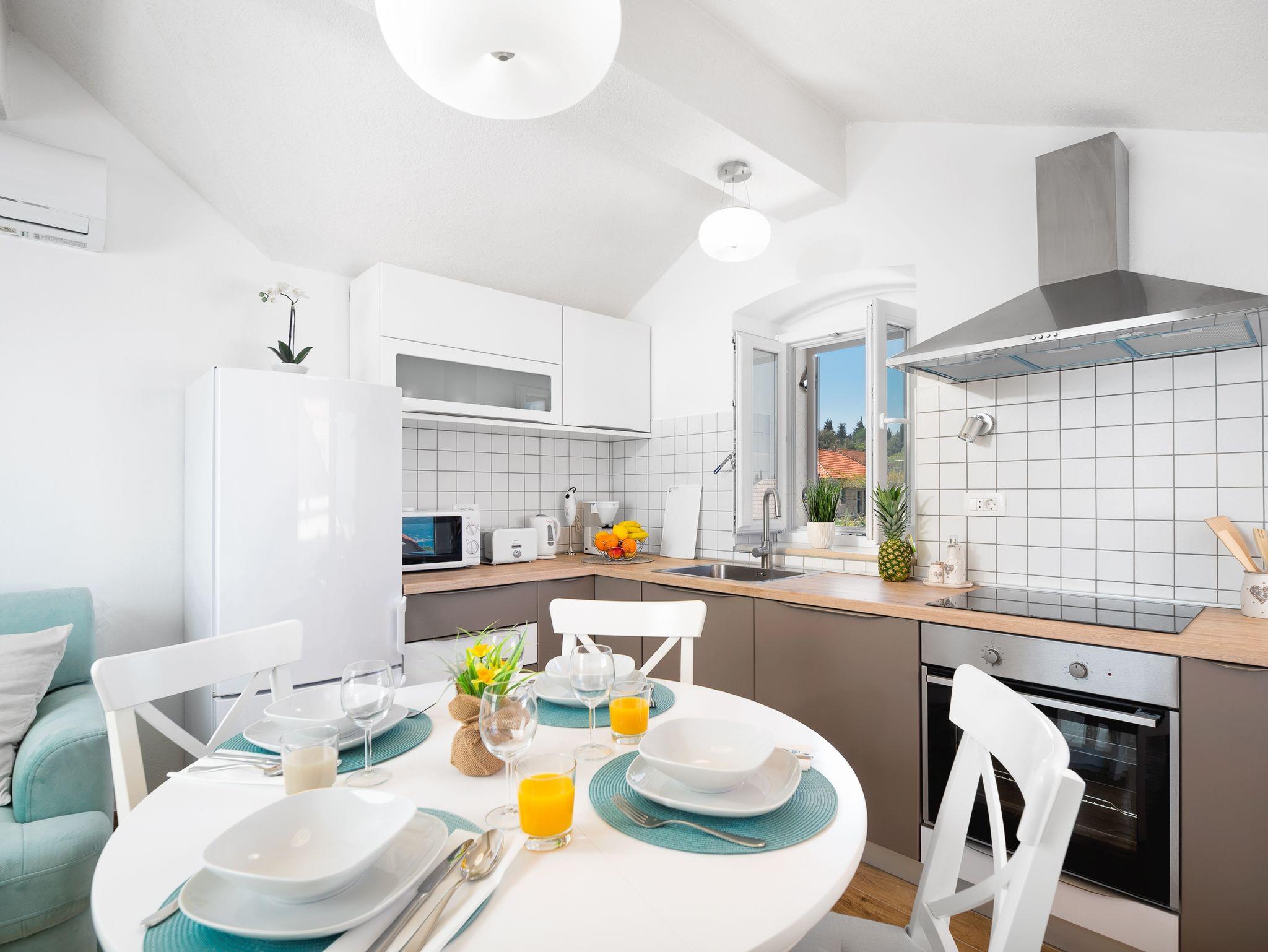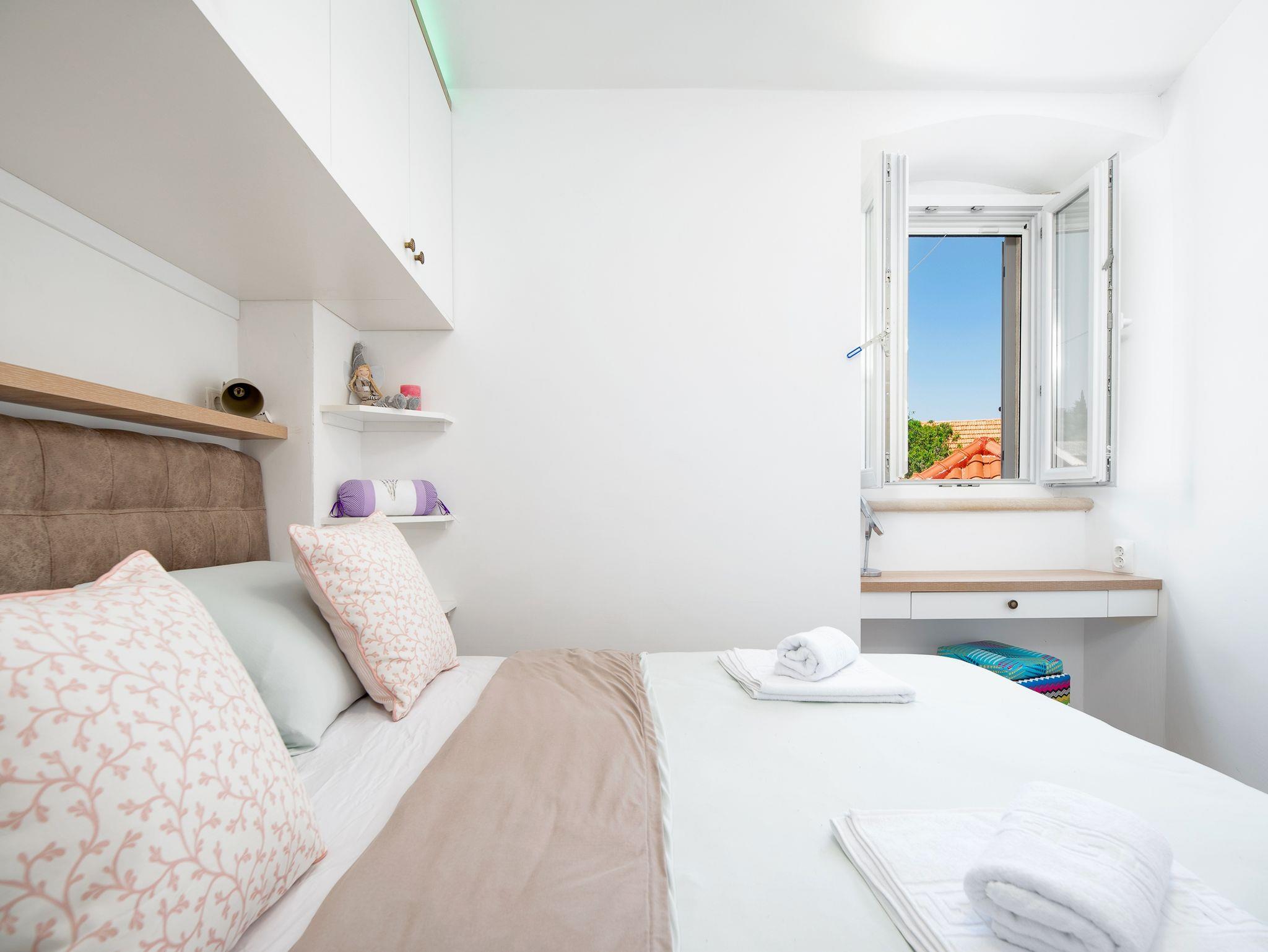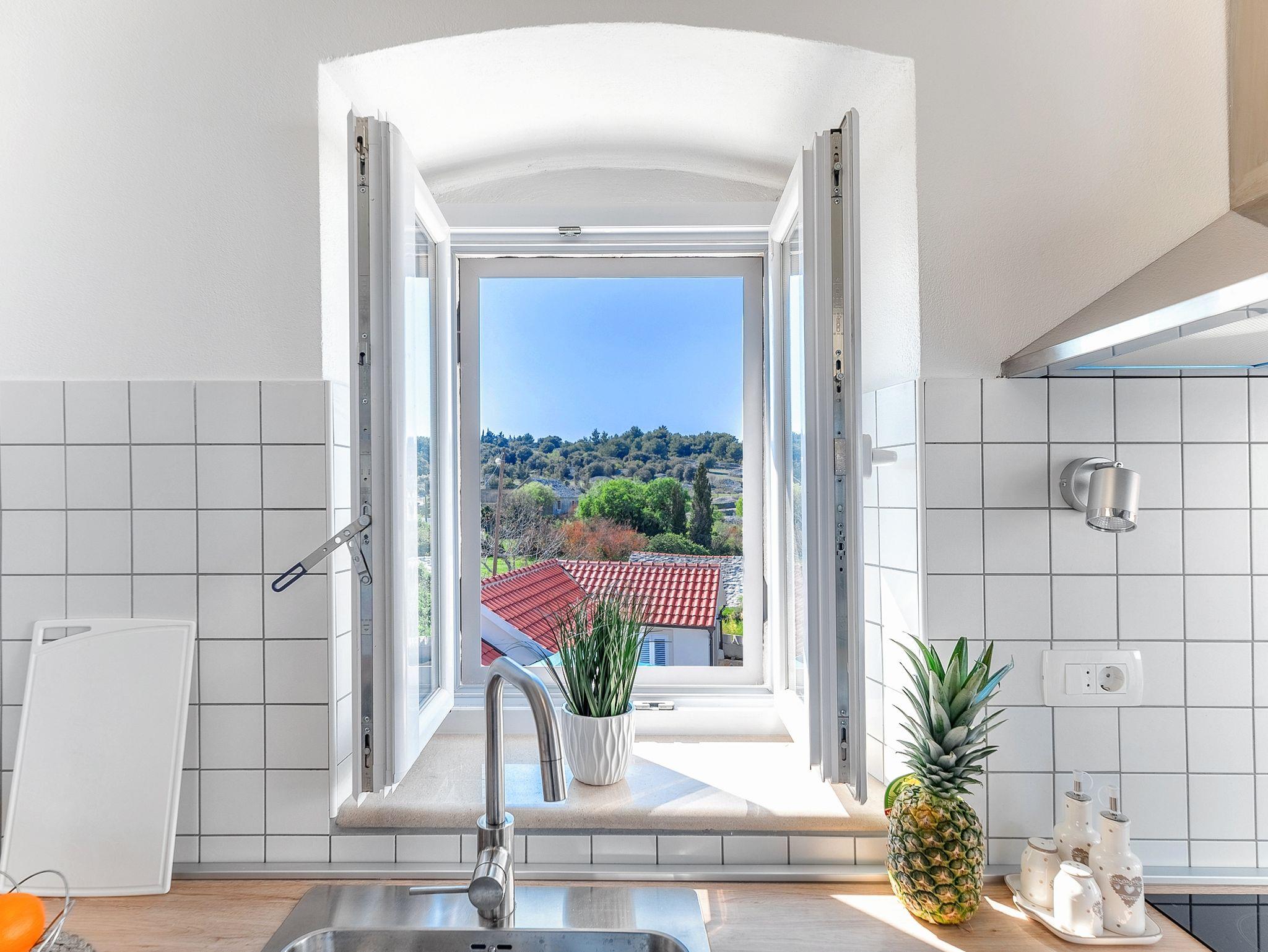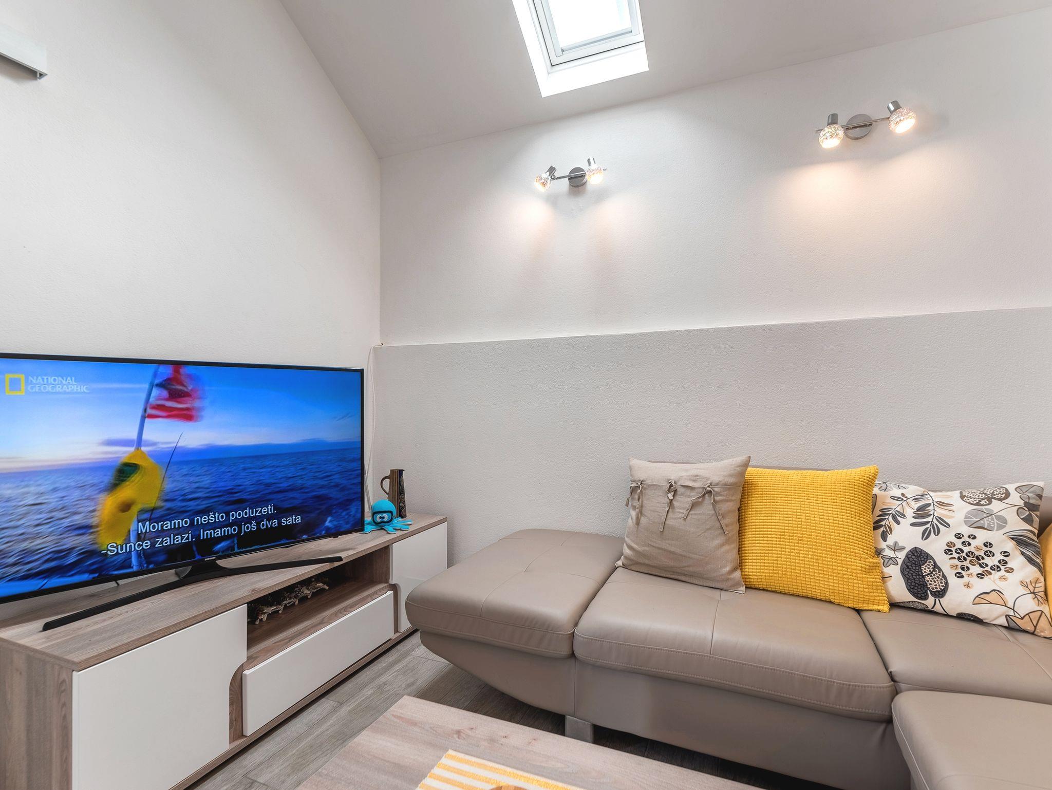 Haus bietet Platz für 6 Gäste. Die Betten sind in Schlafzimmern, die es 3 gibt, innerhalb einer Gesamtfläche von 84m2, angeordnet. Die Gäste haben einen eigenen Balkon zur Verfügung, auf der sie in warmen Sommernächten genießen können. Das Haus bietet Meerblick. Für vollen Genuss und Entspannung gibt es einen privaten Grill für Gäste dieser Unterkunft. Während ihres Aufenthalts können sich Gäste im privaten Schwimmbad entspannen. Räume der gebuchten Unterkunftseinheit werden nicht in eine Ganze verbunden. IM PREIS INBEGRIFFEN: Kurtaxe, Endreinigung, Klimatisierung, Pool, Parkplatz, Internet, Kinderbett, Bügeleisen, Bügelbrett, Föhn, Liegestühle. Die Verfügbarkeit zusätzlicher Dienstleistungen in Ihrem reservierten Termin und die Preise derselben (falls nicht aufgeführt) müssen im Voraus überprüft werden. Zusätzliche Dienstleistungen die in der Zahlungsaufforderung nicht aufgeführt sind werden direkt beim Vermieter bezahlt, angenommen der Gast nutzt auch diese.