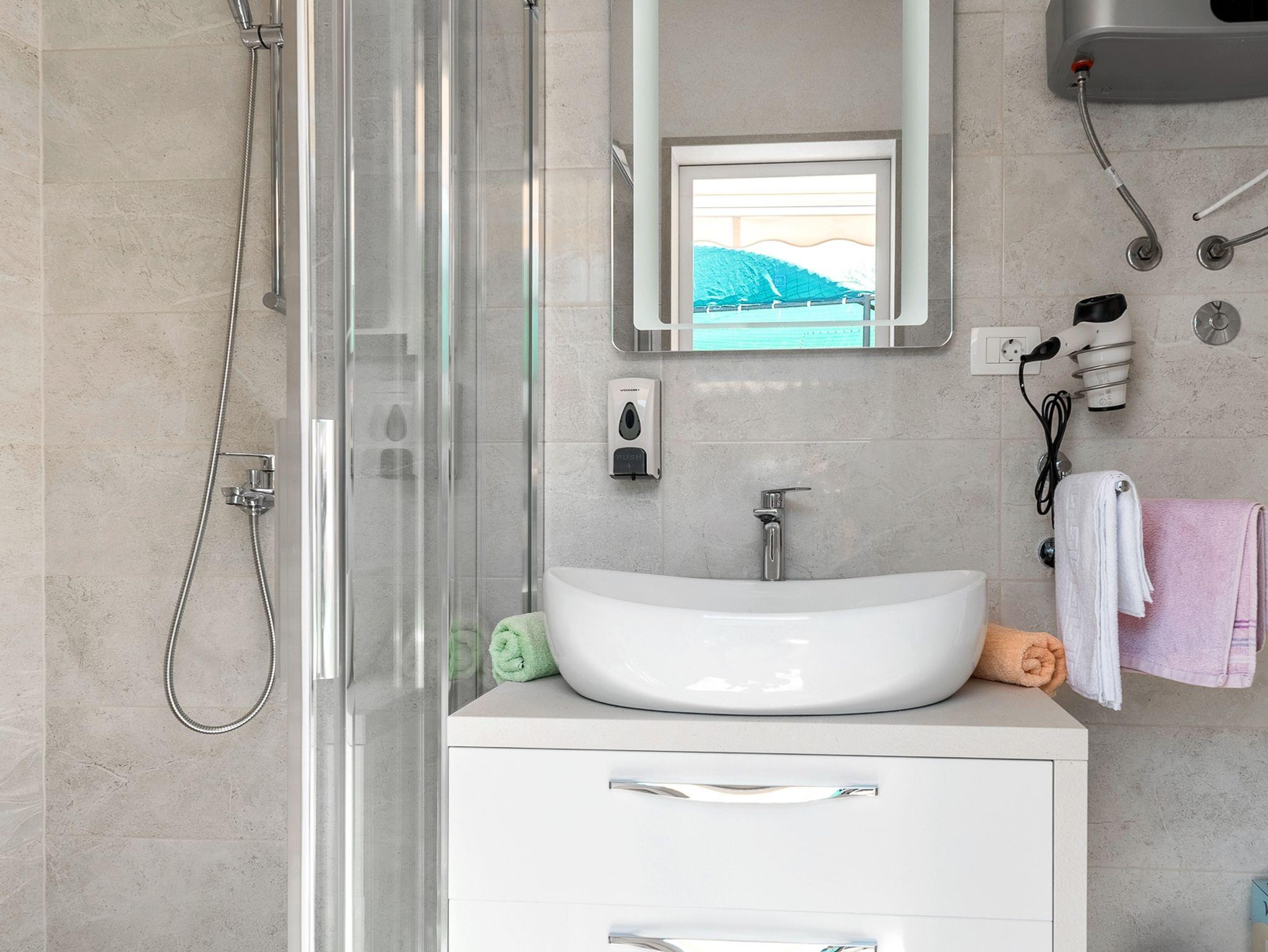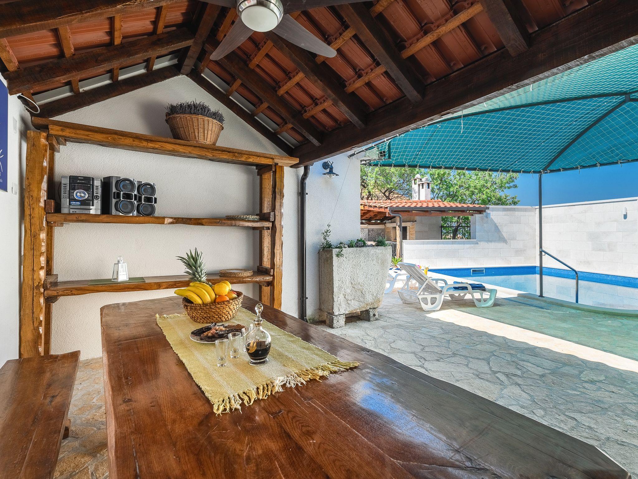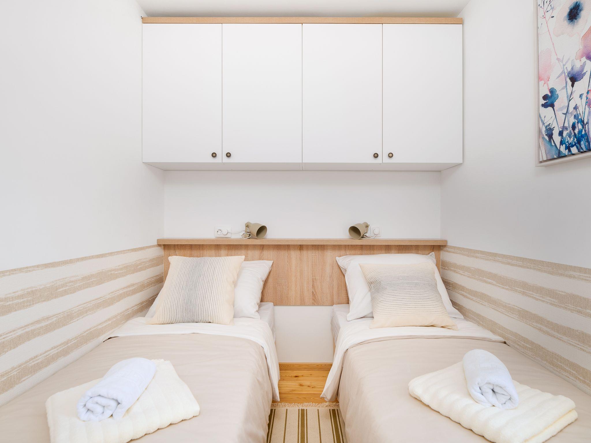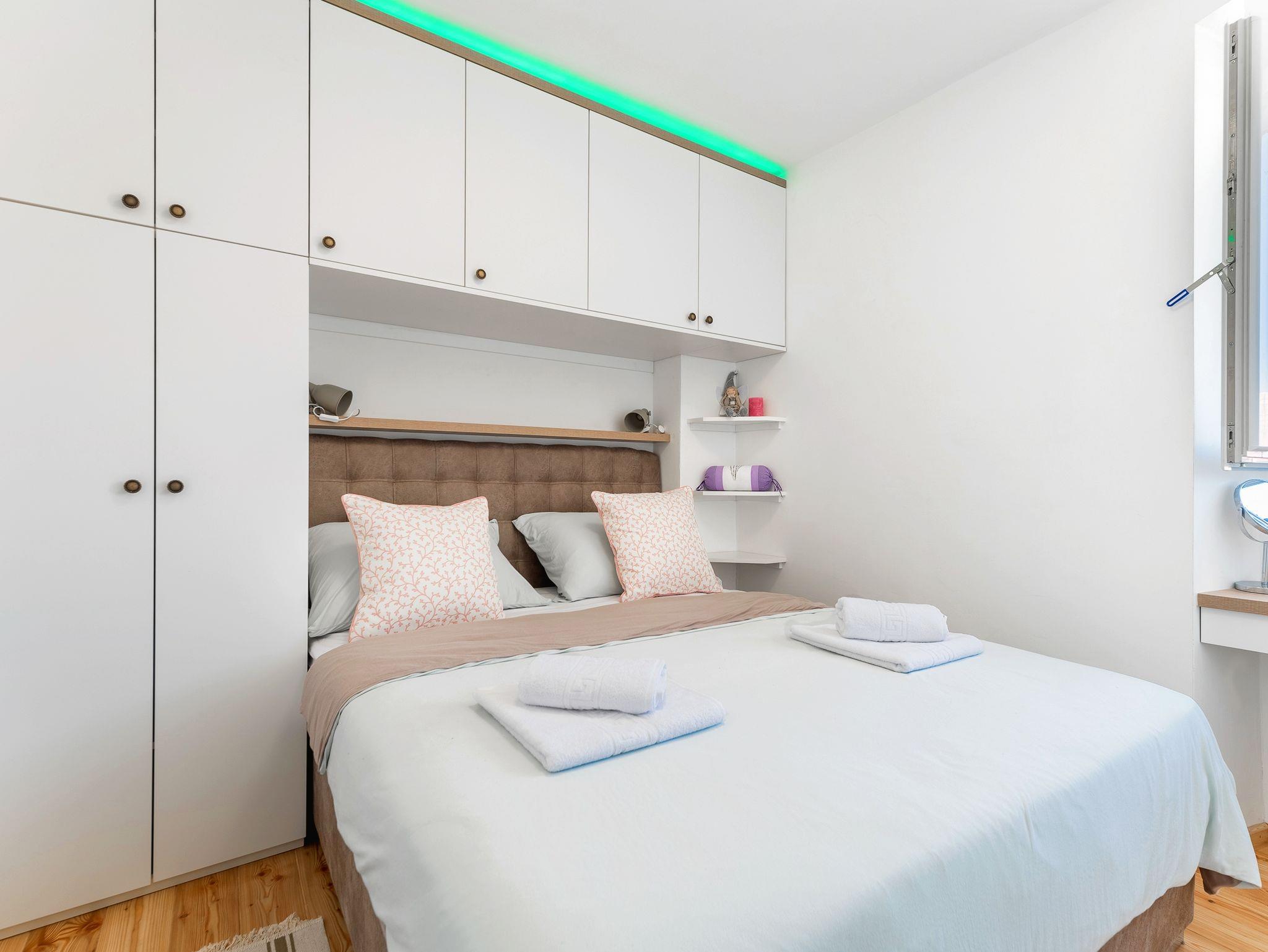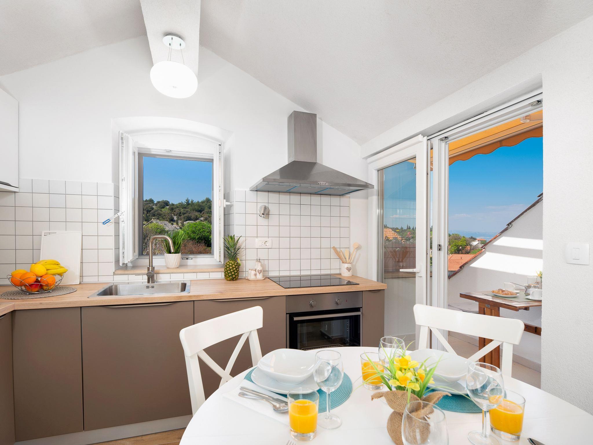 Haus bietet Platz für 6 Gäste. Die Betten sind in Schlafzimmern, die es 3 gibt, innerhalb einer Gesamtfläche von 84m2, angeordnet. Die Gäste haben einen eigenen Balkon zur Verfügung, auf der sie in warmen Sommernächten genießen können. Das Haus bietet Meerblick. Für vollen Genuss und Entspannung gibt es einen privaten Grill für Gäste dieser Unterkunft. Während ihres Aufenthalts können sich Gäste im privaten Schwimmbad entspannen. Räume der gebuchten Unterkunftseinheit werden nicht in eine Ganze verbunden. IM PREIS INBEGRIFFEN: Kurtaxe, Endreinigung, Klimatisierung, Pool, Parkplatz, Internet, Kinderbett, Bügeleisen, Bügelbrett, Föhn, Liegestühle. Die Verfügbarkeit zusätzlicher Dienstleistungen in Ihrem reservierten Termin und die Preise derselben (falls nicht aufgeführt) müssen im Voraus überprüft werden. Zusätzliche Dienstleistungen die in der Zahlungsaufforderung nicht aufgeführt sind werden direkt beim Vermieter bezahlt, angenommen der Gast nutzt auch diese.