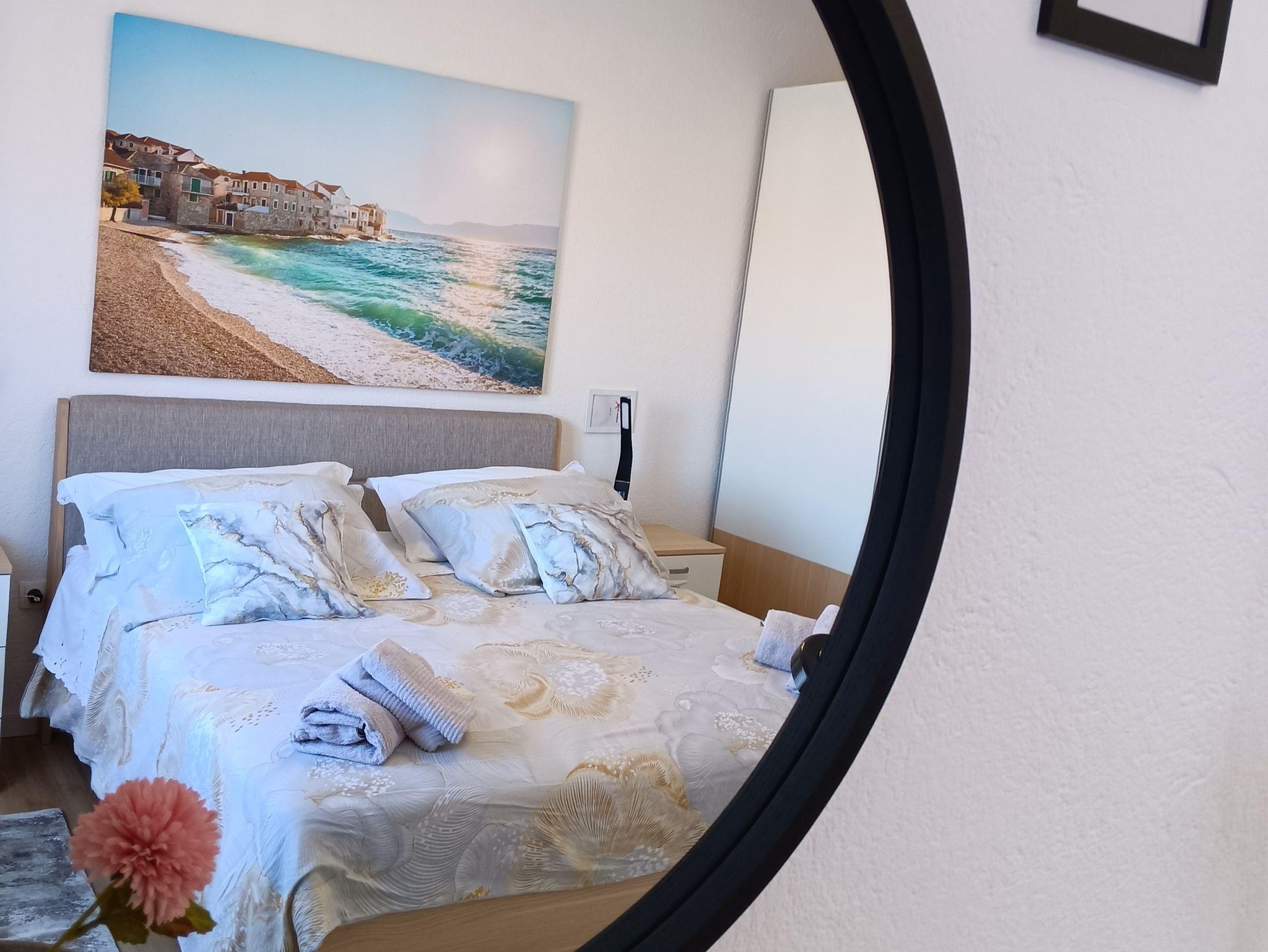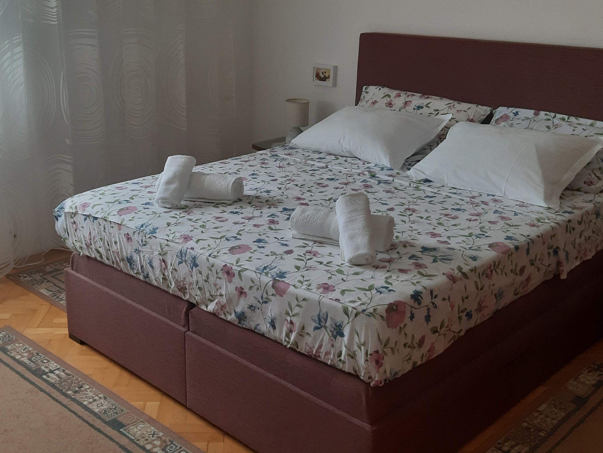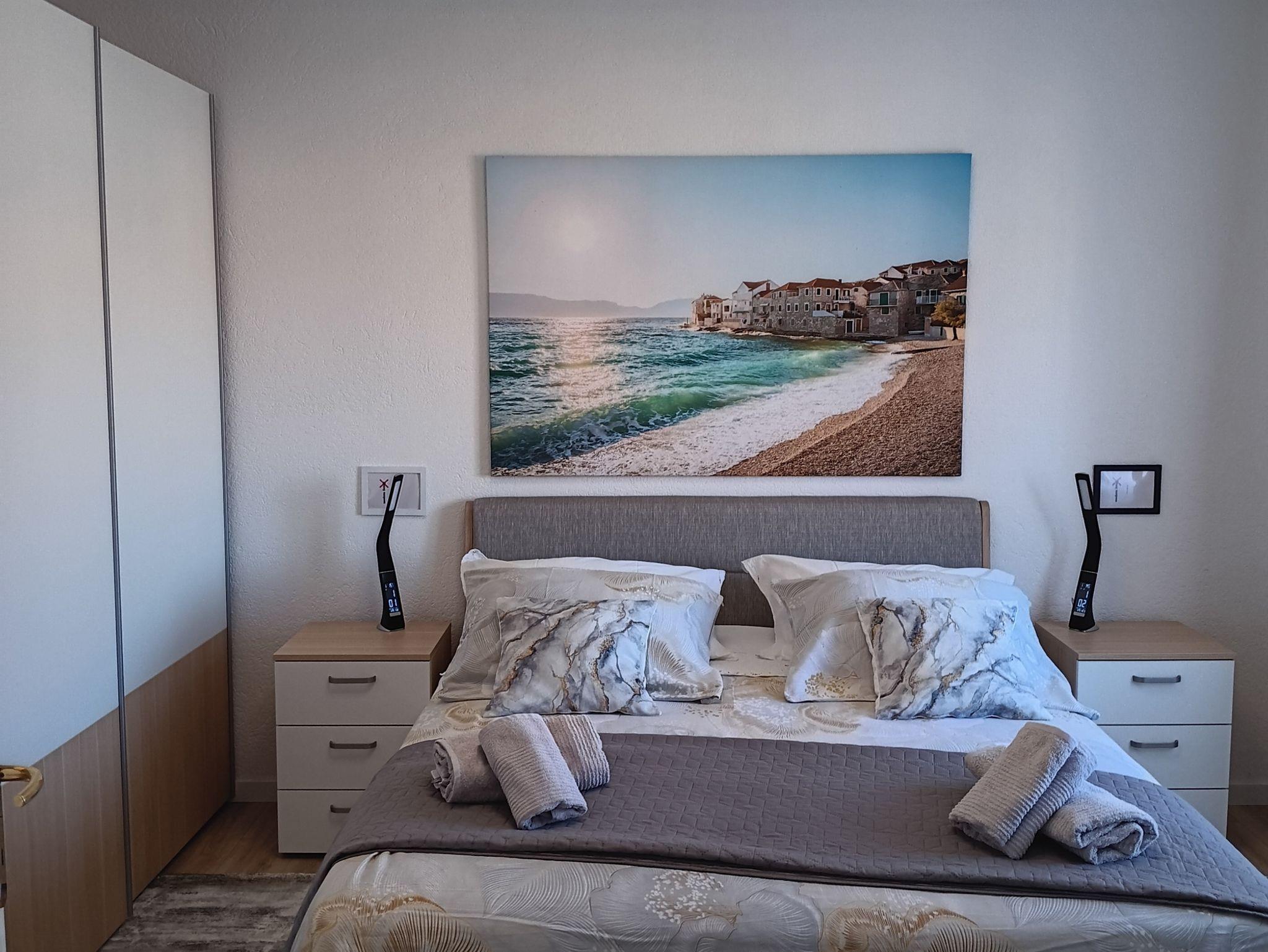 Ferienwohnung bietet Platz für 6 Gäste. Die Betten sind in Schlafzimmern, die es 2 gibt, und in Wohnzimmer, innerhalb einer Gesamtfläche von 76m2, angeordnet. Die Gäste haben einen eigenen Balkon zur Verfügung, auf der sie in warmen Sommernächten genießen können. Das Apartment bietet Meerblick. Für vollen Genuss und Entspannung gibt es einen privaten Grill für Gäste dieser Unterkunft. IM PREIS INBEGRIFFEN: Kurtaxe, Endreinigung, Klimatisierung, Parkplatz, Internet, Kinderbett, Bügeleisen, Bügelbrett, Föhn. UNVERBINDLICHE ZUSÄTZLICHE KOSTEN: Zusatzbett (8,00 € pro Nacht). Die Verfügbarkeit zusätzlicher Dienstleistungen in Ihrem reservierten Termin und die Preise derselben (falls nicht aufgeführt) müssen im Voraus überprüft werden. Zusätzliche Dienstleistungen die in der Zahlungsaufforderung nicht aufgeführt sind werden direkt beim Vermieter bezahlt, angenommen der Gast nutzt auch diese.