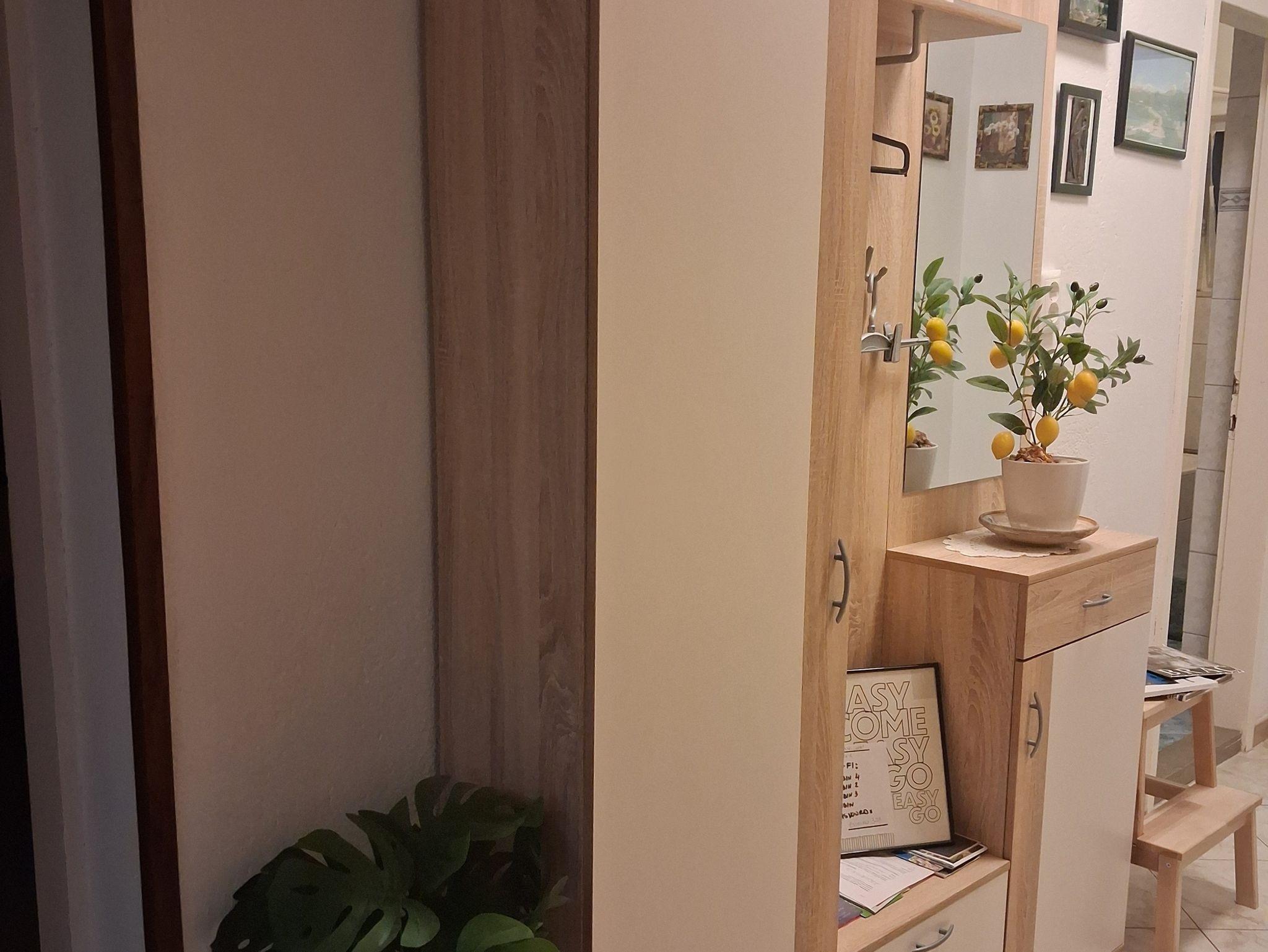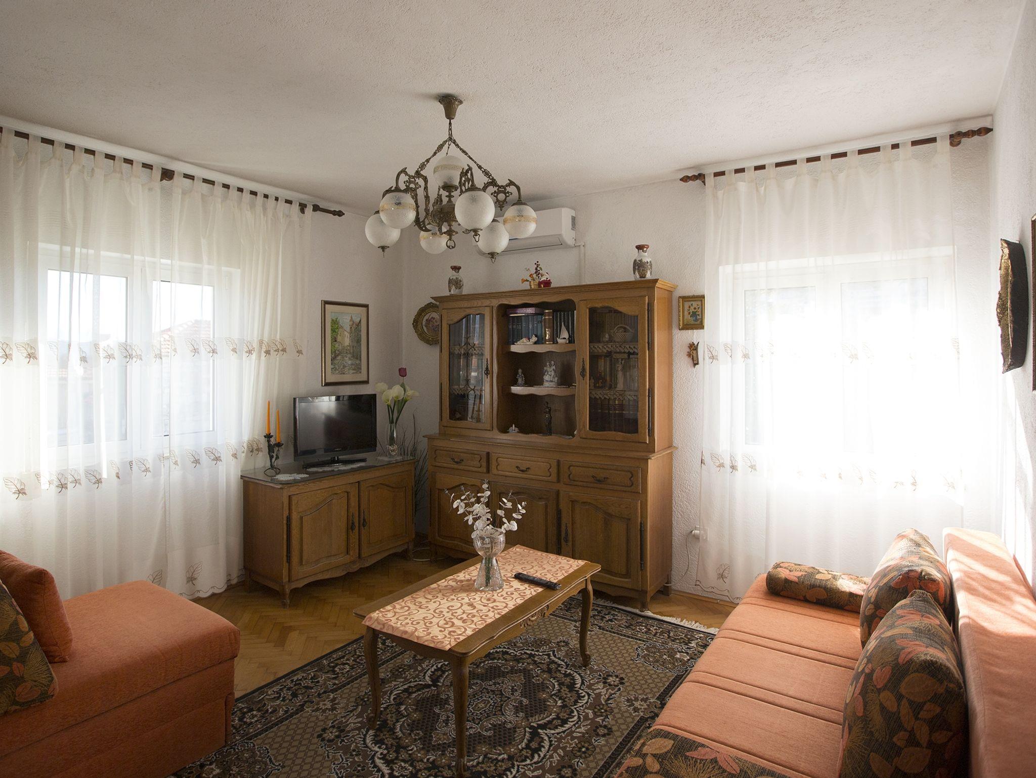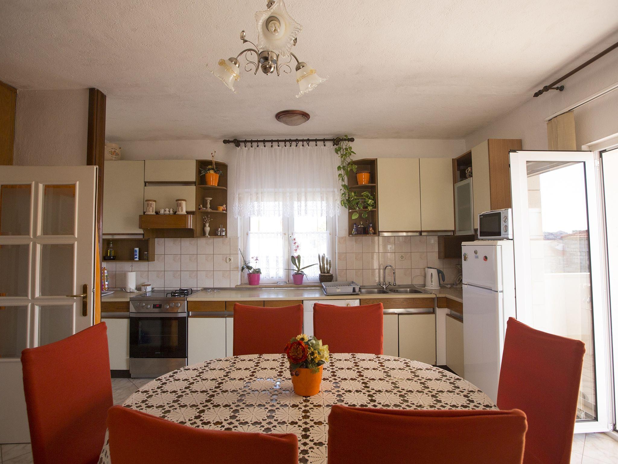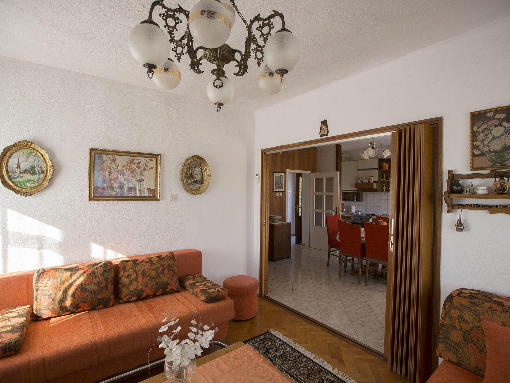 Ferienwohnung bietet Platz für 6 Gäste. Die Betten sind in Schlafzimmern, die es 2 gibt, und in Wohnzimmer, innerhalb einer Gesamtfläche von 76m2, angeordnet. Die Gäste haben einen eigenen Balkon zur Verfügung, auf der sie in warmen Sommernächten genießen können. Das Apartment bietet Meerblick. Für vollen Genuss und Entspannung gibt es einen privaten Grill für Gäste dieser Unterkunft. IM PREIS INBEGRIFFEN: Kurtaxe, Endreinigung, Klimatisierung, Parkplatz, Internet, Kinderbett, Bügeleisen, Bügelbrett, Föhn. UNVERBINDLICHE ZUSÄTZLICHE KOSTEN: Zusatzbett (8,00 € pro Nacht). Die Verfügbarkeit zusätzlicher Dienstleistungen in Ihrem reservierten Termin und die Preise derselben (falls nicht aufgeführt) müssen im Voraus überprüft werden. Zusätzliche Dienstleistungen die in der Zahlungsaufforderung nicht aufgeführt sind werden direkt beim Vermieter bezahlt, angenommen der Gast nutzt auch diese.