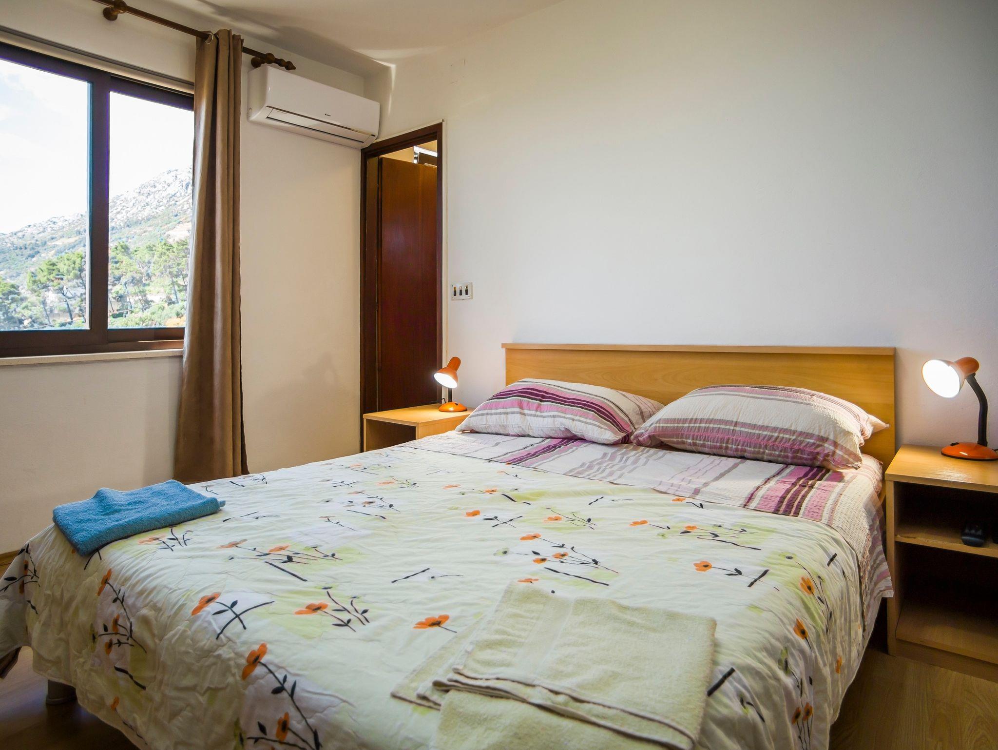 Ferienwohnung bietet Platz für 8 Gäste. Die Betten sind in Schlafzimmern, die es 4 gibt, innerhalb einer Gesamtfläche von 100m2, angeordnet. Die Gäste haben eine eigene Terrasse zur Verfügung, auf der sie in warmen Sommernächten genießen können. Das Apartment bietet Meerblick. Es ist erlaubt, Speisen auf dem Gemeinschafts-Grill vorzubereiten. IM PREIS INBEGRIFFEN: Kurtaxe, Endreinigung, Klimatisierung, Parkplatz, Internet, Bootsanlegeplatz, Kinderbett, Liegestühle. VERBINDLICHE ZUSÄTZLICHE KOSTEN: Aufzahlung für Kurzaufenthalte (prozentualer Zuschlag pro Nächtigungsanzahl: 30% - 1, 20% - 2, 10% - 3). UNVERBINDLICHE ZUSÄTZLICHE KOSTEN: Wäschewaschen (3,00 € Waschen). Die Verfügbarkeit zusätzlicher Dienstleistungen in Ihrem reservierten Termin und die Preise derselben (falls nicht aufgeführt) müssen im Voraus überprüft werden. Zusätzliche Dienstleistungen die in der Zahlungsaufforderung nicht aufgeführt sind werden direkt beim Vermieter bezahlt, angenommen der Gast nutzt auch diese. Ermäßigung auf den Grundpreis: Gratistag 14=13 (bei einem Aufenthalt von 14 Tagen oder mehr erhalten Sie einen Gratistag für den Aufenthalt bis 31.12.26).